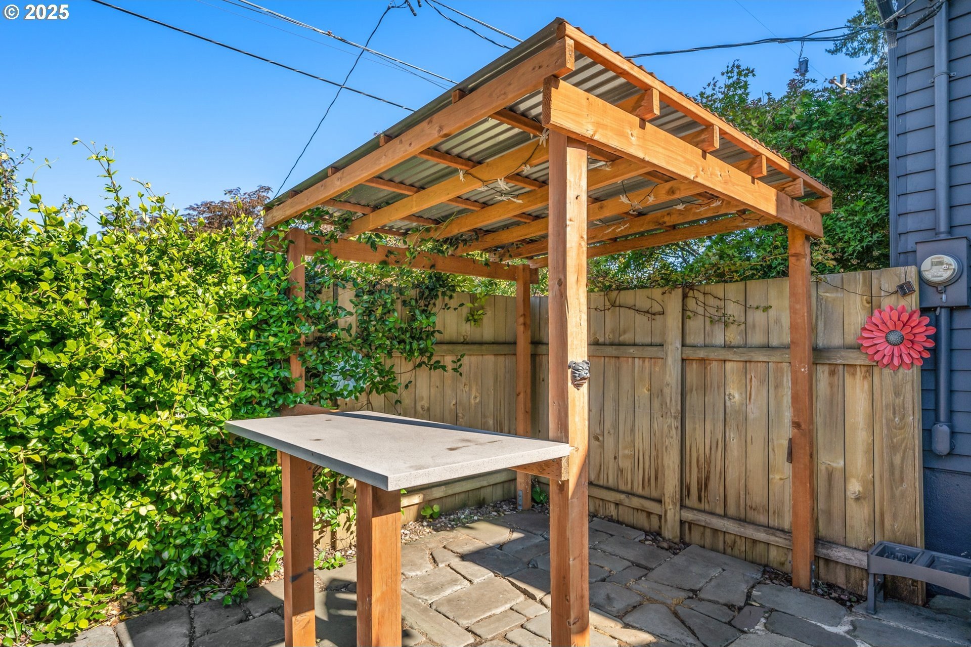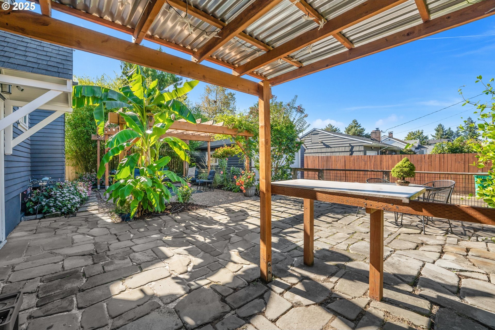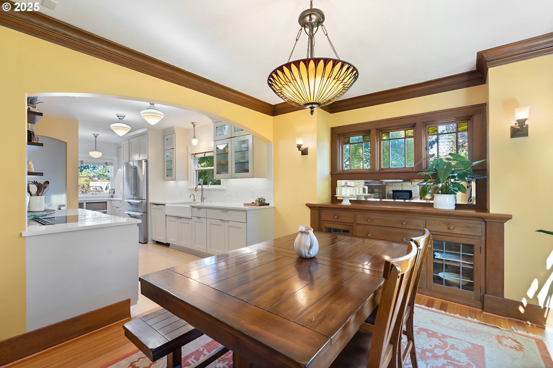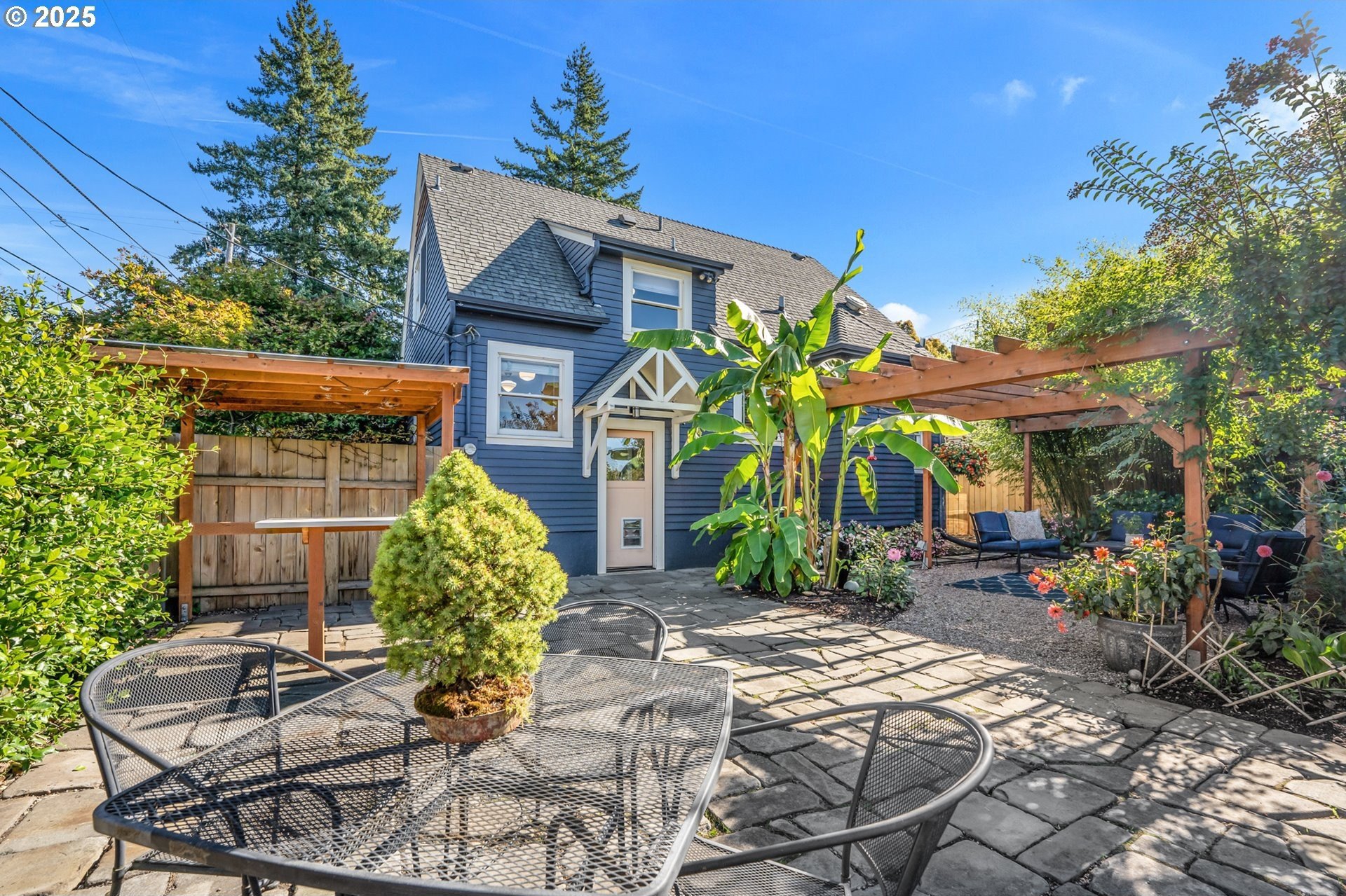 So well-loved and carefully maintained that the original deed still remains inside, this distinctive Roseway English blends period charm with modern comfort. Arched entries, coved ceilings, crown picture moulding, stained glass, built-ins, and original ribbon mahogany, oak, and fir floors showcase its vintage character, while thoughtful updates make for effortless everyday living. The down-to-the-studs, remodeled kitchen is a real showstopper with quartz counters, stainless steel appliances, Marmoleum flooring, and custom cabinetry. Both bathrooms have been refreshed, and newer appliances + central A/C offer peace of mind. Flexible floor plan includes a main-level bedroom, two upstairs bedrooms, and a partially finished basement with high ceilings ready for additional living space. Outside, colorful landscaping, fruit trees/bushes, paver patios, a new pergola, and a covered grill station with gas hookup create an incredibly private retreat. Parking includes a detached two-car garage plus a gated pad for extra vehicles or RV. This is the one you’ve been waiting for—historic charm, modern updates, and unmatched pride of ownership in the heart of Roseway, just moments from restaurants, cafés, & shops on NE Fremont or Sandy. [Home Energy Score = 4. HES Report at https://rpt.greenbuildingregistry.com/hes/OR10080665]