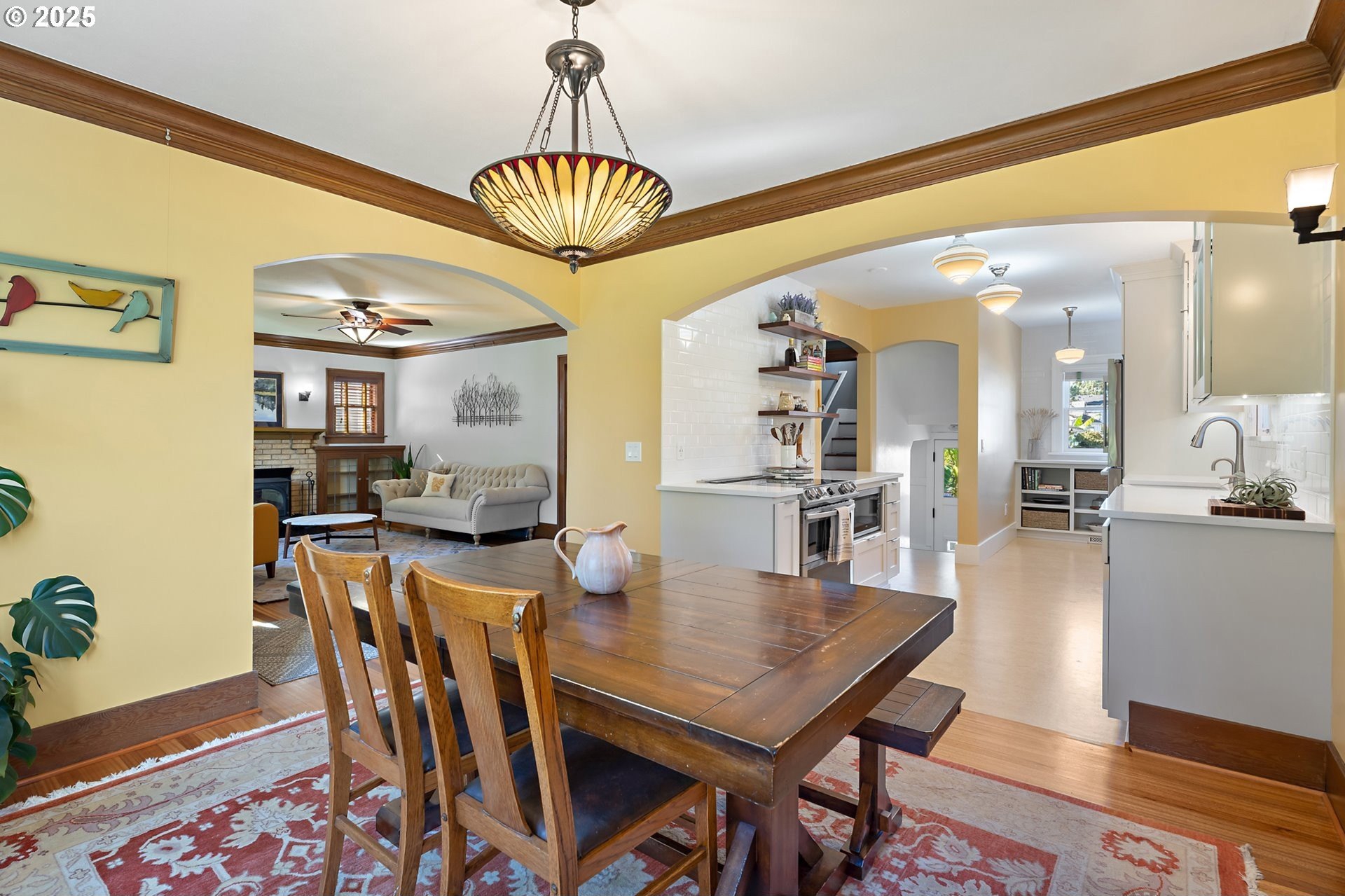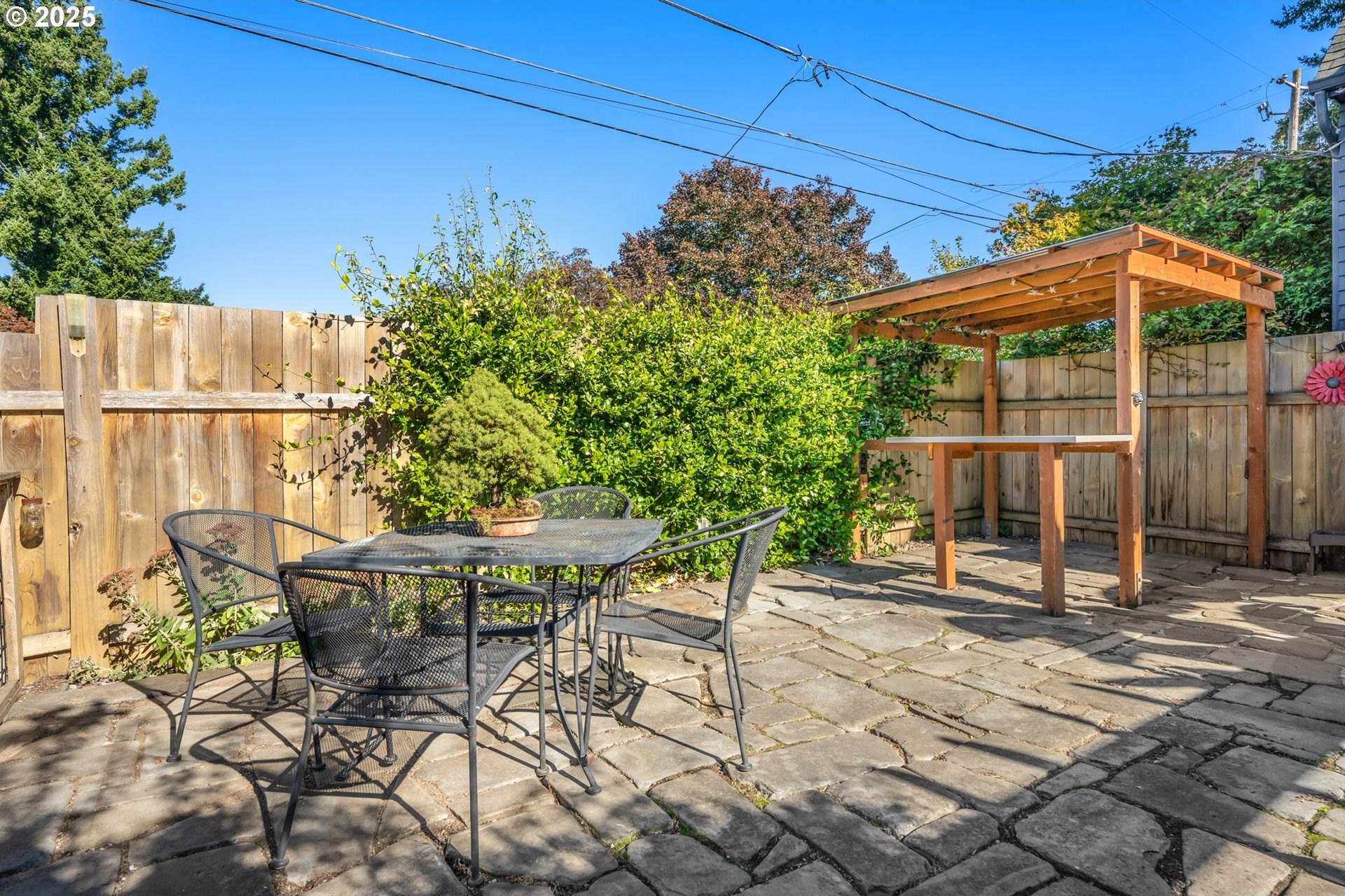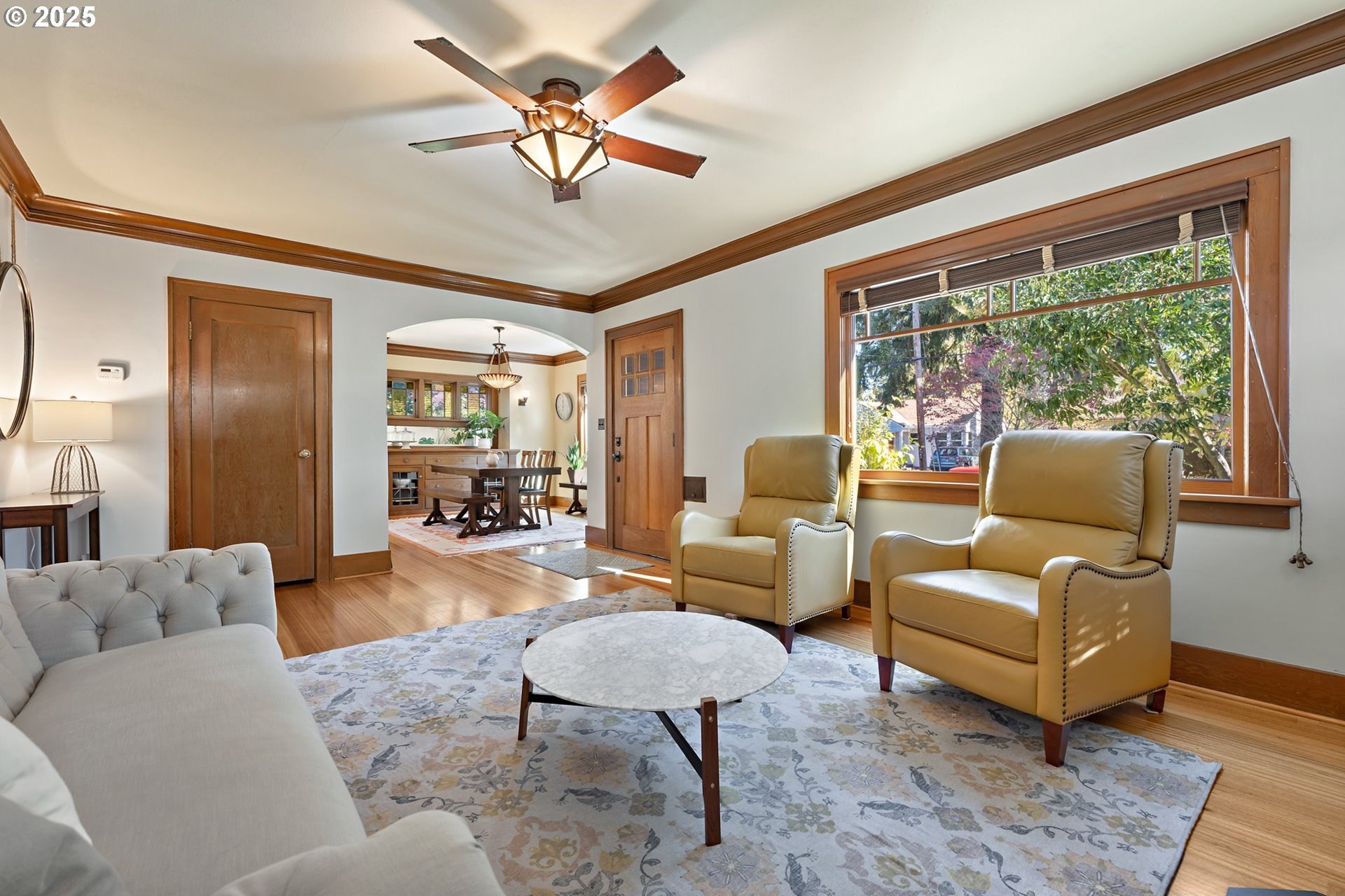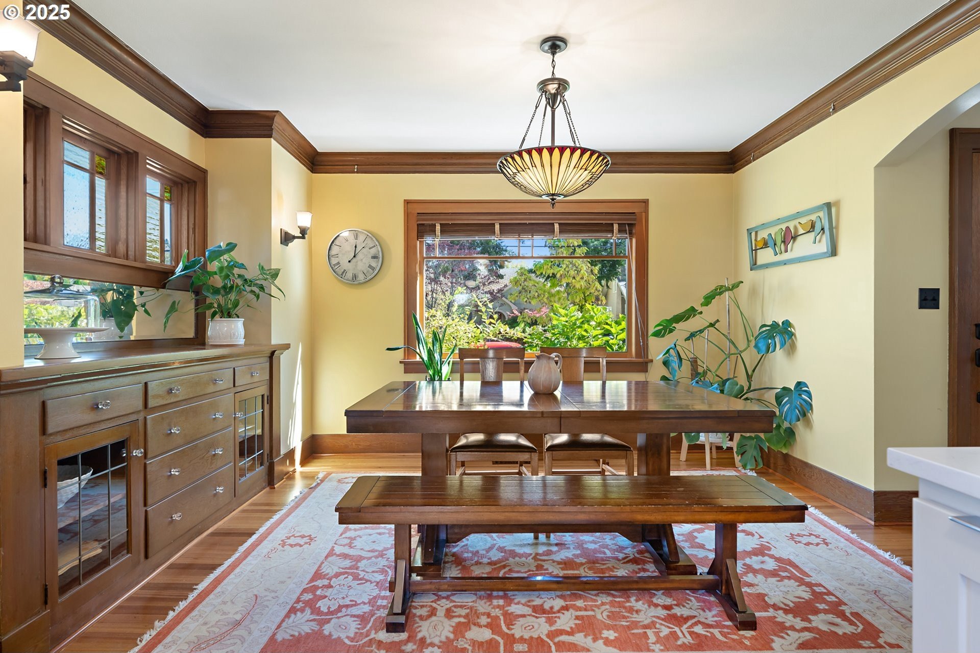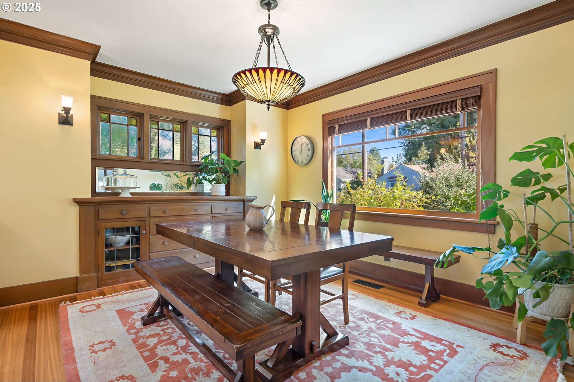 So well-loved and carefully maintained that the original deed still remains inside, this distinctive Roseway English blends period charm with modern comfort. Arched entries, coved ceilings, crown picture moulding, stained glass, built-ins, and original ribbon mahogany, oak, and fir floors showcase its vintage character, while thoughtful updates make for effortless everyday living. The down-to-the-studs, remodeled kitchen is a real showstopper with quartz counters, stainless steel appliances, Marmoleum flooring, and custom cabinetry. Both bathrooms have been refreshed, and newer appliances + central A/C offer peace of mind. Flexible floor plan includes a main-level bedroom, two upstairs bedrooms, and a partially finished basement with high ceilings ready for additional living space. Outside, colorful landscaping, fruit trees/bushes, paver patios, a new pergola, and a covered grill station with gas hookup create an incredibly private retreat. Parking includes a detached two-car garage plus a gated pad for extra vehicles or RV. This is the one you’ve been waiting for—historic charm, modern updates, and unmatched pride of ownership in the heart of Roseway, just moments from restaurants, cafés, & shops on NE Fremont or Sandy. [Home Energy Score = 4. HES Report at https://rpt.greenbuildingregistry.com/hes/OR10080665]