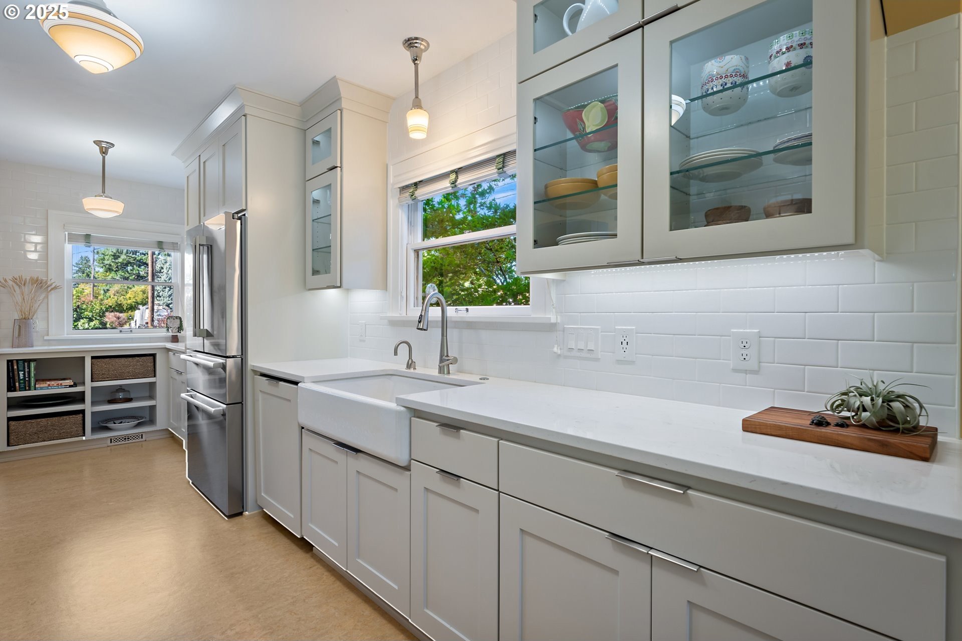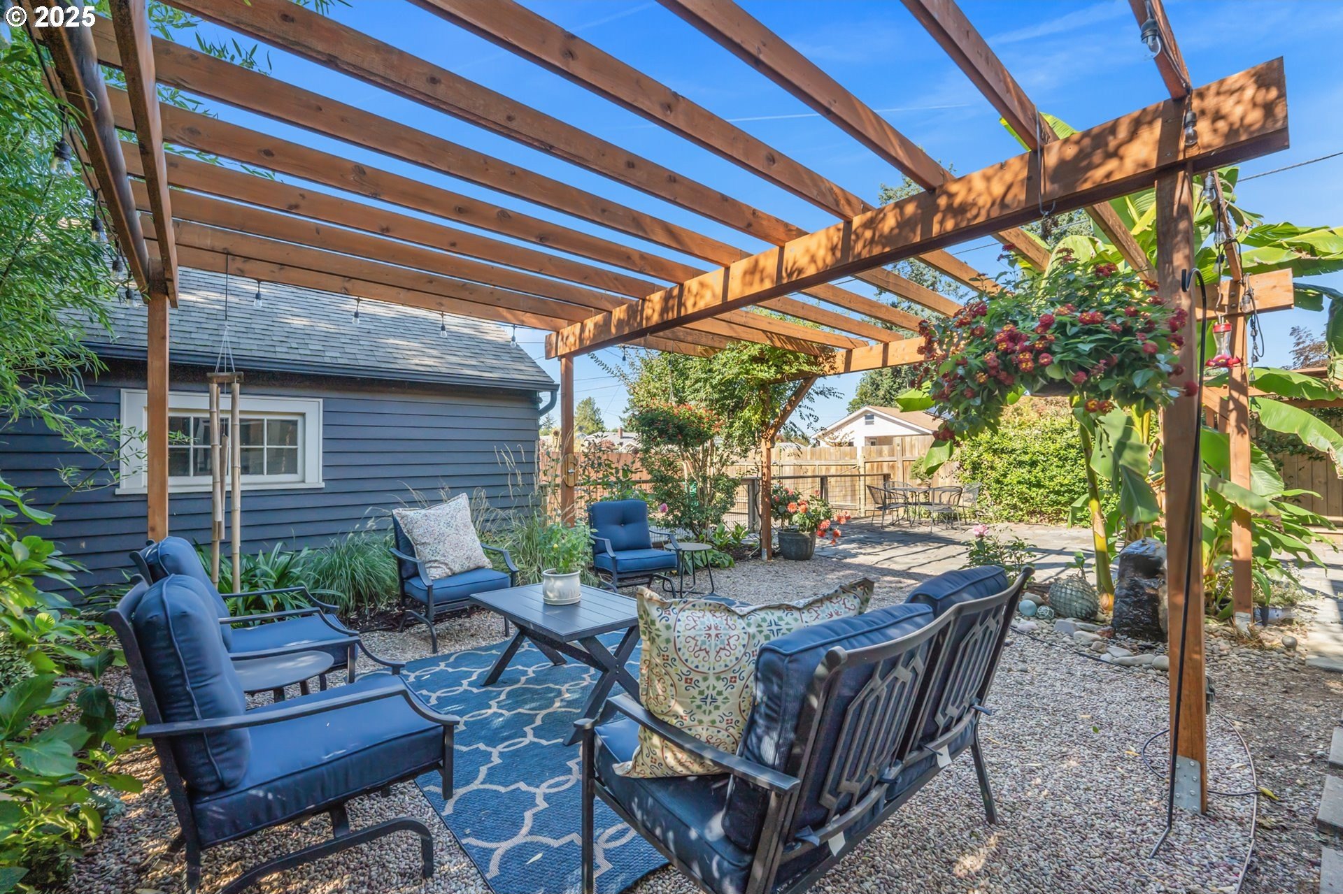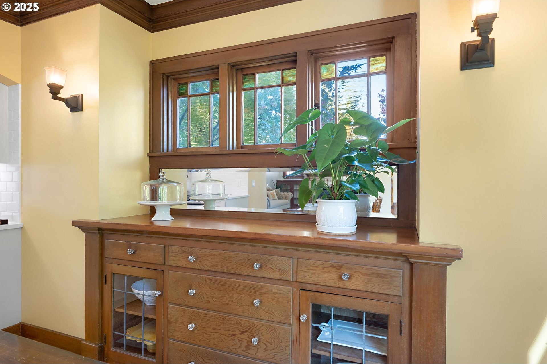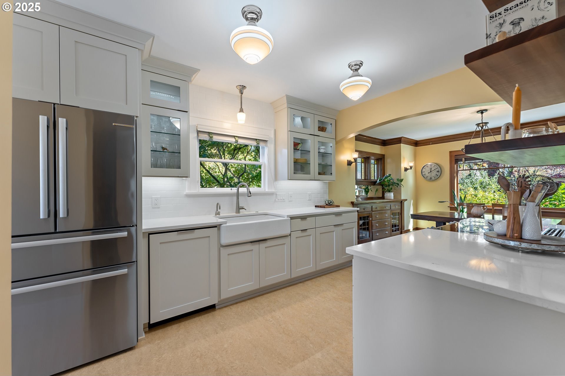 So well-loved and carefully maintained that the original deed still remains inside, this distinctive Roseway English blends period charm with modern comfort. Arched entries, coved ceilings, crown picture moulding, stained glass, built-ins, and original ribbon mahogany, oak, and fir floors showcase its vintage character, while thoughtful updates make for effortless everyday living. The down-to-the-studs, remodeled kitchen is a real showstopper with quartz counters, stainless steel appliances, Marmoleum flooring, and custom cabinetry. Both bathrooms have been refreshed, and newer appliances + central A/C offer peace of mind. Flexible floor plan includes a main-level bedroom, two upstairs bedrooms, and a partially finished basement with high ceilings ready for additional living space. Outside, colorful landscaping, fruit trees/bushes, paver patios, a new pergola, and a covered grill station with gas hookup create an incredibly private retreat. Parking includes a detached two-car garage plus a gated pad for extra vehicles or RV. This is the one you’ve been waiting for—historic charm, modern updates, and unmatched pride of ownership in the heart of Roseway, just moments from restaurants, cafés, & shops on NE Fremont or Sandy. [Home Energy Score = 4. HES Report at https://rpt.greenbuildingregistry.com/hes/OR10080665]