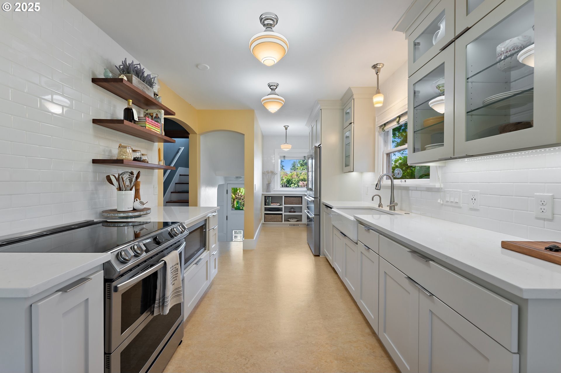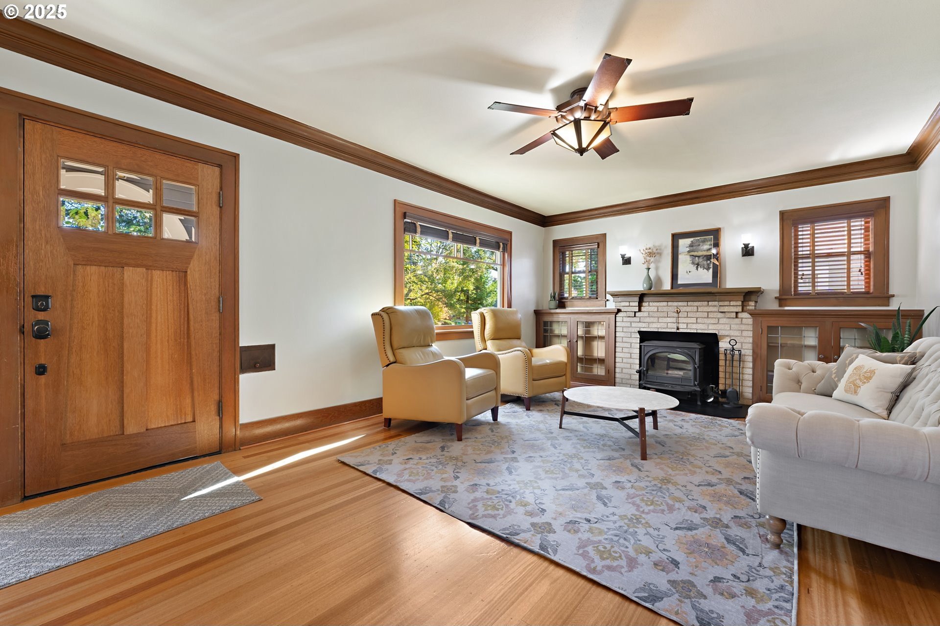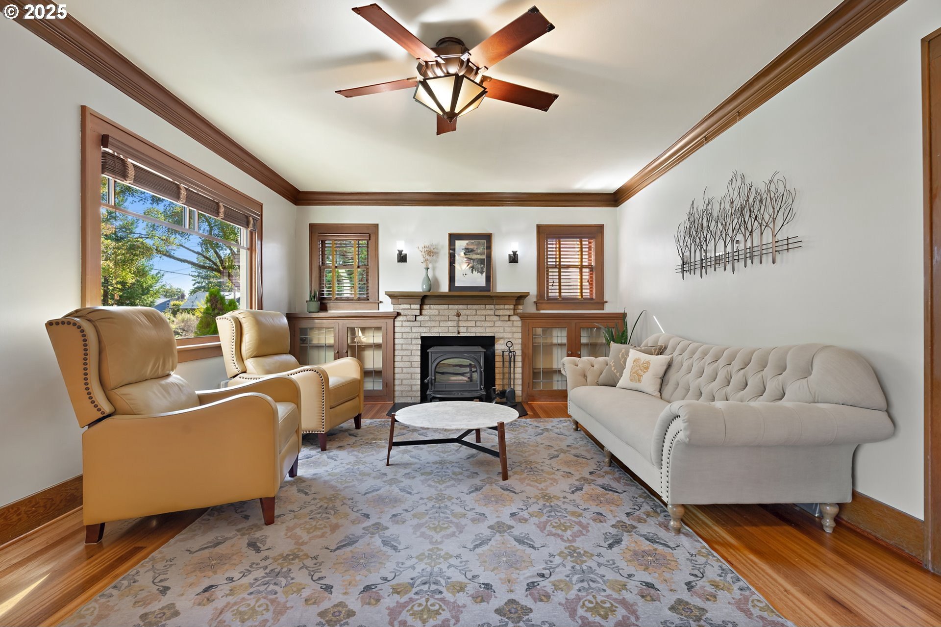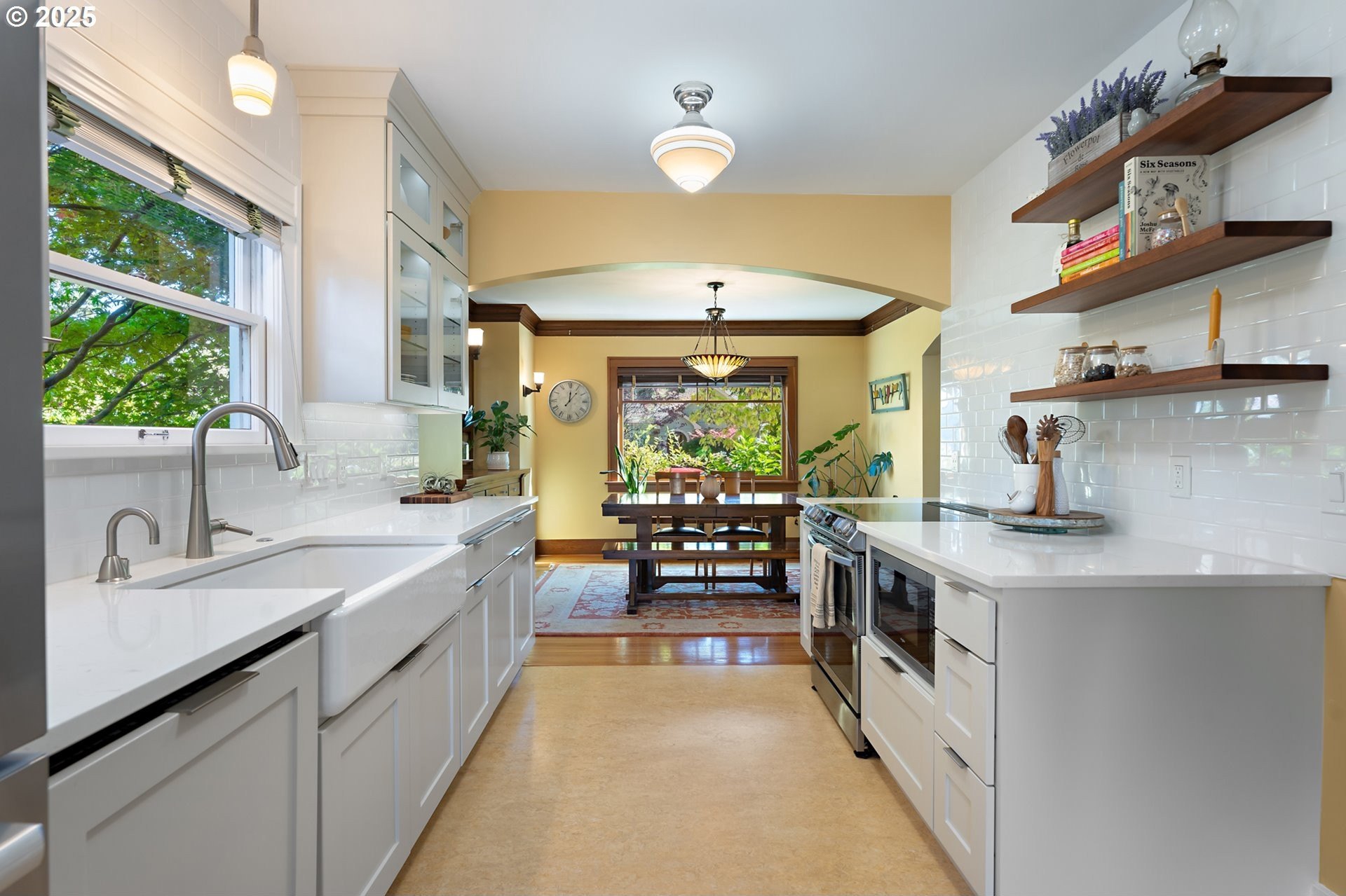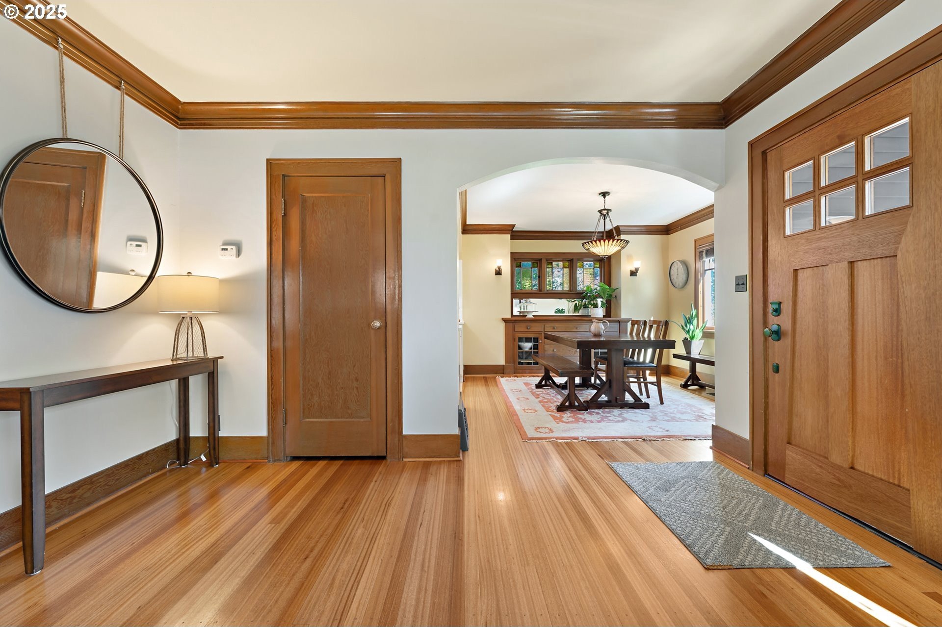 So well-loved and carefully maintained that the original deed still remains inside, this distinctive Roseway English blends period charm with modern comfort. Arched entries, coved ceilings, crown picture moulding, stained glass, built-ins, and original ribbon mahogany, oak, and fir floors showcase its vintage character, while thoughtful updates make for effortless everyday living. The down-to-the-studs, remodeled kitchen is a real showstopper with quartz counters, stainless steel appliances, Marmoleum flooring, and custom cabinetry. Both bathrooms have been refreshed, and newer appliances + central A/C offer peace of mind. Flexible floor plan includes a main-level bedroom, two upstairs bedrooms, and a partially finished basement with high ceilings ready for additional living space. Outside, colorful landscaping, fruit trees/bushes, paver patios, a new pergola, and a covered grill station with gas hookup create an incredibly private retreat. Parking includes a detached two-car garage plus a gated pad for extra vehicles or RV. This is the one you’ve been waiting for—historic charm, modern updates, and unmatched pride of ownership in the heart of Roseway, just moments from restaurants, cafés, & shops on NE Fremont or Sandy. [Home Energy Score = 4. HES Report at https://rpt.greenbuildingregistry.com/hes/OR10080665]
