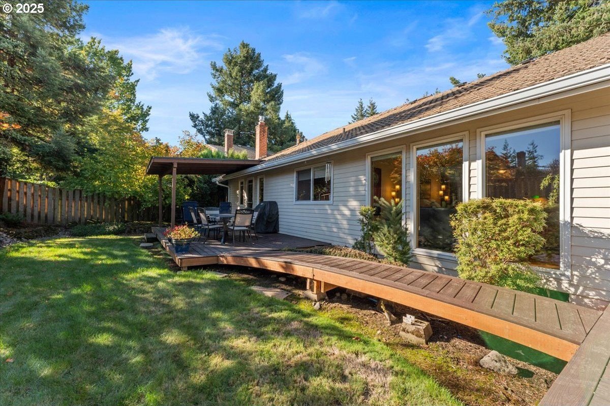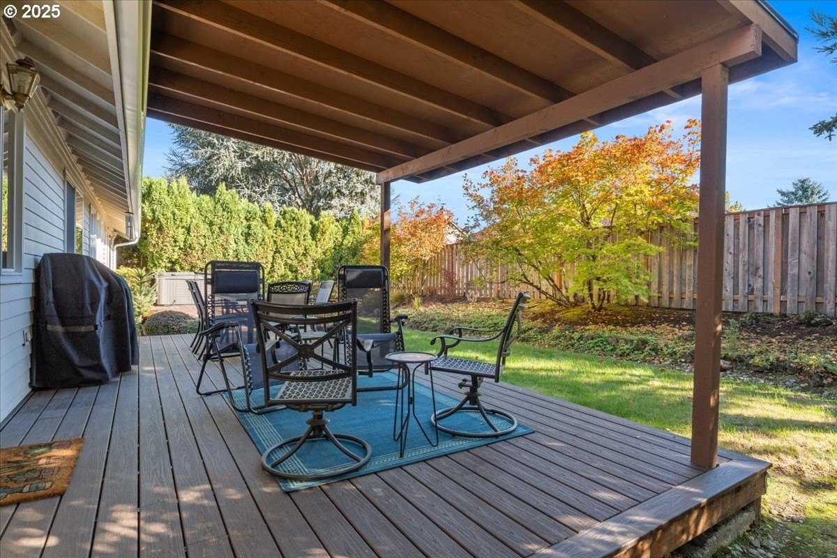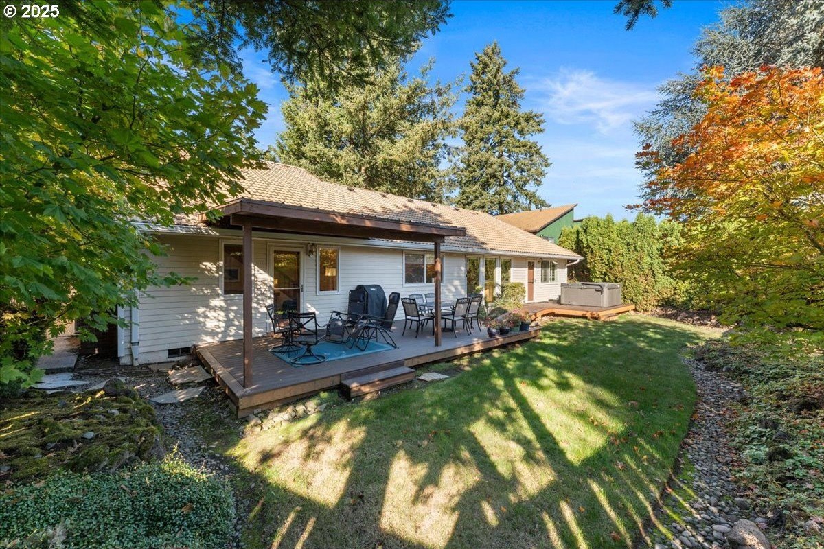 Charming One-Level Home with Bonus Loft, Updated Kitchen & Private Backyard Retreat.Welcome to this beautifully maintained home in the coveted Sandstone neighborhood, offering the ease of one-level living plus a versatile bonus loft — perfect for a home office, guest space, or creative studio. Light-filled rooms create a warm atmosphere throughout the home. The kitchen was fully updated in August 2024 and features stylish ceramic tile flooring, quartz countertops, custom beechwood cabinetry, a sleek new cooktop, and a new high-end Bosch dishwasher — ideal for both everyday living and entertaining. Gorgeous Brazilian teak hardwoods flow seamlessly throughout the front half of the house. Sit by the cozy gas fireplace in the family room and watch your favorite series on the 57-inch Smart TV. The family room boasts high vaulted ceilings. The bright sunlit living room with 3 floor to ceiling windows offers a place where you can visit with friends or simply read in quiet. Recent exterior upgrades include brand new gutters and a professionally cleaned roof (both completed October 2025). Step outside to a serene, private backyard with low-maintenance landscaping and a newer Trex deck and patio cover. Unwind in the spa/hot tub (which is included in the sale). A laundry room provides easy access to a large attached garage that includes built-in storage and a dedicated work surface for projects or hobbies. Additional storage is available throughout the home for ultimate convenience. This home blends comfort, functionality, and natural beauty — don’t miss your opportunity to make it yours!