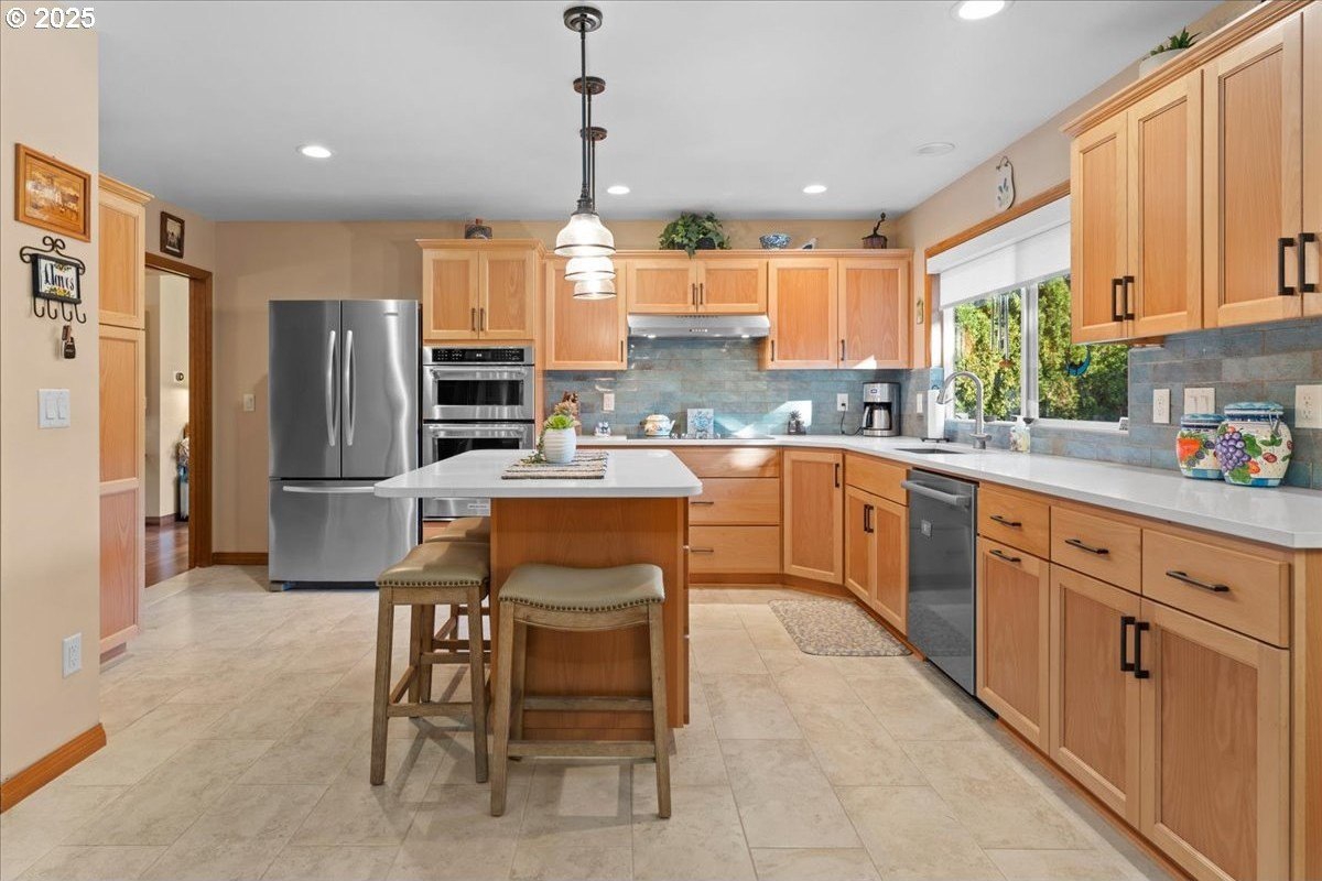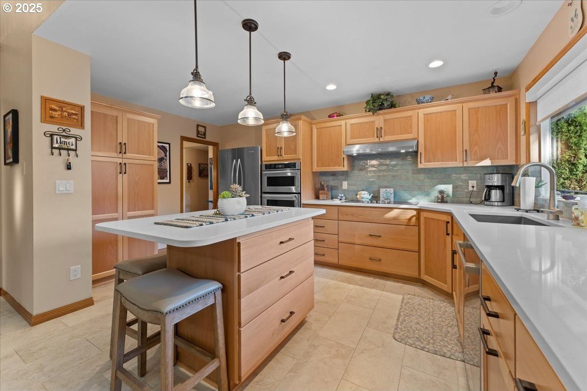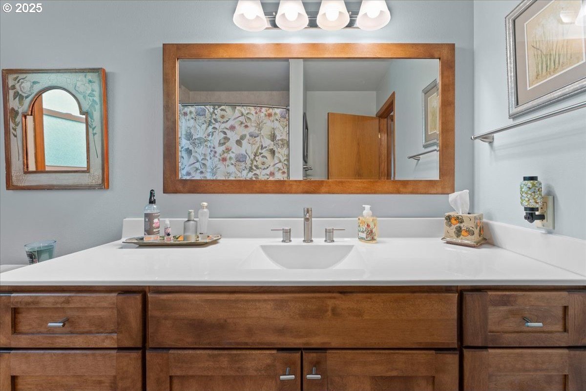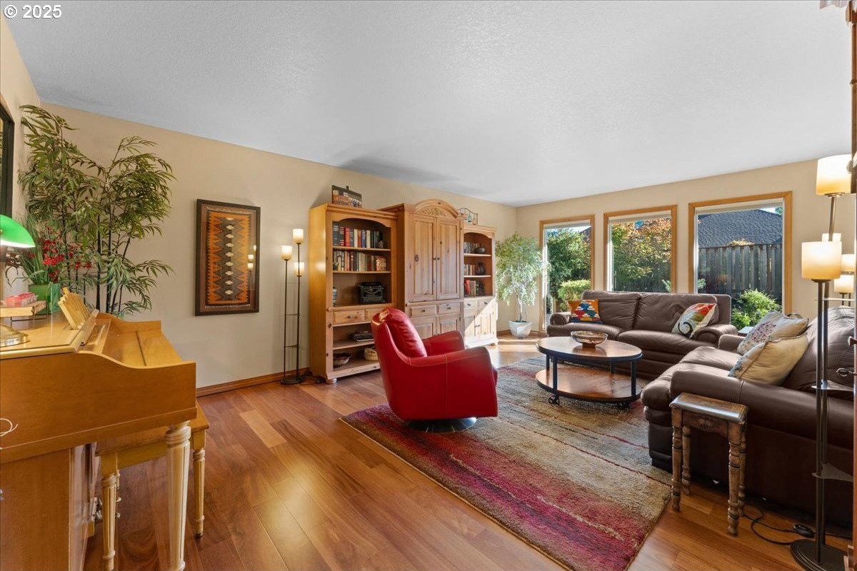 Charming One-Level Home with Bonus Loft, Updated Kitchen & Private Backyard Retreat.Welcome to this beautifully maintained home in the coveted Sandstone neighborhood, offering the ease of one-level living plus a versatile bonus loft — perfect for a home office, guest space, or creative studio. Light-filled rooms create a warm atmosphere throughout the home. The kitchen was fully updated in August 2024 and features stylish ceramic tile flooring, quartz countertops, custom beechwood cabinetry, a sleek new cooktop, and a new high-end Bosch dishwasher — ideal for both everyday living and entertaining. Gorgeous Brazilian teak hardwoods flow seamlessly throughout the front half of the house. Sit by the cozy gas fireplace in the family room and watch your favorite series on the 57-inch Smart TV. The family room boasts high vaulted ceilings. The bright sunlit living room with 3 floor to ceiling windows offers a place where you can visit with friends or simply read in quiet. Recent exterior upgrades include brand new gutters and a professionally cleaned roof (both completed October 2025). Step outside to a serene, private backyard with low-maintenance landscaping and a newer Trex deck and patio cover. Unwind in the spa/hot tub (which is included in the sale). A laundry room provides easy access to a large attached garage that includes built-in storage and a dedicated work surface for projects or hobbies. Additional storage is available throughout the home for ultimate convenience. This home blends comfort, functionality, and natural beauty — don’t miss your opportunity to make it yours!