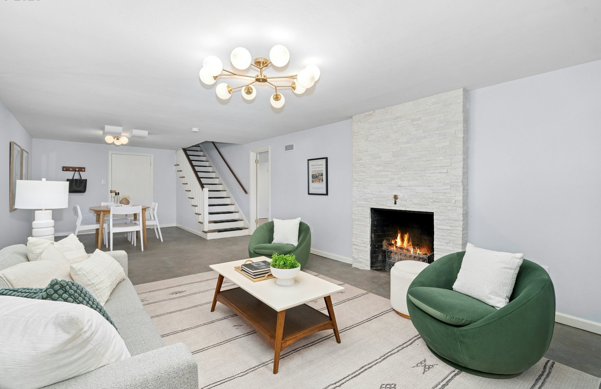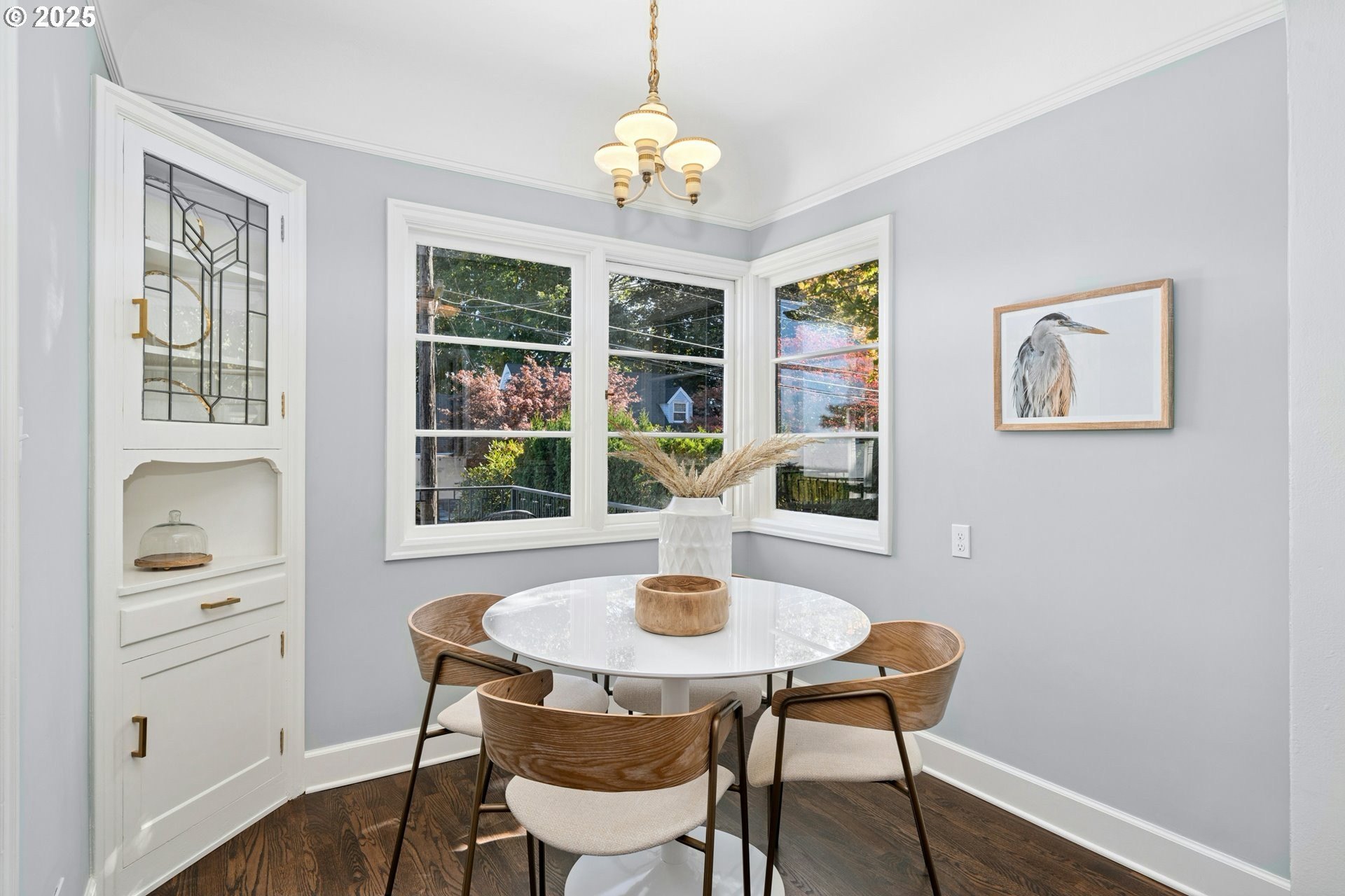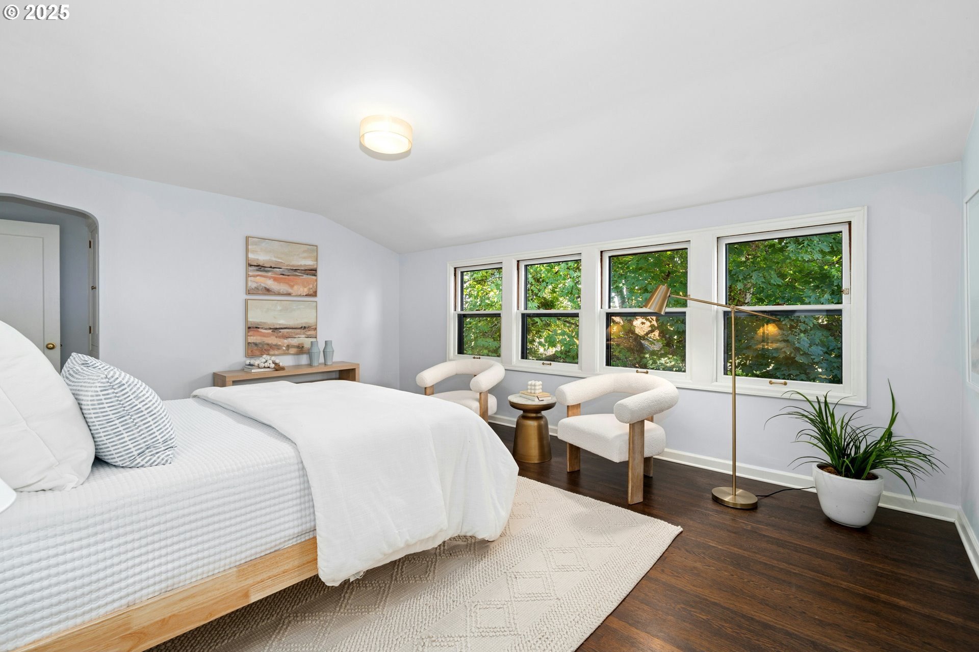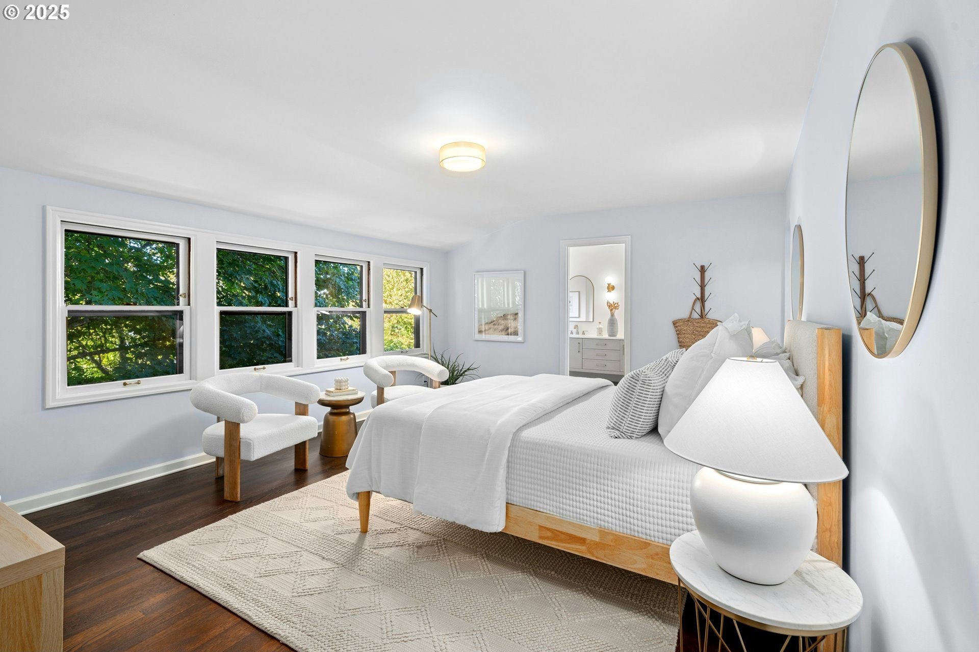 This beautifully renovated Cape Cod blends timeless character with thoughtful updates in one of Portland's favorite neighborhoods. Perched above the street, the home offers lovely views and abundant natural light. Sun-filled living and dining rooms showcase original hardwood flooring, mahogany millwork, built-ins and a few Deco touches. A wood-burning fireplace anchors the living room and the dining room offers access to wonderful front-facing patio where you can relax and wave to the neighborhood dog walkers. The gourmet kitchen is fully renovated with cabinet-front appliances, stainless steel range, quartz counters and tile backsplash. The breakfast nook with it's eastern view couldn't be a sweeter place for morning coffee. Two bedrooms and a full bath complete the main level. The entire upper level is devoted to the primary suite-- a private retreat with spa-like bath, walk-in closet and adjoining office or nursery. The gracious lower-level family room features a wood-burning fireplace and on-trend polished-cement flooring-- ready for game-time, moving-watching and sleepovers. Adjacent the family room are a fully finished laundry room, utility room with storage, and a workshop to accommodate your hobbies & crafts. The spacious backyard with it's lovely patio under a mighty maple tree will be shaded just right for next summer's BBQs. Many new systems including heat pump, electric panel, and all new plumbing. Located in coveted S. Burlingame near neighboring Hillsdale and Multnomah Village shops & cafes. Convenient commute to all places Portland with easy I5 access. Move right in and start planning your holiday season! [Home Energy Score = 5. HES Report at https://rpt.greenbuildingregistry.com/hes/OR10236028]