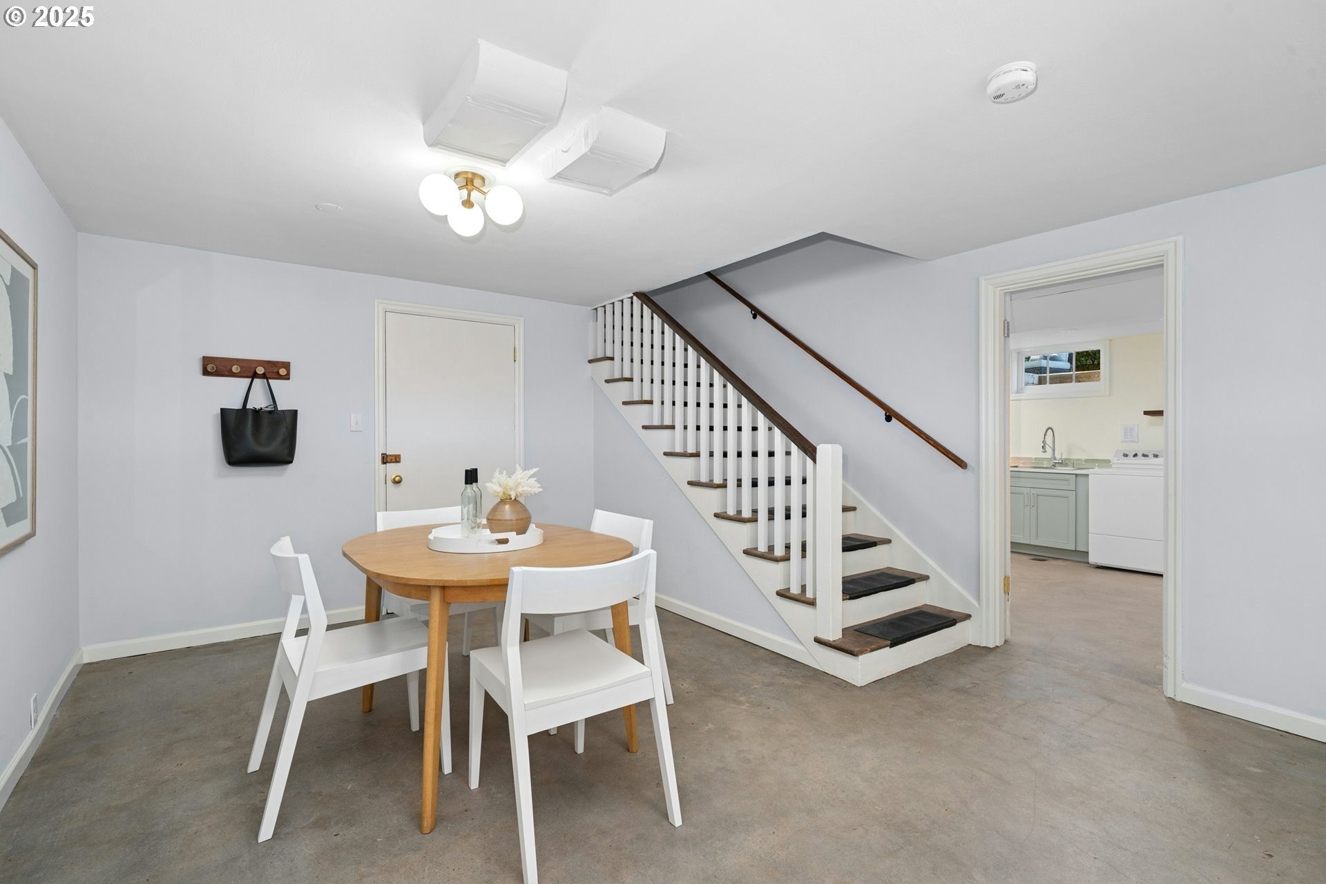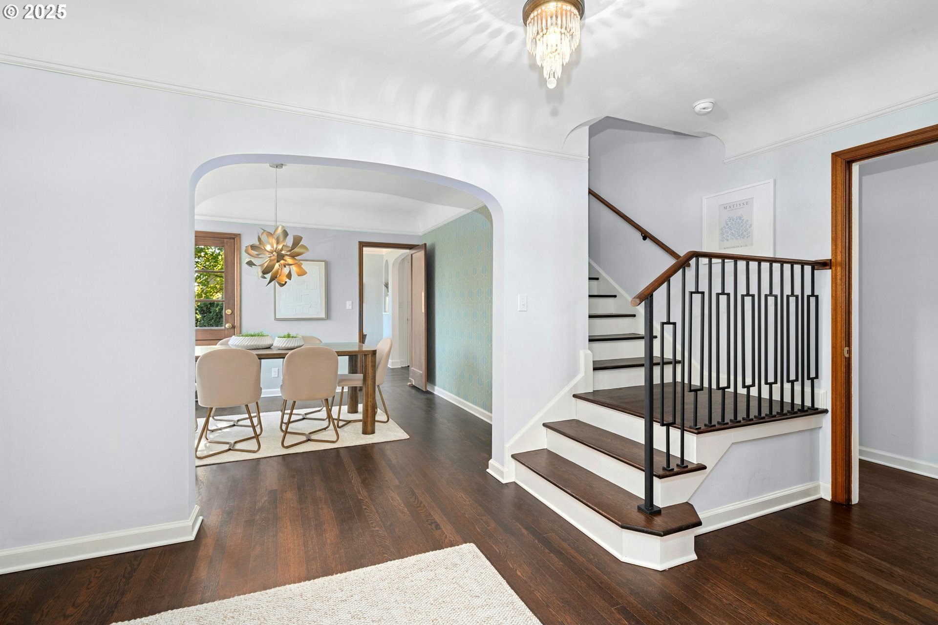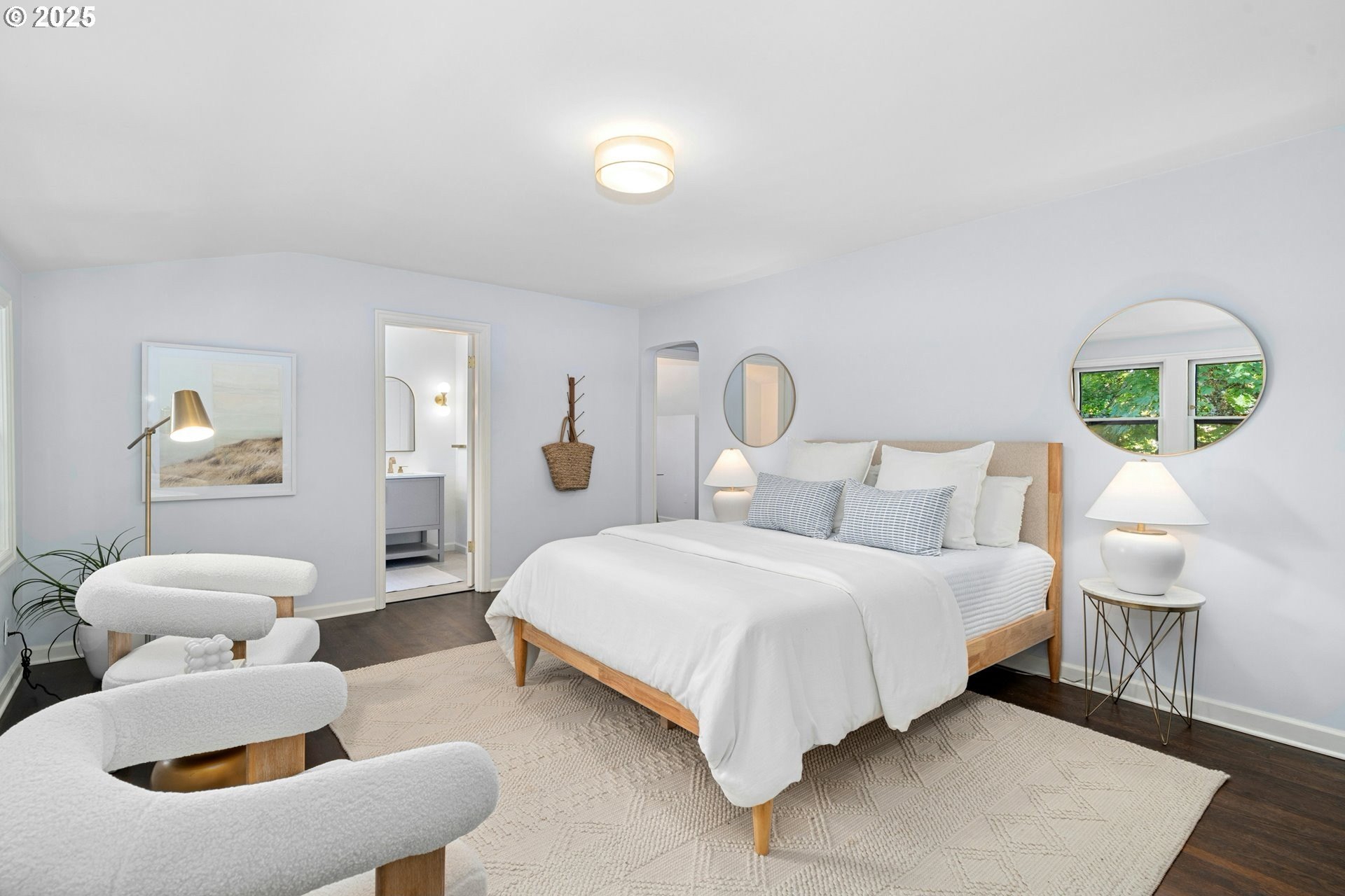 This beautifully renovated Cape Cod blends timeless character with thoughtful updates in one of Portland's favorite neighborhoods. Perched above the street, the home offers lovely views and abundant natural light. Sun-filled living and dining rooms showcase original hardwood flooring, mahogany millwork, built-ins and a few Deco touches. A wood-burning fireplace anchors the living room and the dining room offers access to wonderful front-facing patio where you can relax and wave to the neighborhood dog walkers. The gourmet kitchen is fully renovated with cabinet-front appliances, stainless steel range, quartz counters and tile backsplash. The breakfast nook with it's eastern view couldn't be a sweeter place for morning coffee. Two bedrooms and a full bath complete the main level. The entire upper level is devoted to the primary suite-- a private retreat with spa-like bath, walk-in closet and adjoining office or nursery. The gracious lower-level family room features a wood-burning fireplace and on-trend polished-cement flooring-- ready for game-time, moving-watching and sleepovers. Adjacent the family room are a fully finished laundry room, utility room with storage, and a workshop to accommodate your hobbies & crafts. The spacious backyard with it's lovely patio under a mighty maple tree will be shaded just right for next summer's BBQs. Many new systems including heat pump, electric panel, and all new plumbing. Located in coveted S. Burlingame near neighboring Hillsdale and Multnomah Village shops & cafes. Convenient commute to all places Portland with easy I5 access. Move right in and start planning your holiday season! [Home Energy Score = 5. HES Report at https://rpt.greenbuildingregistry.com/hes/OR10236028]
