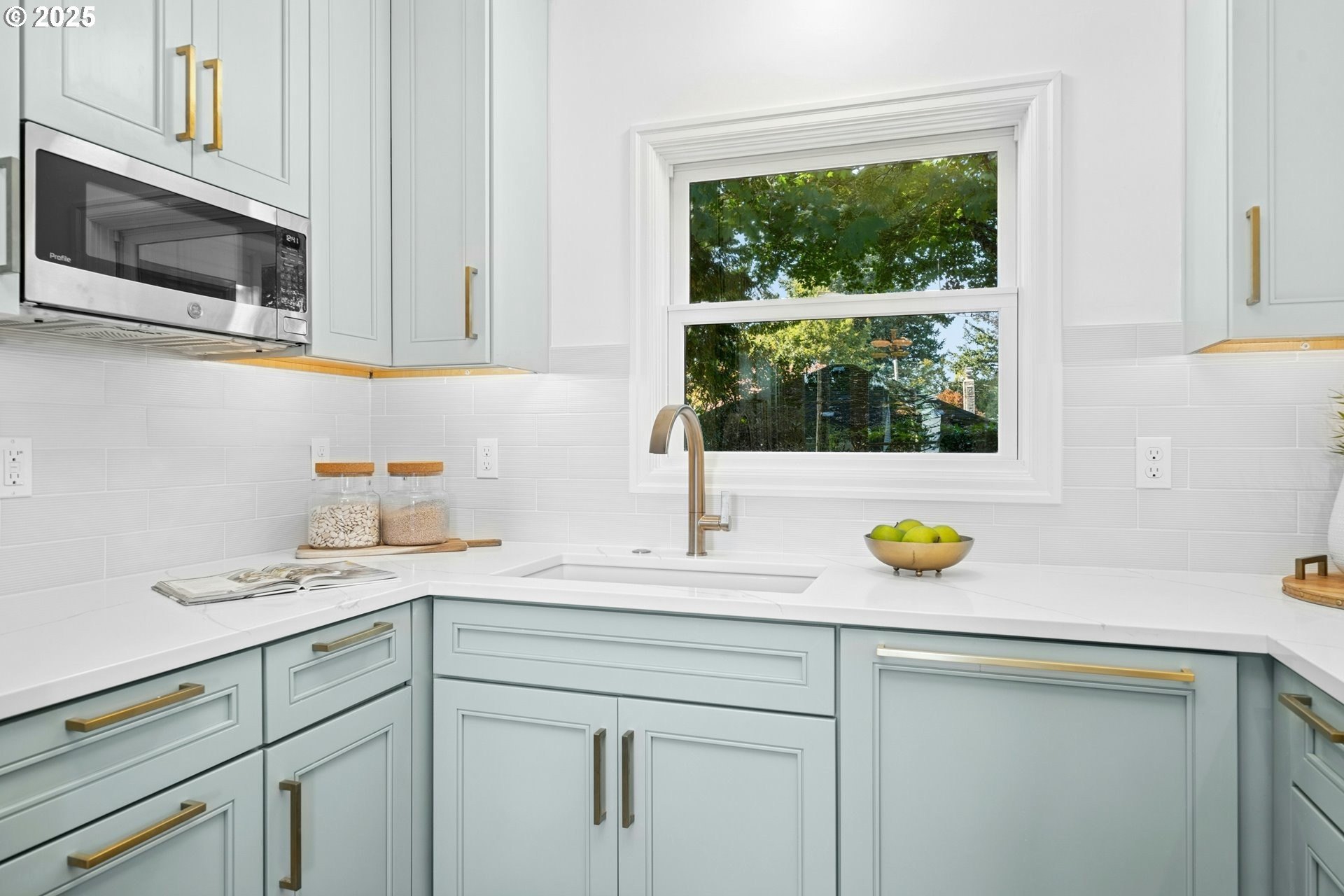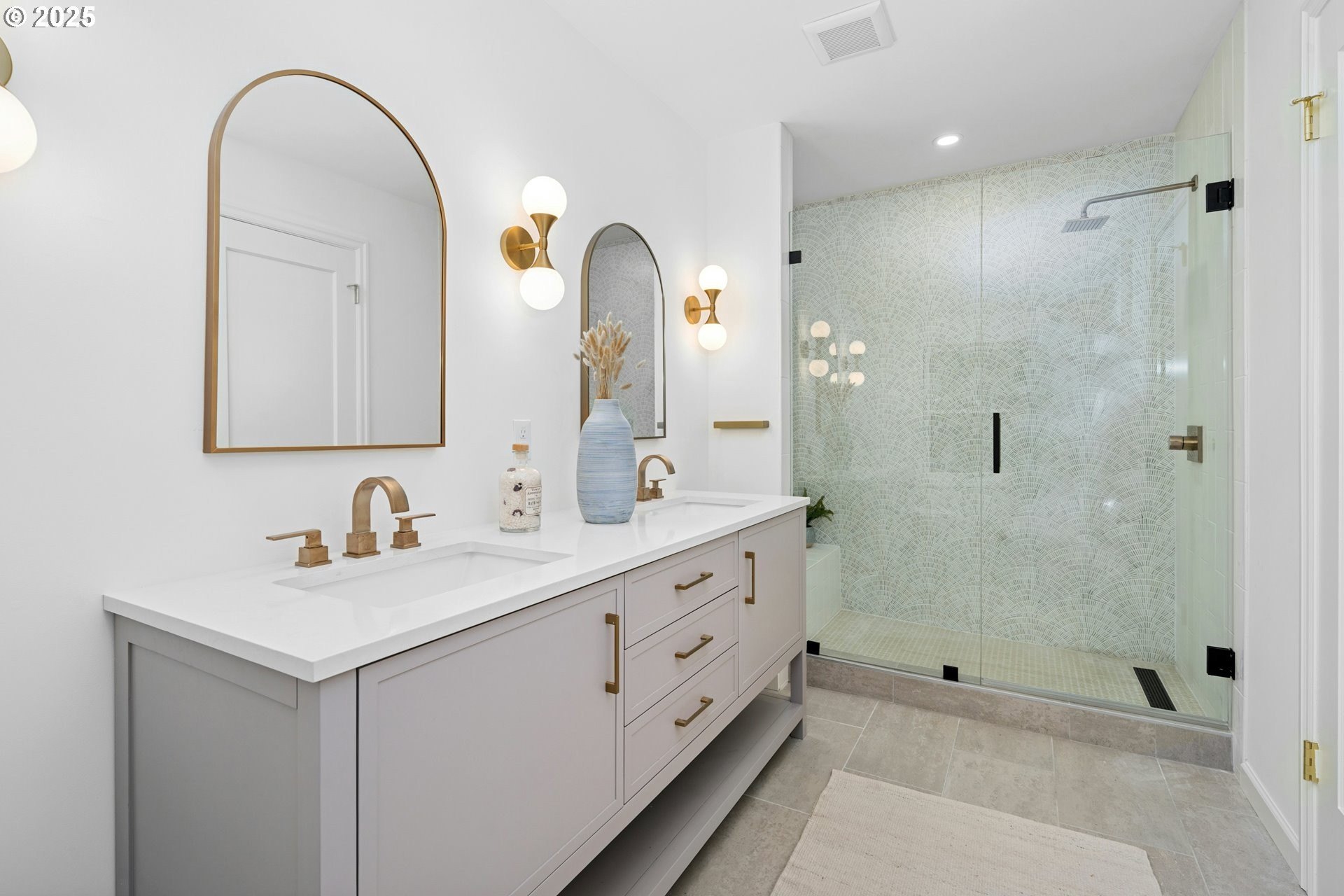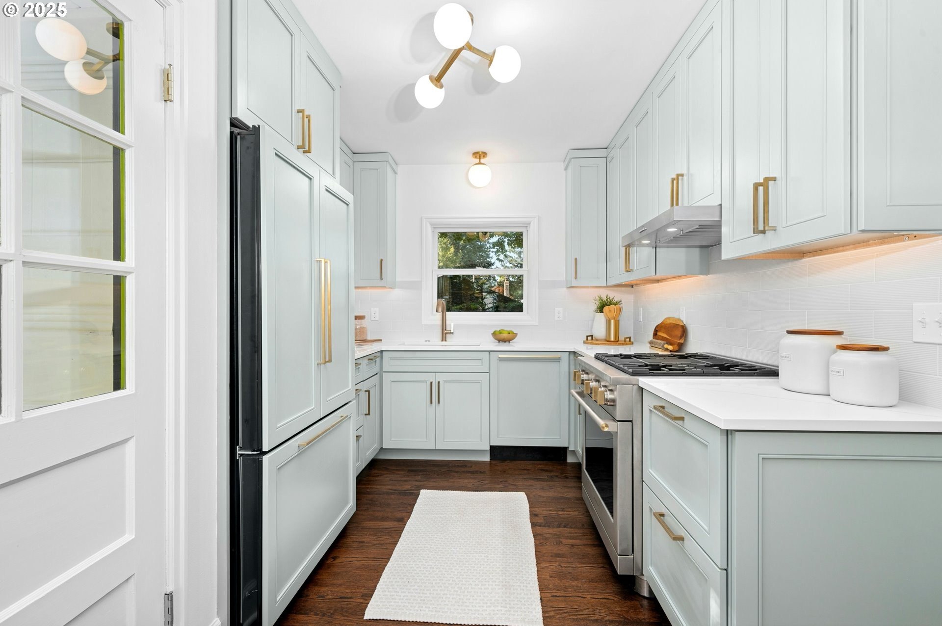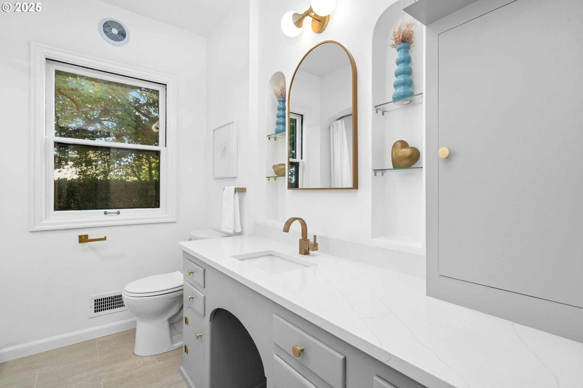 This beautifully renovated Cape Cod blends timeless character with thoughtful updates in one of Portland's favorite neighborhoods. Perched above the street, the home offers lovely views and abundant natural light. Sun-filled living and dining rooms showcase original hardwood flooring, mahogany millwork, built-ins and a few Deco touches. A wood-burning fireplace anchors the living room and the dining room offers access to wonderful front-facing patio where you can relax and wave to the neighborhood dog walkers. The gourmet kitchen is fully renovated with cabinet-front appliances, stainless steel range, quartz counters and tile backsplash. The breakfast nook with it's eastern view couldn't be a sweeter place for morning coffee. Two bedrooms and a full bath complete the main level. The entire upper level is devoted to the primary suite-- a private retreat with spa-like bath, walk-in closet and adjoining office or nursery. The gracious lower-level family room features a wood-burning fireplace and on-trend polished-cement flooring-- ready for game-time, moving-watching and sleepovers. Adjacent the family room are a fully finished laundry room, utility room with storage, and a workshop to accommodate your hobbies & crafts. The spacious backyard with it's lovely patio under a mighty maple tree will be shaded just right for next summer's BBQs. Many new systems including heat pump, electric panel, and all new plumbing. Located in coveted S. Burlingame near neighboring Hillsdale and Multnomah Village shops & cafes. Convenient commute to all places Portland with easy I5 access. Move right in and start planning your holiday season! [Home Energy Score = 5. HES Report at https://rpt.greenbuildingregistry.com/hes/OR10236028]