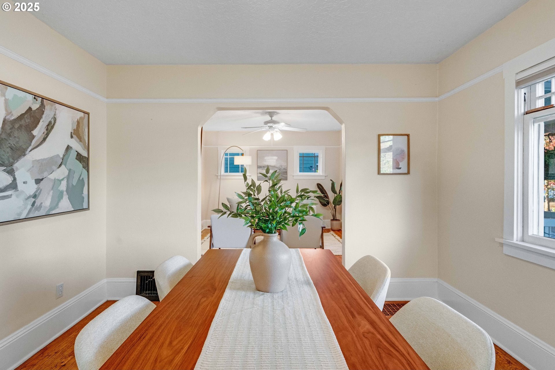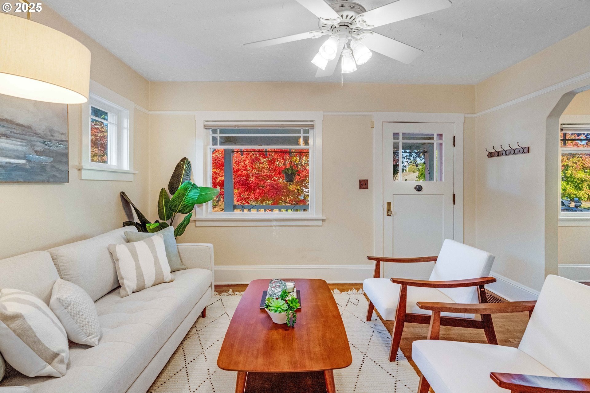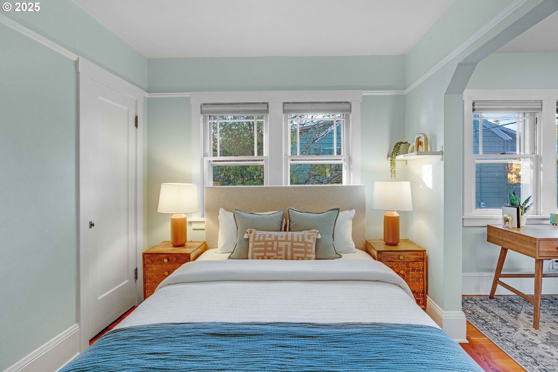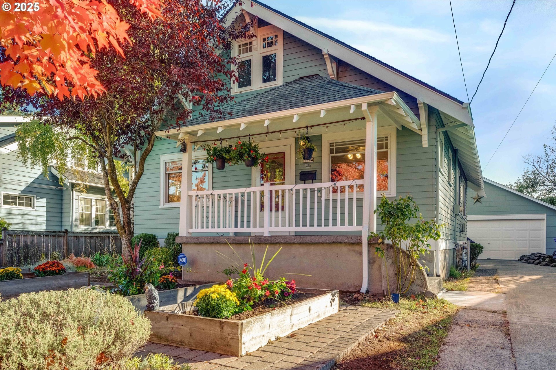 This beautifully maintained Roseway home is filled with vintage charm and modern updates throughout, offering flexibility and comfort in a classic setting. Fresh exterior paint and newly refreshed landscaping with sod, barkdust, and plantings enhance its curb appeal. Inside, hardwood floors, built-ins, and a clawfoot tub highlight timeless craftsmanship. Major updates include a roof, gutters, and furnace (2015), an earthquake retrofit (2016), and energy-efficient vinyl windows. Stainless steel appliances, a two-car garage, fenced yard, and ample off-street parking add everyday convenience. Currently used as a two bedroom/large primary suite with double closets or convert back to a three bedroom. Large basement with tall ceilings and possibility to finish and create more living space. Just blocks to Glenhaven Park and Rose City Golf Club. With its covered front porch and move-in-ready condition, this Roseway gem perfectly blends character and care. [Home Energy Score = 7. HES Report at https://rpt.greenbuildingregistry.com/hes/OR10183212]
