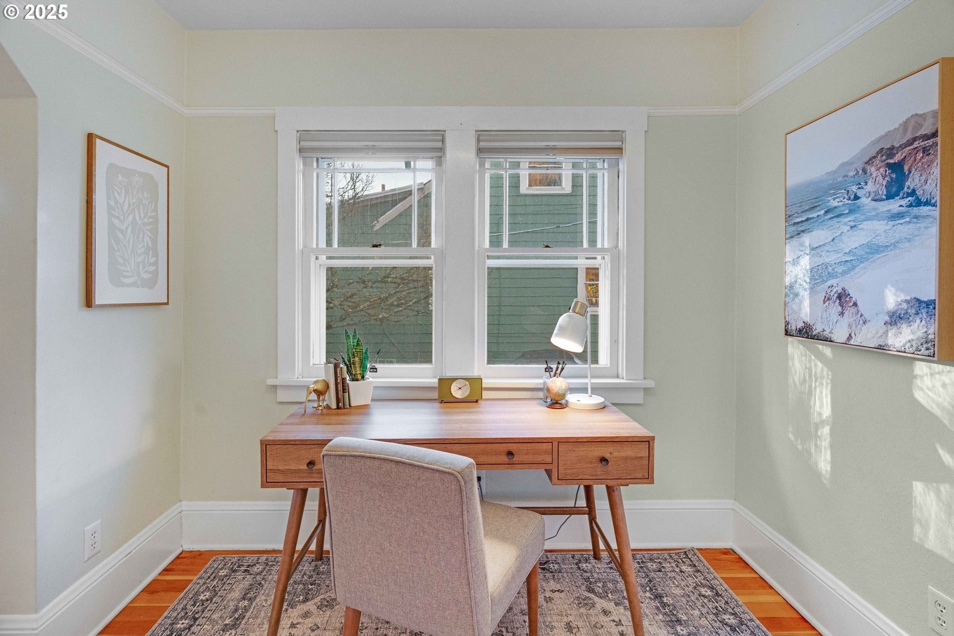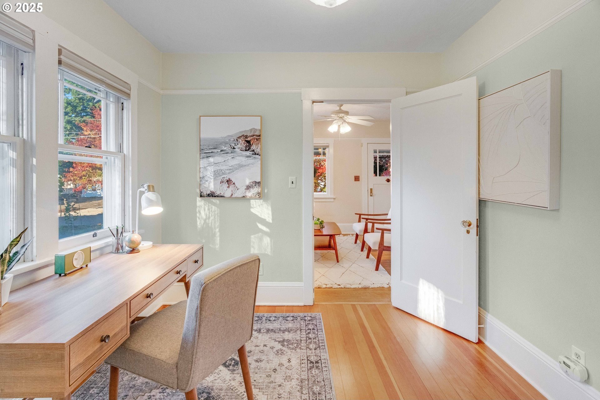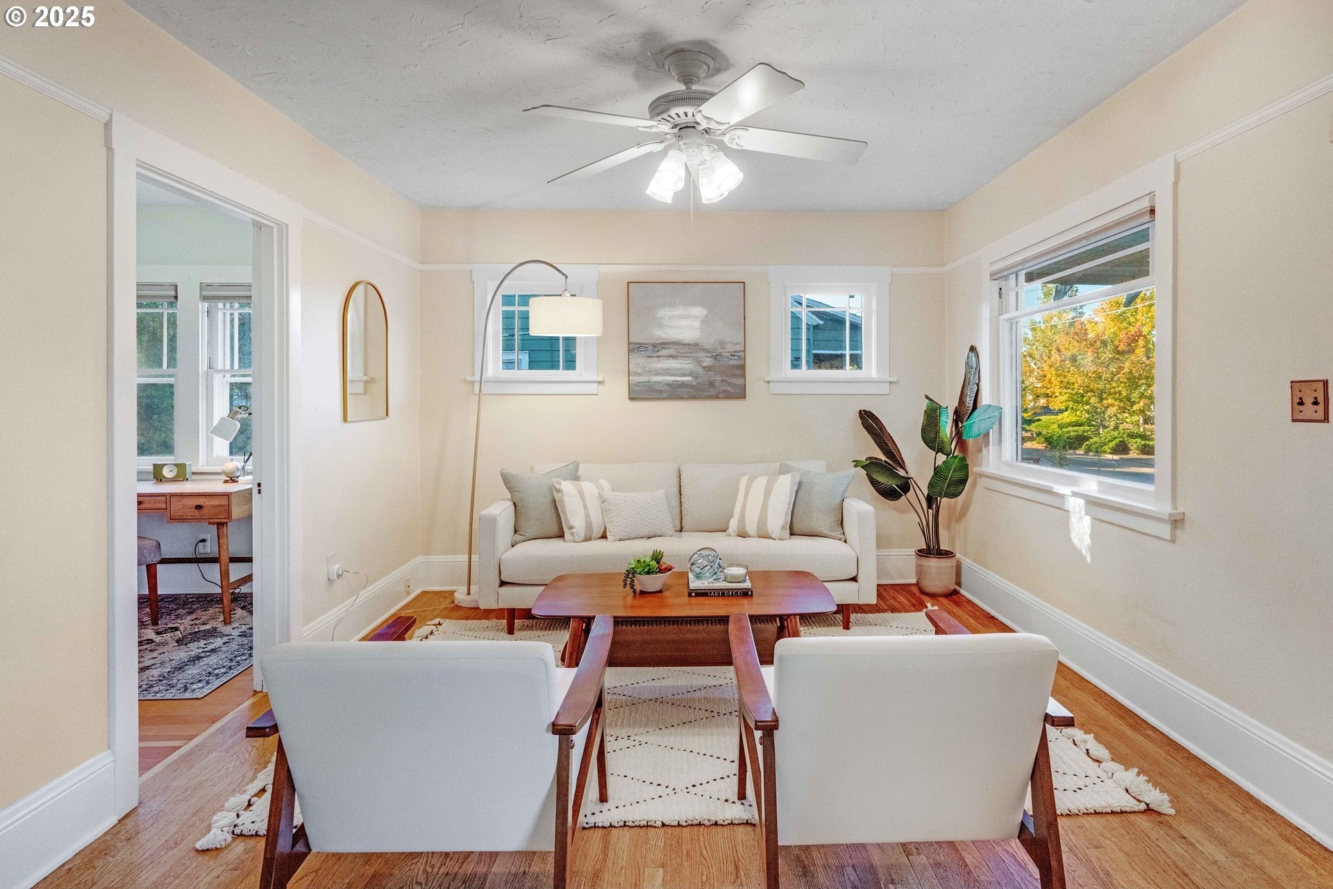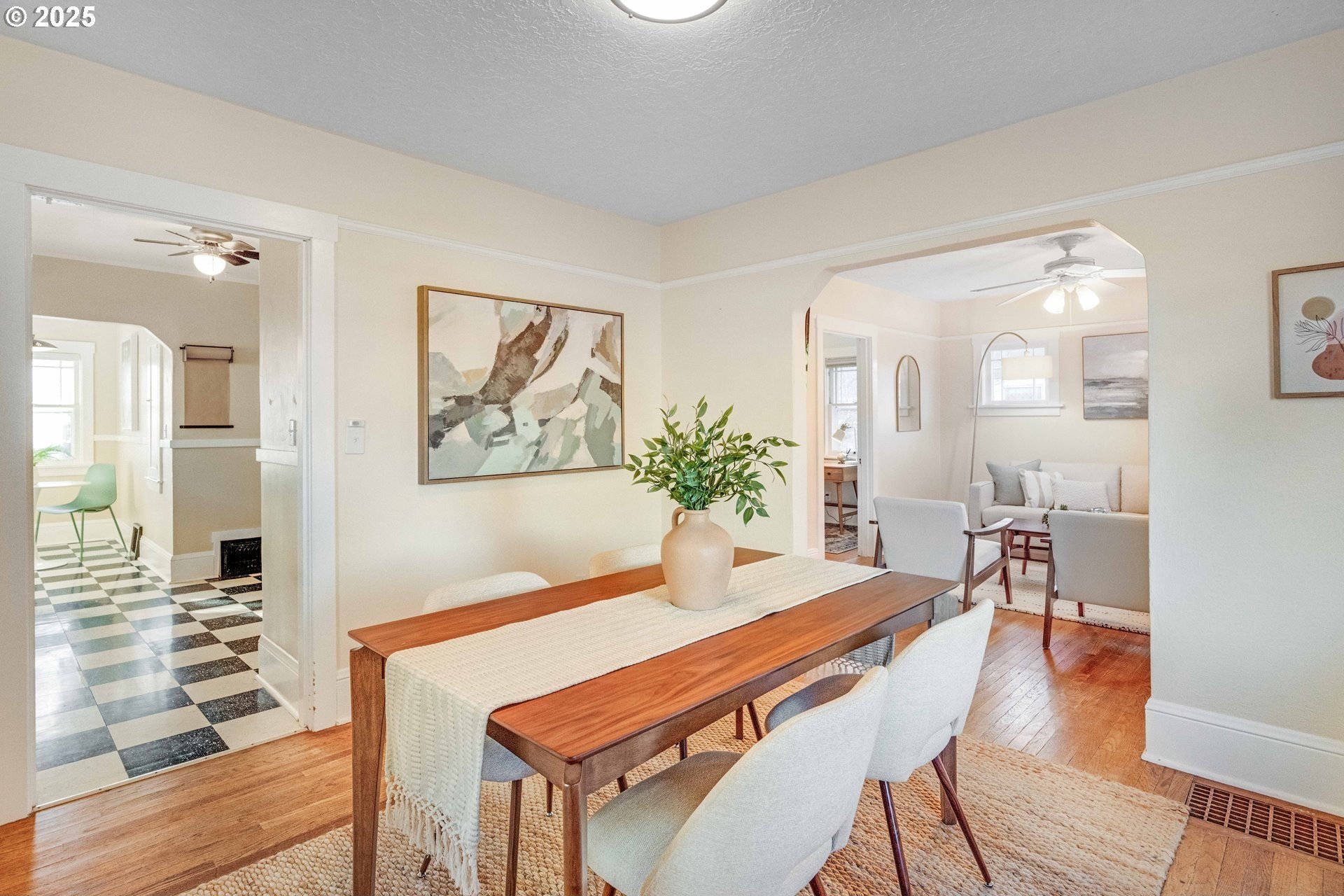 This beautifully maintained Roseway home is filled with vintage charm and modern updates throughout, offering flexibility and comfort in a classic setting. Fresh exterior paint and newly refreshed landscaping with sod, barkdust, and plantings enhance its curb appeal. Inside, hardwood floors, built-ins, and a clawfoot tub highlight timeless craftsmanship. Major updates include a roof, gutters, and furnace (2015), an earthquake retrofit (2016), and energy-efficient vinyl windows. Stainless steel appliances, a two-car garage, fenced yard, and ample off-street parking add everyday convenience. Currently used as a two bedroom/large primary suite with double closets or convert back to a three bedroom. Large basement with tall ceilings and possibility to finish and create more living space. Just blocks to Glenhaven Park and Rose City Golf Club. With its covered front porch and move-in-ready condition, this Roseway gem perfectly blends character and care. [Home Energy Score = 7. HES Report at https://rpt.greenbuildingregistry.com/hes/OR10183212]
