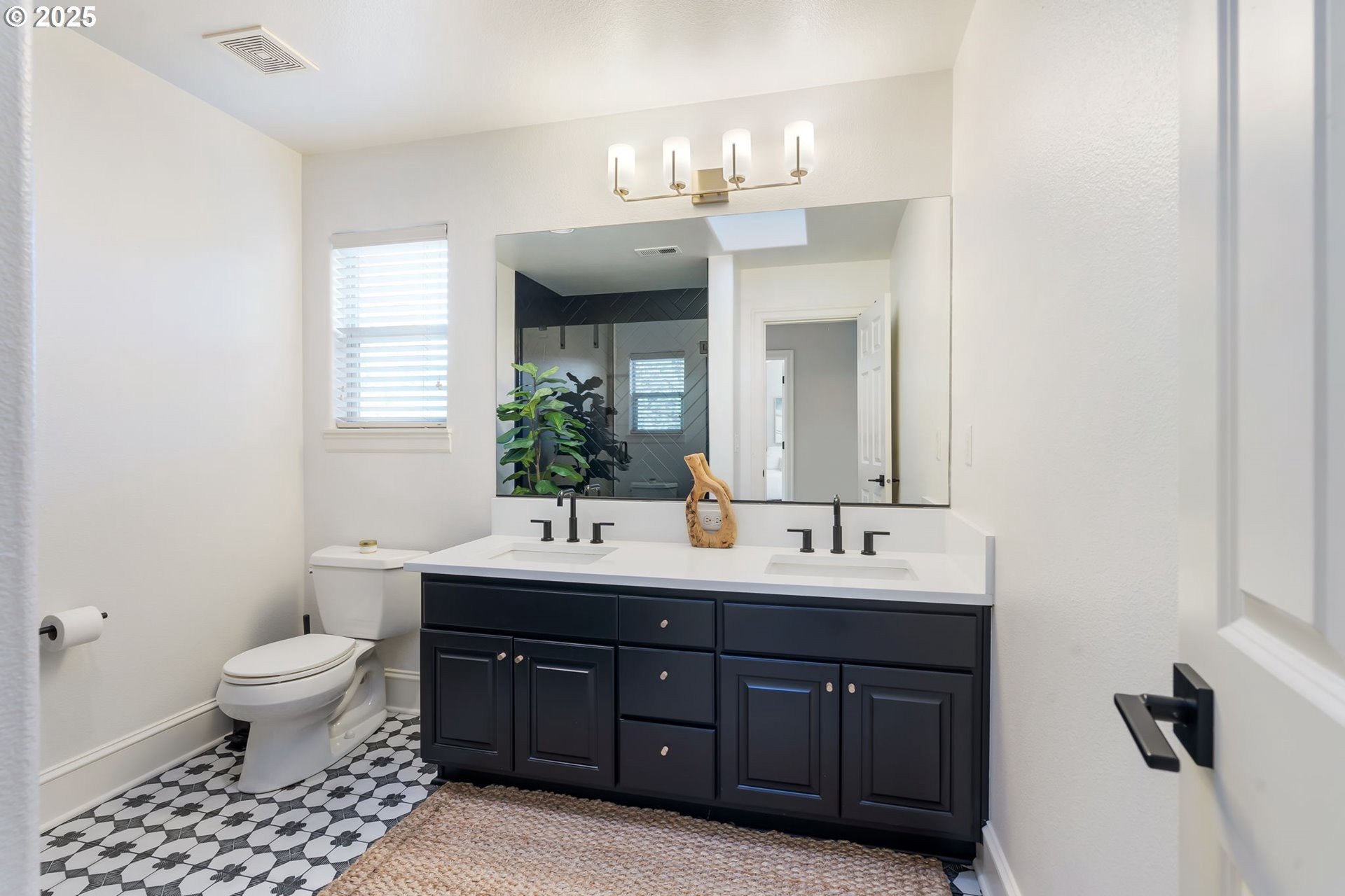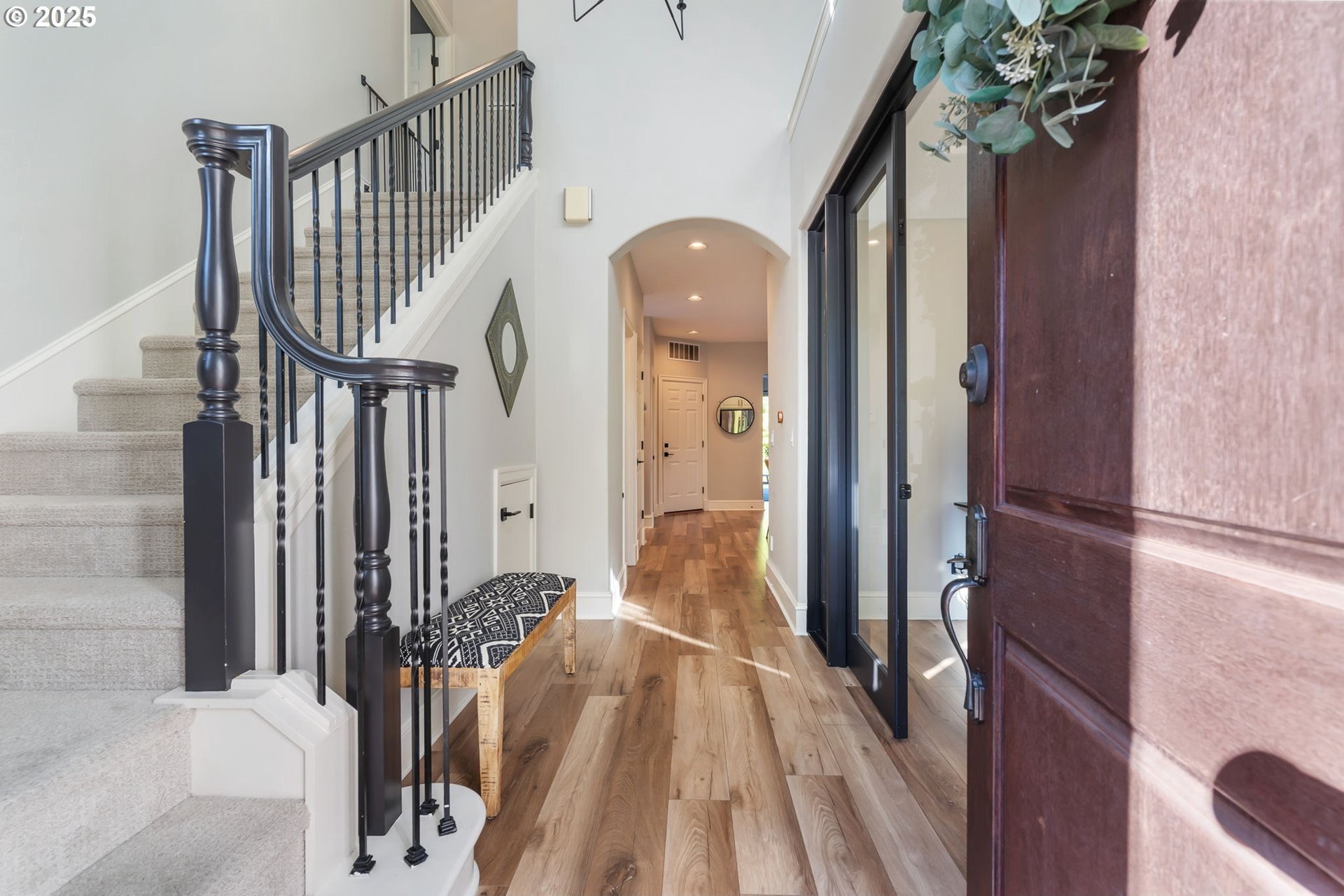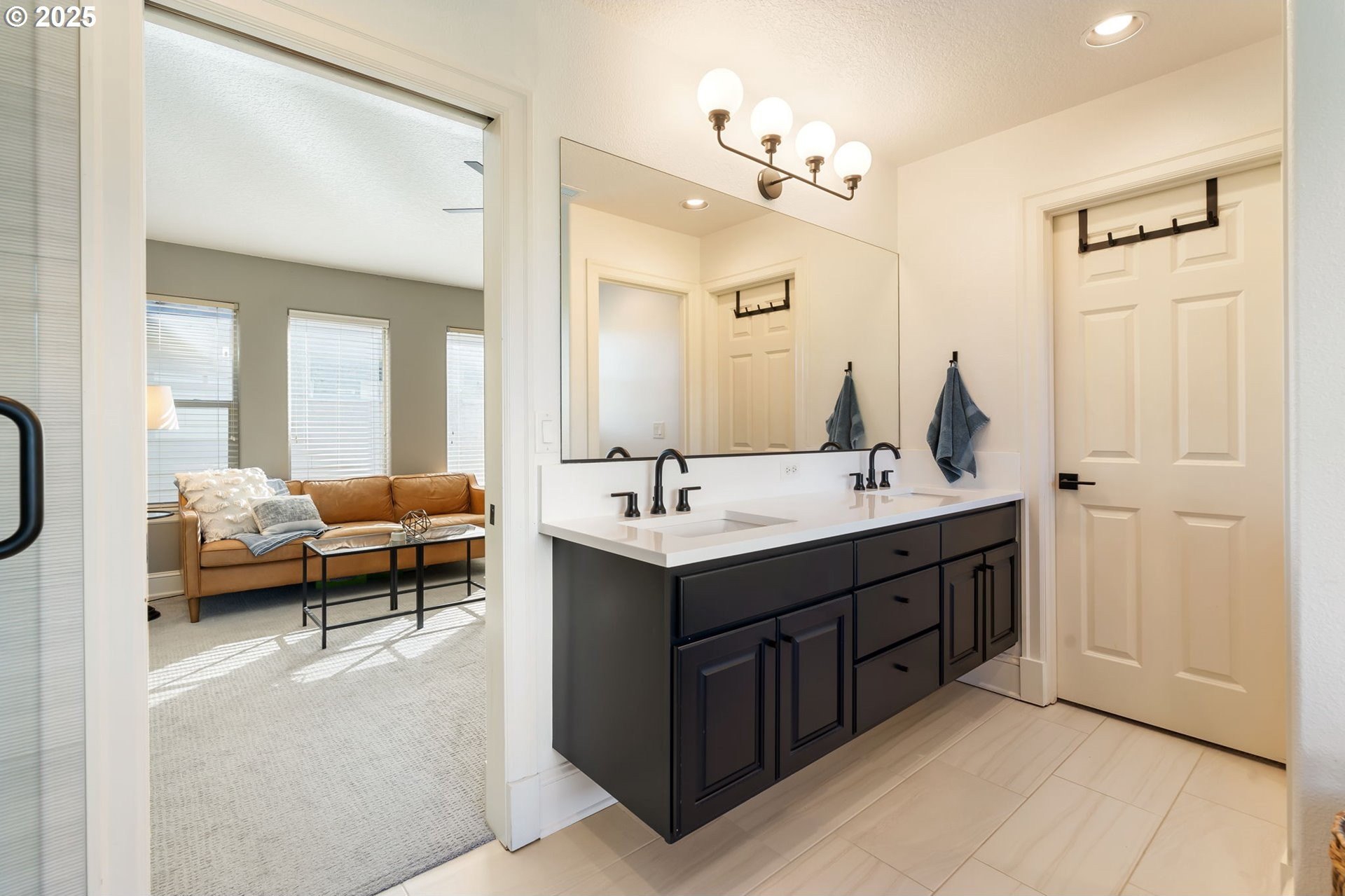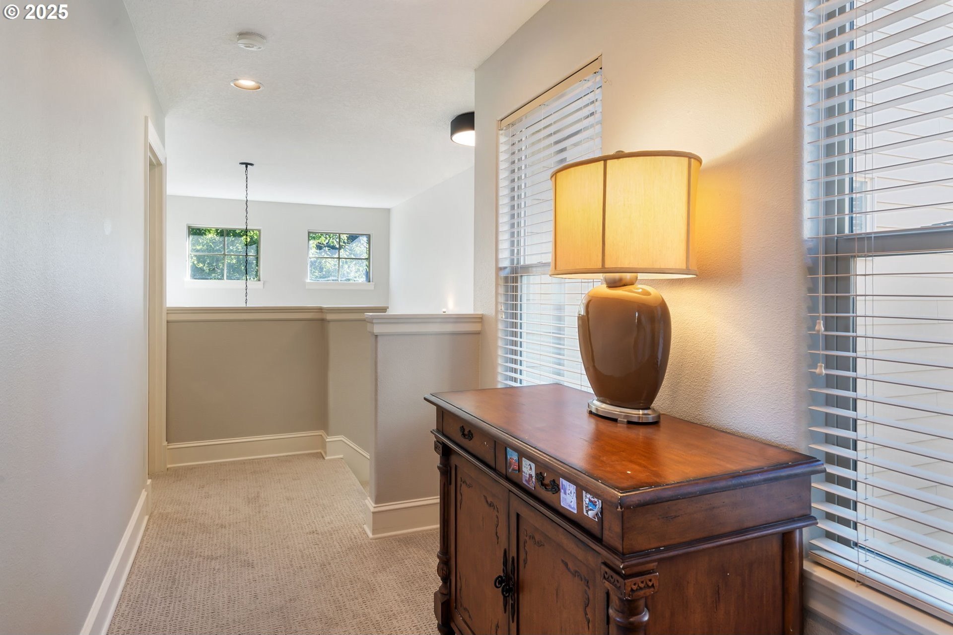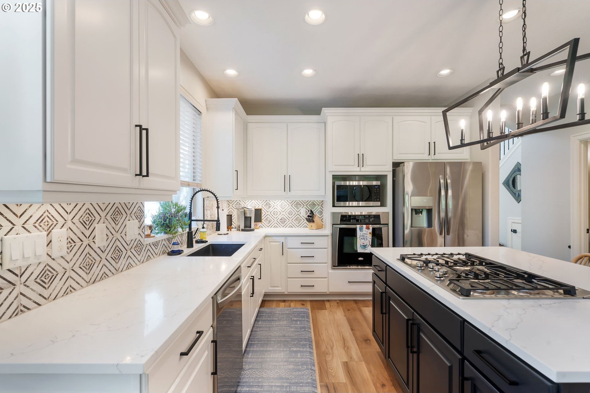 Tucked away on a peaceful cul-de-sac in the coveted Edgewater community, this beautifully remodeled home offers ample parking and backs to a park and the Tualatin River, providing rare privacy and serene natural views. Featuring 4 bedrooms, 2.5 baths, a bonus room, and a main-level office, it’s designed for both comfort and versatility. The open kitchen shines with white cabinetry, slab-quartz countertops, stainless steel appliances, and an expansive island perfect for entertaining. A cozy living room with a gas fireplace flows effortlessly to the private backyard oasis, where mature landscaping & patio create the ideal outdoor retreat. Upstairs, the spacious primary suite offers a peaceful escape with vaulted ceilings and a spa-like bathroom, complemented by well-appointed secondary bedrooms and a flexible bonus space. Enjoy the best of serenity and convenience in this prime Edgewater location, close to parks, trails, schools, and shopping. Added conveniences include extra 7.5’x11.5’ storage room off the garage, central vac, new HVAC & water heater.