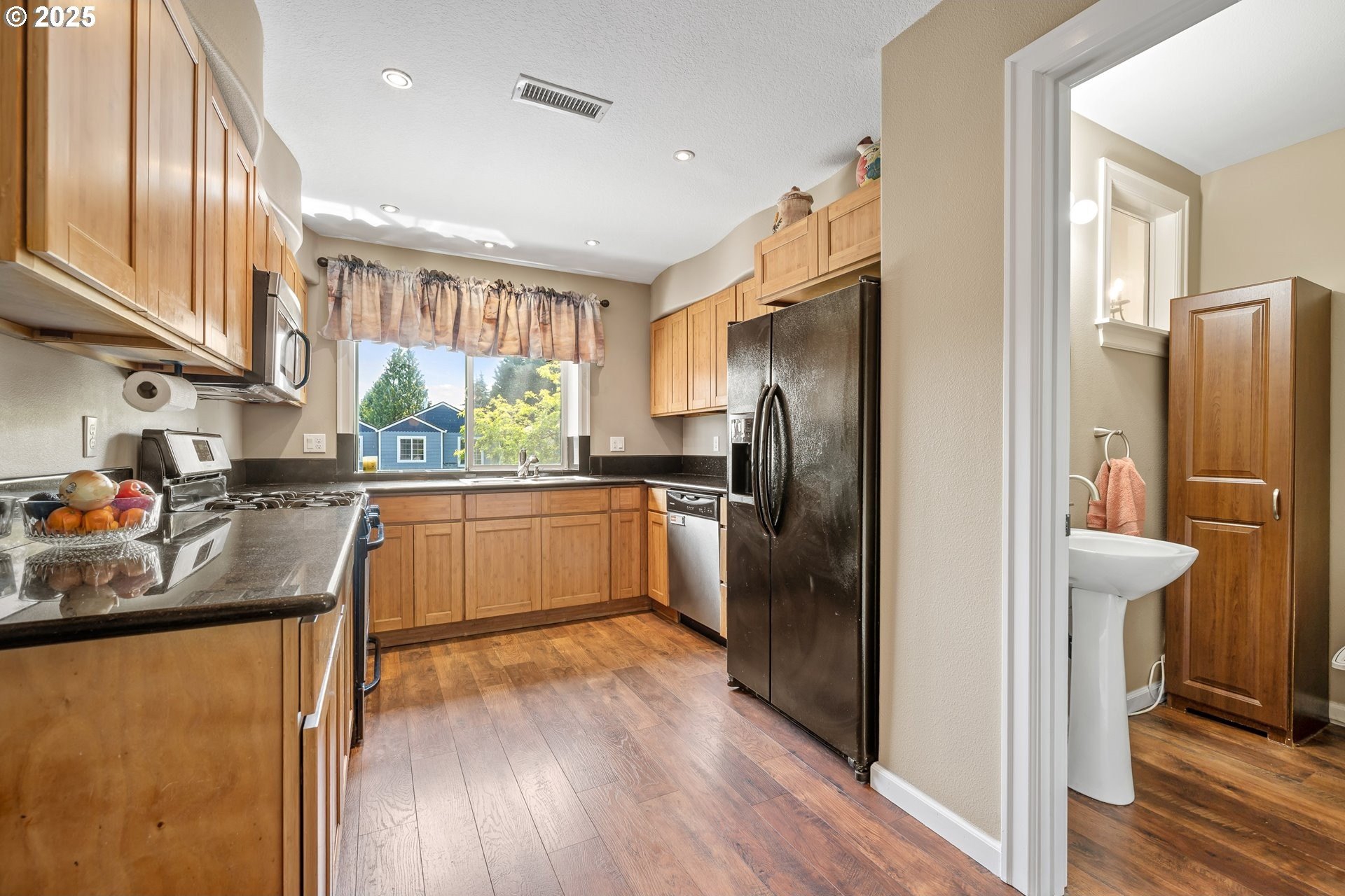 $419,900 | Rare townhome that lives like a house with a fully fenced yard, new roof (2024), attached garage, and meaningful buyer incentives: preferred-lender credit toward a rate buy down and six months paid HOA.Sellers are relocating for work—your opportunity to step into value on day one. Set in a quiet, established community in near Nike and Intel, this 3 bed, 2.5 bath home couples privacy with low-maintenance living. A 10/10 Energy Score, gas fireplace, warm wood floors, and a kitchen with granite counters, honey-toned cabinetry, and a window over the sink make daily life feel dialed. The main level’s open living/dining connects to a private Trex-style deck for easy indoor-outdoor flow. Upstairs: two spacious bedrooms, a full bath, and a versatile loft perfect for office/gym/creative space. Lower level: private suite ideal for guests or multi-gen living. HOA covers front landscaping, play area, guest parking, sprinkler service, and annual dryer-vent/backflow maintenance—so weekends are for you. Move-in ready, quick-close possible, and hard to beat for yard, updates, and monthly savings. Tour today.