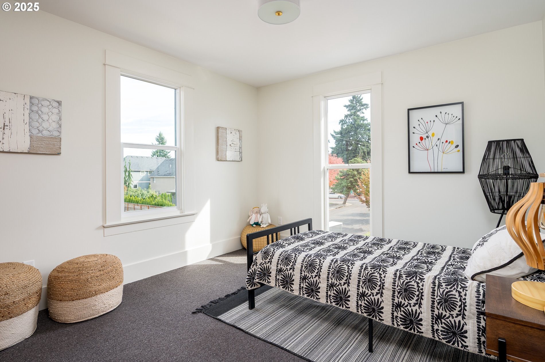 Fully remodeled down to the studs, this 3 bed, 2 bath corner-lot home blends classic Portland charm with modern updates and future potential. Renovations include a new roof, interior and exterior paint, wool carpet, refinished wood floors, tile finishes, clawfoot tub, new lighting and plumbing fixtures, newer vinyl windows, updated electrical, new trim, doors, drywall, full attic and wall insulation, and a stylish kitchen with new cabinets and quartz countertops. Energy-efficient systems include a mini-split for heating/cooling, tankless water heater, and zoned cadet heaters upstairs. Sitting on an R2.5-zoned corner lot with potential for an ADU or lot division, this home is just blocks from Woodlawn Park and the vibrant Dekum Triangle—featuring local favorites like Breakside Brewery, Firehouse Pizza, Campana, and P’s & Q’s Market. A move-in-ready gem in one of NE Portland’s most walkable and welcoming neighborhoods.