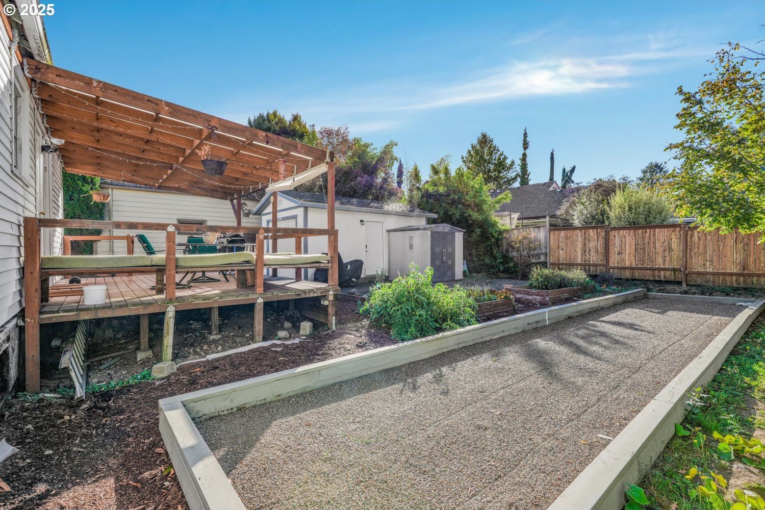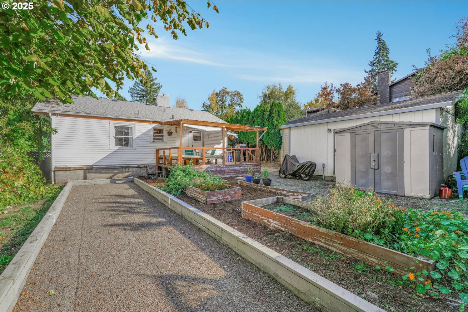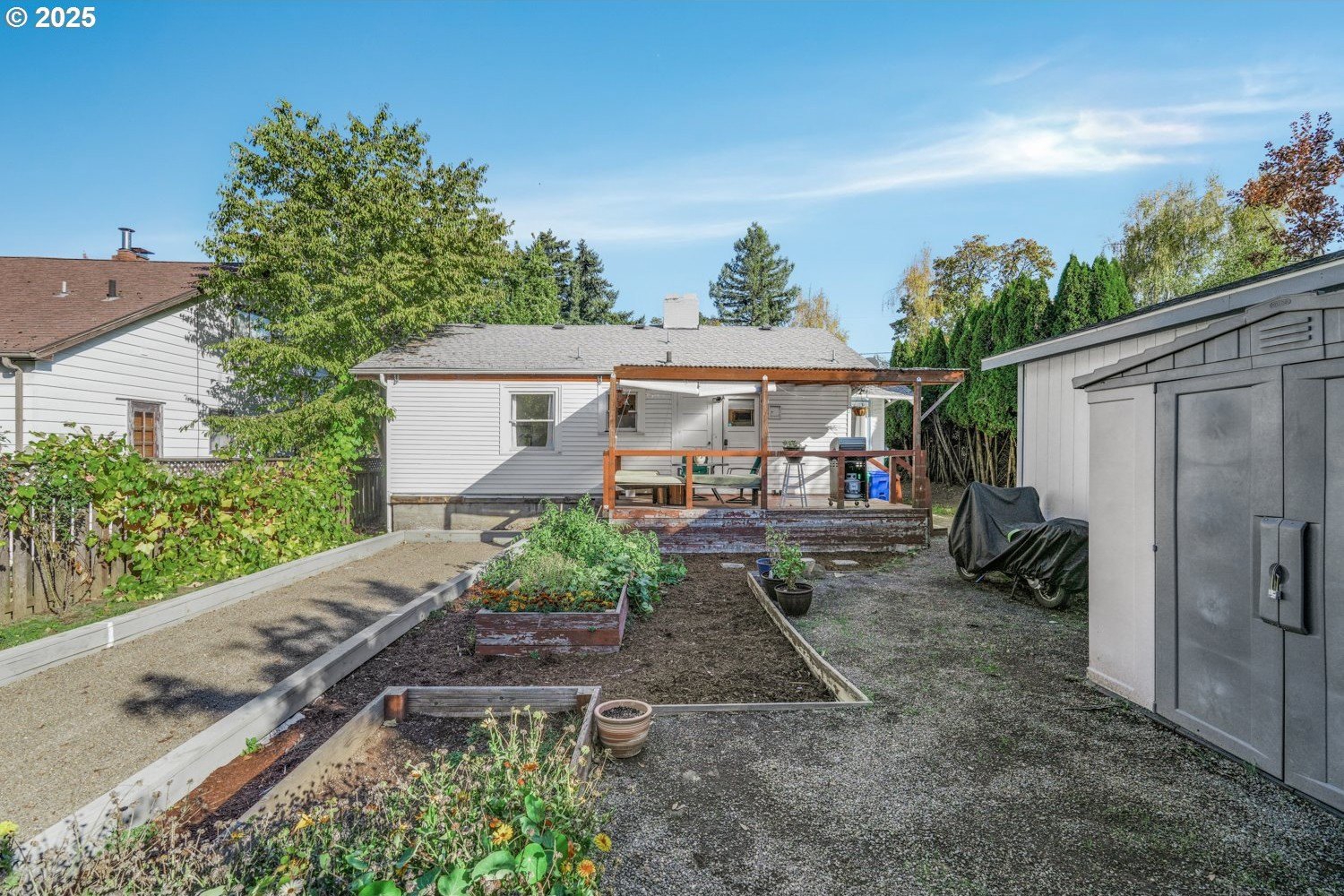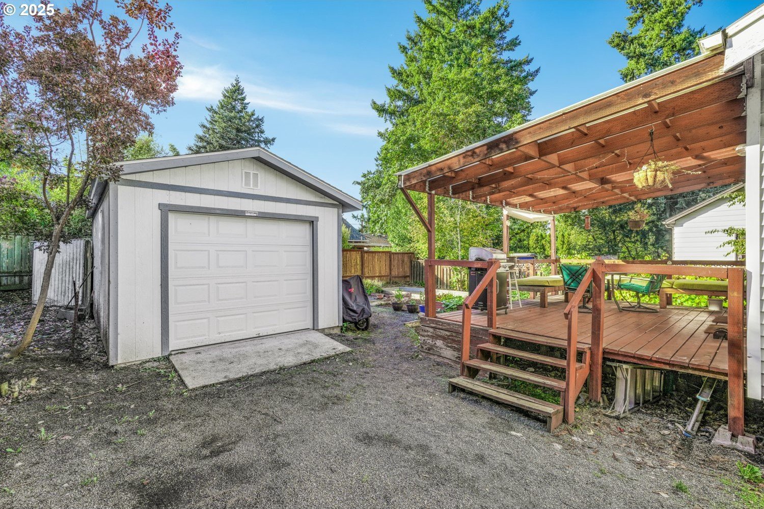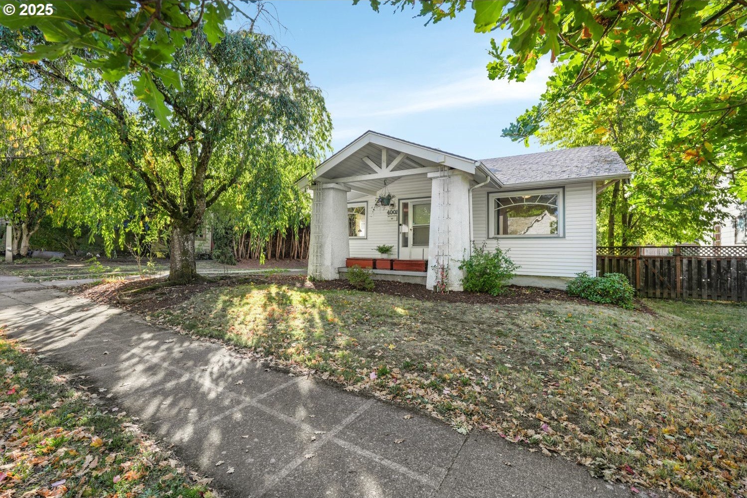 Charming 2-bedroom, 1-bath home filled with warmth and natural light. Gorgeous hardwood floors flow throughout. The bright living room features a cozy fireplace, and the adjacent dining area is surrounded by windows for a cheerful, light-filled space. The updated kitchen has butcher block countertops, a farmhouse sink, and access to a covered deck making it ideal forindoor/outdoor dining and entertaining. Both bedrooms are generously sized, and the updated bath adds a fresh, modern touch. The fantastic backyard is private and fenced, featuring a versatile multi-use court for multiple seating areas, large garden beds, and a handy tool shed. The 12x19 detached garage has added electricity, making it a perfect workshop or creative space. The unfinished basement includes a workbench, lots of storage, and potential for turning it into a bonus room, home office, or gym. Additional updates include new water pipes. Conveniently located just minutes from dining, shopping, neighborhood parks, and Providence Medical Center, this home blends classic charm with modern comfort.