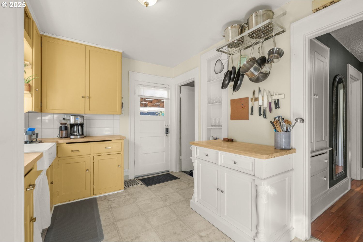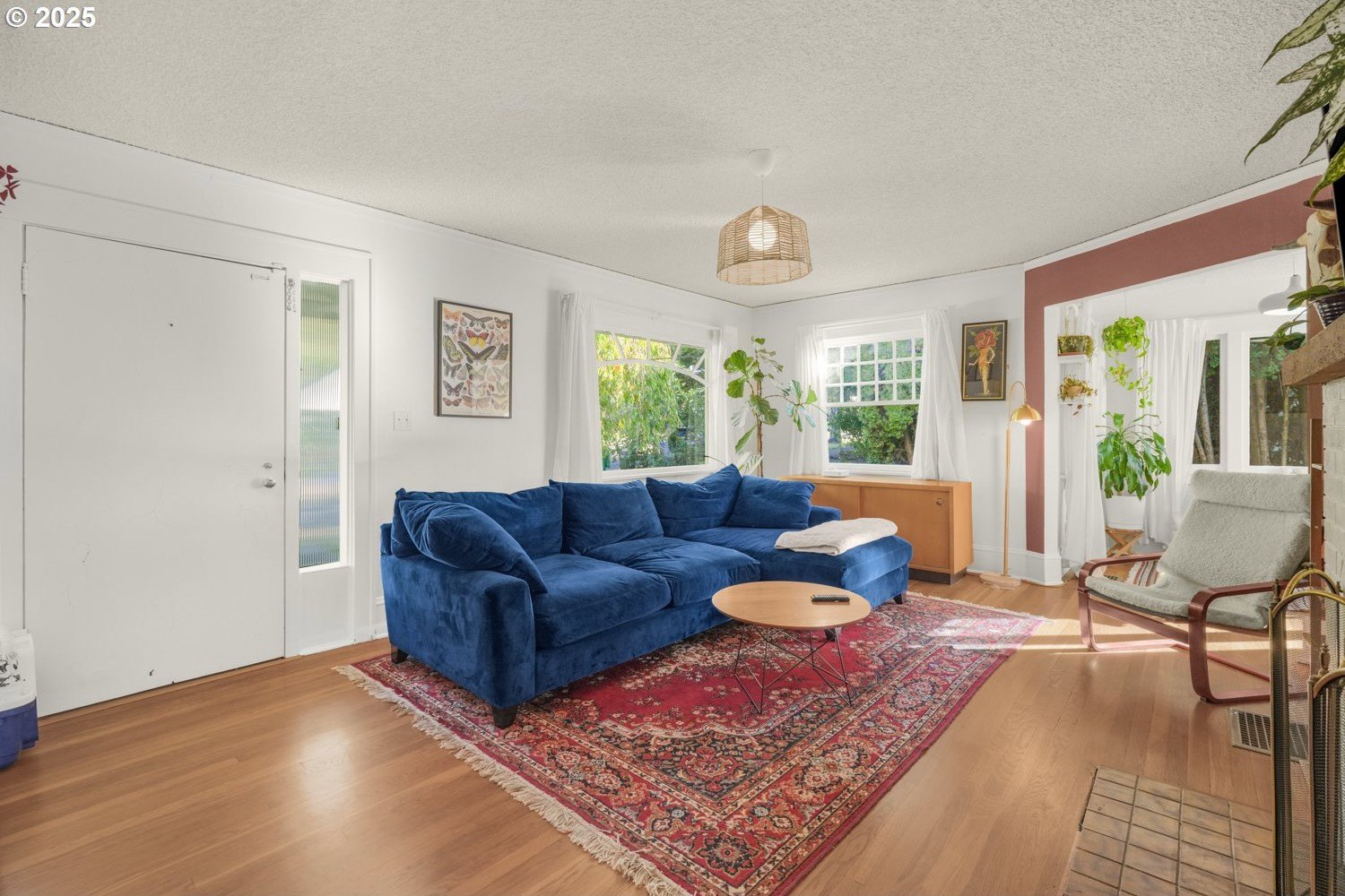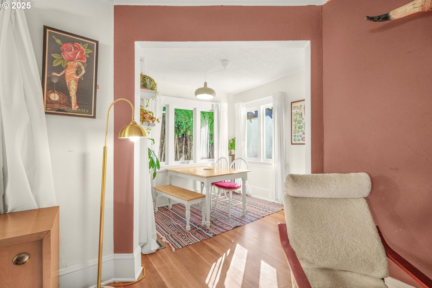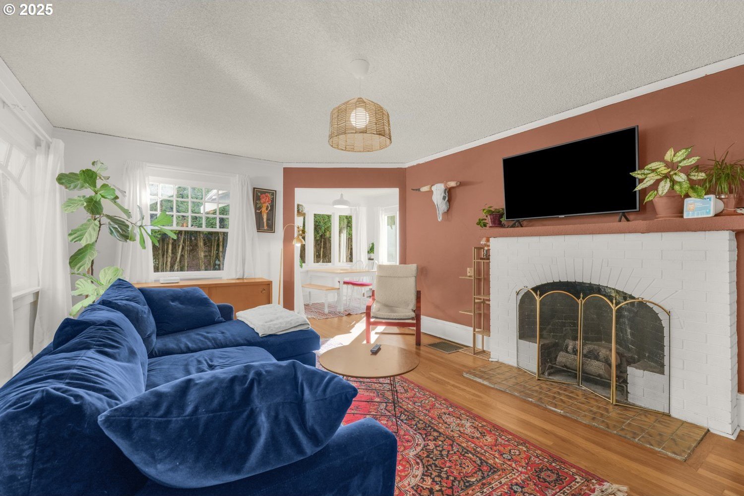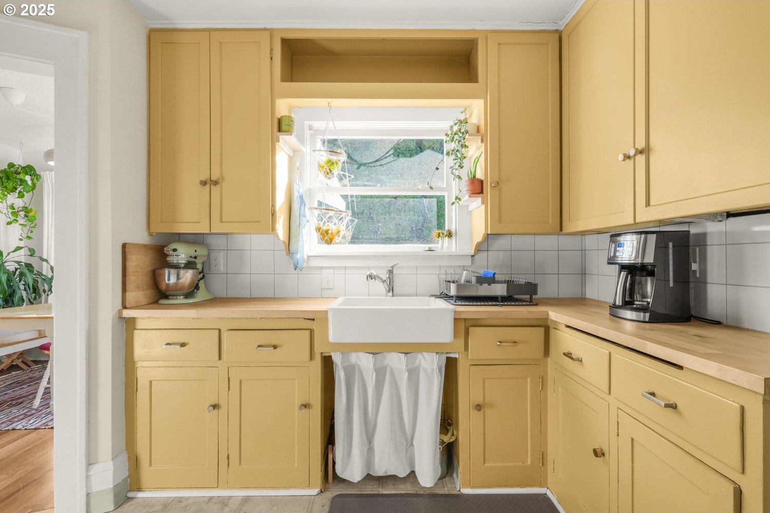 Charming 2-bedroom, 1-bath home filled with warmth and natural light. Gorgeous hardwood floors flow throughout. The bright living room features a cozy fireplace, and the adjacent dining area is surrounded by windows for a cheerful, light-filled space. The updated kitchen has butcher block countertops, a farmhouse sink, and access to a covered deck making it ideal forindoor/outdoor dining and entertaining. Both bedrooms are generously sized, and the updated bath adds a fresh, modern touch. The fantastic backyard is private and fenced, featuring a versatile multi-use court for multiple seating areas, large garden beds, and a handy tool shed. The 12x19 detached garage has added electricity, making it a perfect workshop or creative space. The unfinished basement includes a workbench, lots of storage, and potential for turning it into a bonus room, home office, or gym. Additional updates include new water pipes. Conveniently located just minutes from dining, shopping, neighborhood parks, and Providence Medical Center, this home blends classic charm with modern comfort.