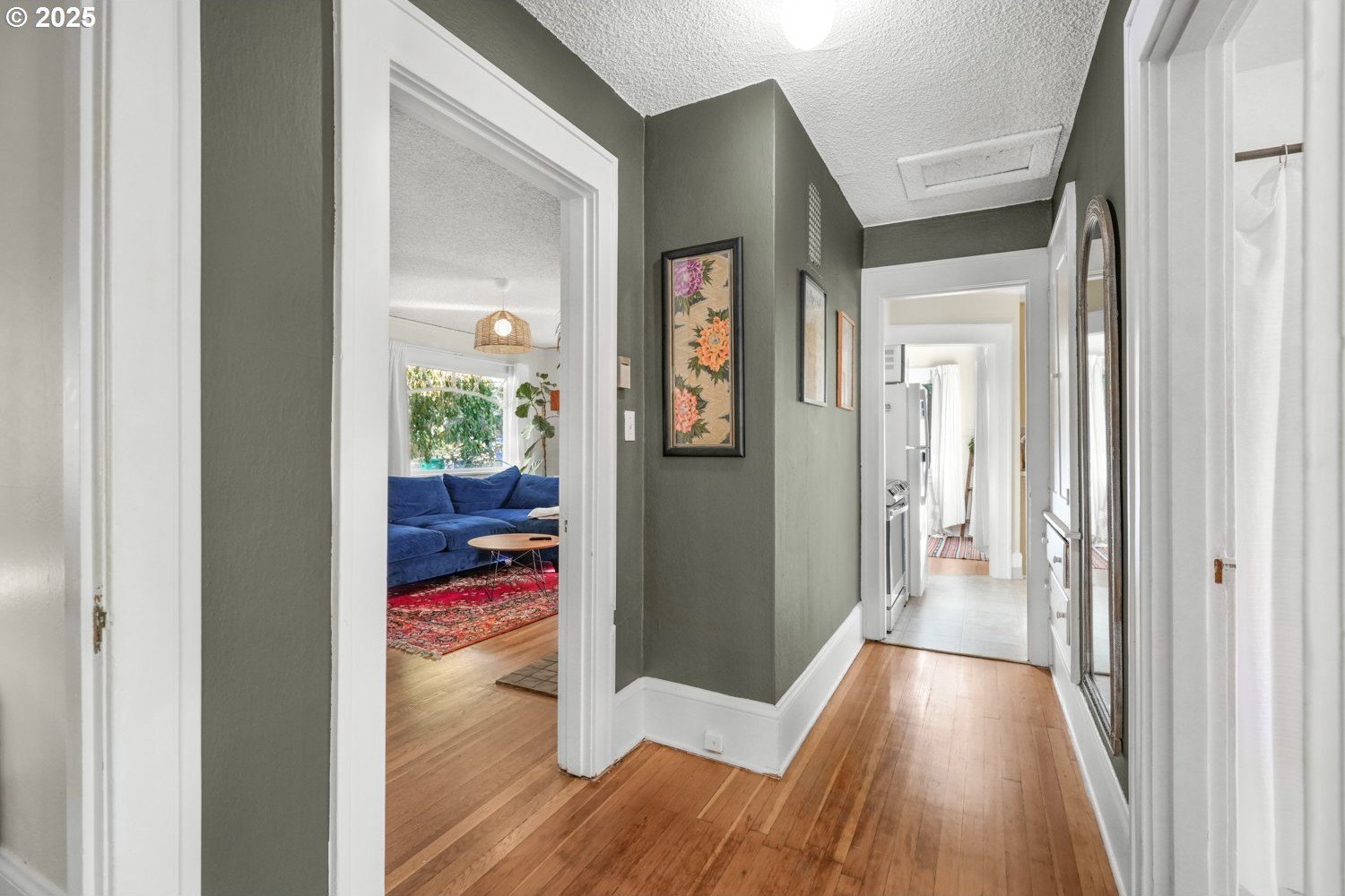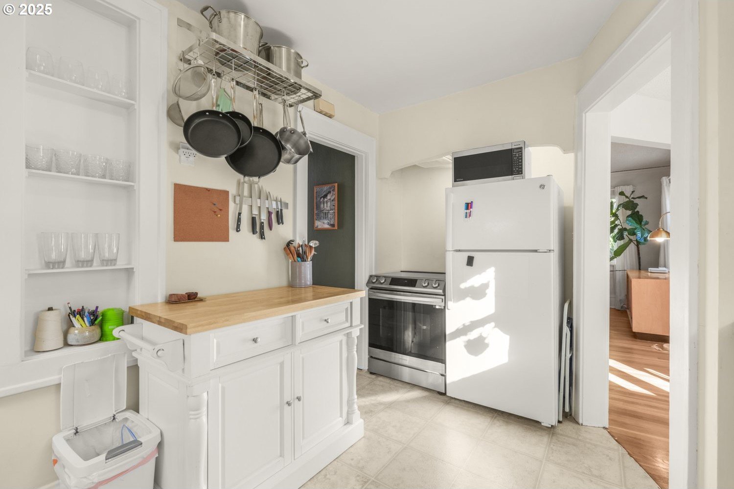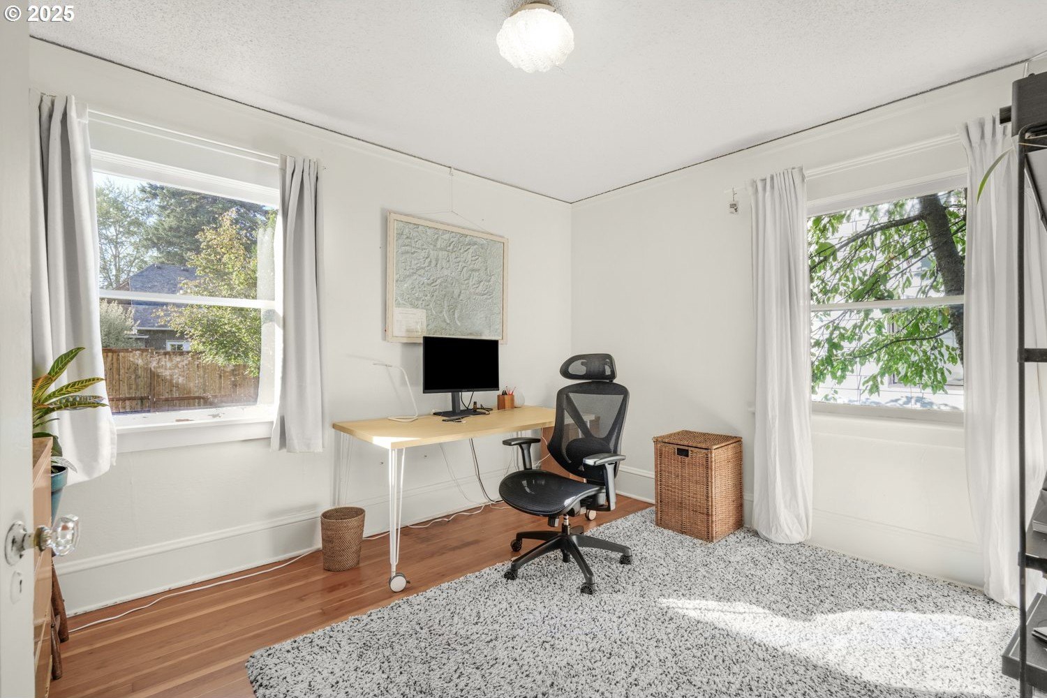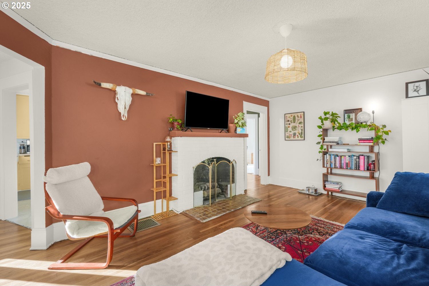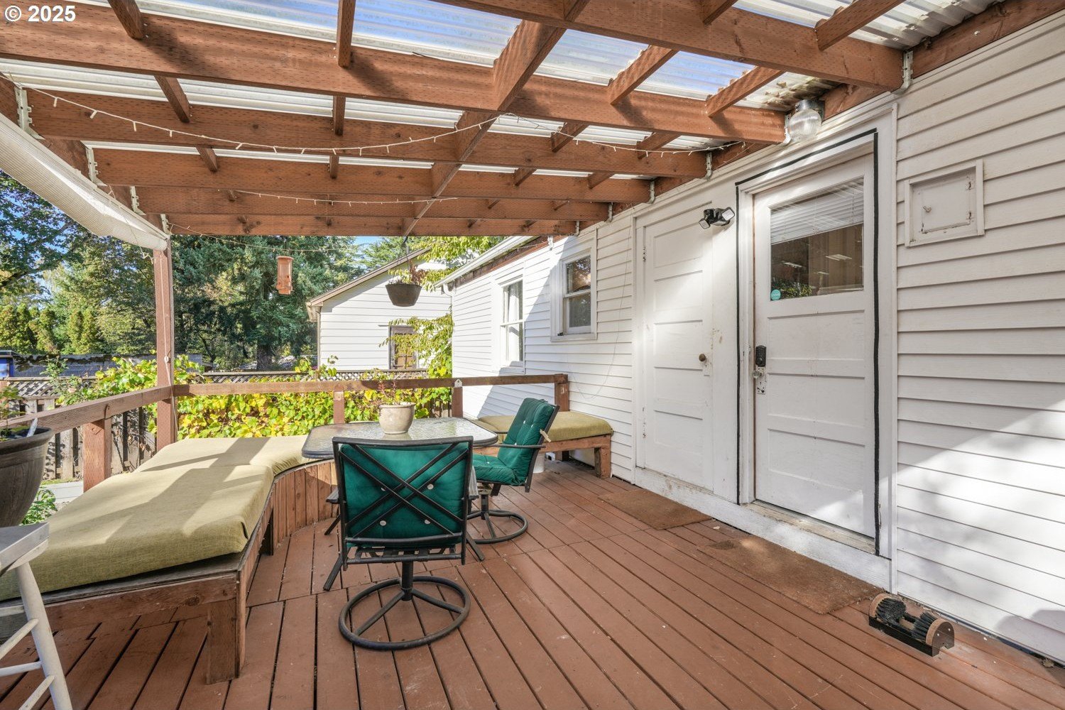 Charming 2-bedroom, 1-bath home filled with warmth and natural light. Gorgeous hardwood floors flow throughout. The bright living room features a cozy fireplace, and the adjacent dining area is surrounded by windows for a cheerful, light-filled space. The updated kitchen has butcher block countertops, a farmhouse sink, and access to a covered deck making it ideal forindoor/outdoor dining and entertaining. Both bedrooms are generously sized, and the updated bath adds a fresh, modern touch. The fantastic backyard is private and fenced, featuring a versatile multi-use court for multiple seating areas, large garden beds, and a handy tool shed. The 12x19 detached garage has added electricity, making it a perfect workshop or creative space. The unfinished basement includes a workbench, lots of storage, and potential for turning it into a bonus room, home office, or gym. Additional updates include new water pipes. Conveniently located just minutes from dining, shopping, neighborhood parks, and Providence Medical Center, this home blends classic charm with modern comfort.