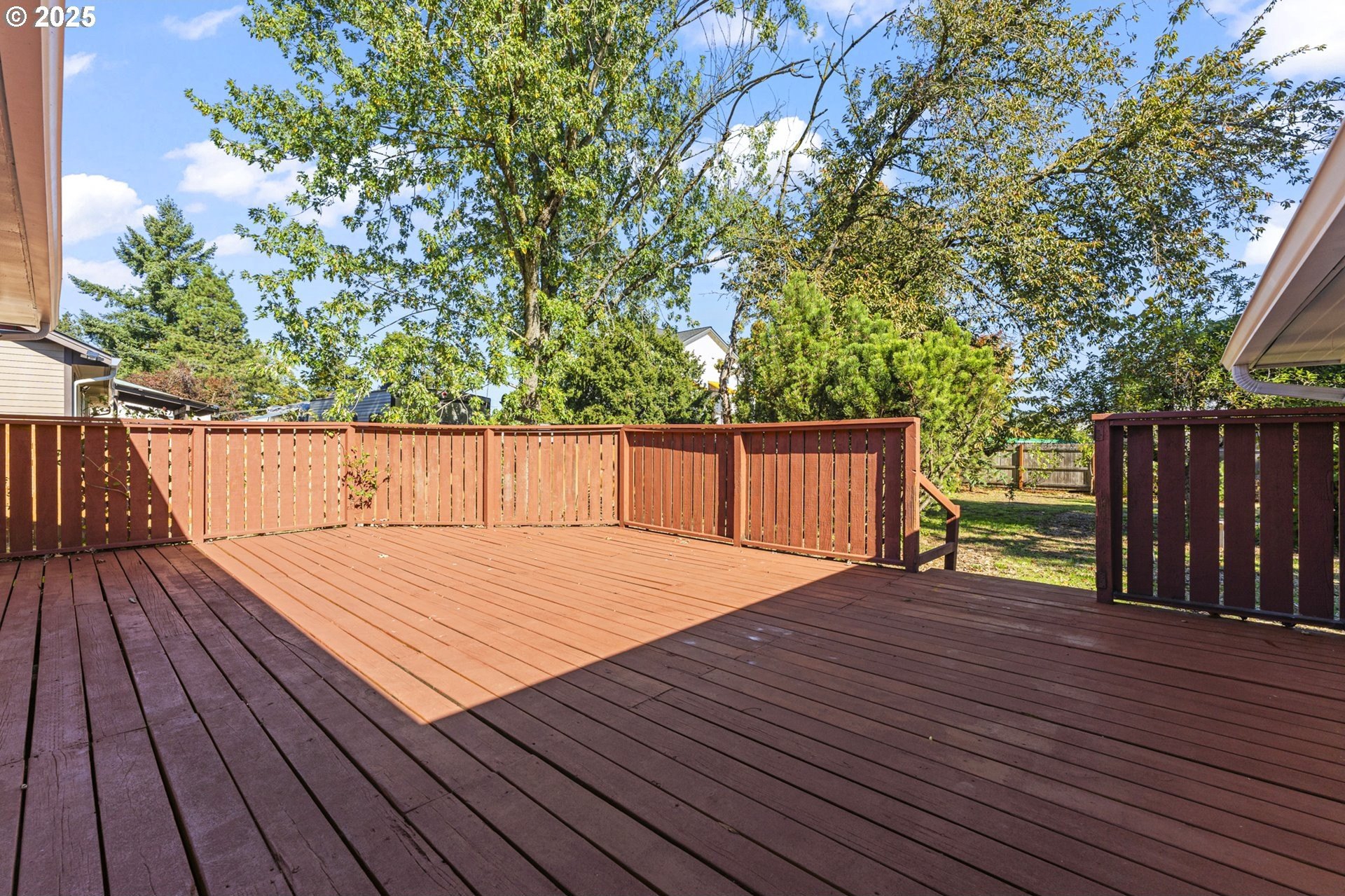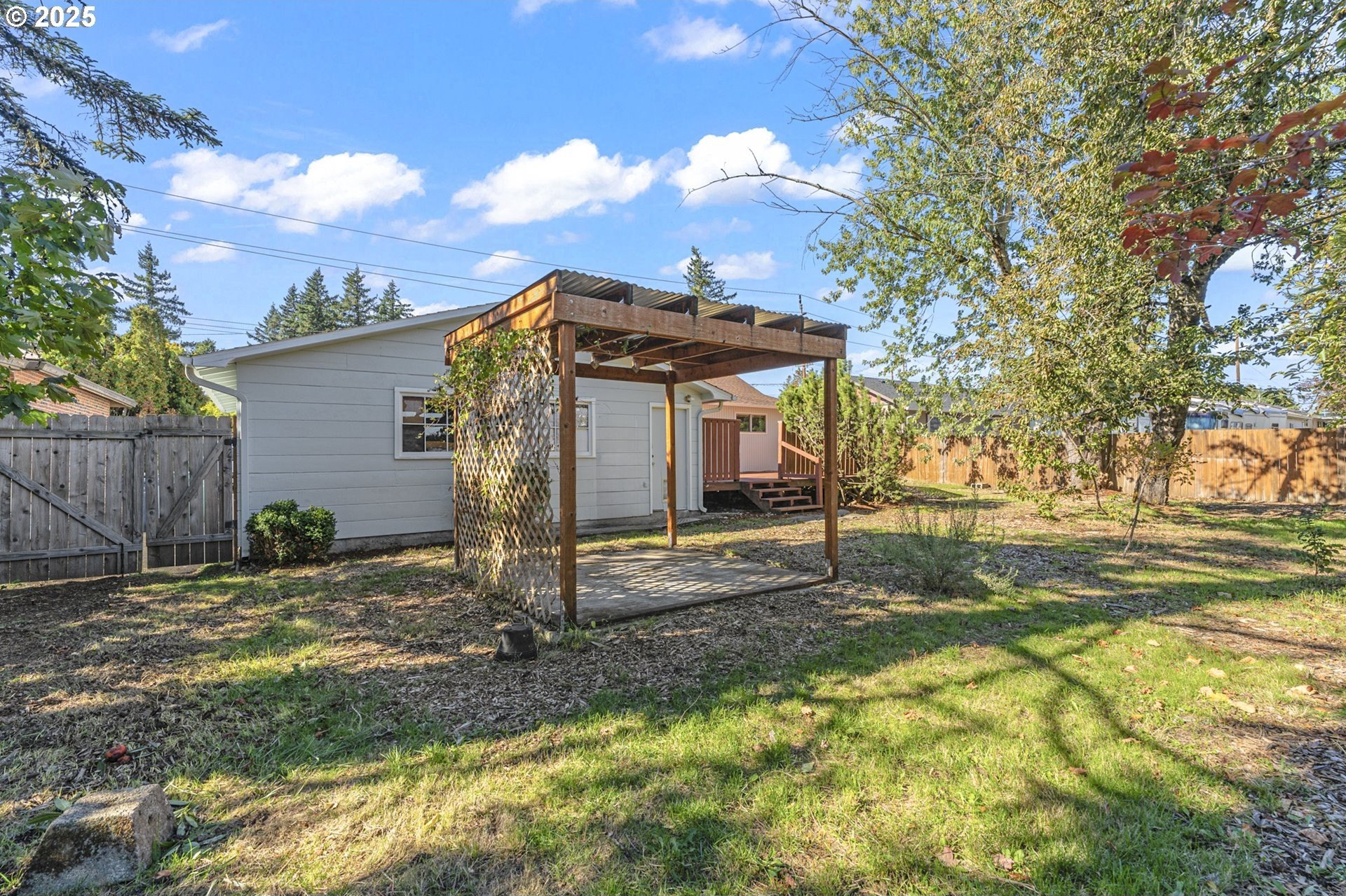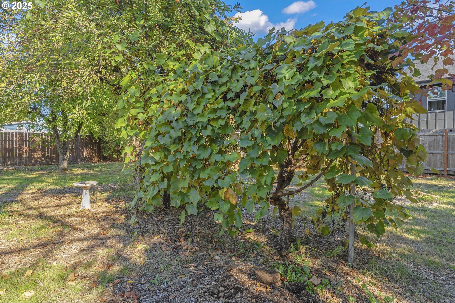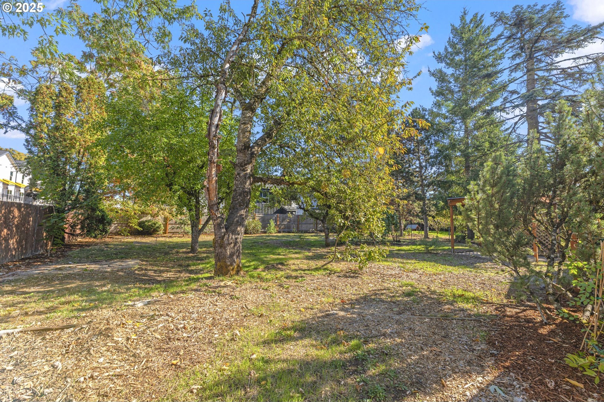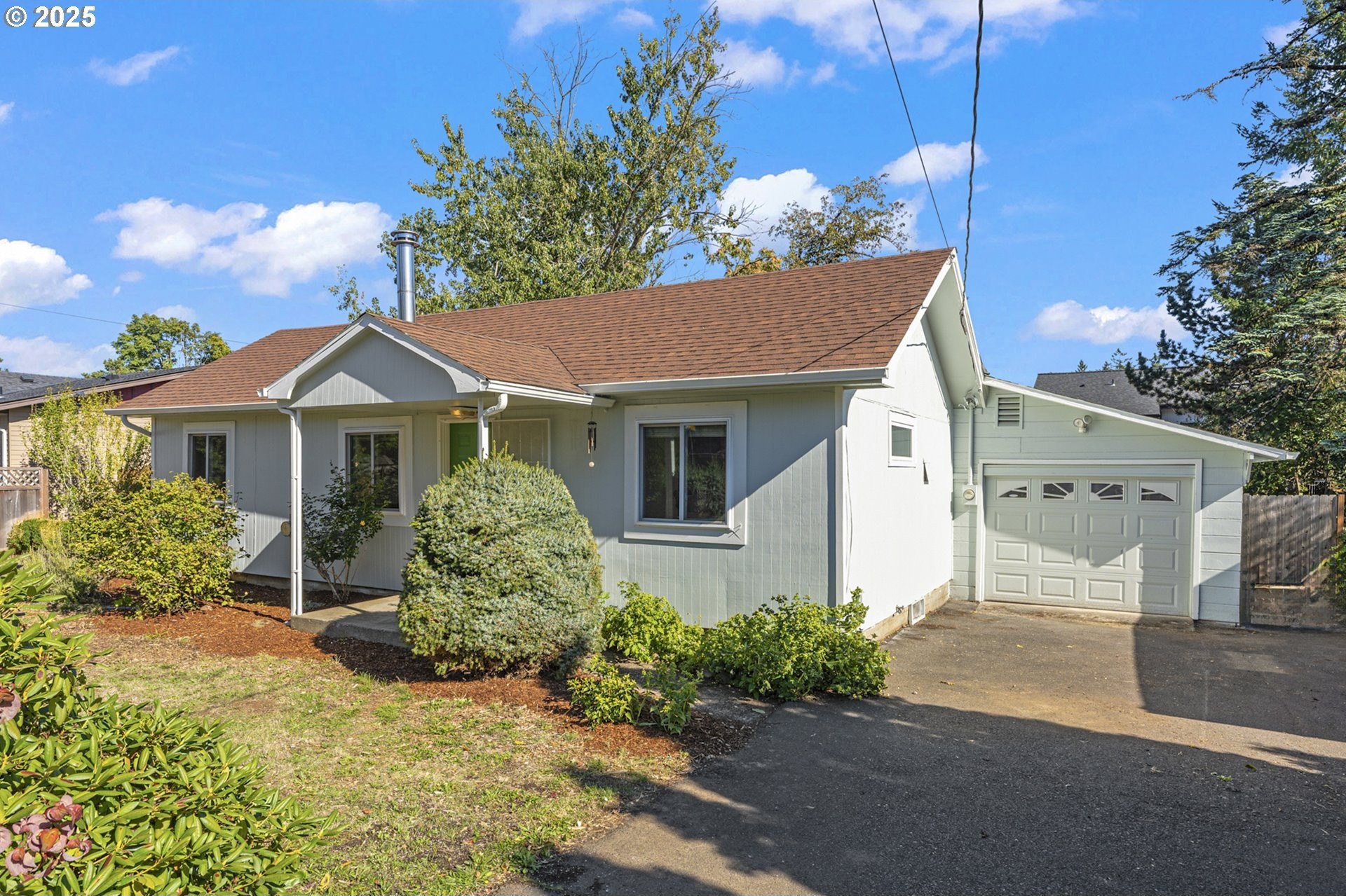 Step into this welcoming single-level home where comfort and functionality come together with ease! The spacious open-concept living area invites you in with its natural light and cozy gas fireplace. Freshly painted inside and out, this home features two comfortable bedrooms and one bath. The kitchen, with period details, flows seamlessly into the living and dining spaces, while patio doors open to a large deck overlooking the expansive backyard—a gardener’s dream—complete with fruit trees, blueberry bushes, and grapevines ready for harvest. The oversized garage provides ample space for storage, a workshop, or the potential to create a future studio. This home is the perfect blend of simplicity, charm and opportunity! [Home Energy Score = 6. HES Report at https://rpt.greenbuildingregistry.com/hes/OR10127124]