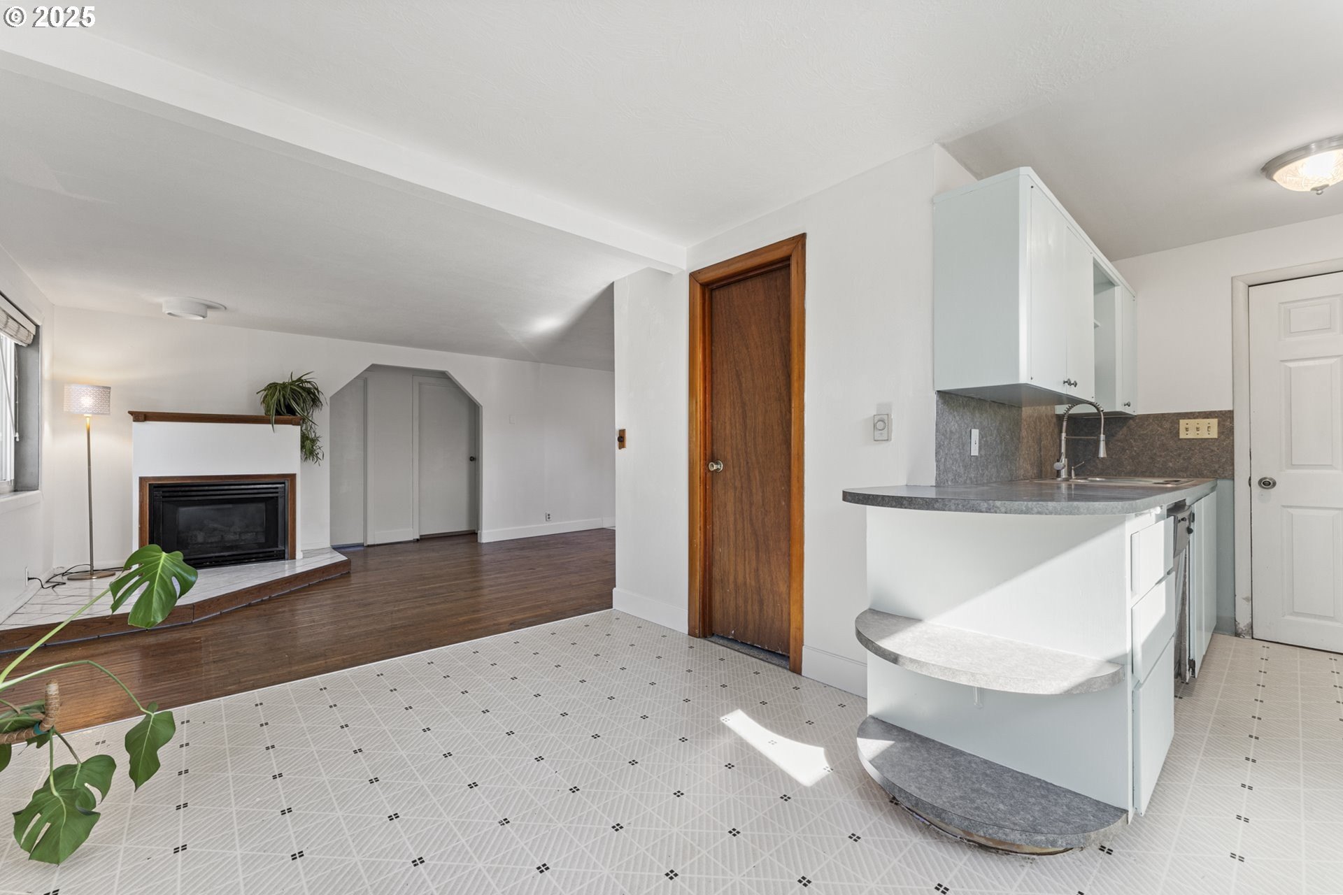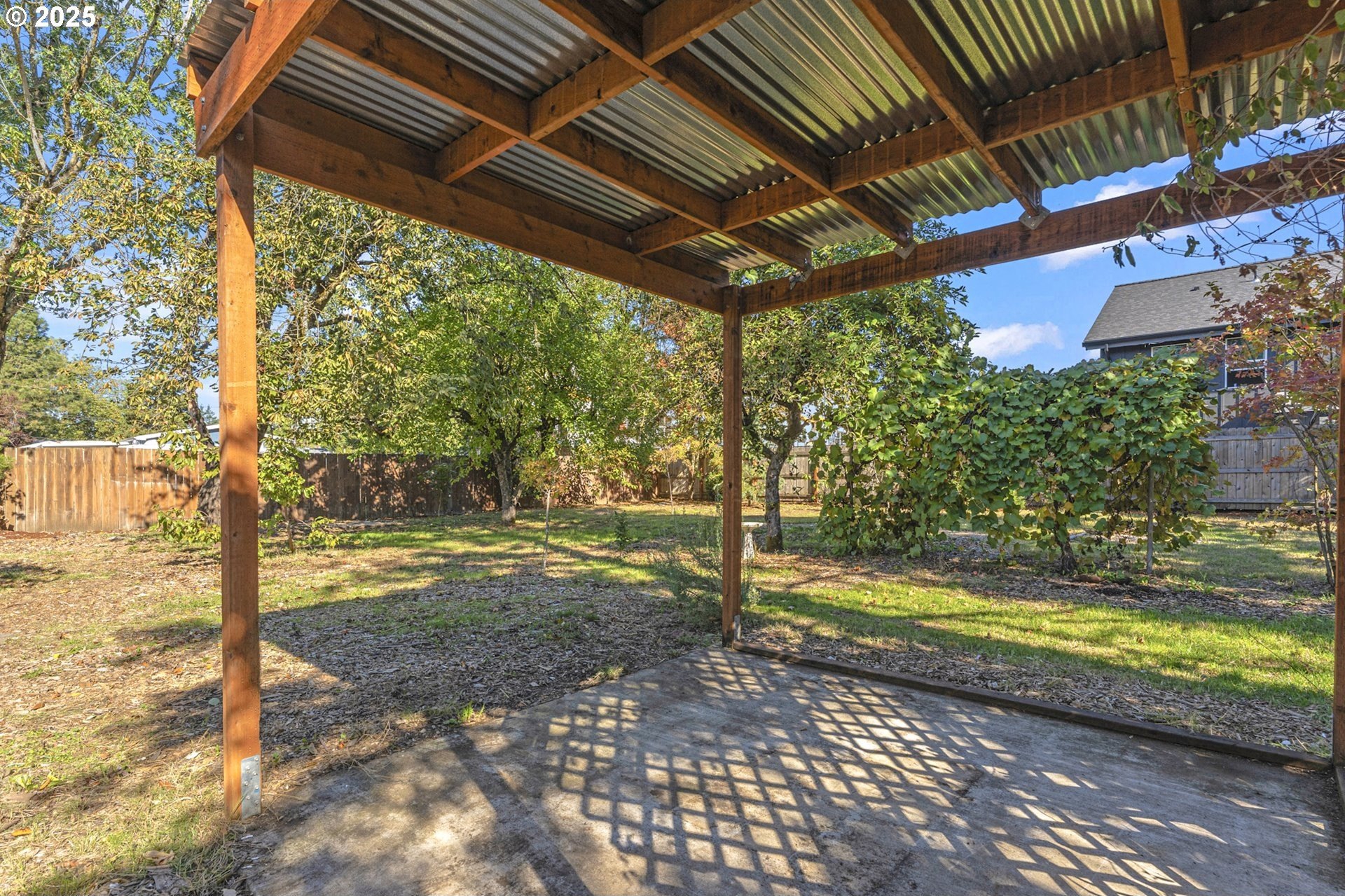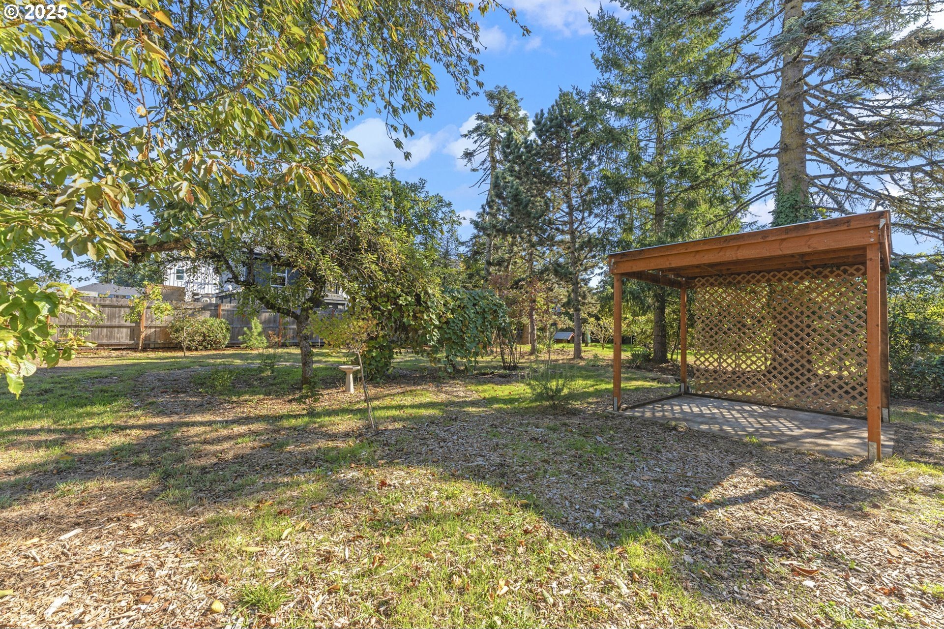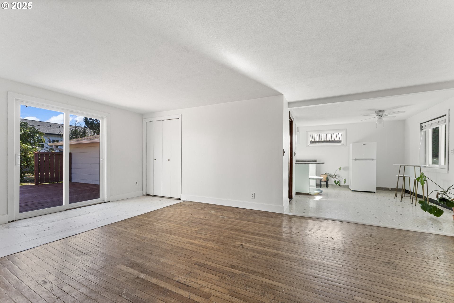 Step into this welcoming single-level home where comfort and functionality come together with ease! The spacious open-concept living area invites you in with its natural light and cozy gas fireplace. Freshly painted inside and out, this home features two comfortable bedrooms and one bath. The kitchen, with period details, flows seamlessly into the living and dining spaces, while patio doors open to a large deck overlooking the expansive backyard—a gardener’s dream—complete with fruit trees, blueberry bushes, and grapevines ready for harvest. The oversized garage provides ample space for storage, a workshop, or the potential to create a future studio. This home is the perfect blend of simplicity, charm and opportunity! [Home Energy Score = 6. HES Report at https://rpt.greenbuildingregistry.com/hes/OR10127124]