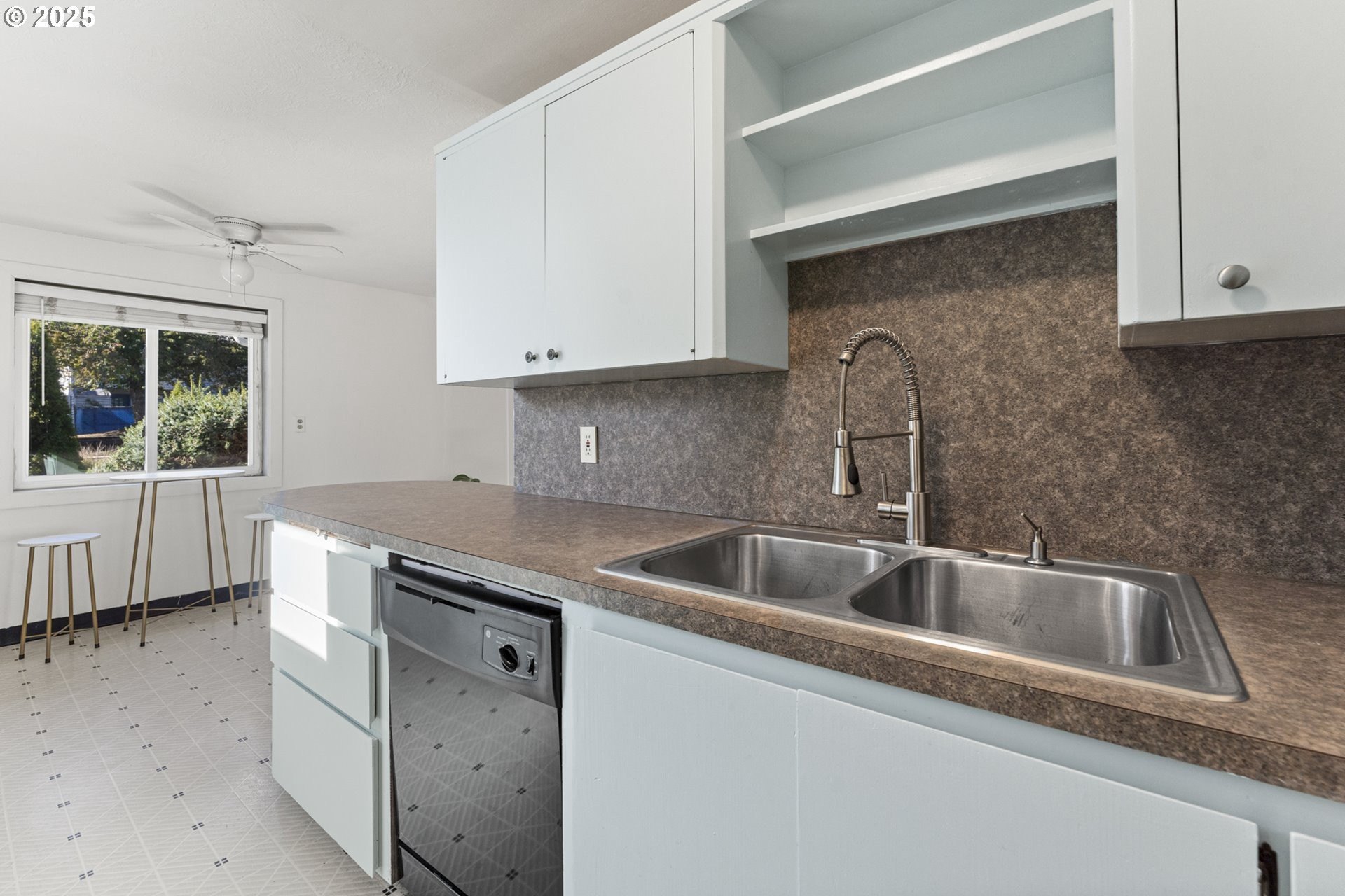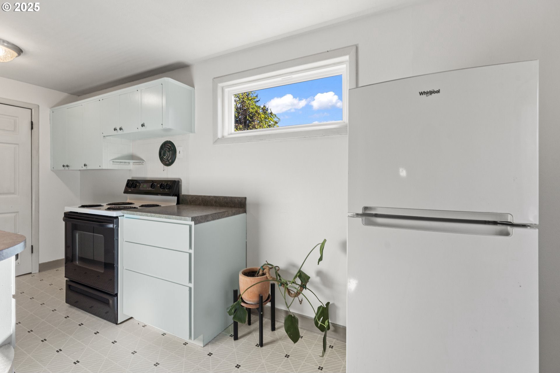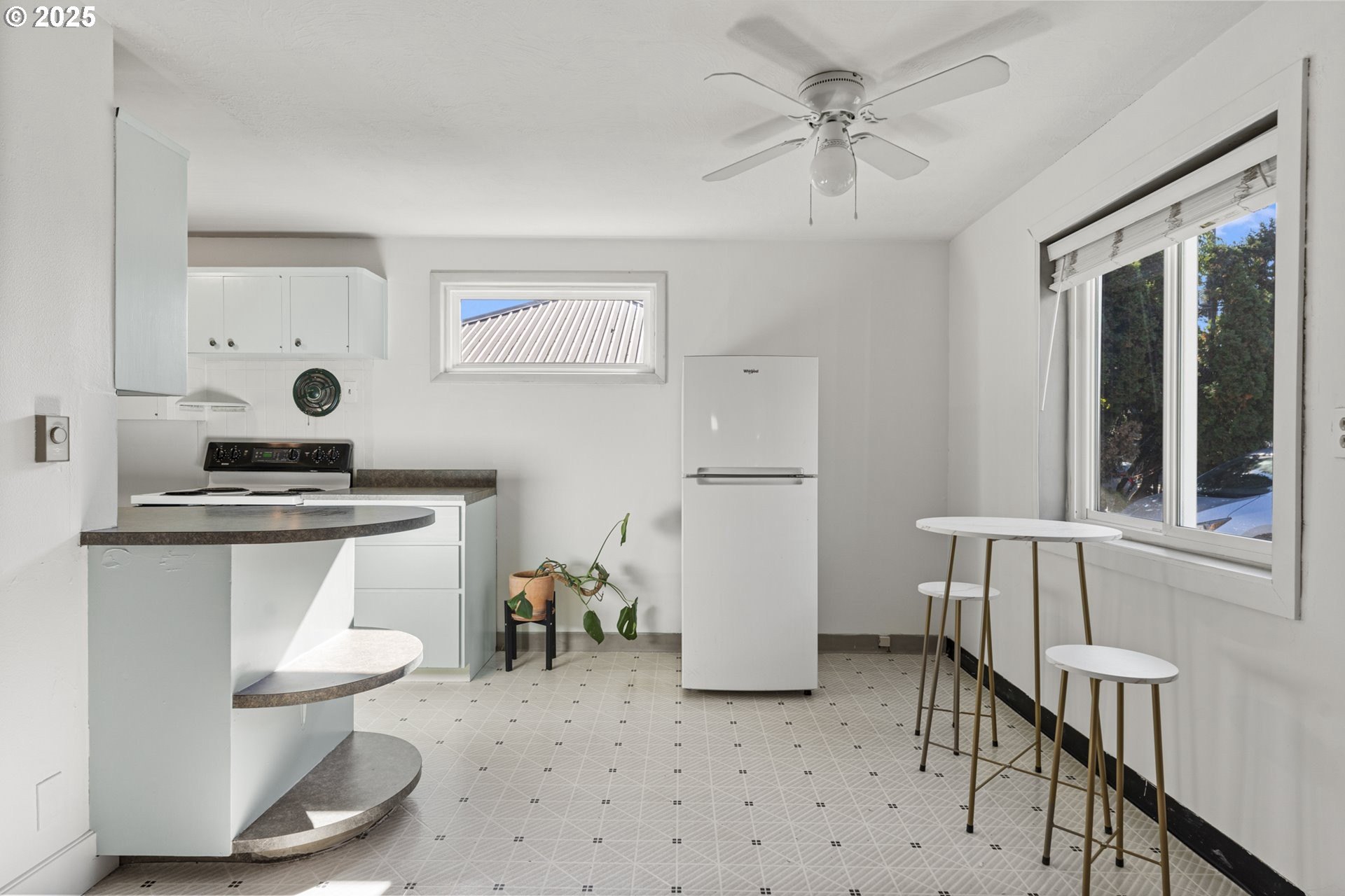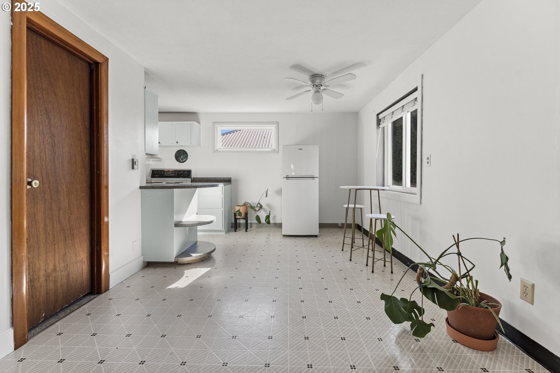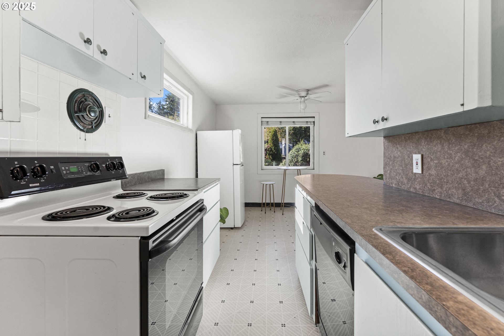 Step into this welcoming single-level home where comfort and functionality come together with ease! The spacious open-concept living area invites you in with its natural light and cozy gas fireplace. Freshly painted inside and out, this home features two comfortable bedrooms and one bath. The kitchen, with period details, flows seamlessly into the living and dining spaces, while patio doors open to a large deck overlooking the expansive backyard—a gardener’s dream—complete with fruit trees, blueberry bushes, and grapevines ready for harvest. The oversized garage provides ample space for storage, a workshop, or the potential to create a future studio. This home is the perfect blend of simplicity, charm and opportunity! [Home Energy Score = 6. HES Report at https://rpt.greenbuildingregistry.com/hes/OR10127124]