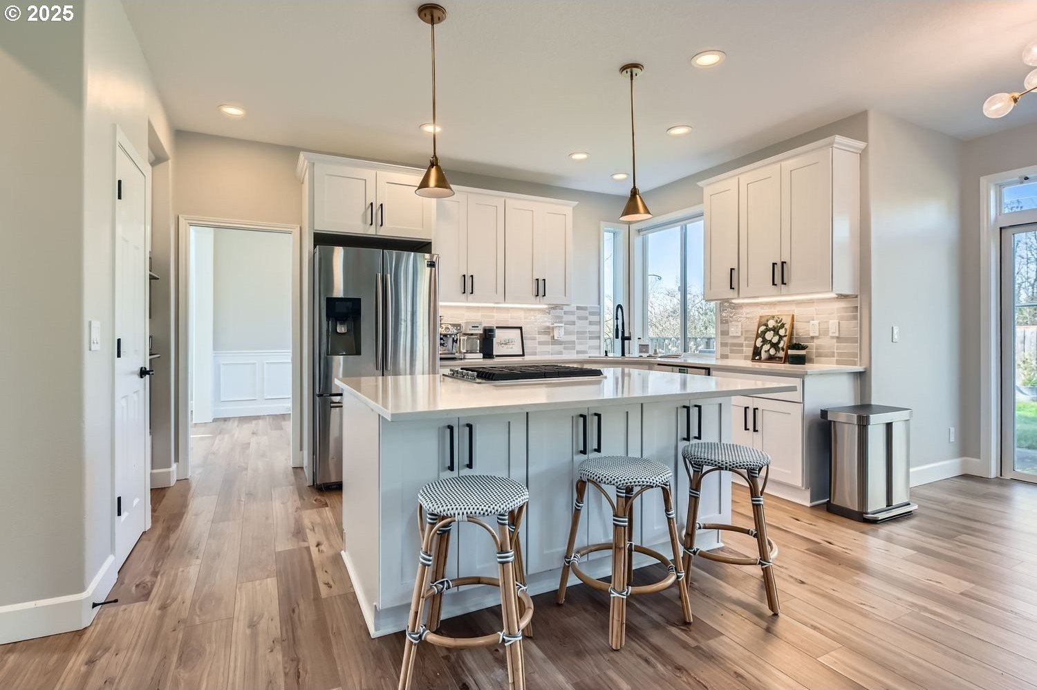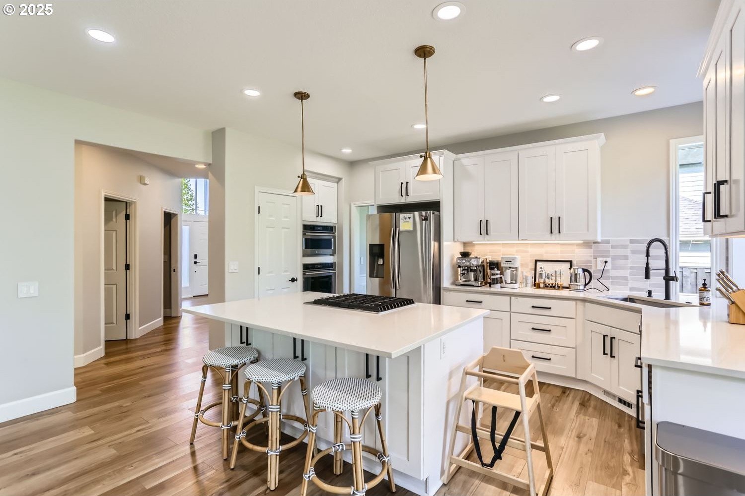 Experience modern comfort and privacy in this beautifully updated 5-bedroom, 2.5-bath, 2,724 sq. ft. home in NW Portland’s desirable Bethany neighborhood, backing to a serene greenbelt. Enjoy custom kitchen cabinets, quartz countertops, stainless steel appliances, built-ins, and an open layout with 9-ft ceilings.Recent updates include LVP flooring and carpet (2021), fresh interior paint (2021), and a luxurious primary bath remodel (Oct 2024) featuring a soaking tub, walk-in shower, and walk-in closet. The home offers two dining areas and a fenced backyard with direct access to scenic trails and nearby parks such as Pirate Park and Kaiser Woods Nature Park.Additional highlights include central A/C, an in-ground sprinkler system, a 3-car garage, an EV charger, and included washer, dryer, and refrigerator. Conveniently located - shopping, Highway 26, Nike, Intel, and downtown Portland. Zoned for highly rated schools—Jacob Wismer, Stoller, and Sunset.The flexible floor plan supports a variety of living arrangements and opportunities, including multi-generational living or investment use. Proven short-term rental performance with historical Airbnb income between $7K–$15K per month during peak season. Income statements available upon request. Listed by Owner/Agent.