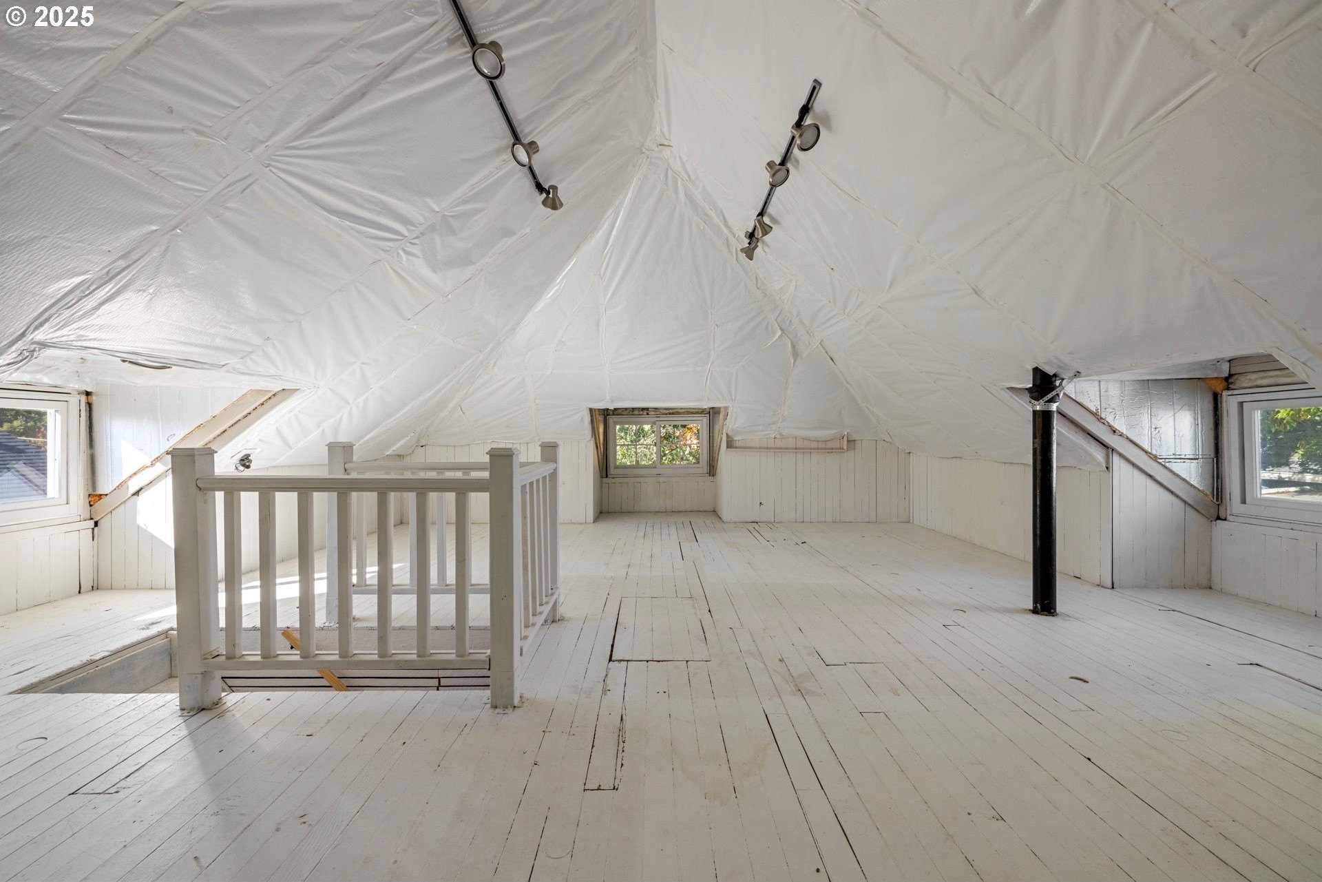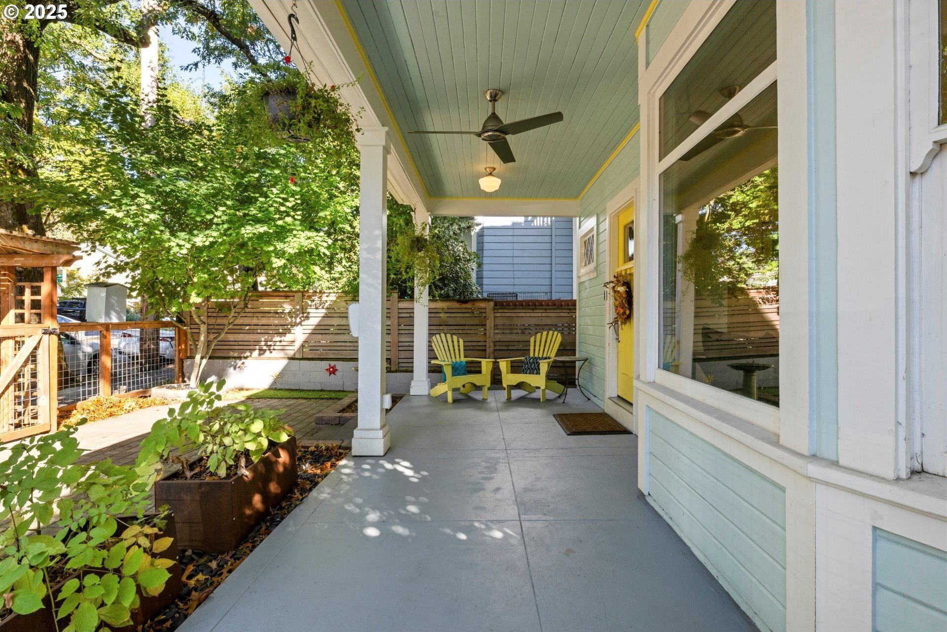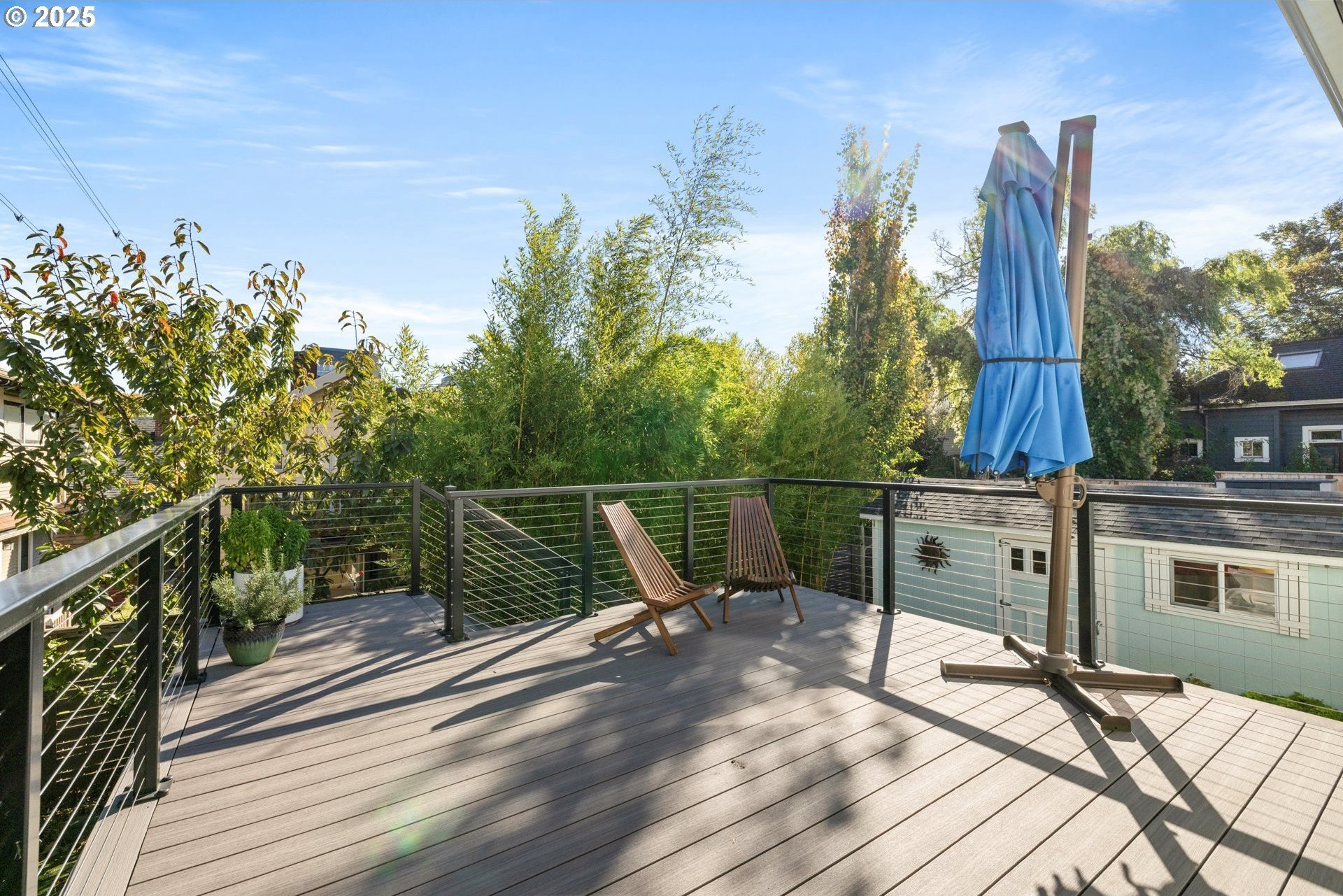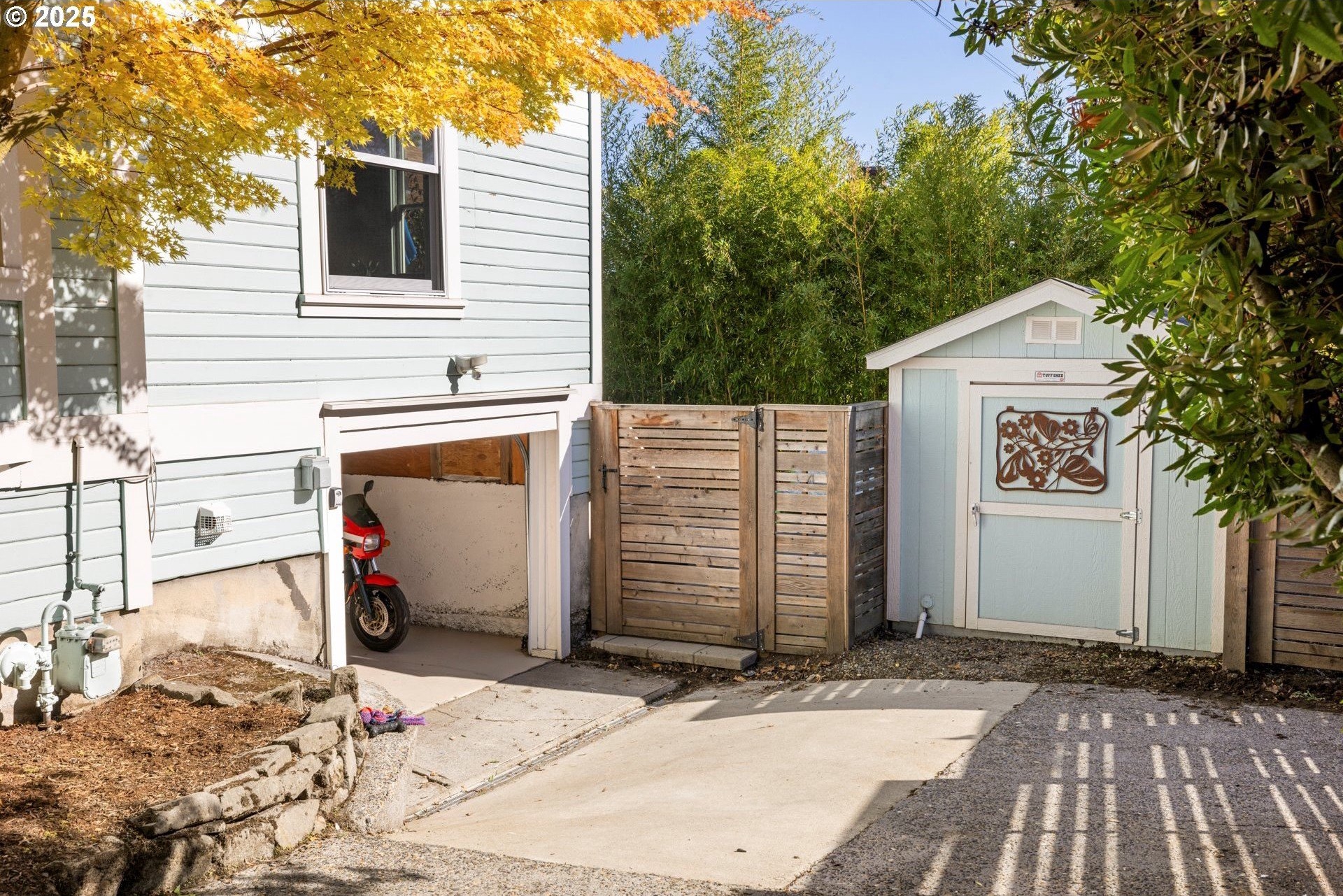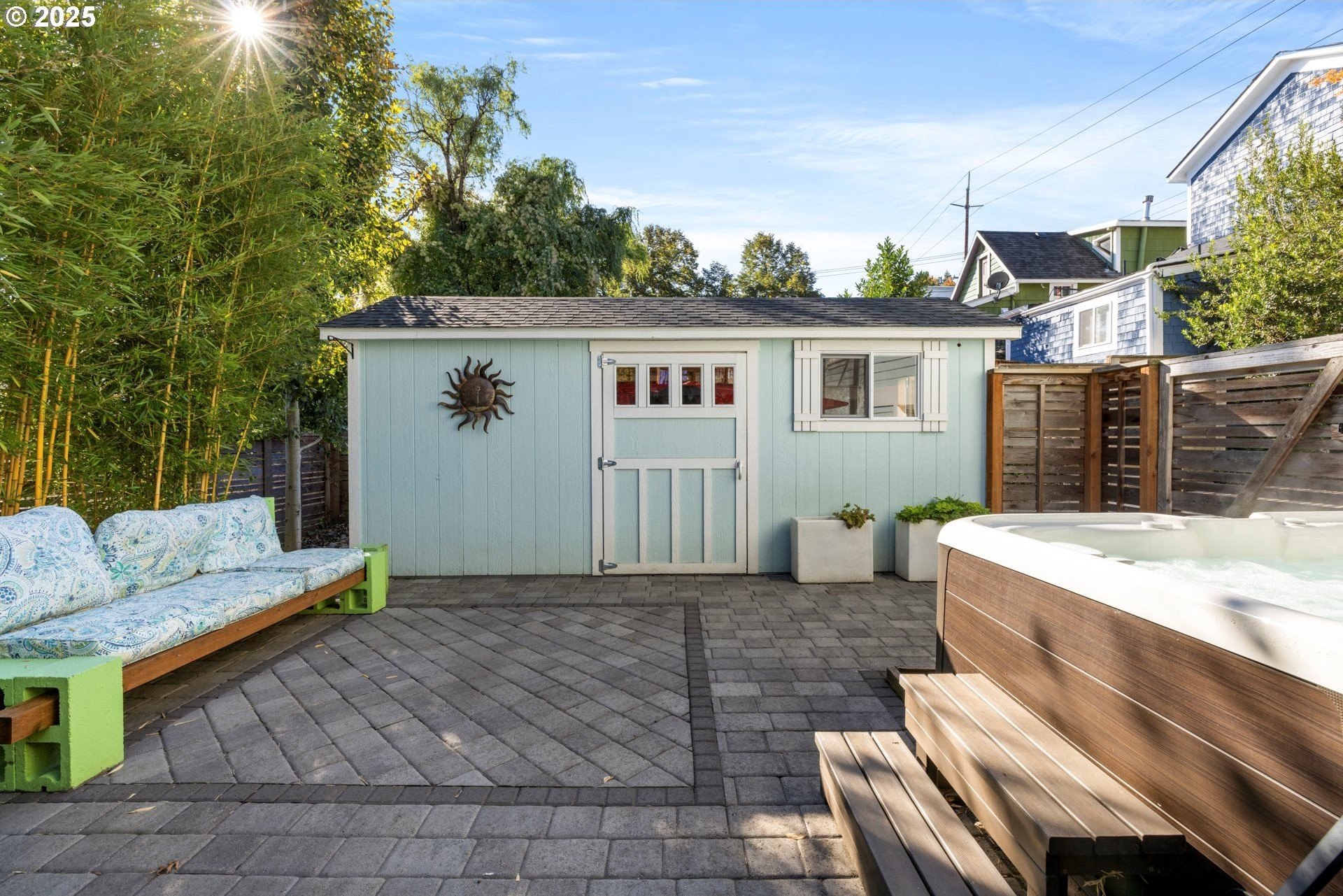 This is a stunning turn of the century 4-Square in the Lair Hill neighborhood! Thoughtfully restored, the house reflects immaculate attention to detail to make this home functional, without compromising its historic character. The level lot offers ample off-street parking, with a garage, fully fenced backyard, cute storage shed and low maintenance landscaping. Choices abound when you want to chill outside, whether it’s on your front porch, the elevated back deck or the hot tub! The path of the OHSU aerial tram soars right next to your property and is a delight to watch..really!The fun doesn’t stop there. The main level features an open kitchen with bar seating, full pantry, an abundance of light and access to the back deck. The kitchen opens to the dining room and flows to the living room at the front of the house, or to the back of the house with a room that could be a guest suite, master bedroom or family room. (Current owners have it set up as a family room).You’ll find another full bathroom upstairs, with heated floors and free standing tub you can lose yourself in, 2 ample bedrooms with new carpet and ample closet space. The laundry chute makes transferring your dirty laundry downstairs a breeze! Need a hobby room? Open the door to another staircase and head up to the attic, which offers so many opportunities. Owner used it as a craft/sewing room.Finally, you have a fully functional and dry basement, which consists of the laundry room, mechanical room and a space where the current owner had a pottery studio, complete with a kiln! Basement has outside access and direct access to the garage.The 1 block proximity to the Gibbs Street Pedestrian Bridge marries the Lair Hill neighborhood with the South Waterfront district, making this such a special place to call home. It truly allows you to appreciate all that Portland has to offer, with its Mt Hood views, easy access to the outdoors, OHSU medical facility, pedestrian bridge, walking/biking paths and more! [Home Energy Score = 1. HES Report at https://rpt.greenbuildingregistry.com/hes/OR10007641]