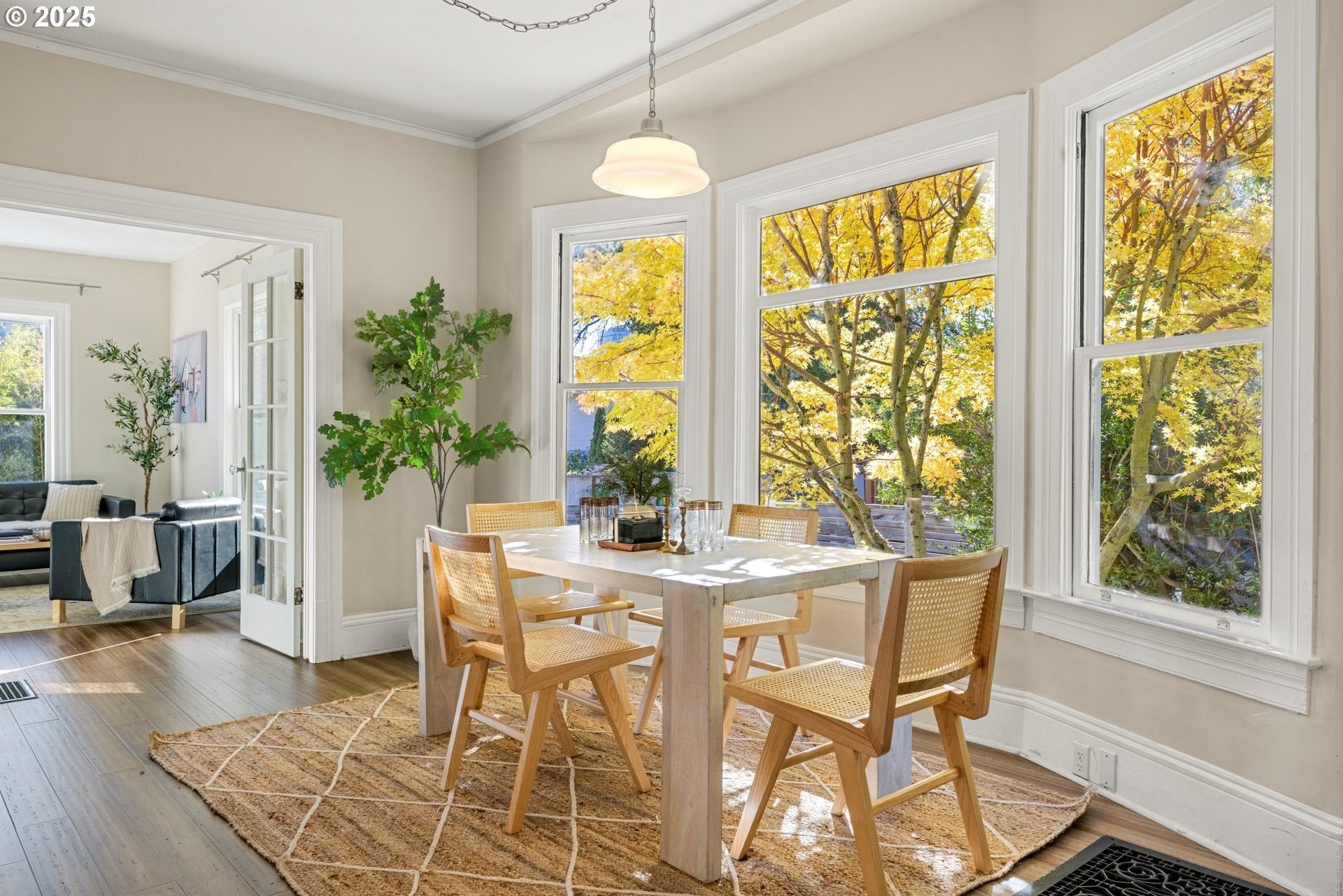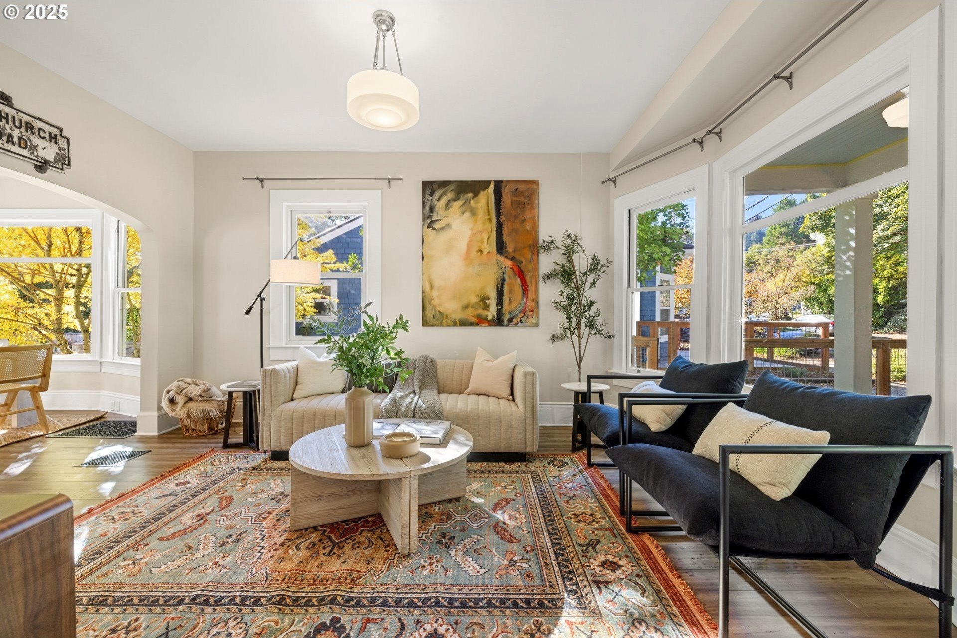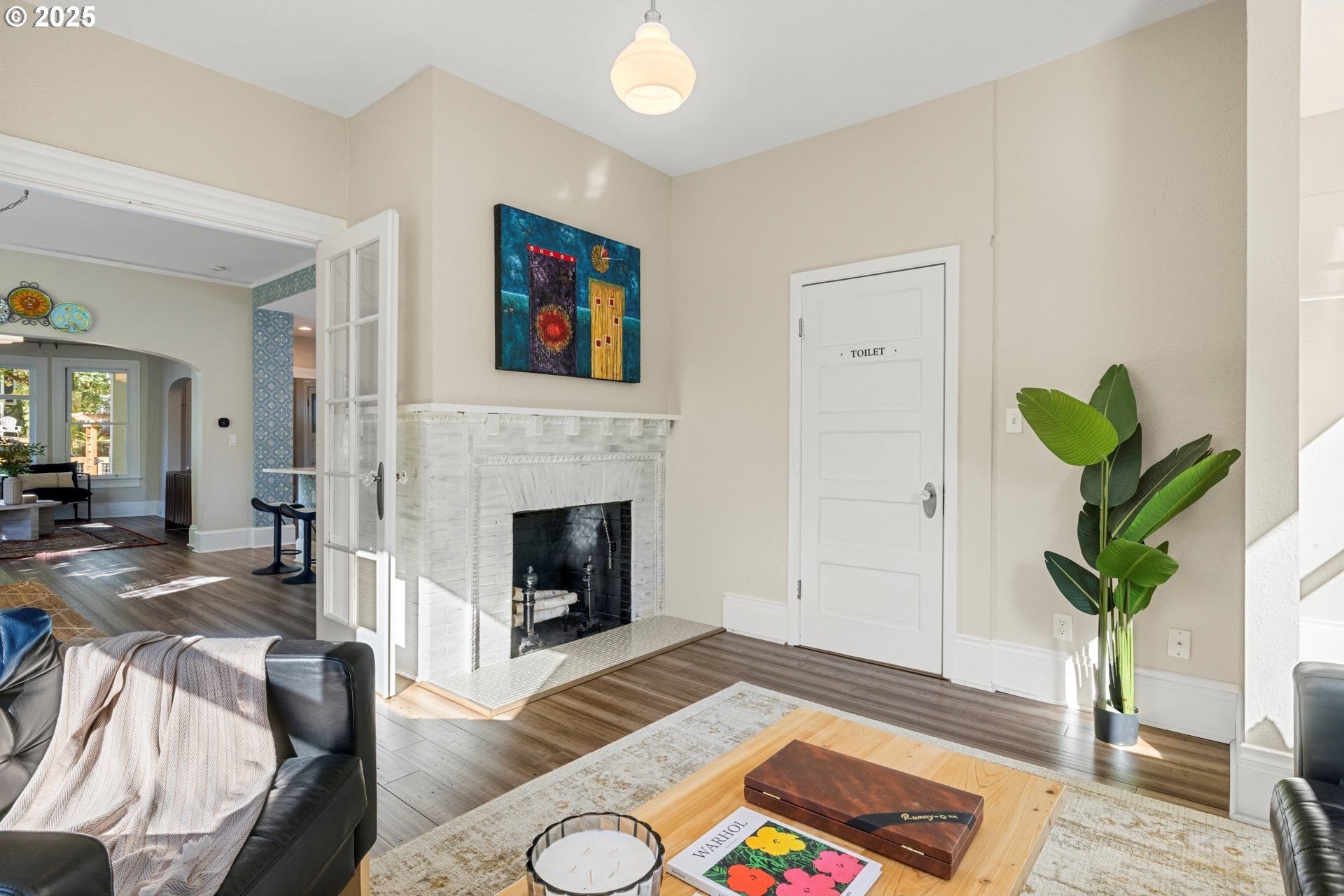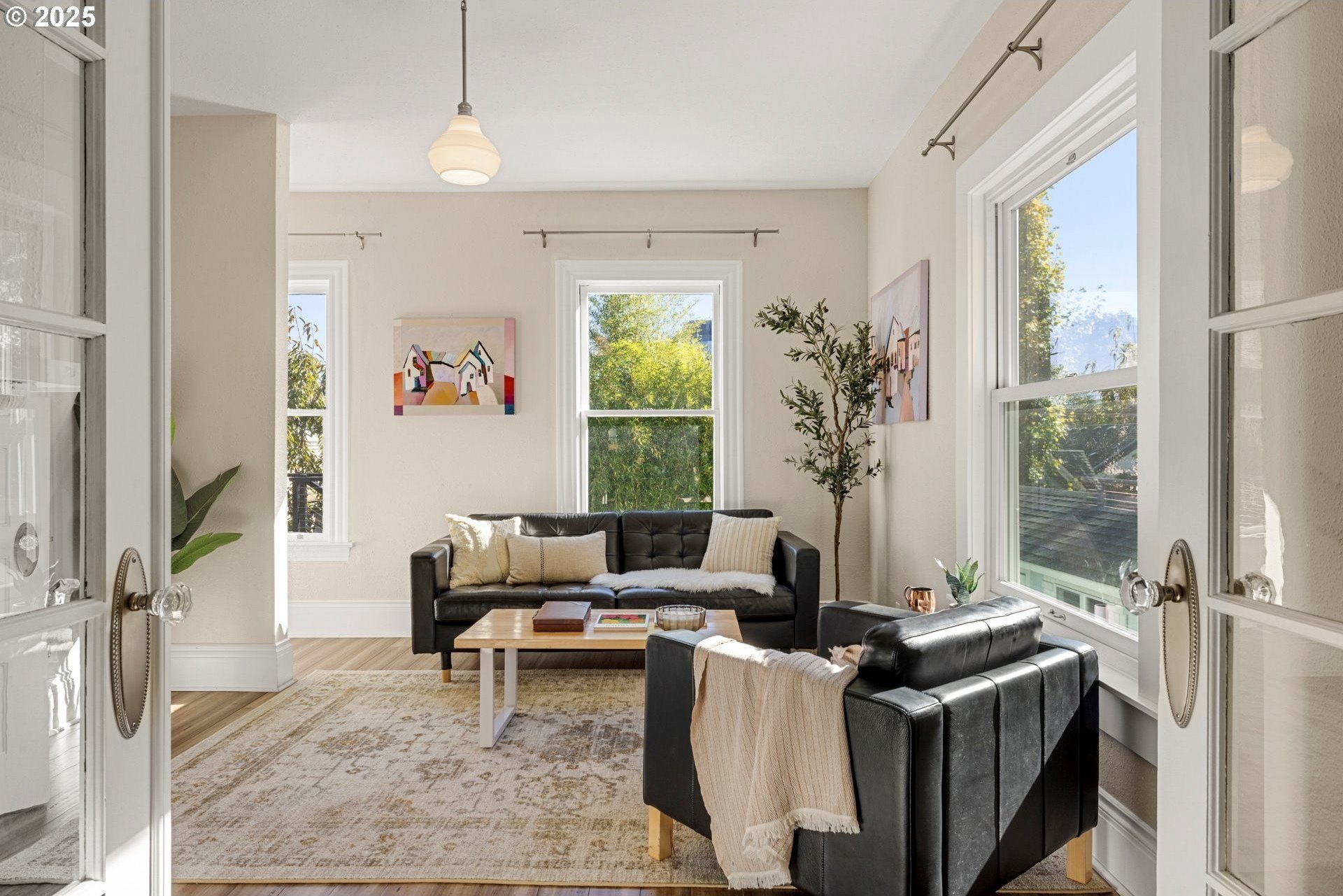 This is a stunning turn of the century 4-Square in the Lair Hill neighborhood! Thoughtfully restored, the house reflects immaculate attention to detail to make this home functional, without compromising its historic character. The level lot offers ample off-street parking, with a garage, fully fenced backyard, cute storage shed and low maintenance landscaping. Choices abound when you want to chill outside, whether it’s on your front porch, the elevated back deck or the hot tub! The path of the OHSU aerial tram soars right next to your property and is a delight to watch..really!The fun doesn’t stop there. The main level features an open kitchen with bar seating, full pantry, an abundance of light and access to the back deck. The kitchen opens to the dining room and flows to the living room at the front of the house, or to the back of the house with a room that could be a guest suite, master bedroom or family room. (Current owners have it set up as a family room).You’ll find another full bathroom upstairs, with heated floors and free standing tub you can lose yourself in, 2 ample bedrooms with new carpet and ample closet space. The laundry chute makes transferring your dirty laundry downstairs a breeze! Need a hobby room? Open the door to another staircase and head up to the attic, which offers so many opportunities. Owner used it as a craft/sewing room.Finally, you have a fully functional and dry basement, which consists of the laundry room, mechanical room and a space where the current owner had a pottery studio, complete with a kiln! Basement has outside access and direct access to the garage.The 1 block proximity to the Gibbs Street Pedestrian Bridge marries the Lair Hill neighborhood with the South Waterfront district, making this such a special place to call home. It truly allows you to appreciate all that Portland has to offer, with its Mt Hood views, easy access to the outdoors, OHSU medical facility, pedestrian bridge, walking/biking paths and more! [Home Energy Score = 1. HES Report at https://rpt.greenbuildingregistry.com/hes/OR10007641]