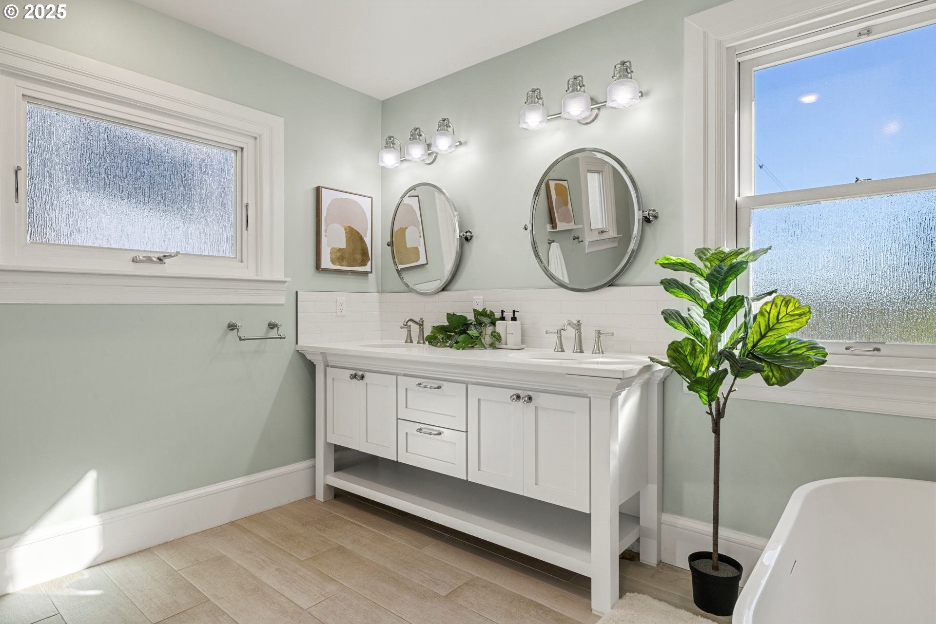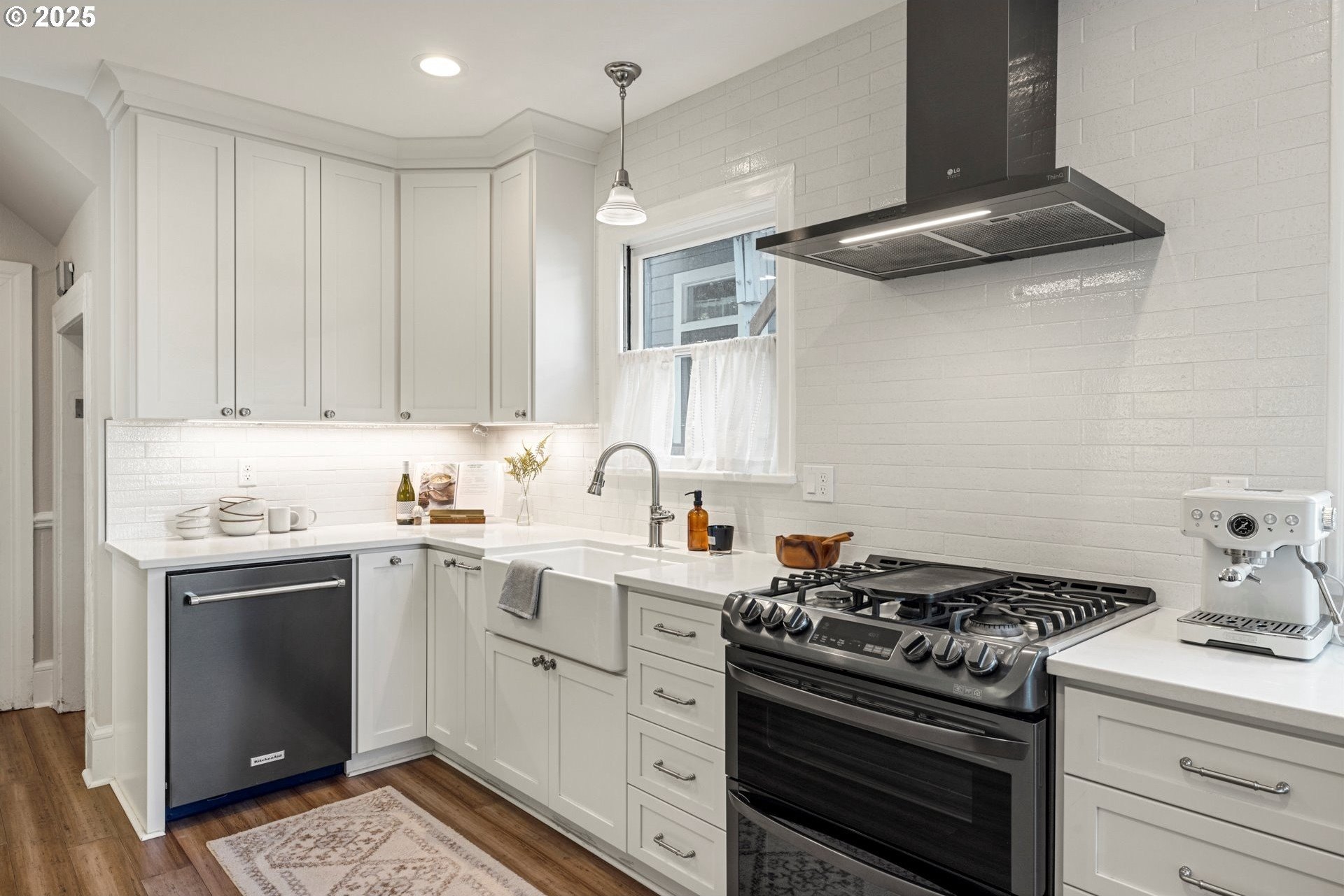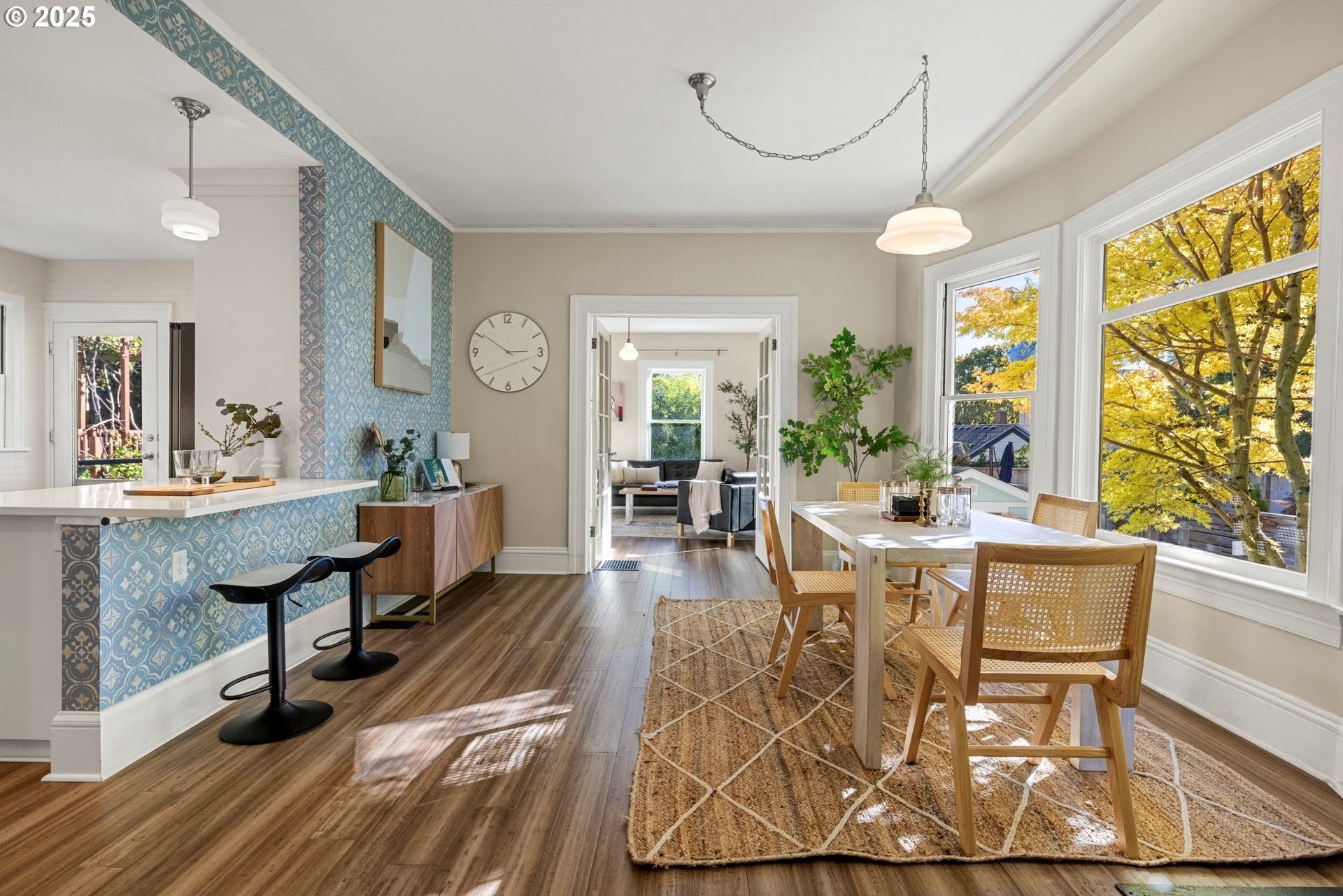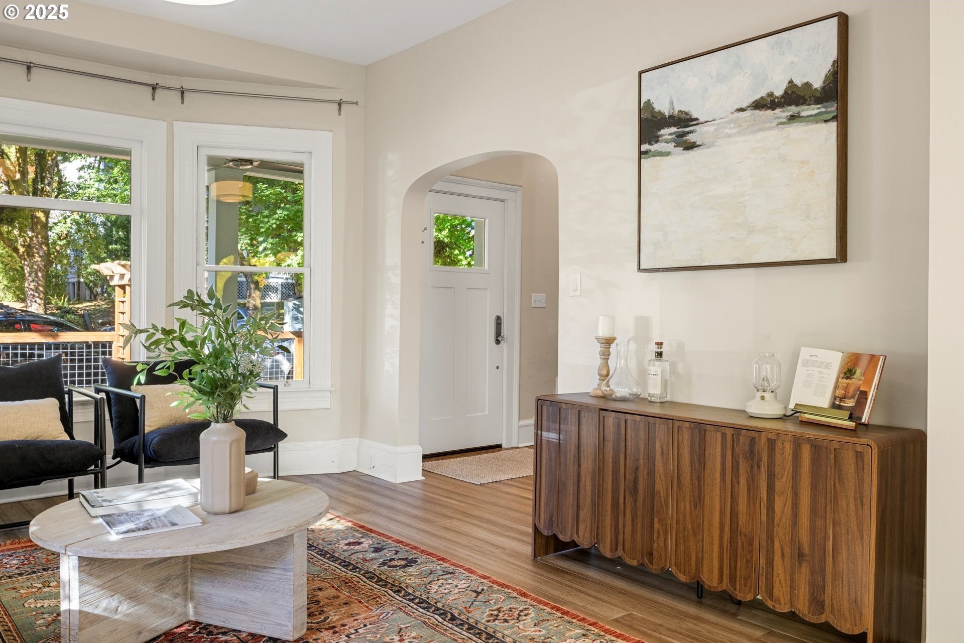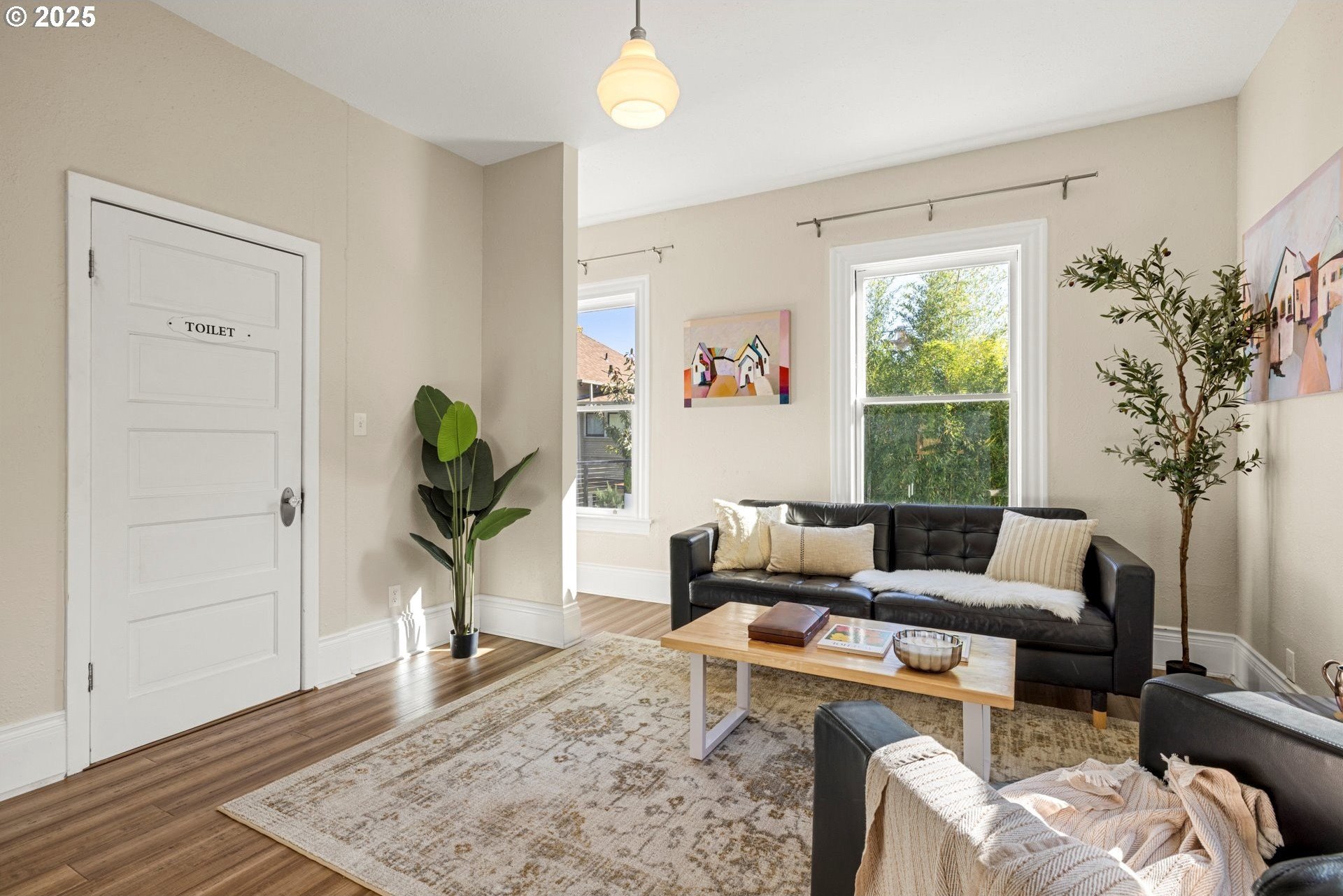 This is a stunning turn of the century 4-Square in the Lair Hill neighborhood! Thoughtfully restored, the house reflects immaculate attention to detail to make this home functional, without compromising its historic character. The level lot offers ample off-street parking, with a garage, fully fenced backyard, cute storage shed and low maintenance landscaping. Choices abound when you want to chill outside, whether it’s on your front porch, the elevated back deck or the hot tub! The path of the OHSU aerial tram soars right next to your property and is a delight to watch..really!The fun doesn’t stop there. The main level features an open kitchen with bar seating, full pantry, an abundance of light and access to the back deck. The kitchen opens to the dining room and flows to the living room at the front of the house, or to the back of the house with a room that could be a guest suite, master bedroom or family room. (Current owners have it set up as a family room).You’ll find another full bathroom upstairs, with heated floors and free standing tub you can lose yourself in, 2 ample bedrooms with new carpet and ample closet space. The laundry chute makes transferring your dirty laundry downstairs a breeze! Need a hobby room? Open the door to another staircase and head up to the attic, which offers so many opportunities. Owner used it as a craft/sewing room.Finally, you have a fully functional and dry basement, which consists of the laundry room, mechanical room and a space where the current owner had a pottery studio, complete with a kiln! Basement has outside access and direct access to the garage.The 1 block proximity to the Gibbs Street Pedestrian Bridge marries the Lair Hill neighborhood with the South Waterfront district, making this such a special place to call home. It truly allows you to appreciate all that Portland has to offer, with its Mt Hood views, easy access to the outdoors, OHSU medical facility, pedestrian bridge, walking/biking paths and more! [Home Energy Score = 1. HES Report at https://rpt.greenbuildingregistry.com/hes/OR10007641]