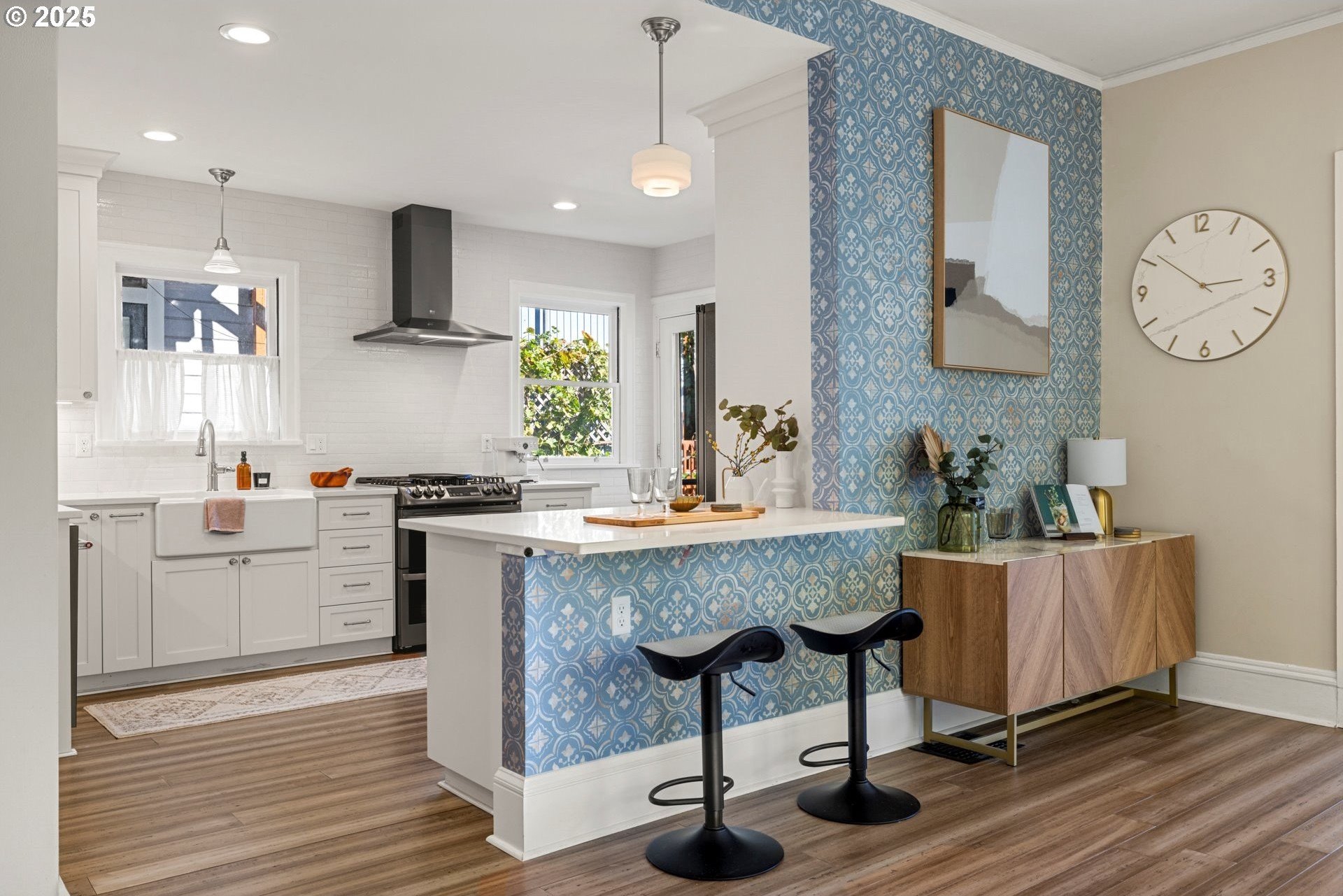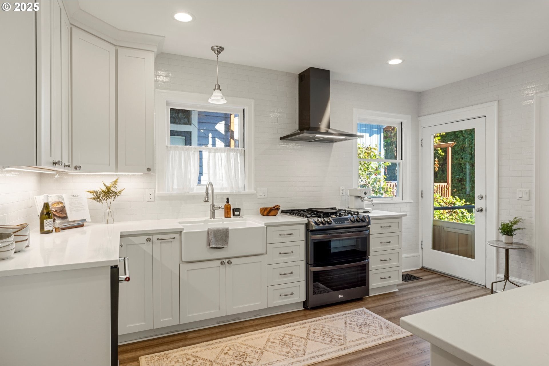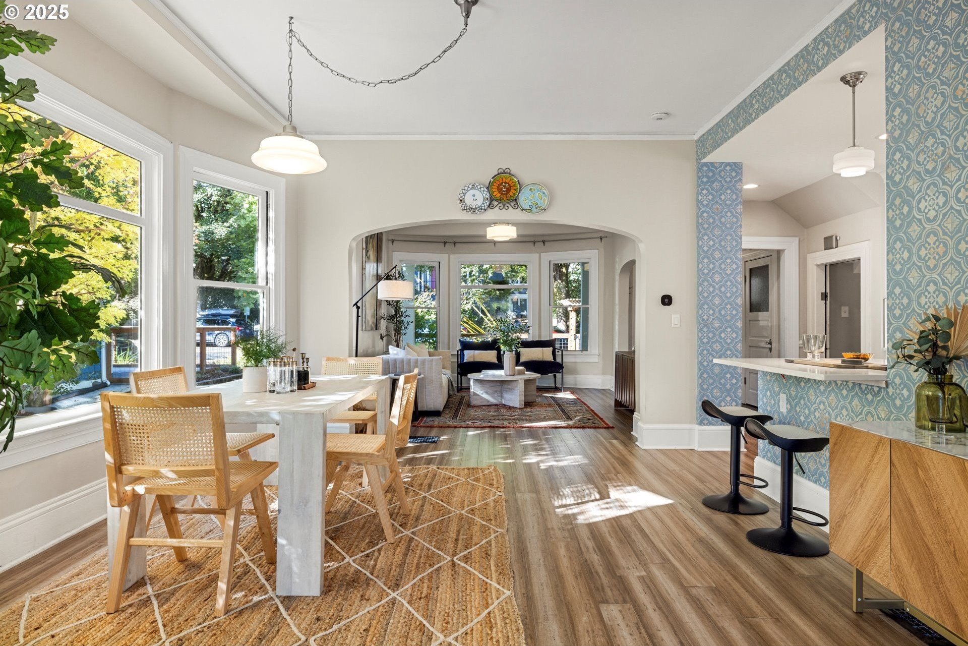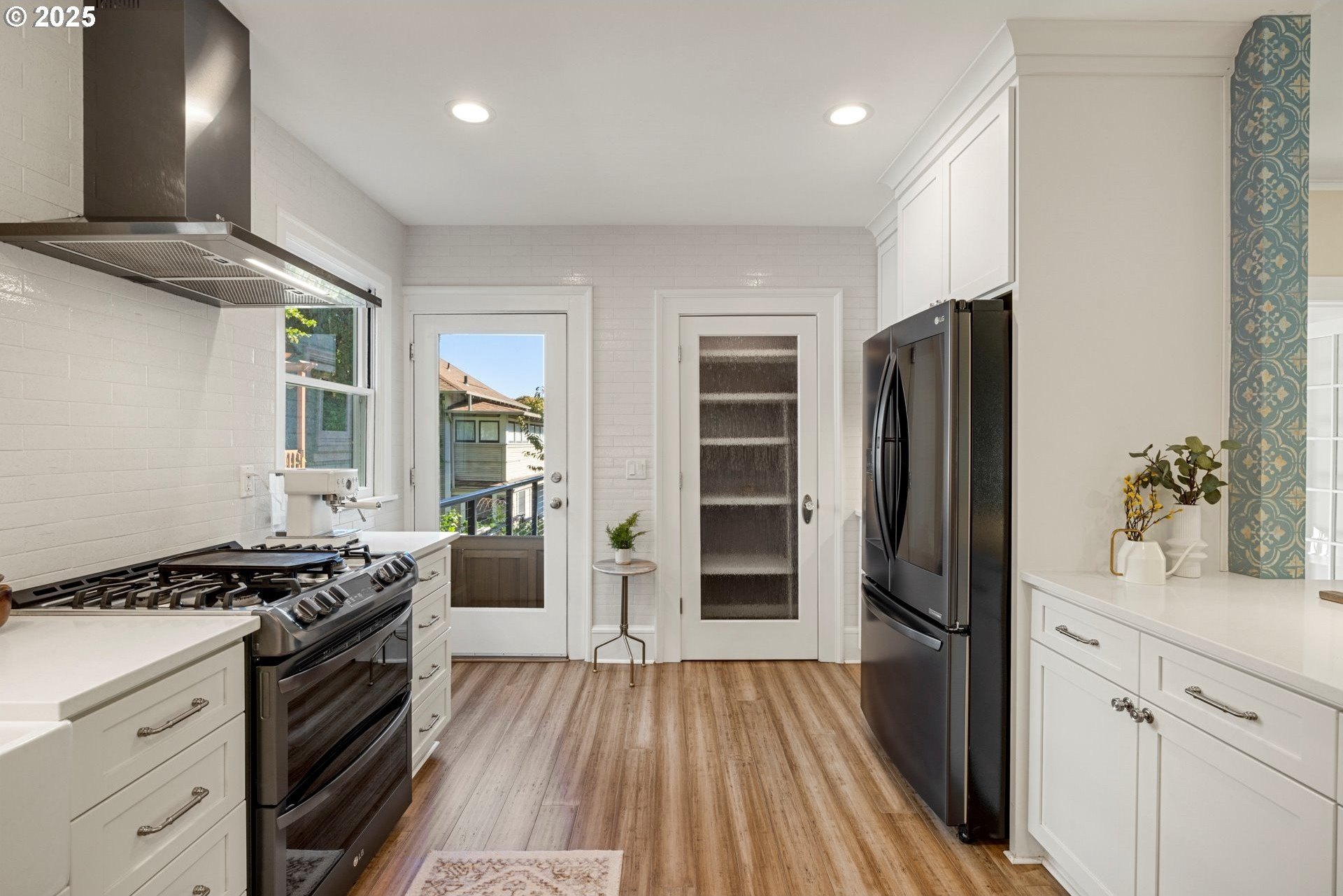 This is a stunning turn of the century 4-Square in the Lair Hill neighborhood! Thoughtfully restored, the house reflects immaculate attention to detail to make this home functional, without compromising its historic character. The level lot offers ample off-street parking, with a garage, fully fenced backyard, cute storage shed and low maintenance landscaping. Choices abound when you want to chill outside, whether it’s on your front porch, the elevated back deck or the hot tub! The path of the OHSU aerial tram soars right next to your property and is a delight to watch..really!The fun doesn’t stop there. The main level features an open kitchen with bar seating, full pantry, an abundance of light and access to the back deck. The kitchen opens to the dining room and flows to the living room at the front of the house, or to the back of the house with a room that could be a guest suite, master bedroom or family room. (Current owners have it set up as a family room).You’ll find another full bathroom upstairs, with heated floors and free standing tub you can lose yourself in, 2 ample bedrooms with new carpet and ample closet space. The laundry chute makes transferring your dirty laundry downstairs a breeze! Need a hobby room? Open the door to another staircase and head up to the attic, which offers so many opportunities. Owner used it as a craft/sewing room.Finally, you have a fully functional and dry basement, which consists of the laundry room, mechanical room and a space where the current owner had a pottery studio, complete with a kiln! Basement has outside access and direct access to the garage.The 1 block proximity to the Gibbs Street Pedestrian Bridge marries the Lair Hill neighborhood with the South Waterfront district, making this such a special place to call home. It truly allows you to appreciate all that Portland has to offer, with its Mt Hood views, easy access to the outdoors, OHSU medical facility, pedestrian bridge, walking/biking paths and more! [Home Energy Score = 1. HES Report at https://rpt.greenbuildingregistry.com/hes/OR10007641]