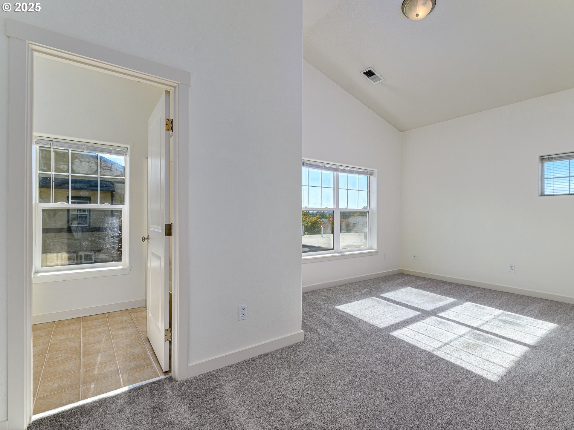 Exceptional corner townhome in the Causey Village Condominiums community with secured gated entry, clubhouse and pool. New interior paint and carpet. Fabulous floor plan with high ceilings and wall of windows. Spacious great room with gas fireplace, light & bright. Dining area with sliding door to the balcony. Kitchen with tile counter-top, built-in microwave and pantry. Dual bedroom suites with vaulted ceilings. Attached garage plus parking space #24. Includes refrigerator and washer/dryer. Convenient to shopping, dining, bus line, light rail, and the Clackamas Town Center. Perfect for homeowners or investors. An affordable and stylish Happy Valley home!