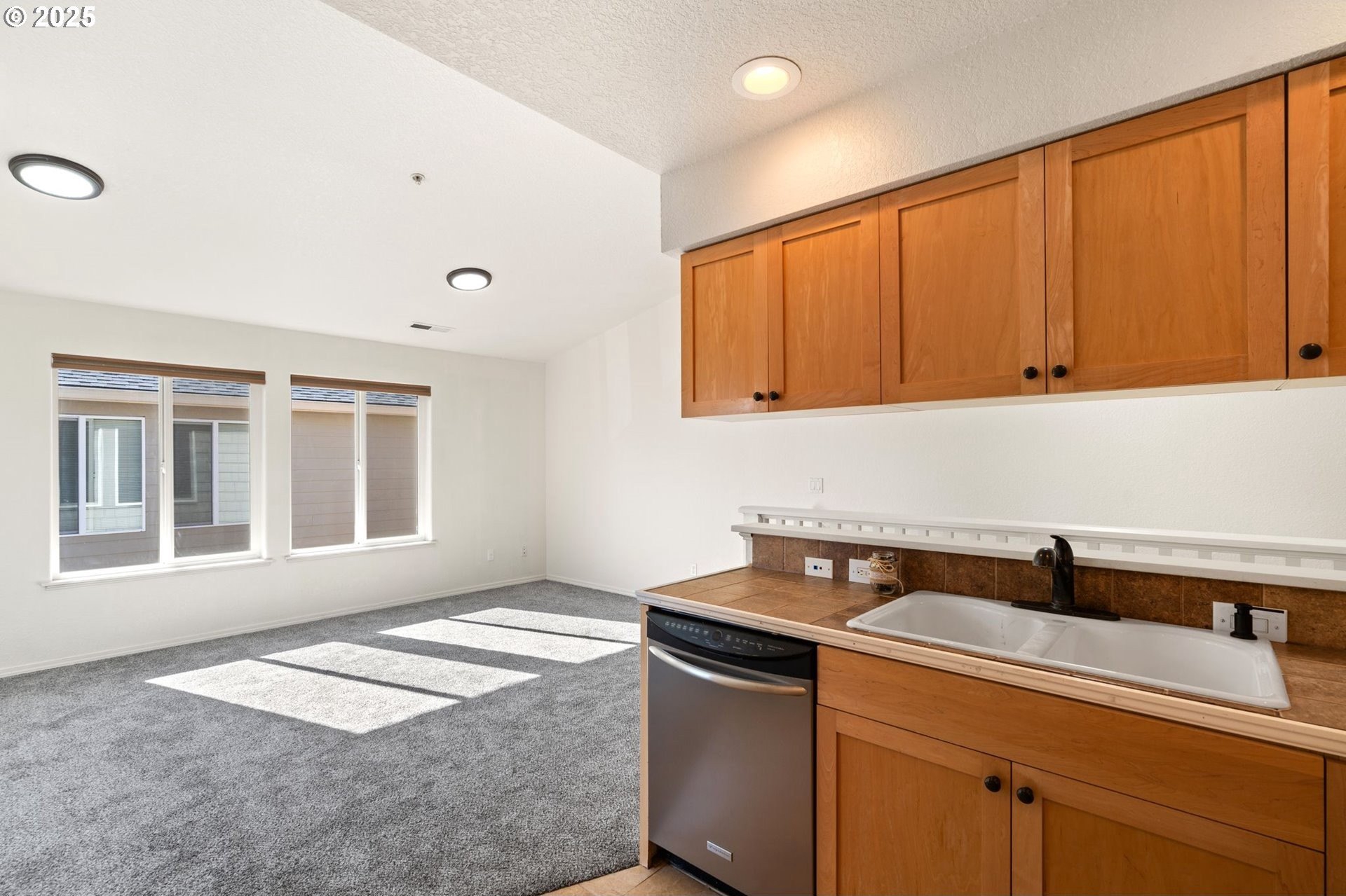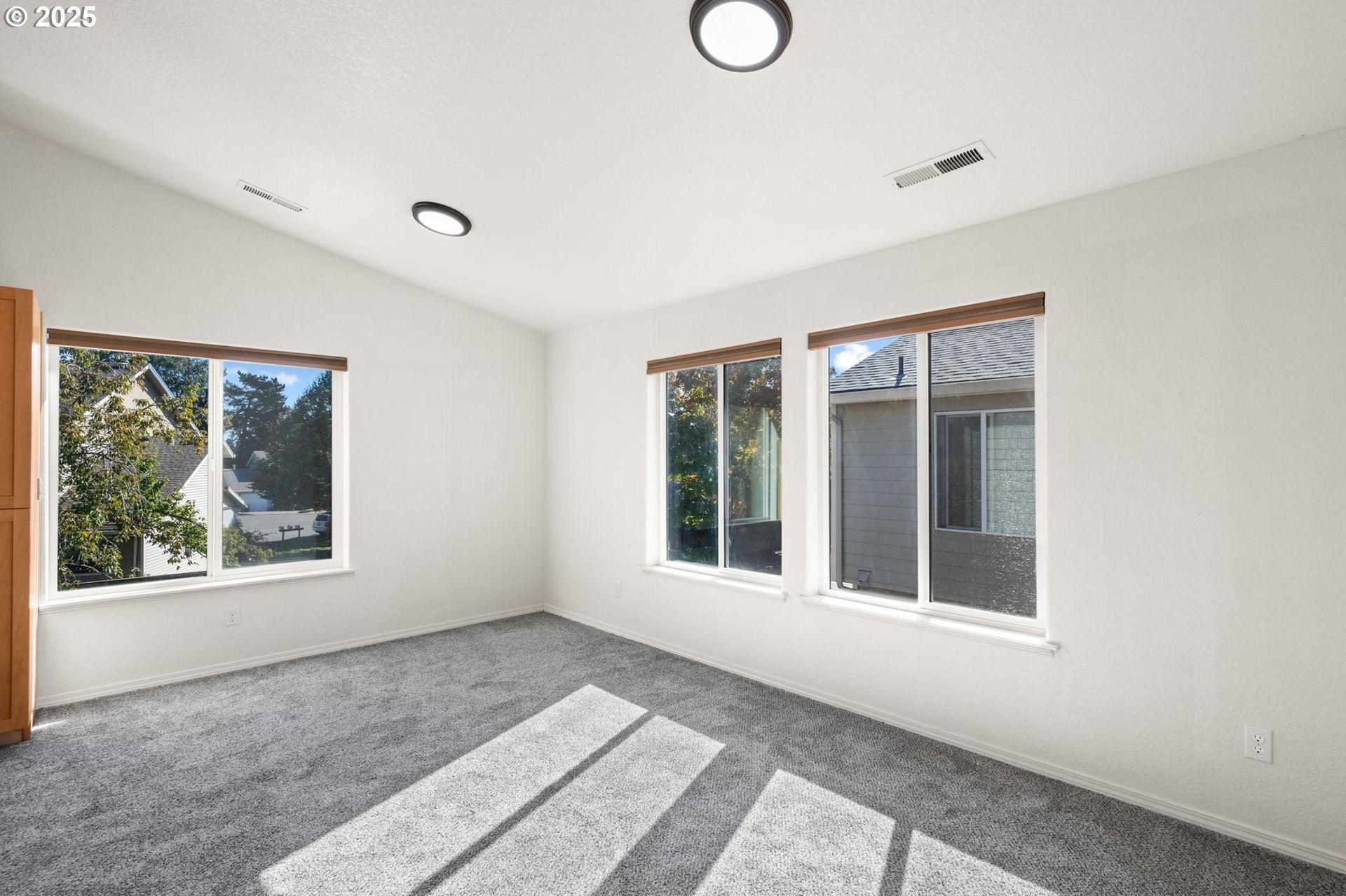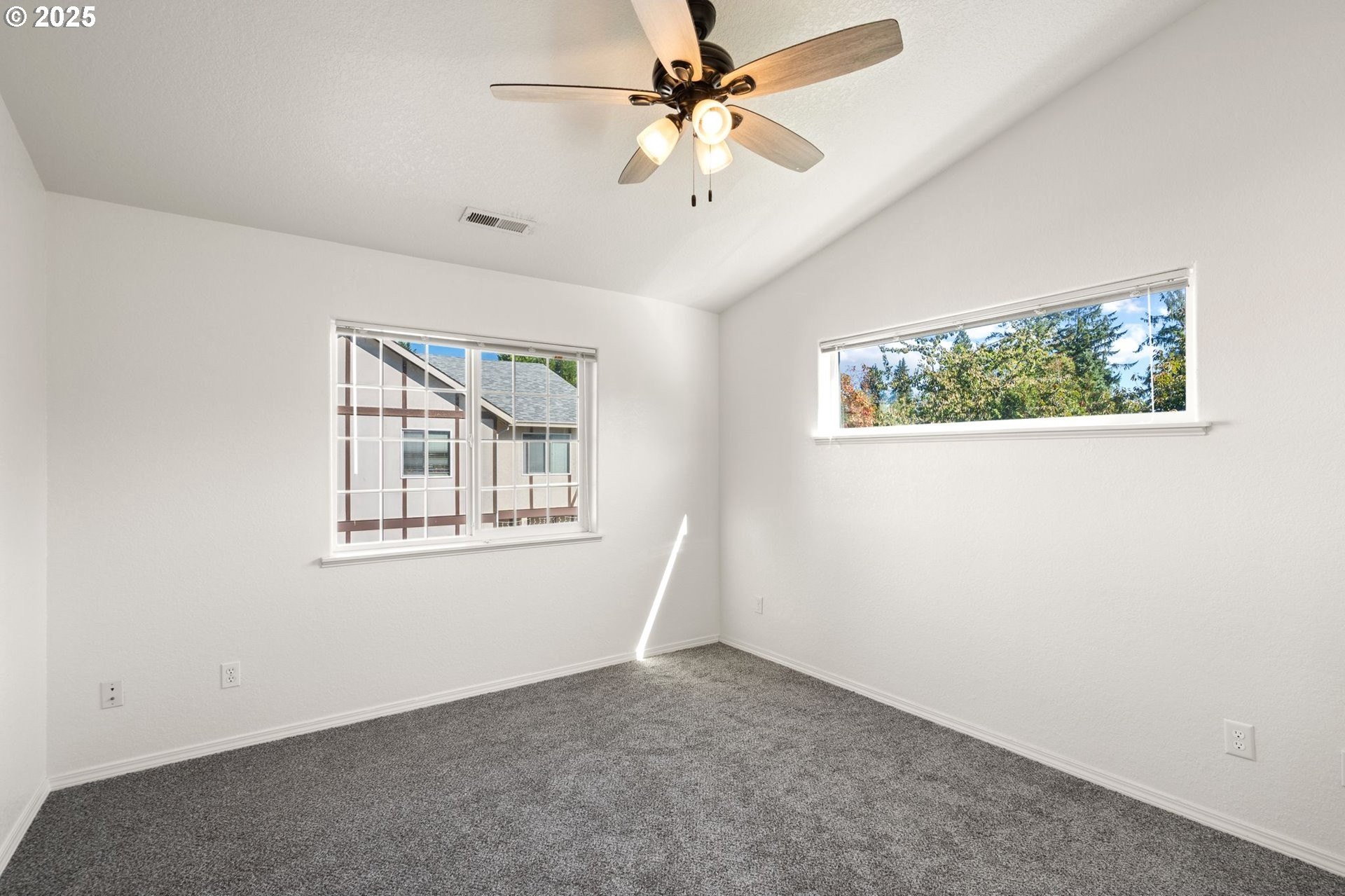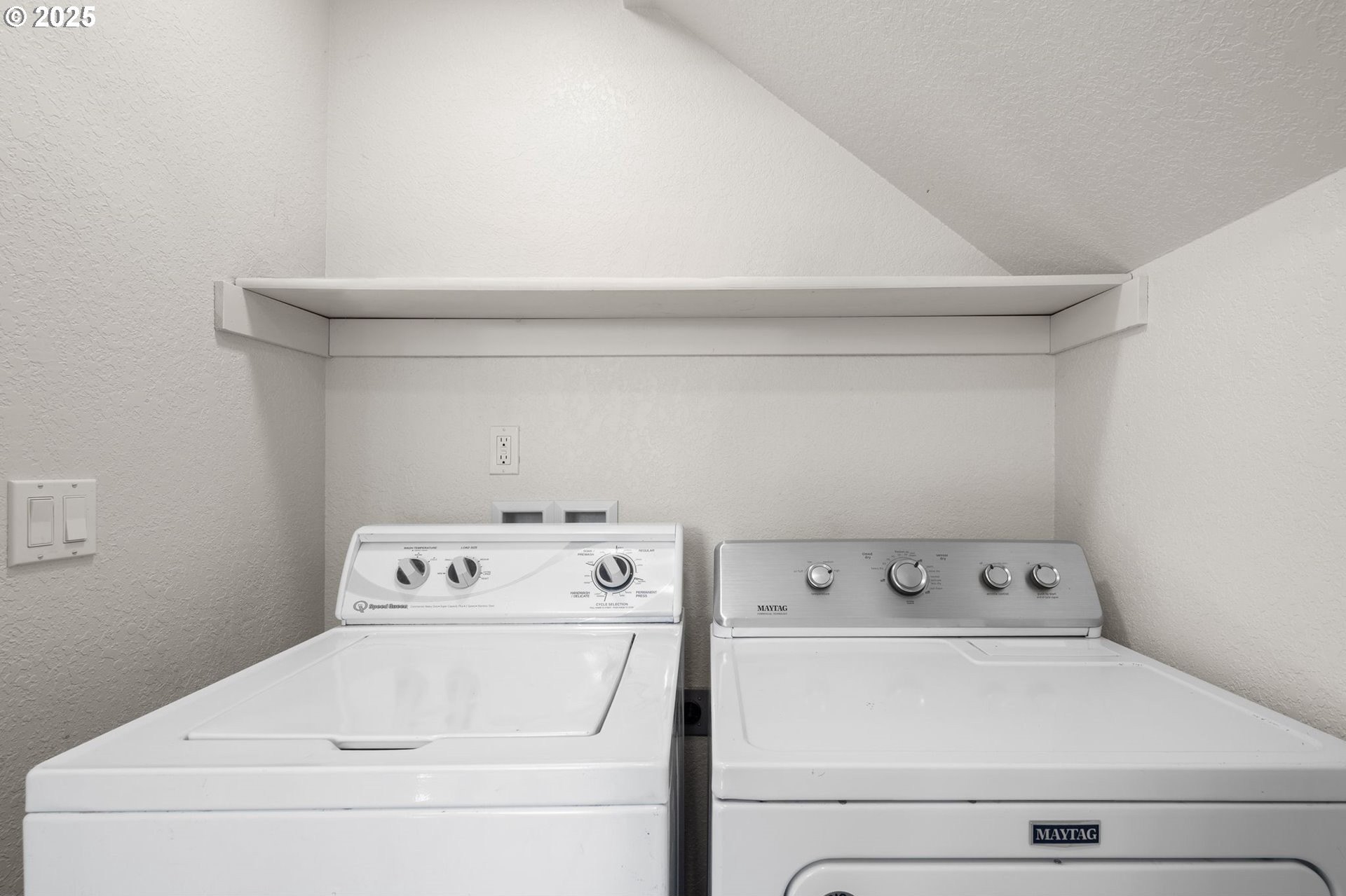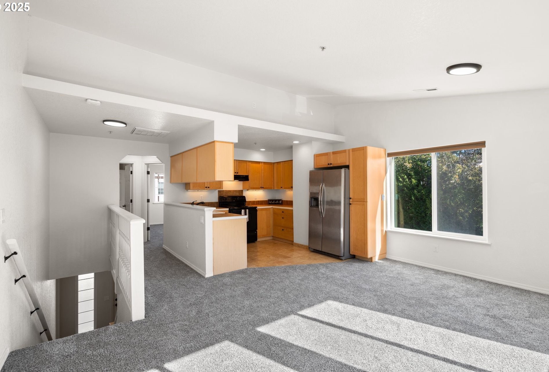 Beautifully maintained and thoughtfully updated, this 2-bedroom, 2-bath end-unit offers 1,102 sq. ft. with a dual-primary suite layout ideal for flexibility or guests. The main-level primary suite features deck access through sliding doors, a walk-in shower, and a ceiling fan, while the upper-level suite boasts vaulted ceilings, decorative niches, and a tub/shower combo. The light-filled living area includes vaulted ceilings and NEW 2025 lighting and carpet, complemented by fresh interior paint. The kitchen shines with tile flooring, a stainless steel refrigerator (new 2023), new garbage disposal (2024), dual-basin sink, pantry, and free-standing range. Additional highlights include gas heating and cooling, washer/dryer, window coverings, Nest CO/smoke detectors, and an attached 1-car garage with two remotes, with an additional assigned parking space and visitor parking. HOA covers water, sewer, garbage, landscaping, and exterior maintenance. Conveniently located near I-205, Clackamas Community College, parks, trails, and Oregon City’s best dining and coffee spots. Experience life in a connected suburban setting with a small-town charm.