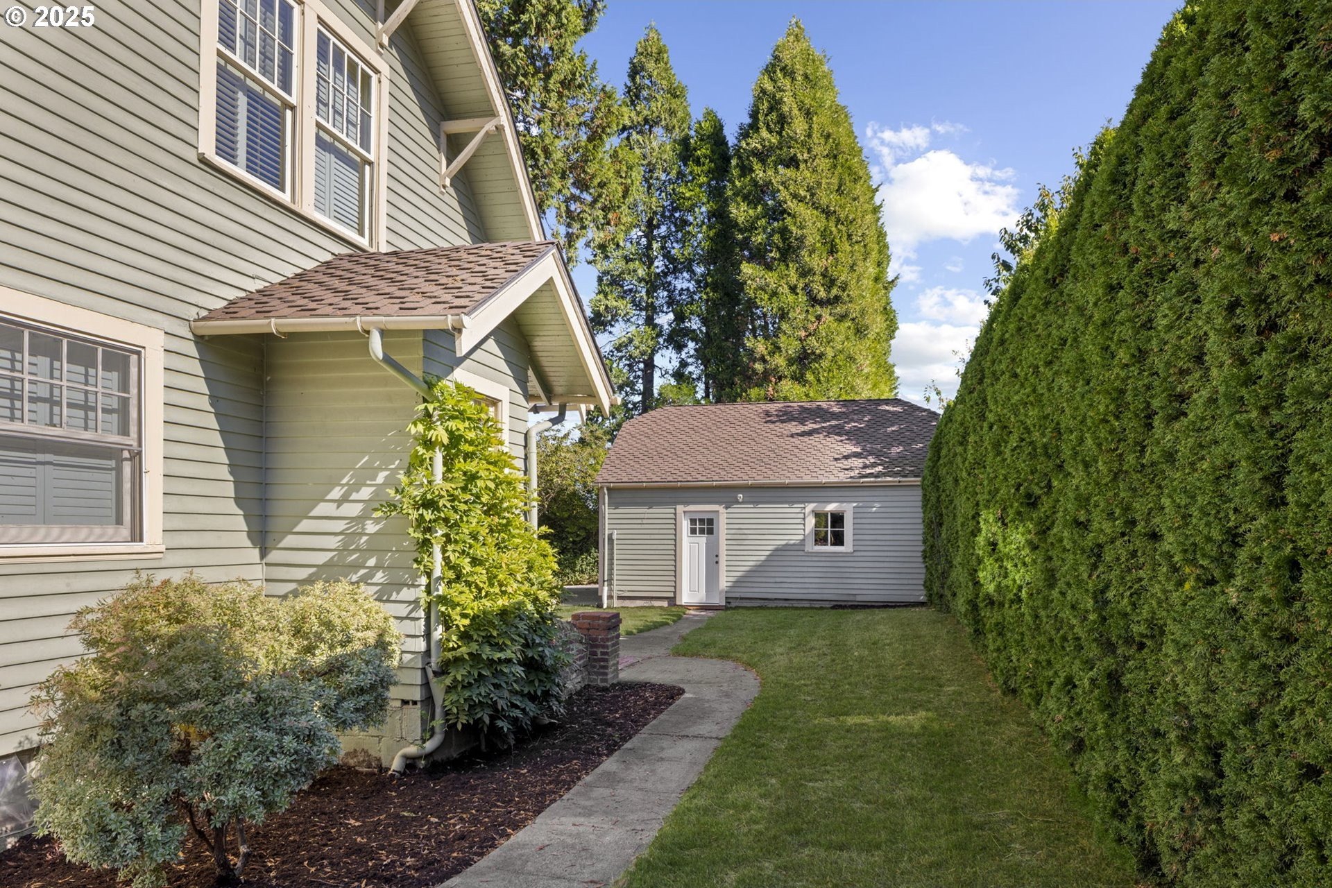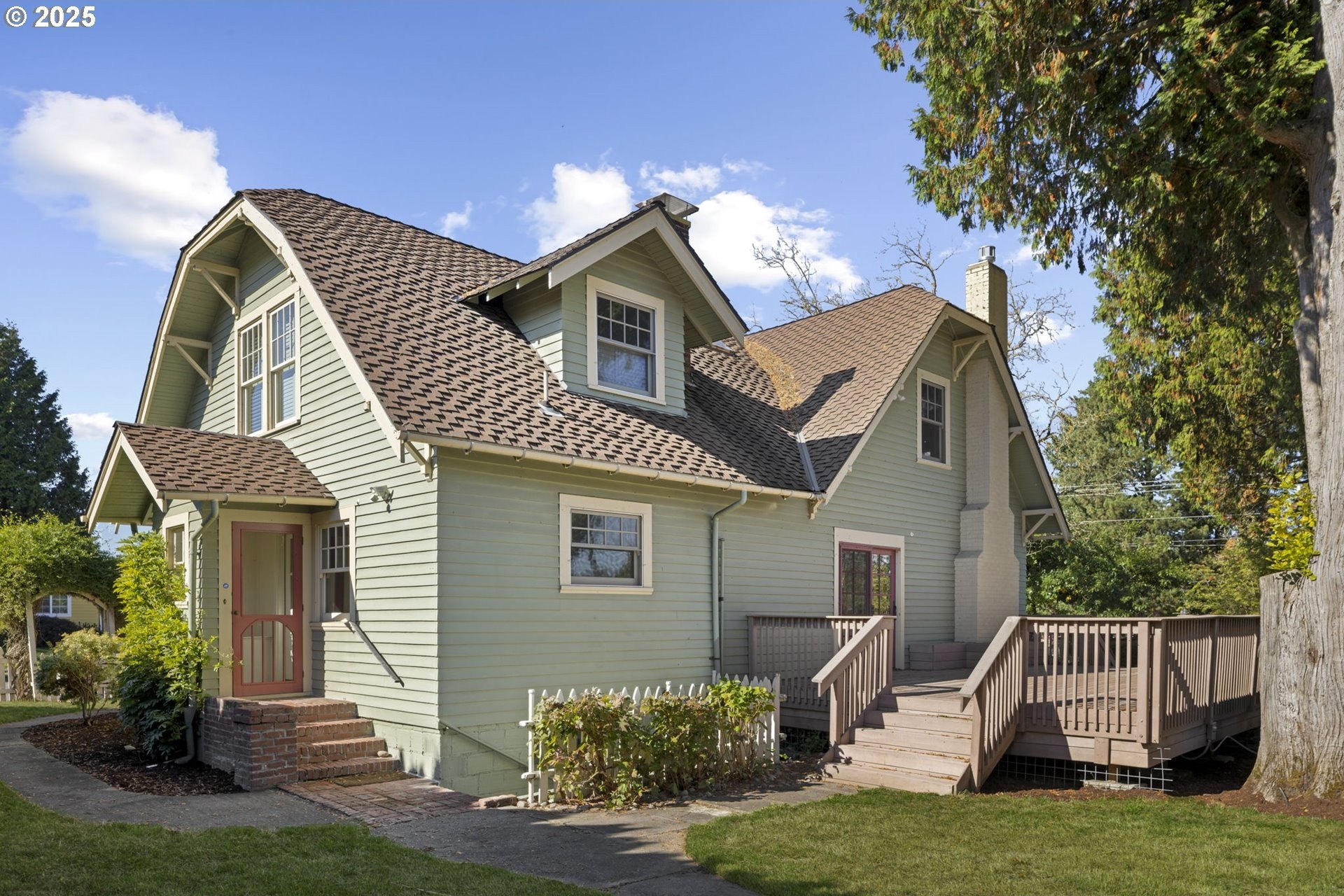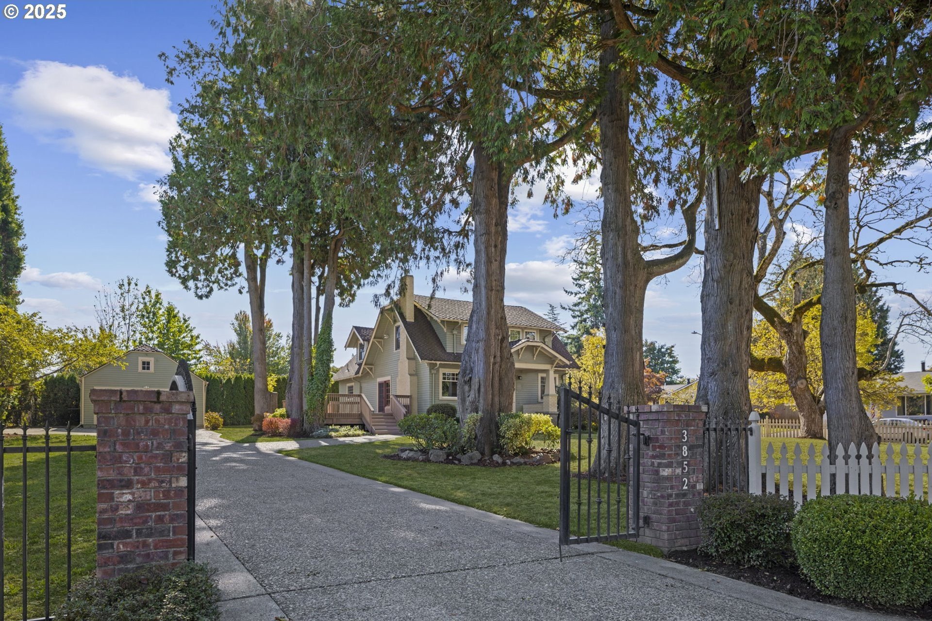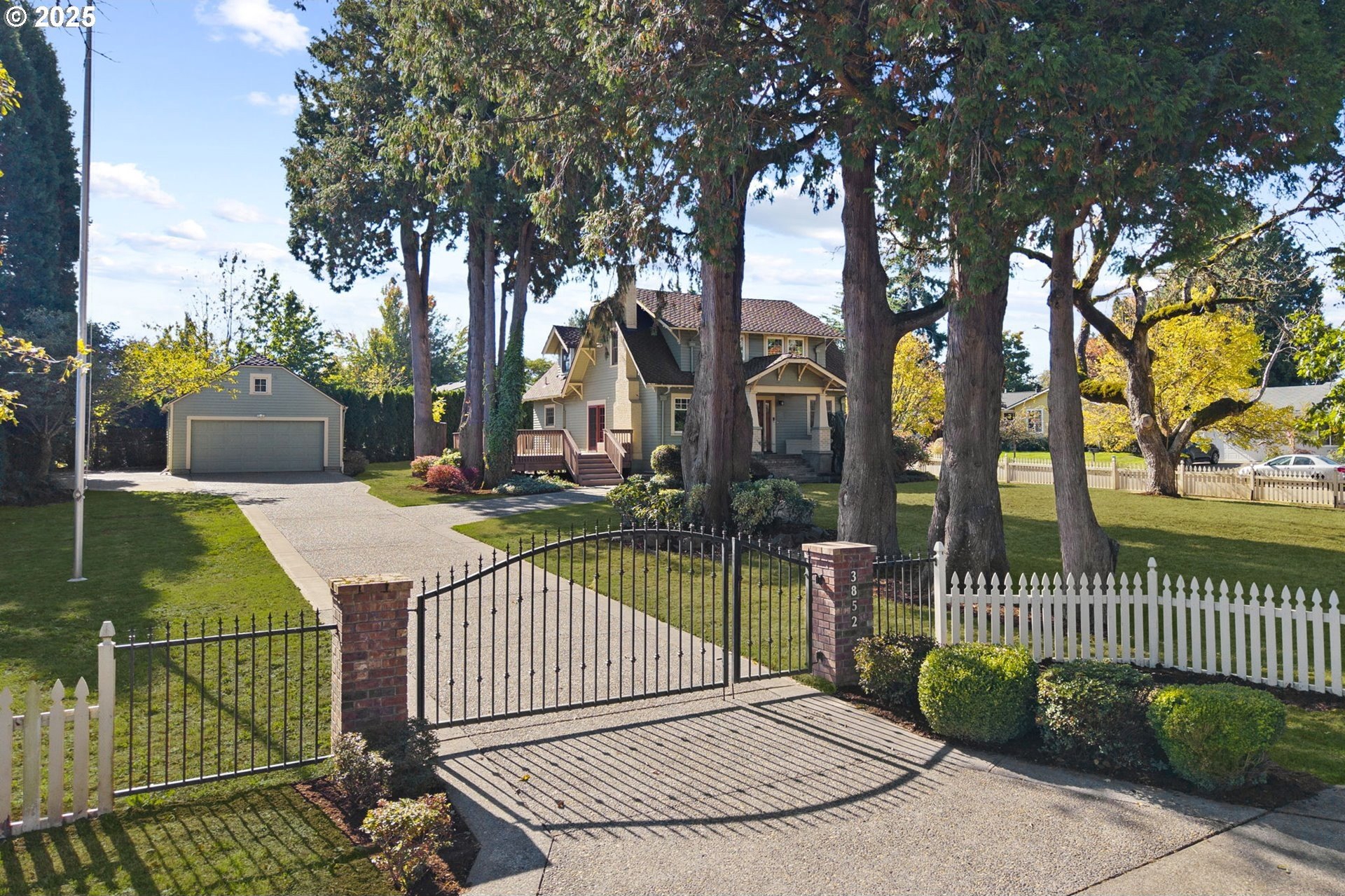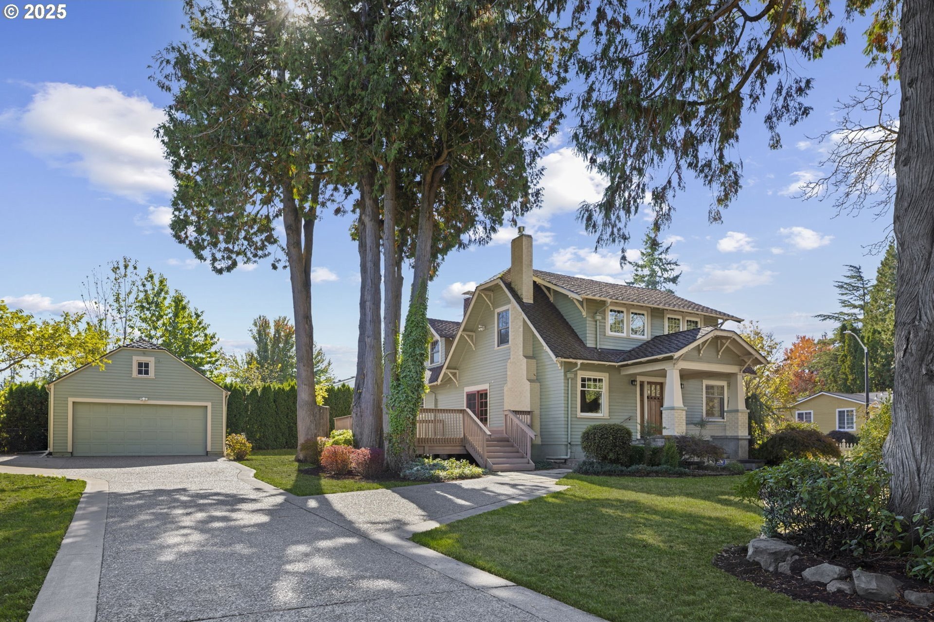 Step into this charming 1920s home, beautifully situated on an oversized lot. Rich in character, this residence features gleaming oak and fir hardwood floors, elegant box beams, double-pane wood-clad windows, and classic built-ins. The home seamlessly blends old-world charm—crystal knobs, vintage fixtures, and a clawfoot tub—with modern updates for today’s lifestyle. The stunningly remodeled bathroom is a true showpiece, showcasing marble and designer tile. The kitchen is a chef’s delight with quartz countertops, stainless steel appliances, and a new range. An extra-large detached garage offers ample storage or workspace, while the spacious basement provides room to grow. Outdoors, enjoy mature trees, a park-like lawn perfect for play, and the privacy only an estate lot can offer.