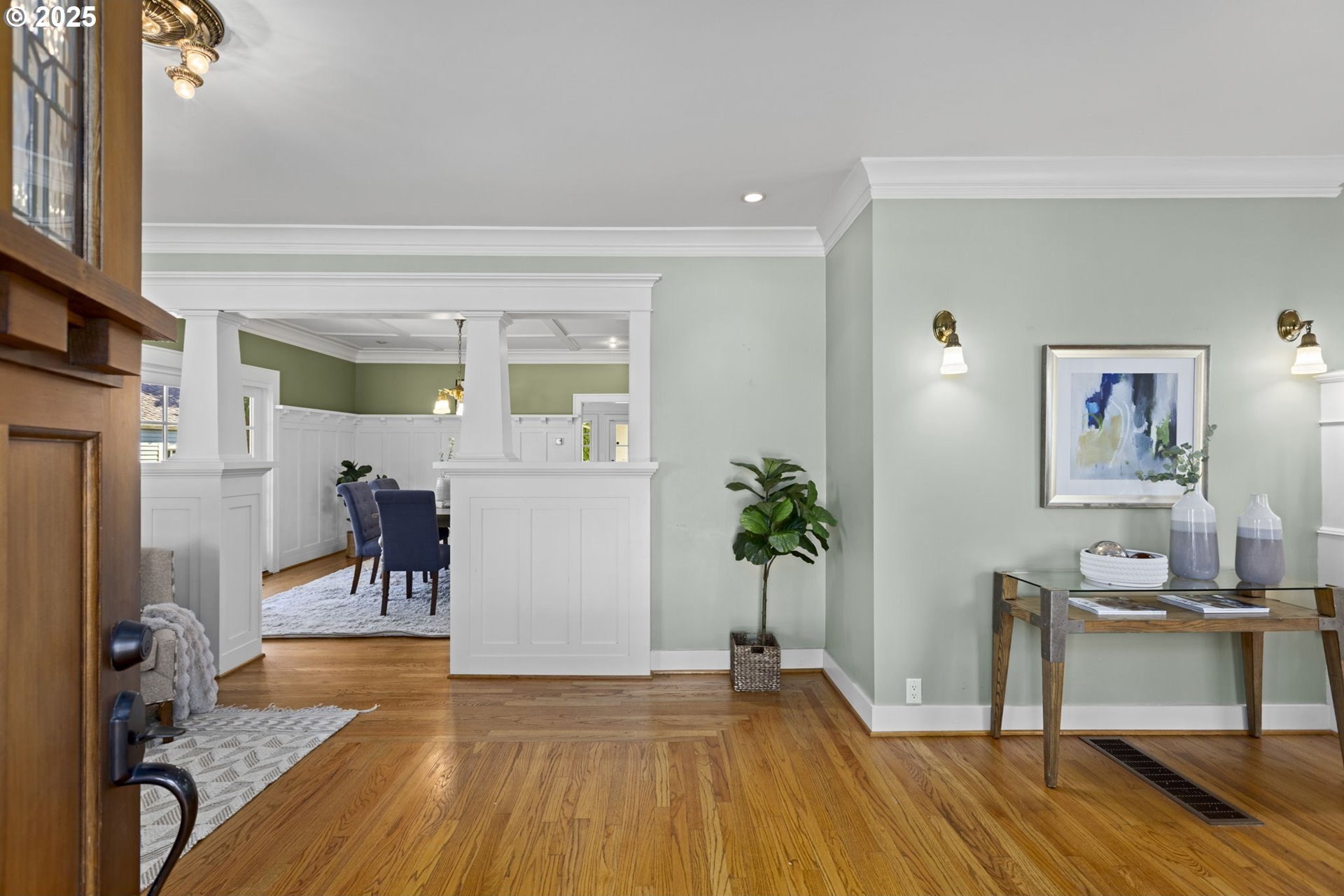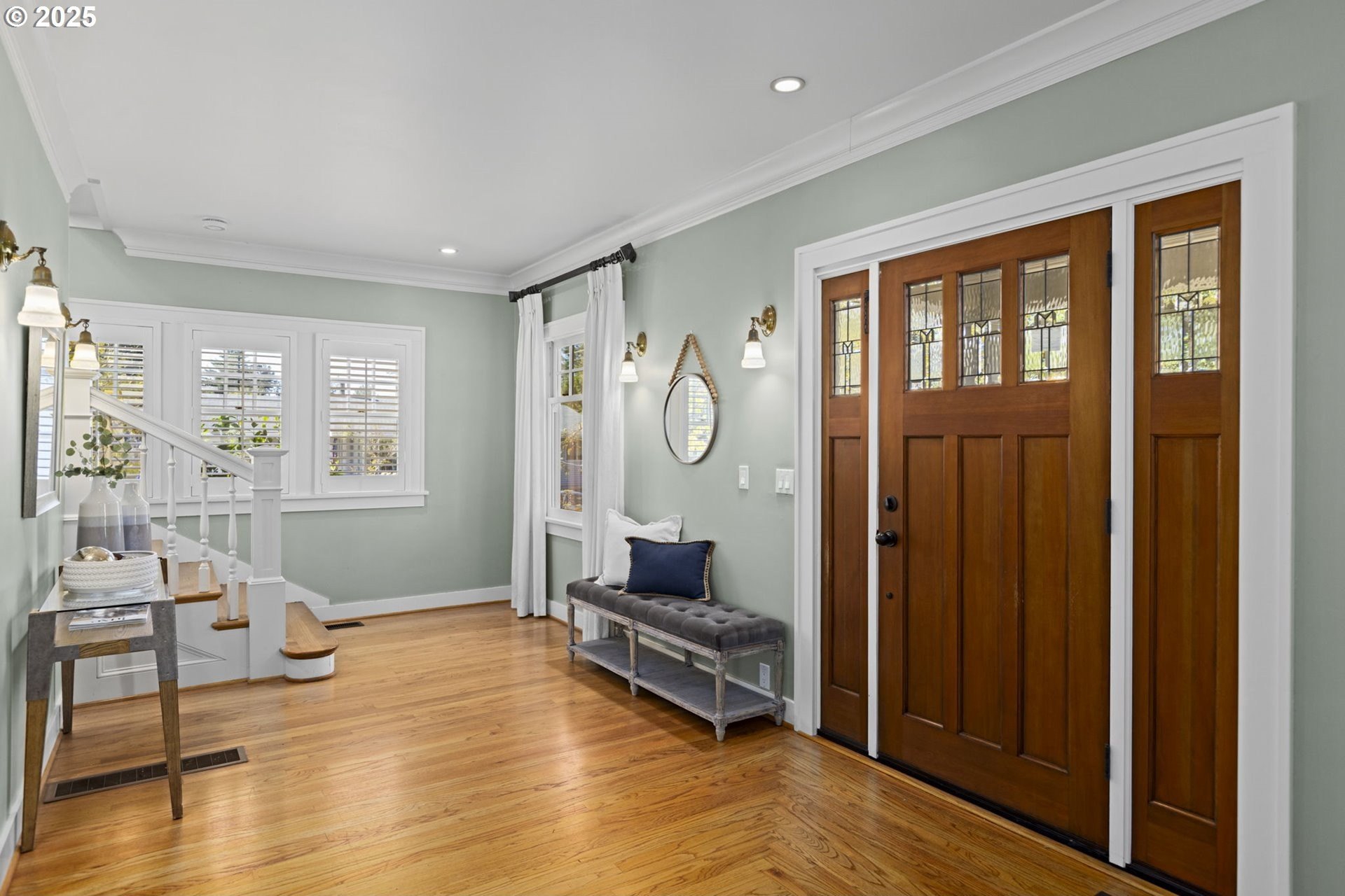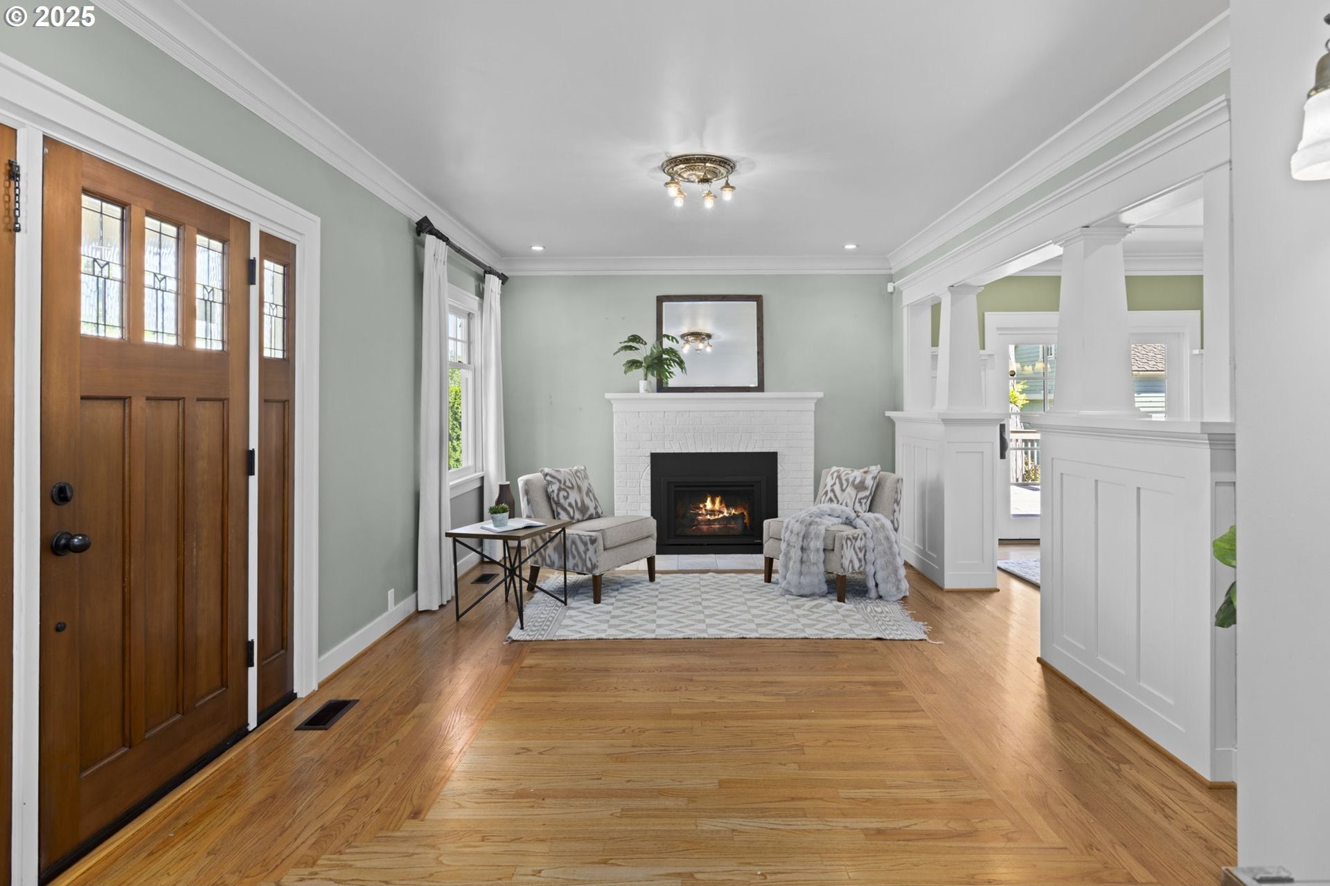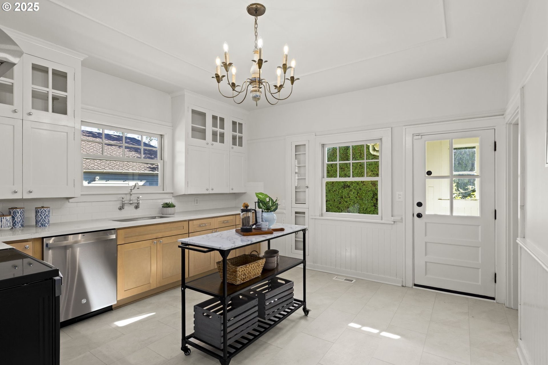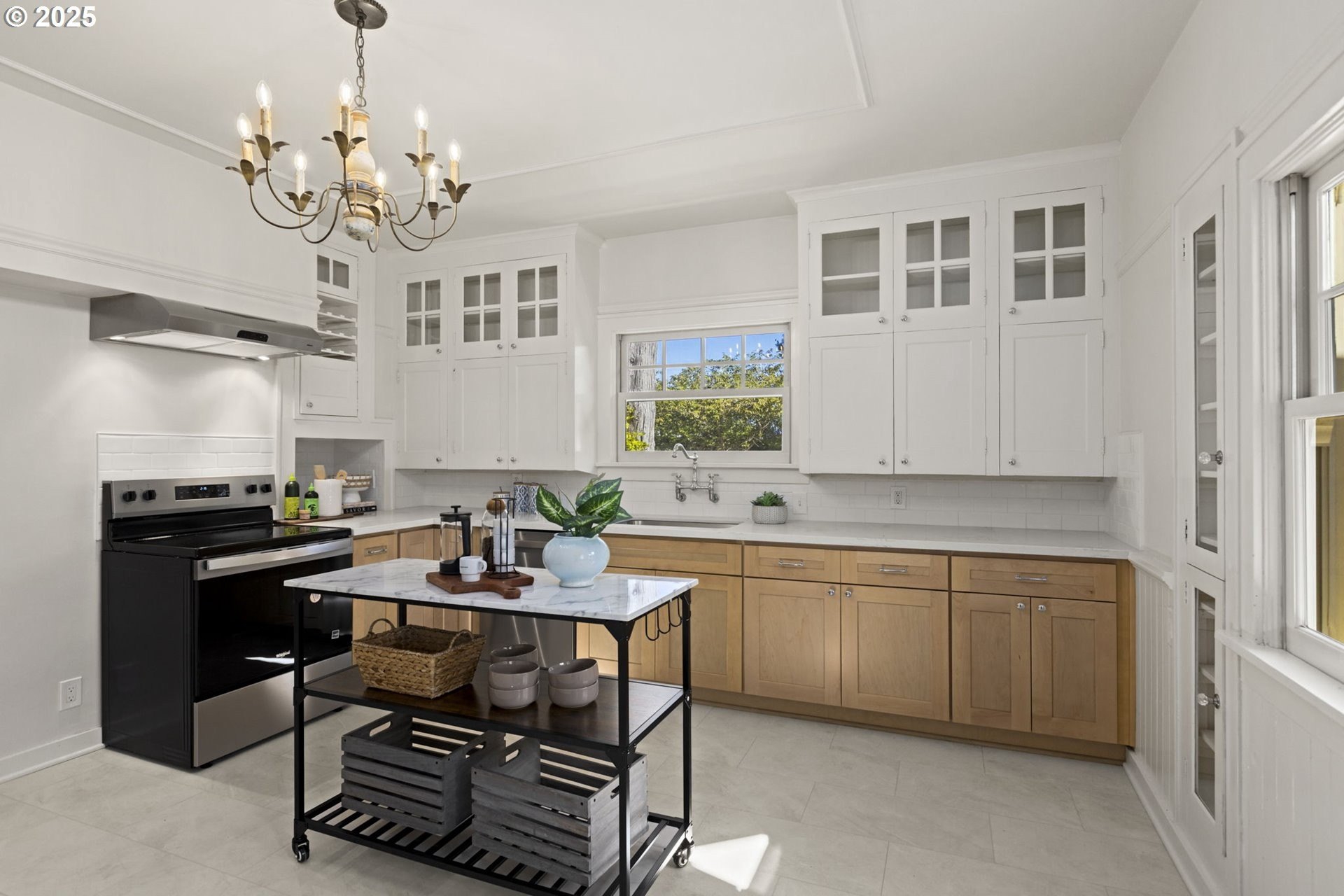 Step into this charming 1920s home, beautifully situated on an oversized lot. Rich in character, this residence features gleaming oak and fir hardwood floors, elegant box beams, double-pane wood-clad windows, and classic built-ins. The home seamlessly blends old-world charm—crystal knobs, vintage fixtures, and a clawfoot tub—with modern updates for today’s lifestyle. The stunningly remodeled bathroom is a true showpiece, showcasing marble and designer tile. The kitchen is a chef’s delight with quartz countertops, stainless steel appliances, and a new range. An extra-large detached garage offers ample storage or workspace, while the spacious basement provides room to grow. Outdoors, enjoy mature trees, a park-like lawn perfect for play, and the privacy only an estate lot can offer.