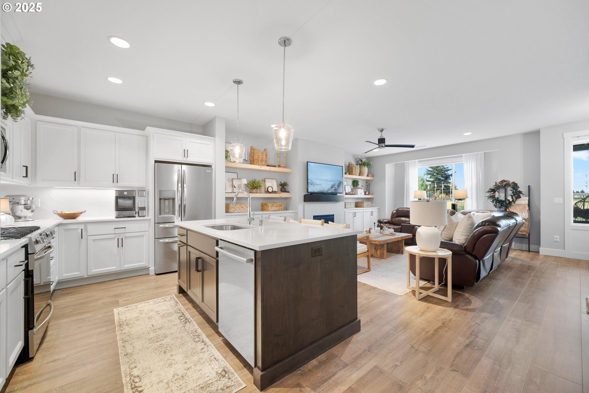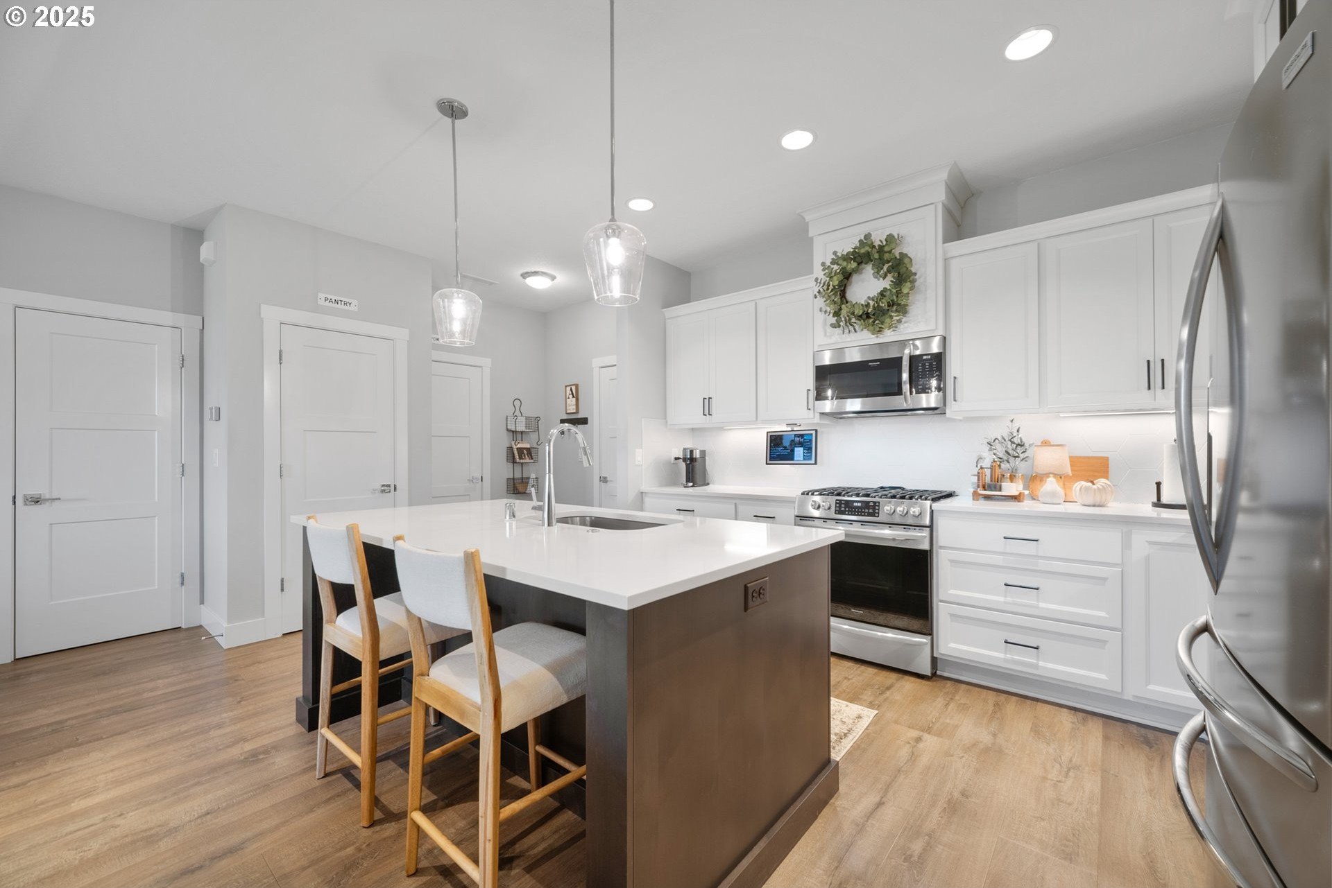 Welcome to this luxury 2020-built townhome offering the perfect blend of modern design, comfort, and convenience. With 1,946 sqft of thoughtfully designed living space, this home stands out for its upscale finishes, open layout, and energy-efficient features—ideal for those who value both style and practicality. Step inside to discover a bright, inviting interior highlighted by 9-foot ceilings, large windows, and a spacious open floor plan that seamlessly connects the living and kitchen areas. The chef’s kitchen is a showpiece with quartz countertops, a large island, gas range, and beautiful contemporary cabinetry—perfect for entertaining or enjoying quiet evenings at home. The living area offers comfort and warmth with a gas fireplace, creating the perfect setting for relaxation. Modern touches and high-end details throughout make this home feel fresh and refined, while the central air conditioning and energy-efficient forced-air heating system ensure year-round comfort. Upstairs, you’ll find a spacious primary suite featuring a walk-in closet and a beautifully appointed private bath with double sinks, walk-in shower and elegant finishes. A loft area offers versatile space—perfect for a home office, media room, or play area. Additional bedrooms are generously sized, providing flexibility for guests, family, or work-from-home needs.The two-car garage adds convenience and extra storage, while the low-maintenance exterior allows you to spend more time enjoying your surroundings. Located in a well-maintained community with play areas and walking paths, this townhome offers a welcoming neighborhood atmosphere. Enjoy morning walks, connect with neighbors, or simply relax in the peaceful outdoor spaces. Perfectly situated just down the street from Prairie High School, this home provides easy access to local parks, shopping, and dining, while still maintaining a quiet residential feel.