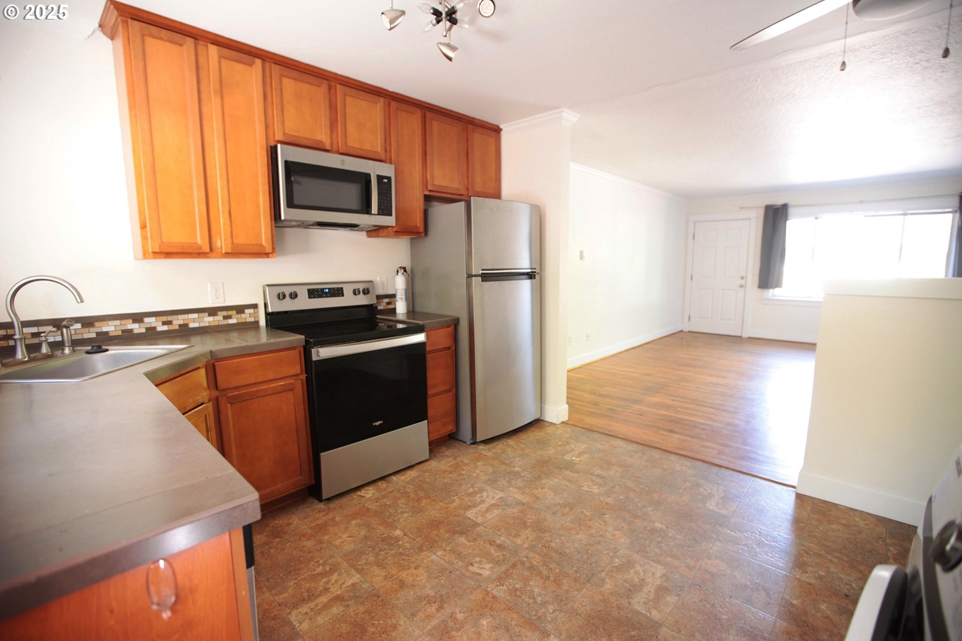 Picture this. You roll out of bed in one of the two bedrooms in your adorable 2 bed/1 bath condo, make your way to the kitchen, and brew a cup of Portland’s finest java. Then you head out your back door to the sweet private yard with the pooch you adopted from the Humane Society for Southwest Washington (yeah, that’s a plug) and listen to the birds chittering among themselves as you sip. Ahhhhh! Time to start your day, you put the mug in the dishwasher and run a load of laundry in the washer and dryer. As you cross the hardwood floors to the front door to head out, you tot up the errands you need to run. Take the car? It’s right there, in your reserved parking space right out front. But nah, you can do all you need to do in St. Johns. It’s less than a dozen blocks to Cathedral Park, the post office, banks, shopping, restaurants, coffee houses, brew pubs, thrift shops, and churches. As you close the door behind you, you realize. You didn't just buy a condo. You bought a lifestyle. A really lovely one at that.