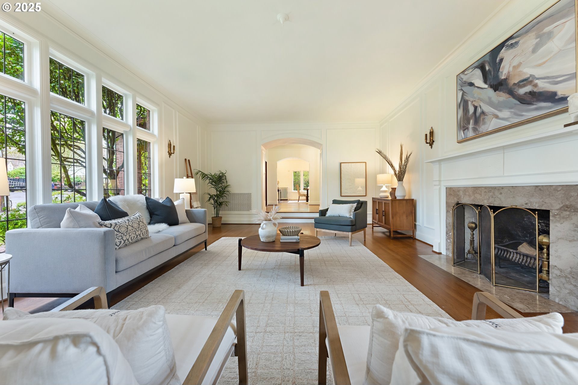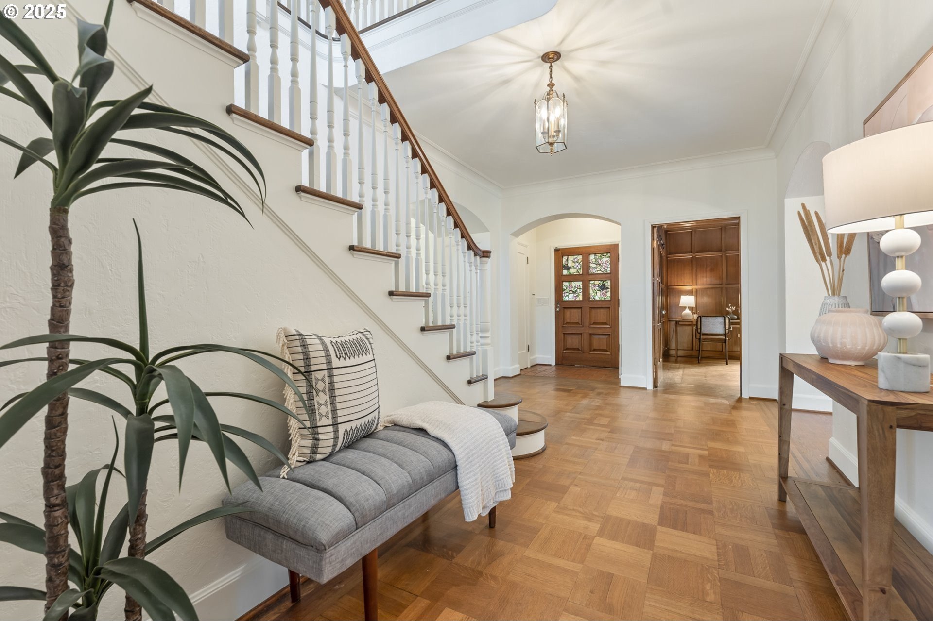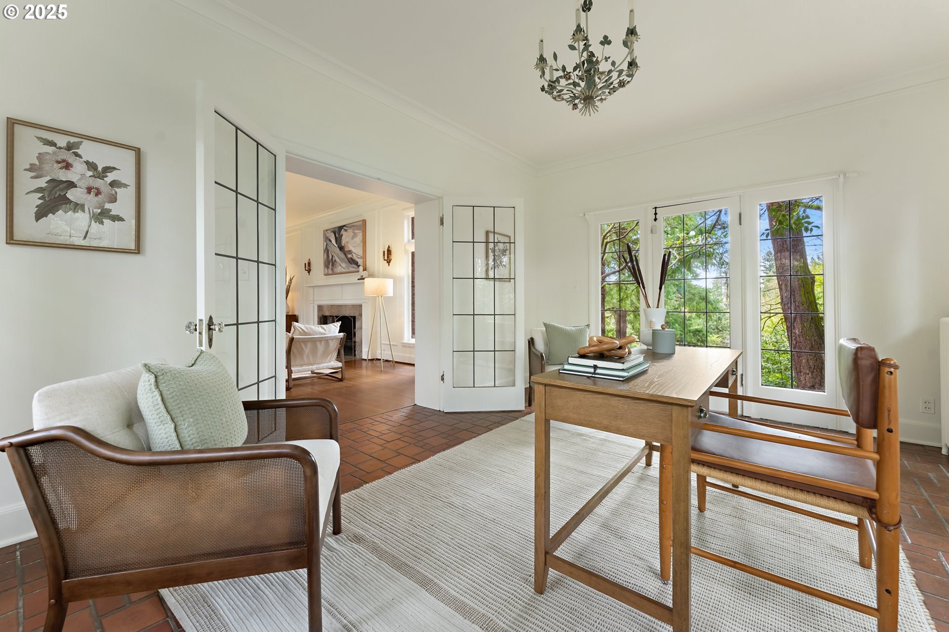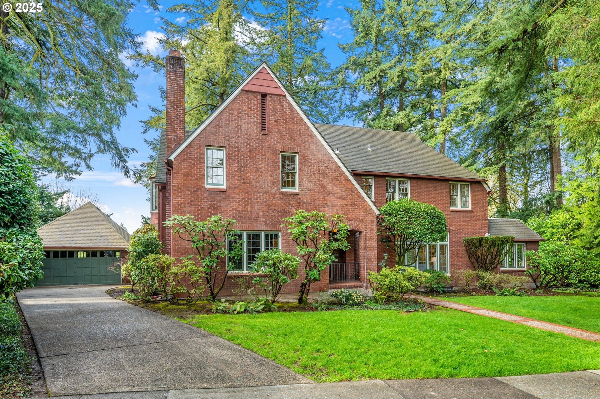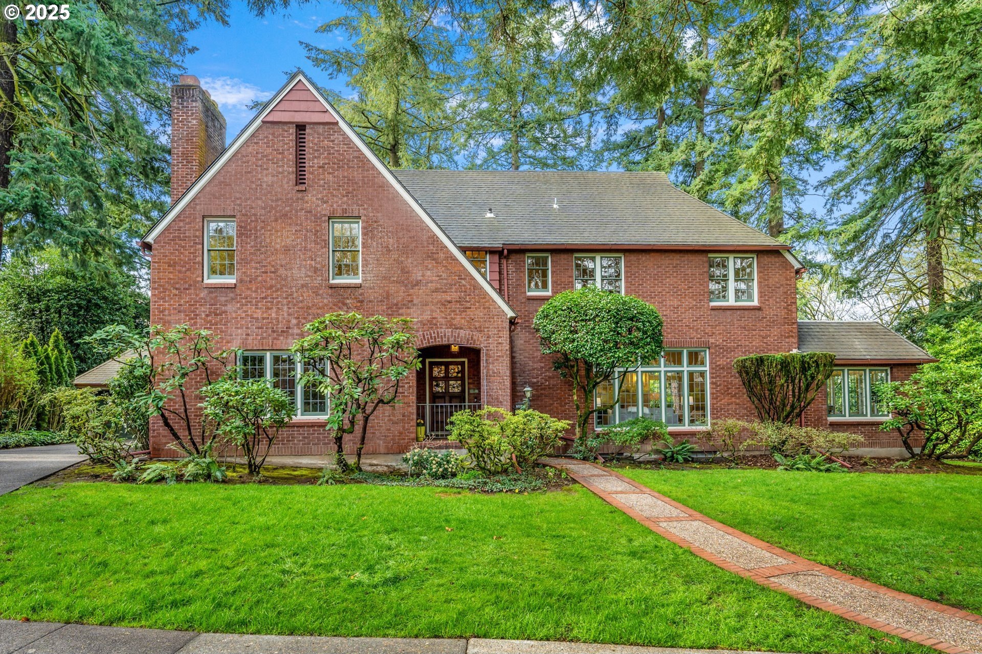 Set in the idyllic Eastmoreland neighborhood, this stunning English Tudor Revival estate is a rare opportunity to own an iconic piece of Portland’s history. Discover this urban sanctuary with lush mature landscaping on a generous .65 acre lot adjacent to the historic Eastmoreland Golf Course. Enter the stately foyer, where soaring ceilings and refined architectural details evoke an immediate sense of grandeur and timeless sophistication. Features include intricate stained glass, built-ins, leaded glass windows, vintage tiled bathrooms, original hardwood floors, and exquisite craftsmanship throughout. The grand living room, fit for dignitaries, impresses with its refined, spacious elegance. A formal dining room, reminiscent of a bygone era, is perfect for entertaining, while the large study, adorned with classic mahogony paneling, offers a distinguished workspace. The sunroom seamlessly connects to the backyard, inviting natural light and integrating indoor comfort with outdoor beauty.The grand staircase leads to the upper level, featuring lofty ceilings, four bedrooms, two bathrooms, two fireplaces, and two sundecks. The spacious primary bedroom with gorgeous views of the surrounding greenery is a splendid sanctuary from the bustle of life. With its brick façade, majestic staircase, and stately presence, this home is a rare blend of history and elegance, waiting to be rediscovered.All measurements are approximate, buyers to do their own due diligence. BRAND NEW 400 amp electric panel, new french drain and dry well. [Home Energy Score = 1. HES Report at https://rpt.greenbuildingregistry.com/hes/OR10236834]
