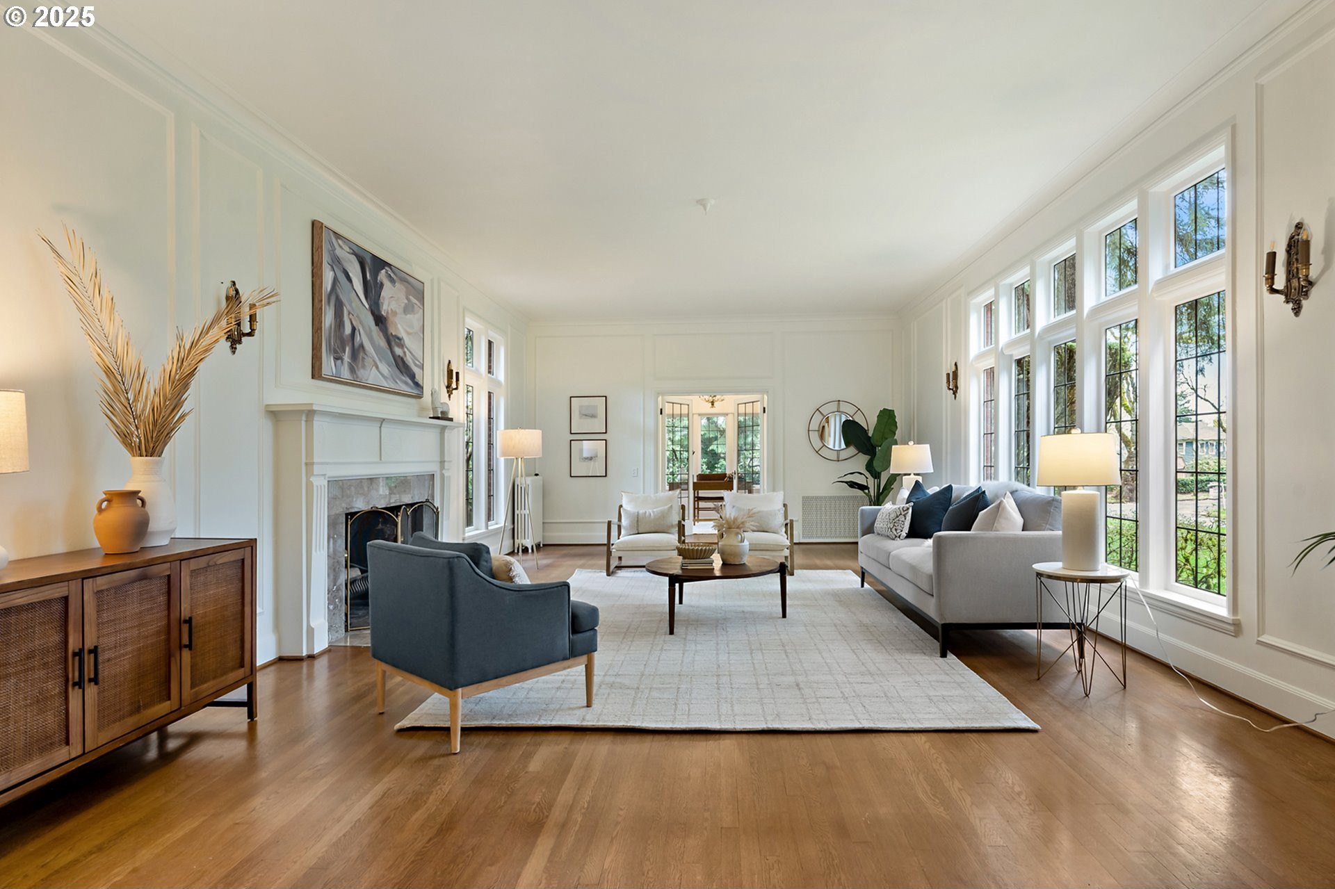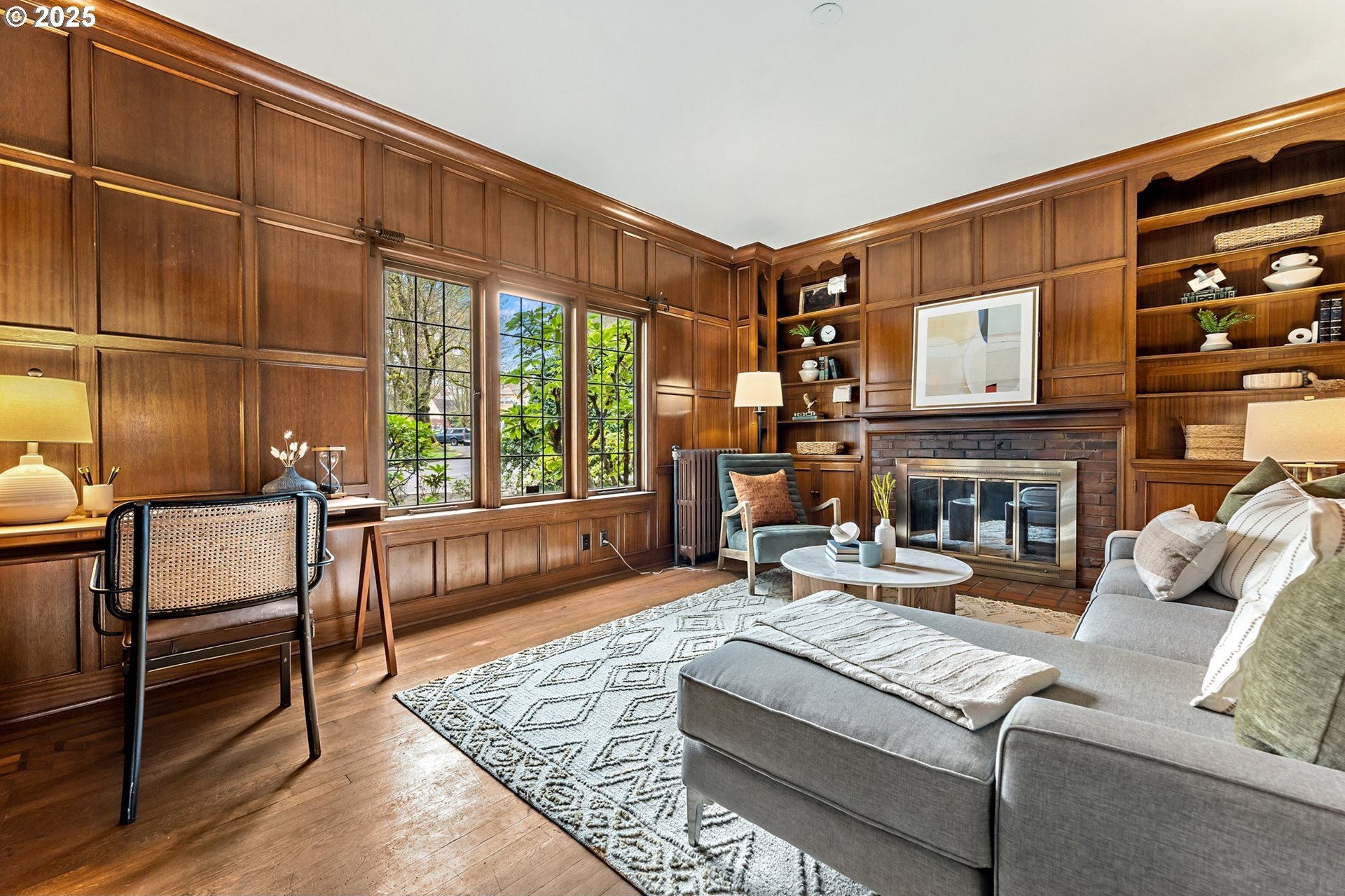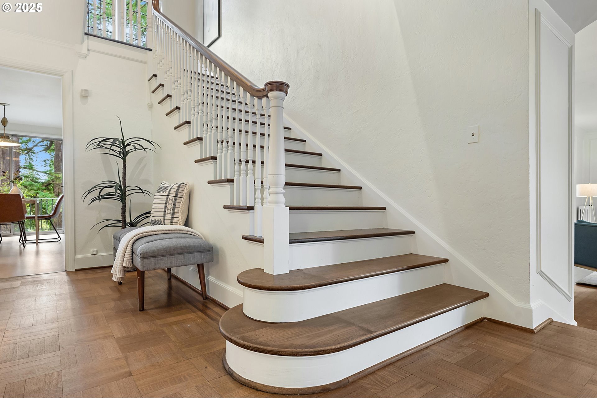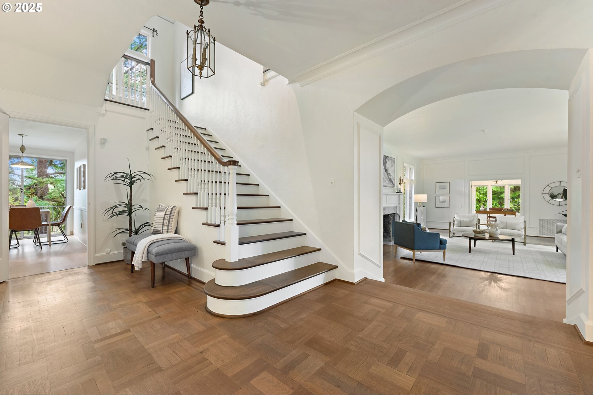 Set in the idyllic Eastmoreland neighborhood, this stunning English Tudor Revival estate is a rare opportunity to own an iconic piece of Portland’s history. Discover this urban sanctuary with lush mature landscaping on a generous .65 acre lot adjacent to the historic Eastmoreland Golf Course. Enter the stately foyer, where soaring ceilings and refined architectural details evoke an immediate sense of grandeur and timeless sophistication. Features include intricate stained glass, built-ins, leaded glass windows, vintage tiled bathrooms, original hardwood floors, and exquisite craftsmanship throughout. The grand living room, fit for dignitaries, impresses with its refined, spacious elegance. A formal dining room, reminiscent of a bygone era, is perfect for entertaining, while the large study, adorned with classic mahogony paneling, offers a distinguished workspace. The sunroom seamlessly connects to the backyard, inviting natural light and integrating indoor comfort with outdoor beauty.The grand staircase leads to the upper level, featuring lofty ceilings, four bedrooms, two bathrooms, two fireplaces, and two sundecks. The spacious primary bedroom with gorgeous views of the surrounding greenery is a splendid sanctuary from the bustle of life. With its brick façade, majestic staircase, and stately presence, this home is a rare blend of history and elegance, waiting to be rediscovered.All measurements are approximate, buyers to do their own due diligence. BRAND NEW 400 amp electric panel, new french drain and dry well. [Home Energy Score = 1. HES Report at https://rpt.greenbuildingregistry.com/hes/OR10236834]