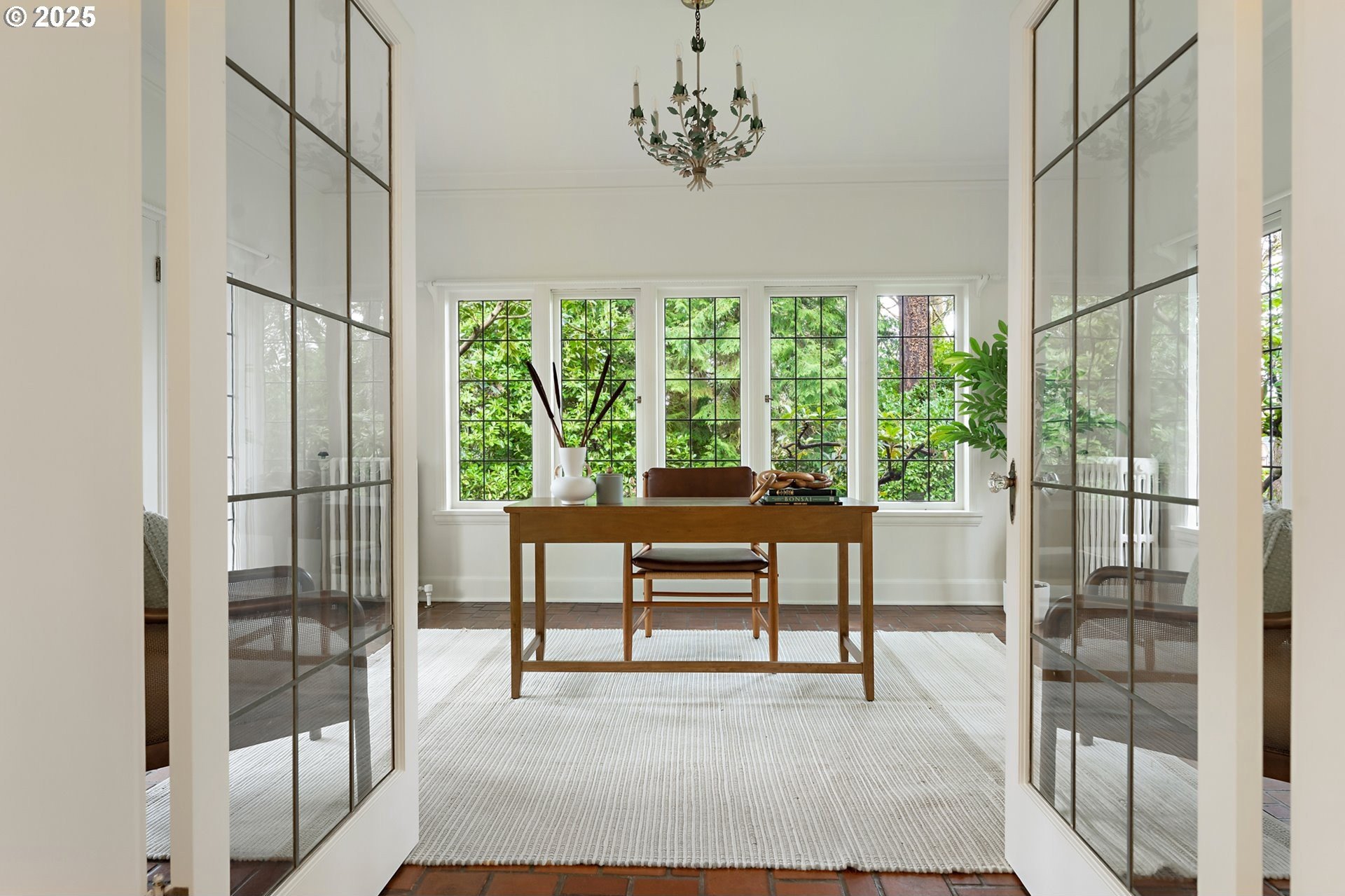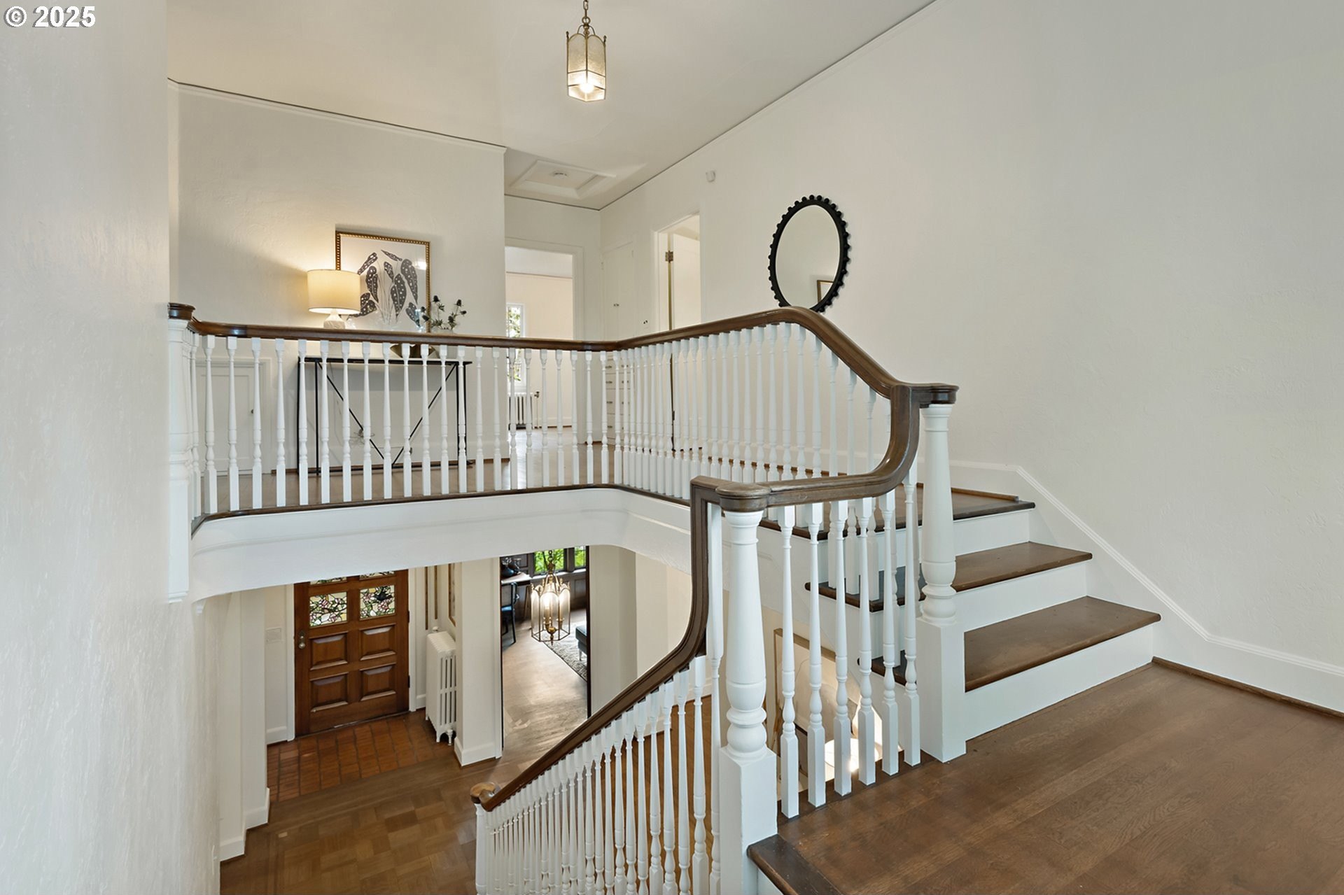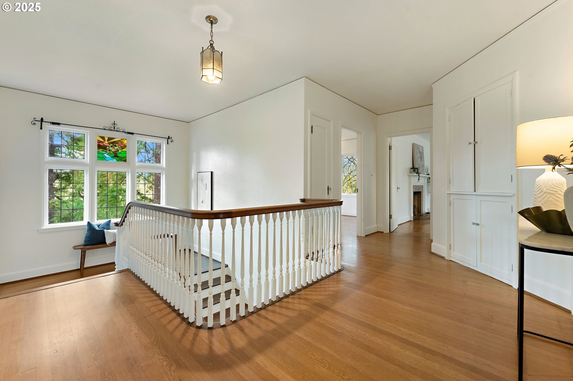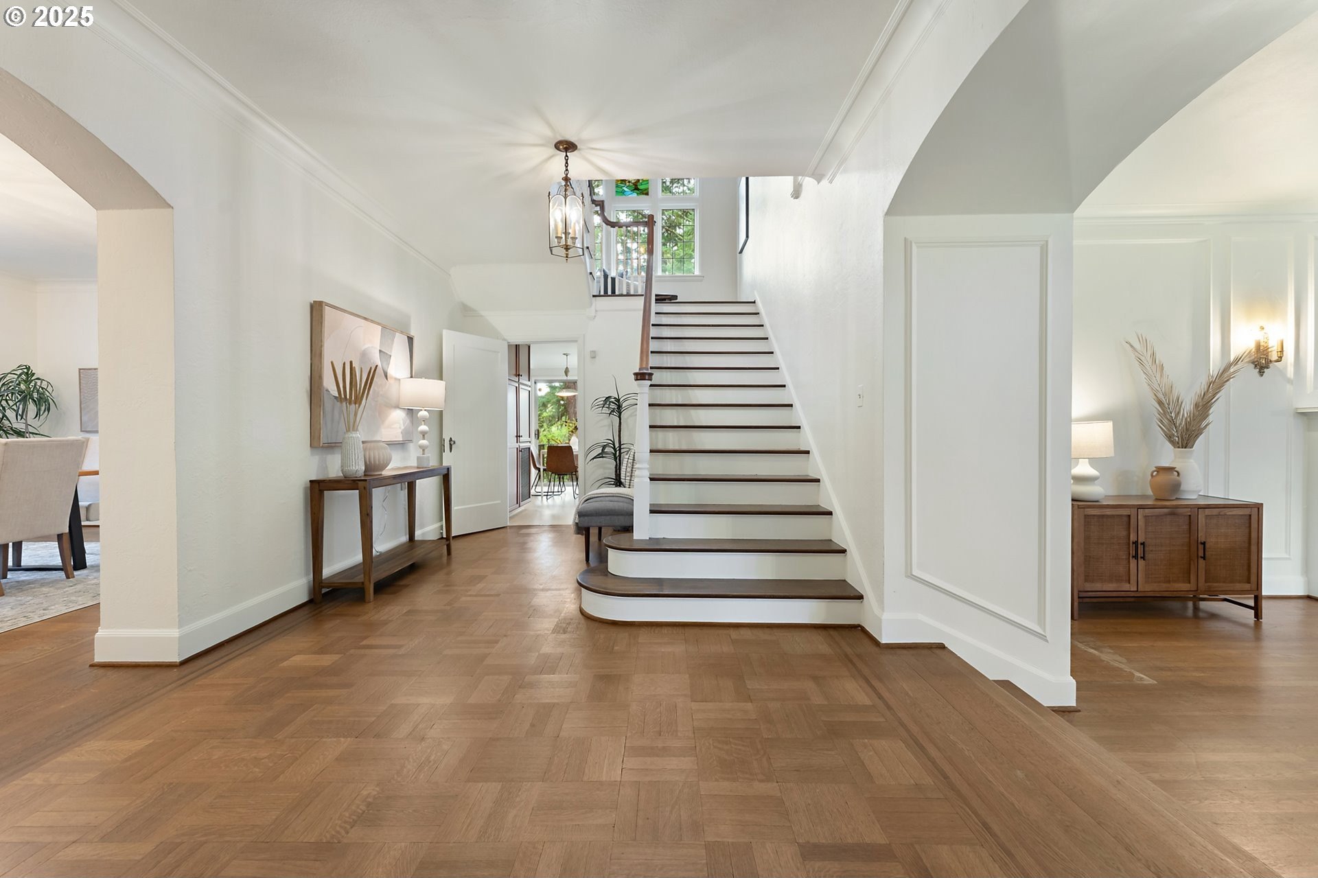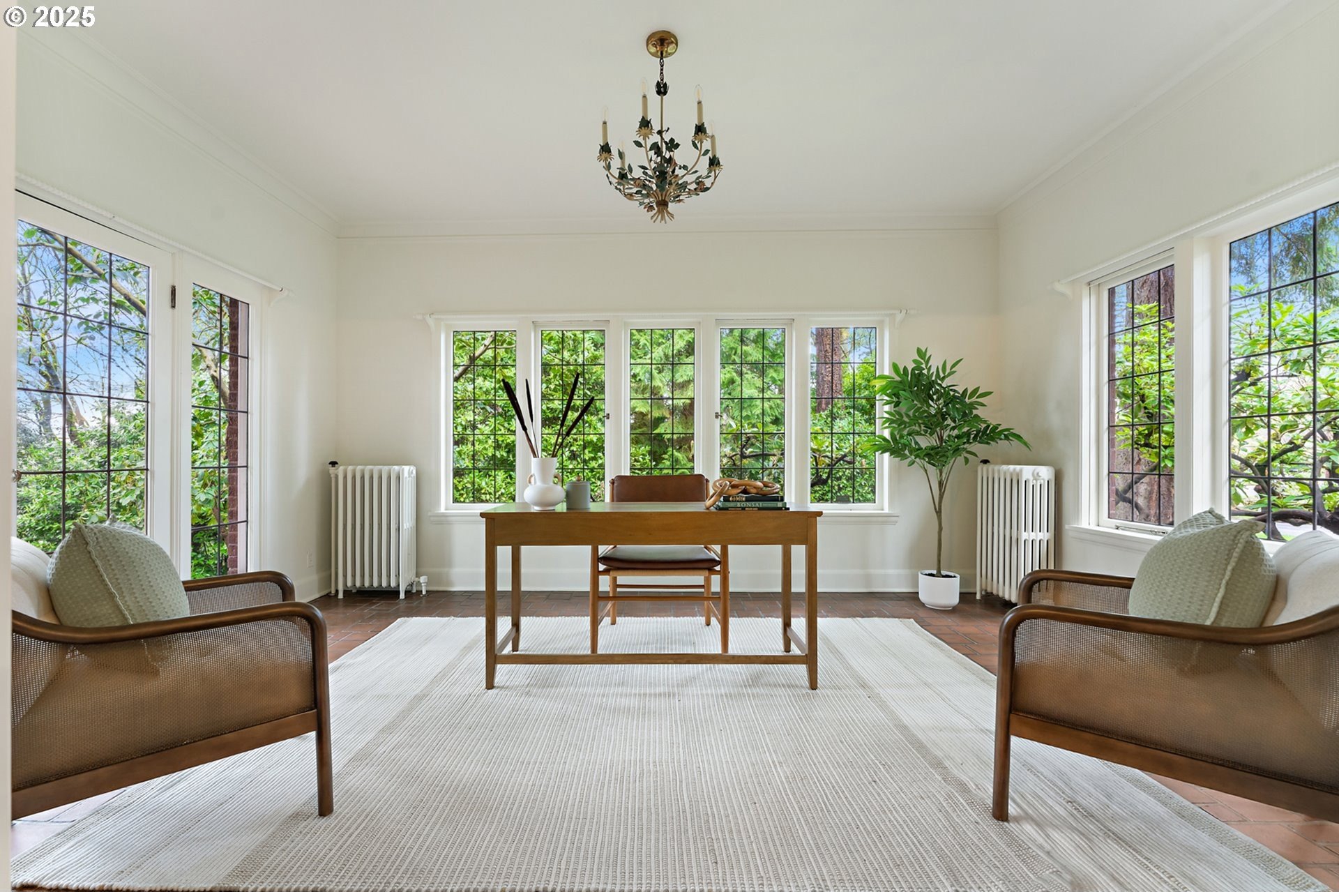Set in the idyllic Eastmoreland neighborhood, this stunning English Tudor Revival estate is a rare opportunity to own an iconic piece of Portland’s history. Discover this urban sanctuary with lush mature landscaping on a generous .65 acre lot adjacent to the historic Eastmoreland Golf Course. Enter the stately foyer, where soaring ceilings and refined architectural details evoke an immediate sense of grandeur and timeless sophistication. Features include intricate stained glass, built-ins, leaded glass windows, vintage tiled bathrooms, original hardwood floors, and exquisite craftsmanship throughout. The grand living room, fit for dignitaries, impresses with its refined, spacious elegance. A formal dining room, reminiscent of a bygone era, is perfect for entertaining, while the large study, adorned with classic mahogony paneling, offers a distinguished workspace. The sunroom seamlessly connects to the backyard, inviting natural light and integrating indoor comfort with outdoor beauty.The grand staircase leads to the upper level, featuring lofty ceilings, four bedrooms, two bathrooms, two fireplaces, and two sundecks. The spacious primary bedroom with gorgeous views of the surrounding greenery is a splendid sanctuary from the bustle of life. With its brick façade, majestic staircase, and stately presence, this home is a rare blend of history and elegance, waiting to be rediscovered.All measurements are approximate, buyers to do their own due diligence. BRAND NEW 400 amp electric panel, new french drain and dry well. [Home Energy Score = 1. HES Report at https://rpt.greenbuildingregistry.com/hes/OR10236834]