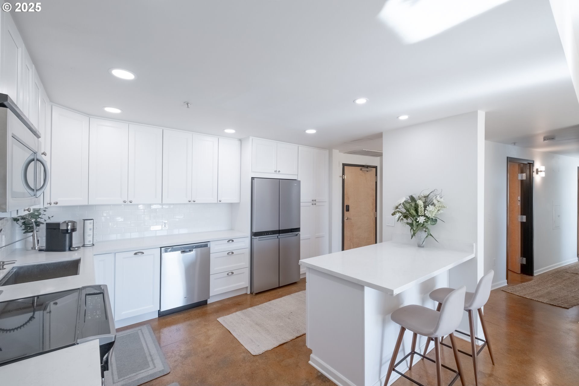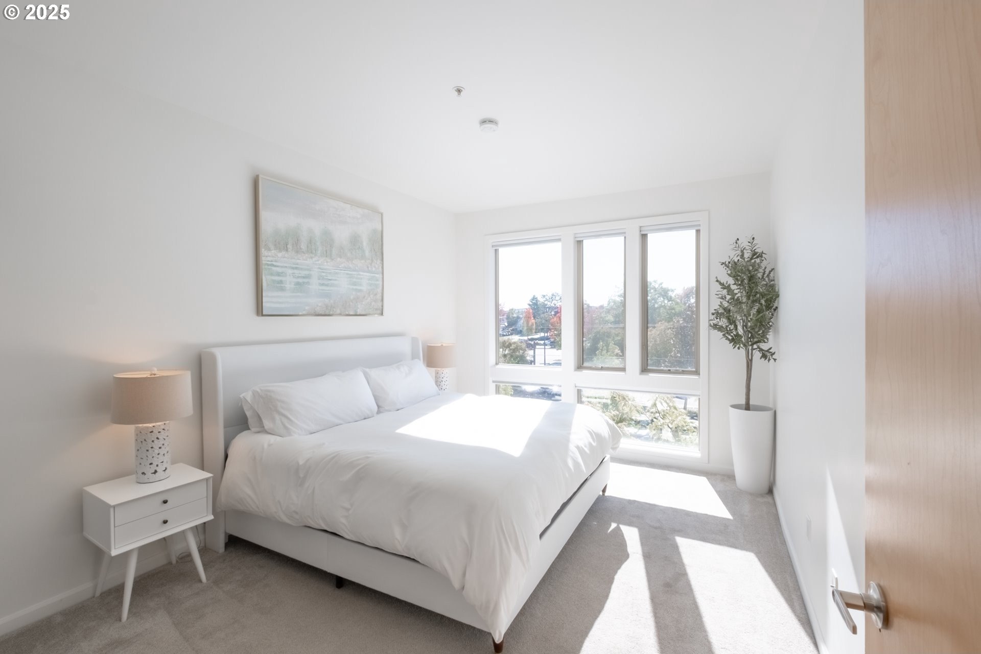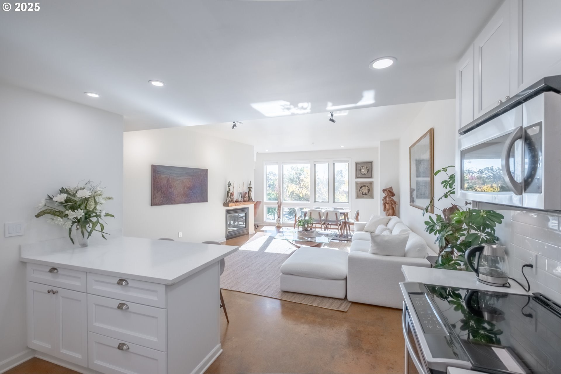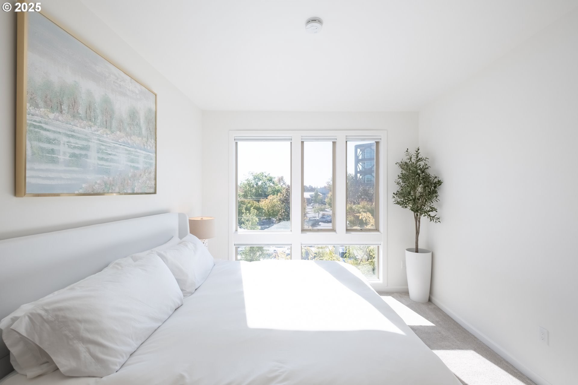 Step into modern condo living at The Round— This beautifully remodeled home features open-concept living, expansive windows, high ceilings, and serene territorial views. The kitchen shines with sleek quartz countertops, stainless-steel appliances, and a modern aesthetic perfect for entertaining. The bathroom offers dual sinks, tile flooring, and a large glass-enclosed shower with modern tile enclosure.The primary bedroom showcases floor-to-ceiling windows and a spacious walk-in closet, while the second bedroom opens to a private deck. Enjoy the perks of a secured building with elevators, garage parking with EV-charging capability. Just steps from the MAX Light Rail, this prime location connects you effortlessly to Portland and beyond. Surrounded by Beaverton’s best dining, coffee, and nightlife—including food carts, pubs, and The Reser Center for the Arts—plus restaurants. Walk Score 97 / Bike Score 84 – premier urban living in a secure, modern building at the center of Beaverton’s vibrant expansion.