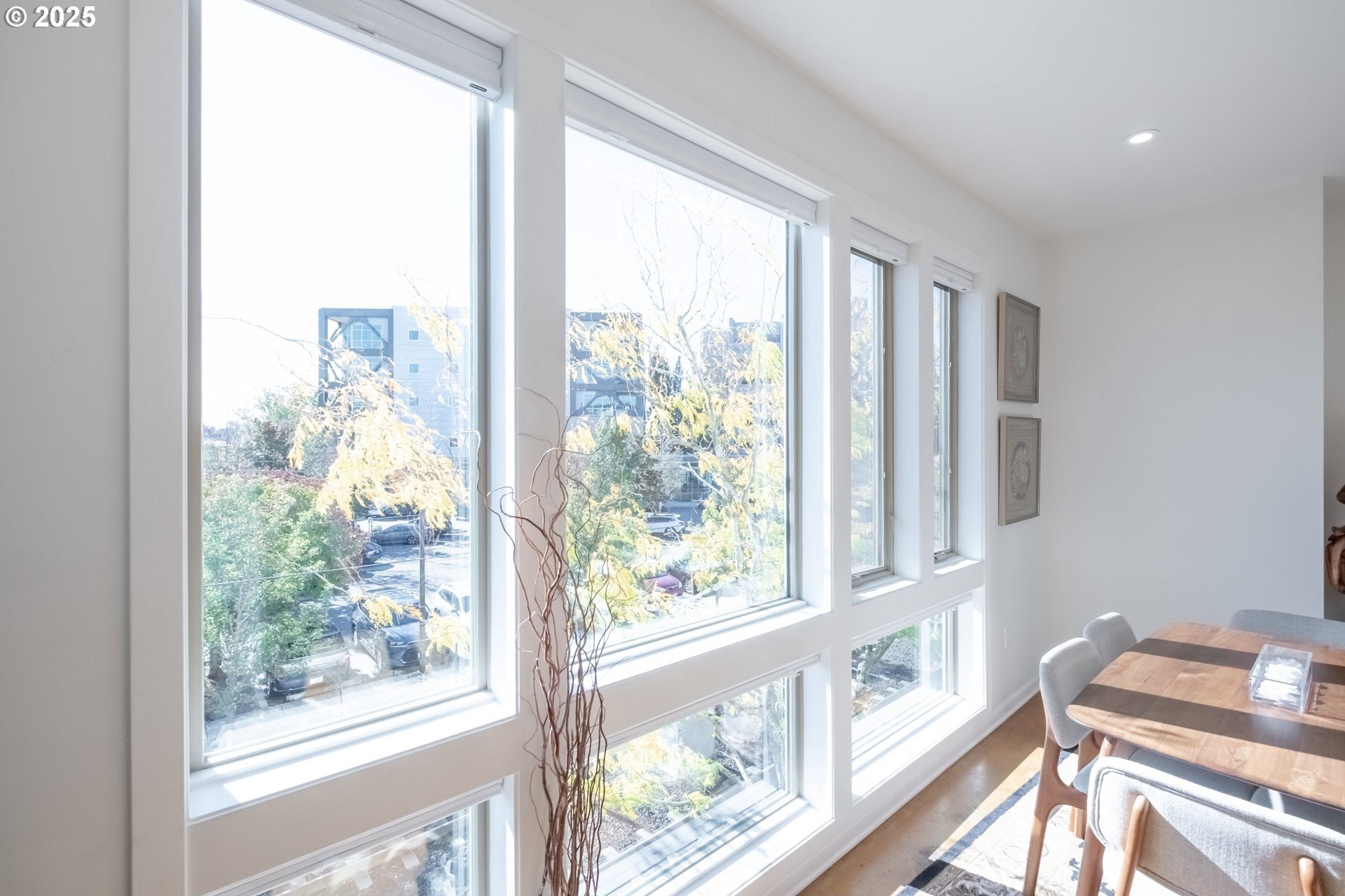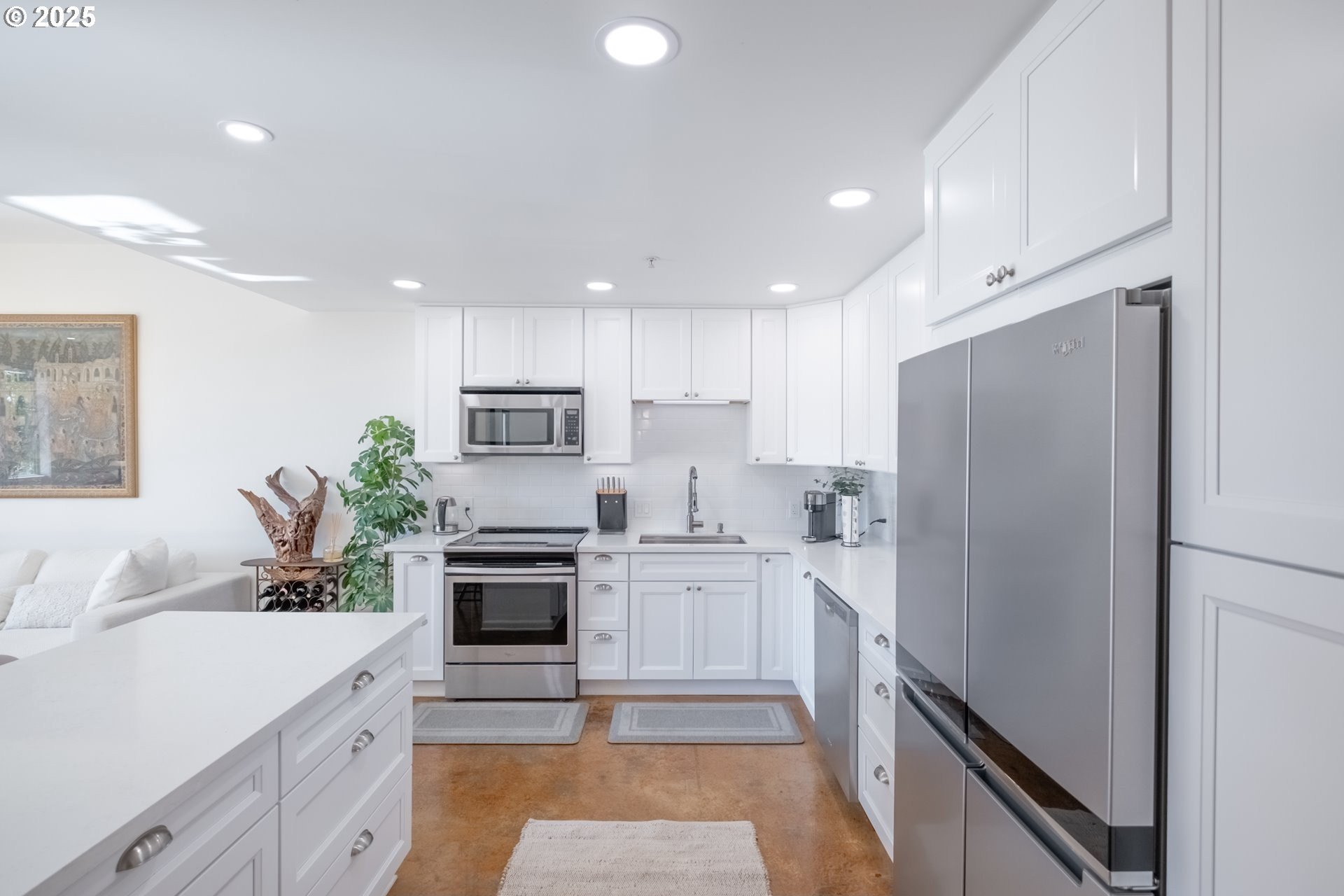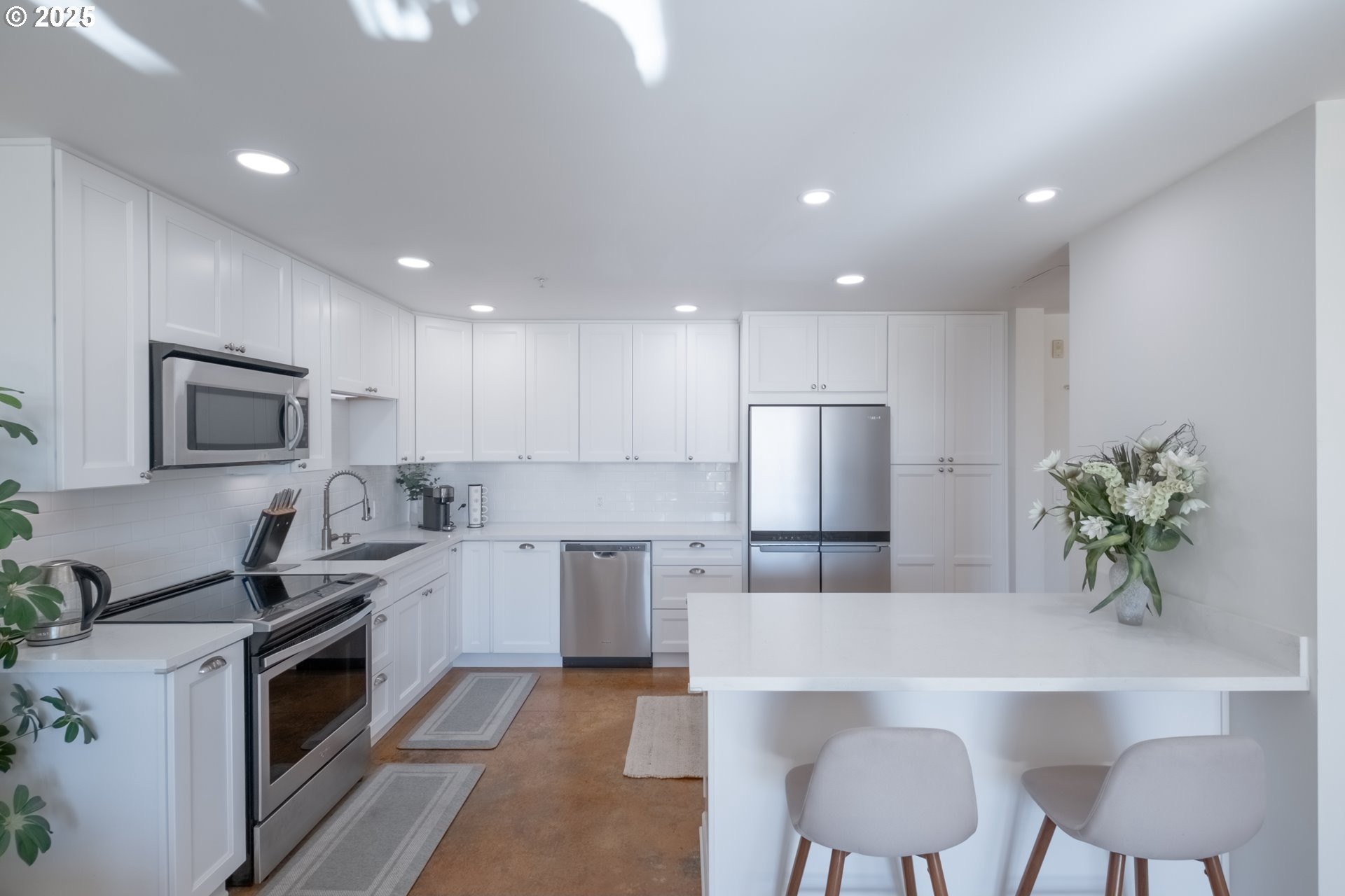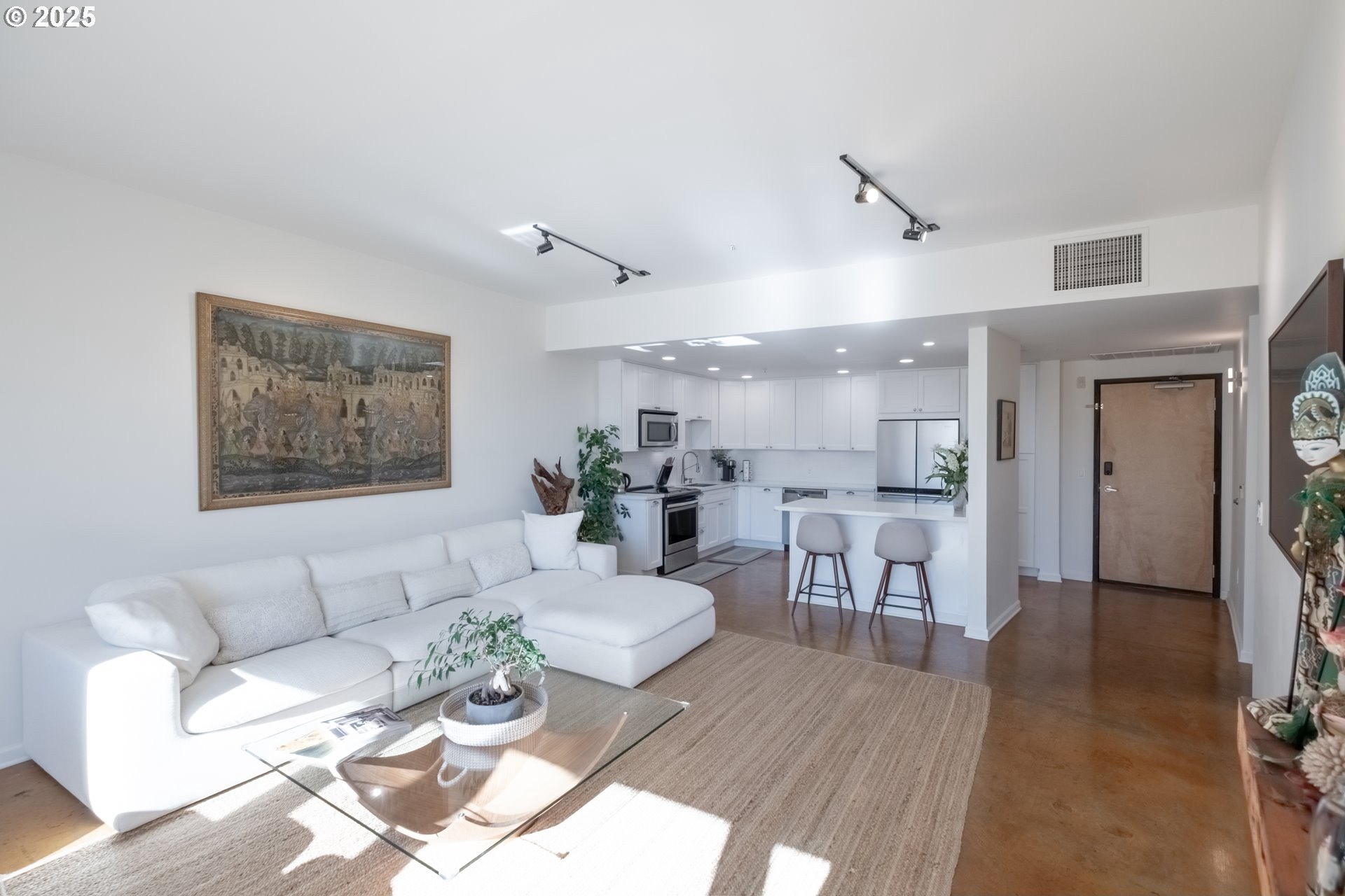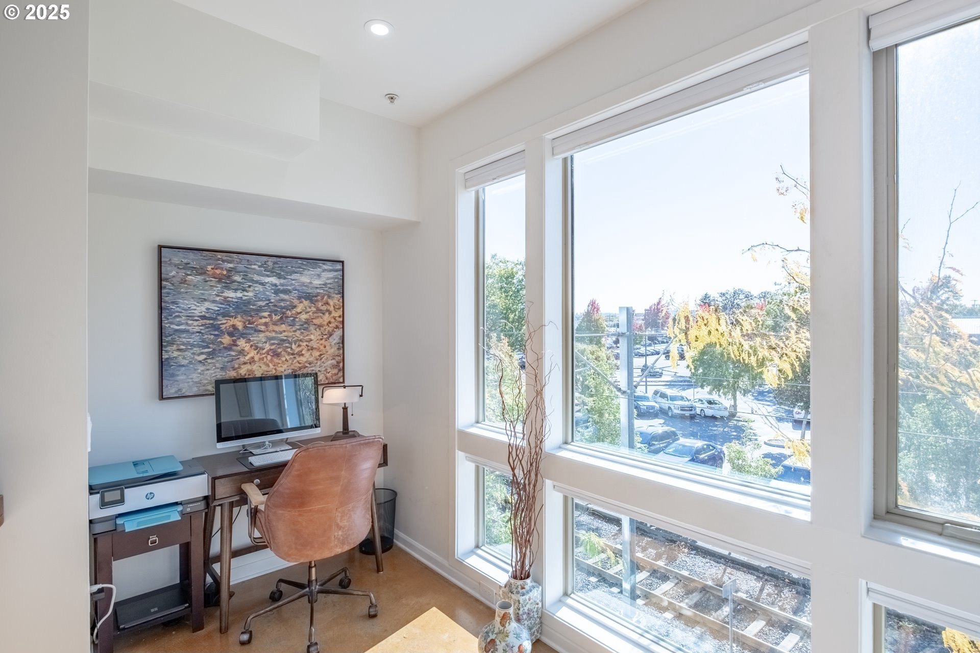 Step into modern condo living at The Round— This beautifully remodeled home features open-concept living, expansive windows, high ceilings, and serene territorial views. The kitchen shines with sleek quartz countertops, stainless-steel appliances, and a modern aesthetic perfect for entertaining. The bathroom offers dual sinks, tile flooring, and a large glass-enclosed shower with modern tile enclosure.The primary bedroom showcases floor-to-ceiling windows and a spacious walk-in closet, while the second bedroom opens to a private deck. Enjoy the perks of a secured building with elevators, garage parking with EV-charging capability. Just steps from the MAX Light Rail, this prime location connects you effortlessly to Portland and beyond. Surrounded by Beaverton’s best dining, coffee, and nightlife—including food carts, pubs, and The Reser Center for the Arts—plus restaurants. Walk Score 97 / Bike Score 84 – premier urban living in a secure, modern building at the center of Beaverton’s vibrant expansion.