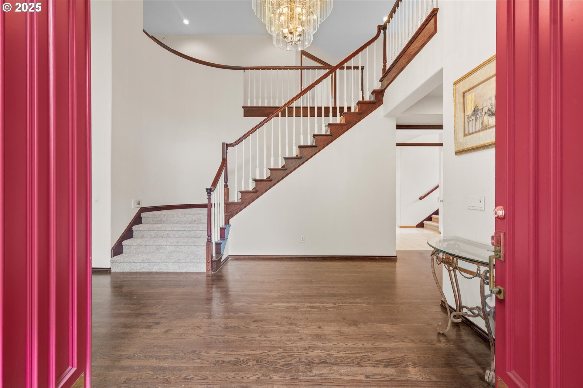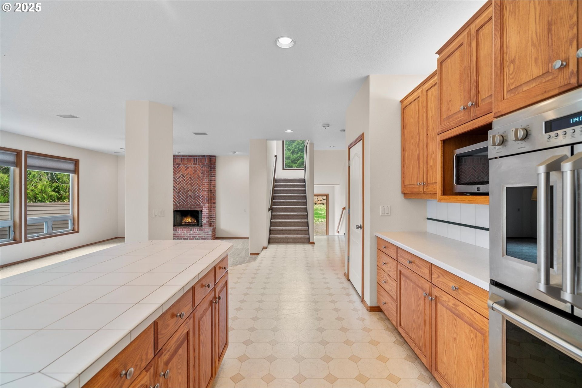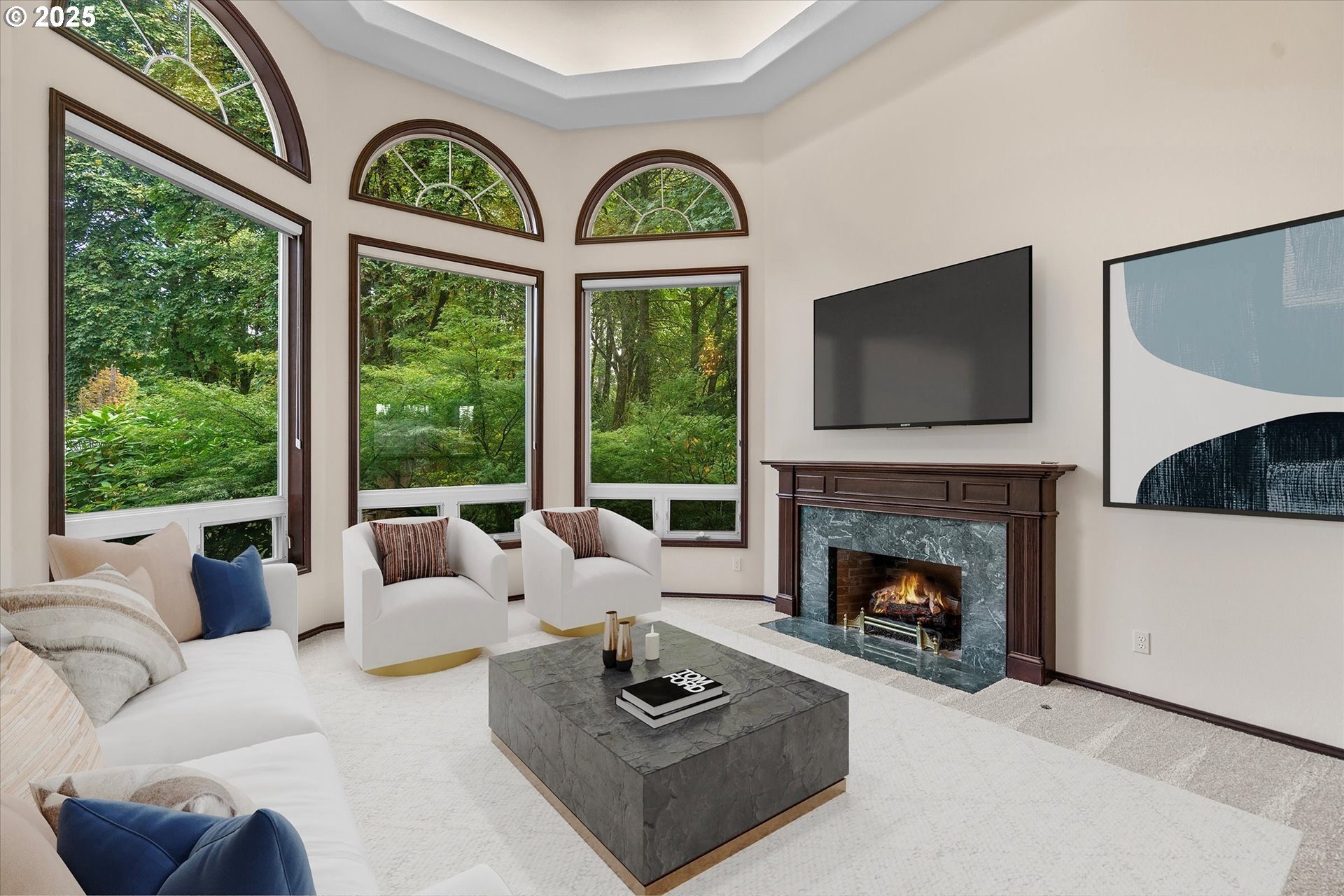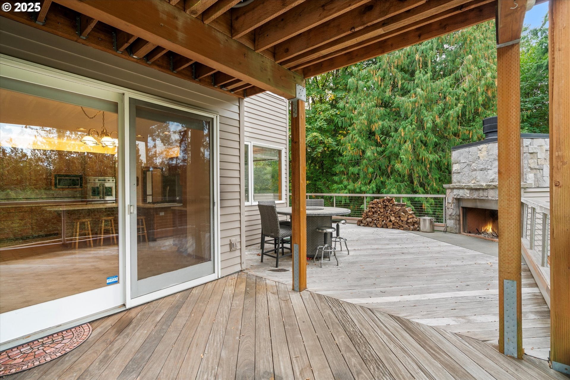 Nestled in the peaceful hills of Portland, this one-of-a-kind, one-owner retreat offers the perfect blend of privacy, nature, and possibility. Set on two lush acres, this home is a true sanctuary surrounded by evergreens and tranquil beauty—an ideal canvas for your vision.Step through the grand entry into a bright, spacious interior where natural light pours through large windows and soaring ceilings elevate the open living space. A cozy fireplace anchors the living room, creating a warm and inviting atmosphere for both everyday living and entertaining.The open-concept kitchen is a gathering place at the heart of the home, featuring a generous cook island that flows seamlessly to the expansive ironwood deck. Outside, a stunning stone fireplace invites year-round outdoor living, with serene views overlooking the private property.The primary suite offers a peaceful retreat with scenic views and a spa-like en-suite bath. Additional bedrooms provide space for guests, family, or a dedicated home office. The unfinished lower level offers exciting potential—whether you envision a dream workshop, wine cellar, or creative studio. The expansive 3-car garage (962 sq ft) is complete with a 1/2-ton overhead crane.Outside, immerse yourself in the sights and sounds of nature. Enjoy coffee on the deck, take a walk through your own wooded acreage, or simply relax in the stillness. Though it feels a world away, you're just a short drive to downtown Portland—perfectly balancing seclusion and convenience.Don’t miss this rare opportunity to own a private, nature-filled escape with unlimited potential. Schedule your private showing today! [Home Energy Score = 2. HES Report at https://rpt.greenbuildingregistry.com/hes/OR10235082]