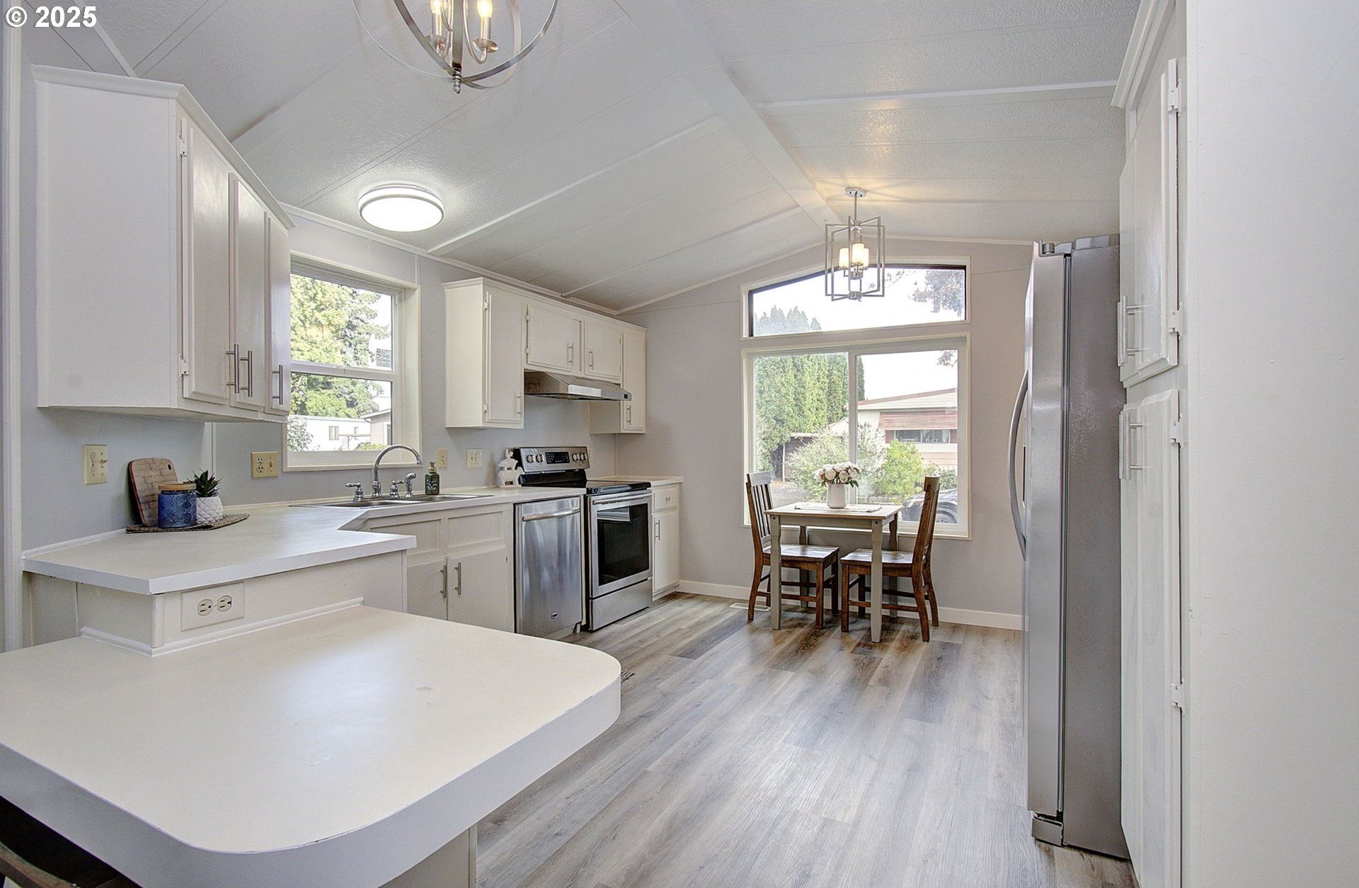 Discover your perfect retirement retreat with this light and bright single-wide manufactured home, nestled in a desirable over-55 senior park in the heart of Vancouver. Built in 1984, this 924 square foot home offers comfortable living with modern updates and spacious features. It features two bedrooms and two bathrooms, with vaulted ceilings that create an airy and open feel throughout. The home has been fully remodeled with all new flooring, fresh paint, and new windows, making it move-in ready. The large eat-in kitchen boasts plenty of cabinet space and includes all appliances, including a brand new refrigerator and a washer and dryer. The atmosphere is bright and inviting, ideal for an active and relaxed lifestyle. Located in a quiet, friendly community, this home is conveniently situated close to shopping, dining, and local amenities in Vancouver, combining style, comfort, and convenience all in one perfect package. The park offers RV storage for a small monthly fee. Schedule your viewing today!