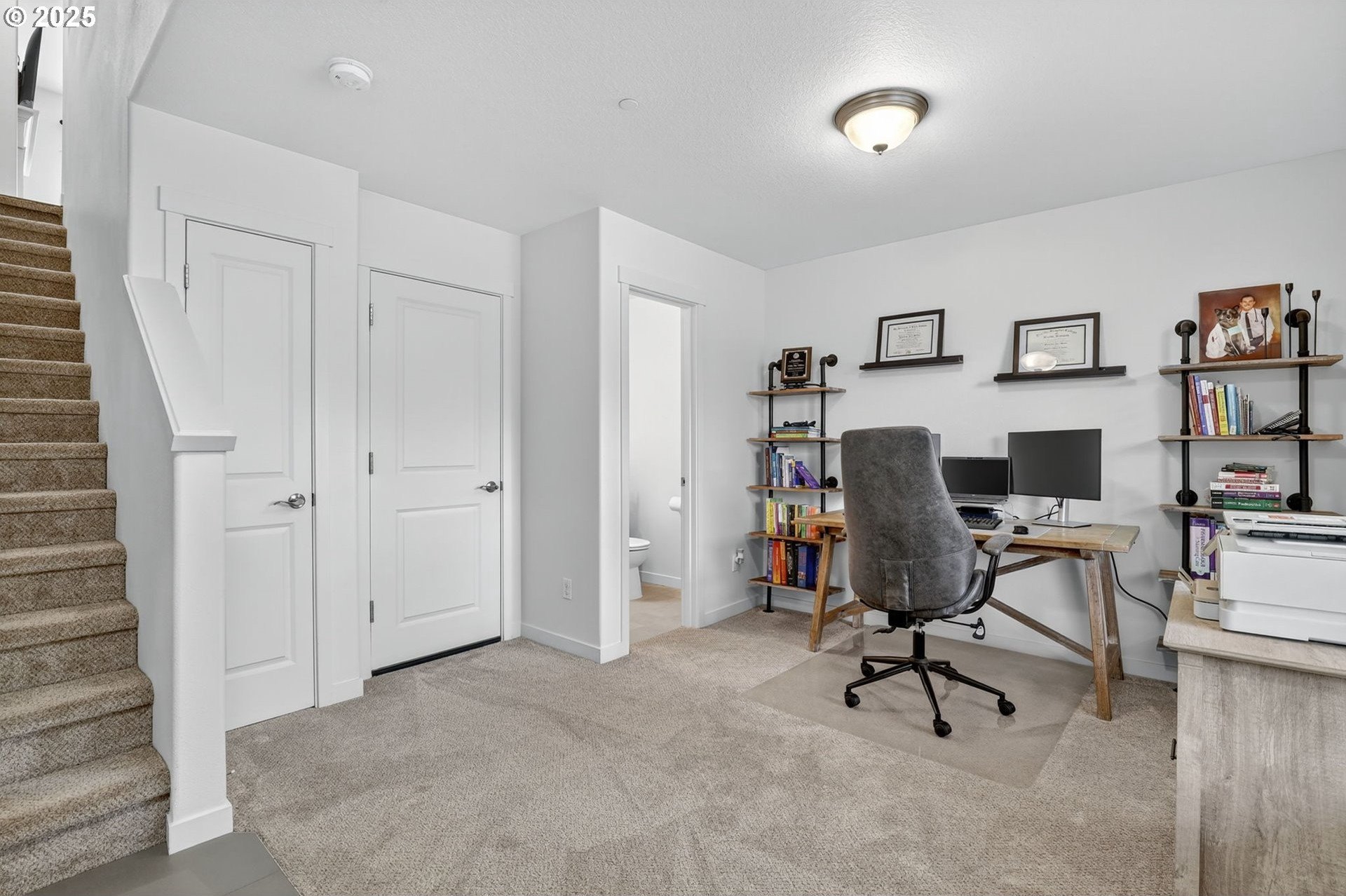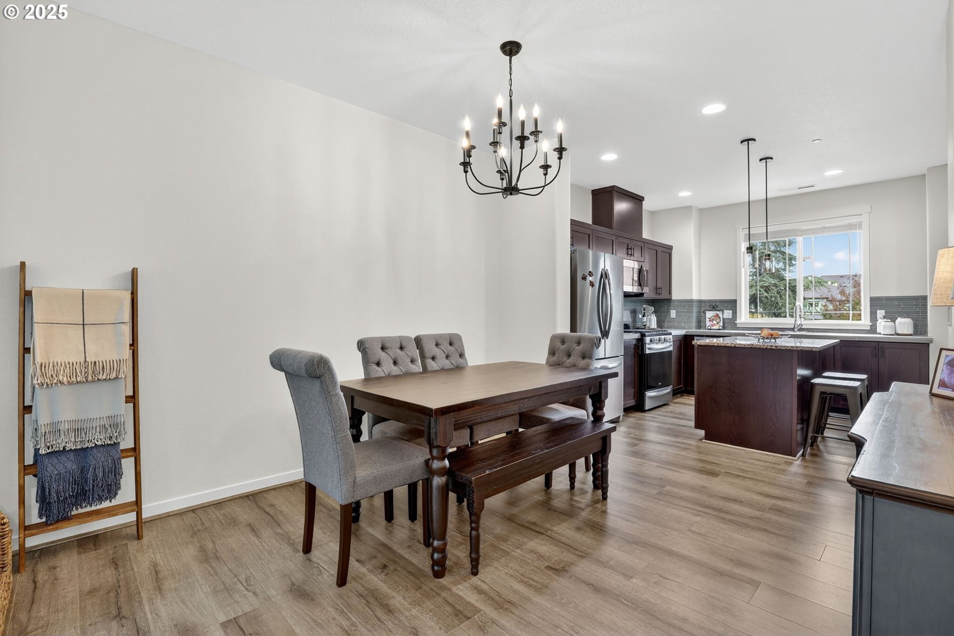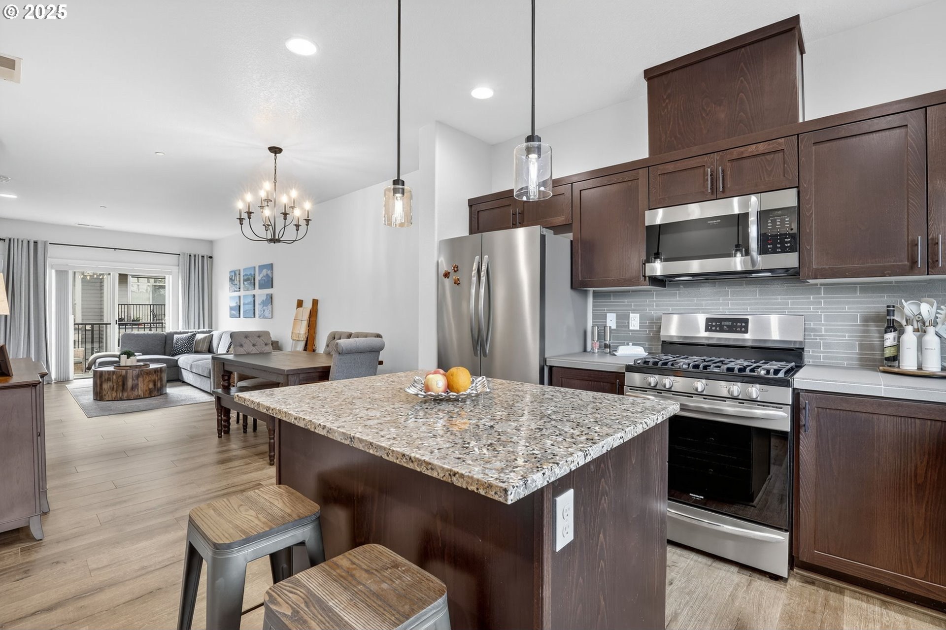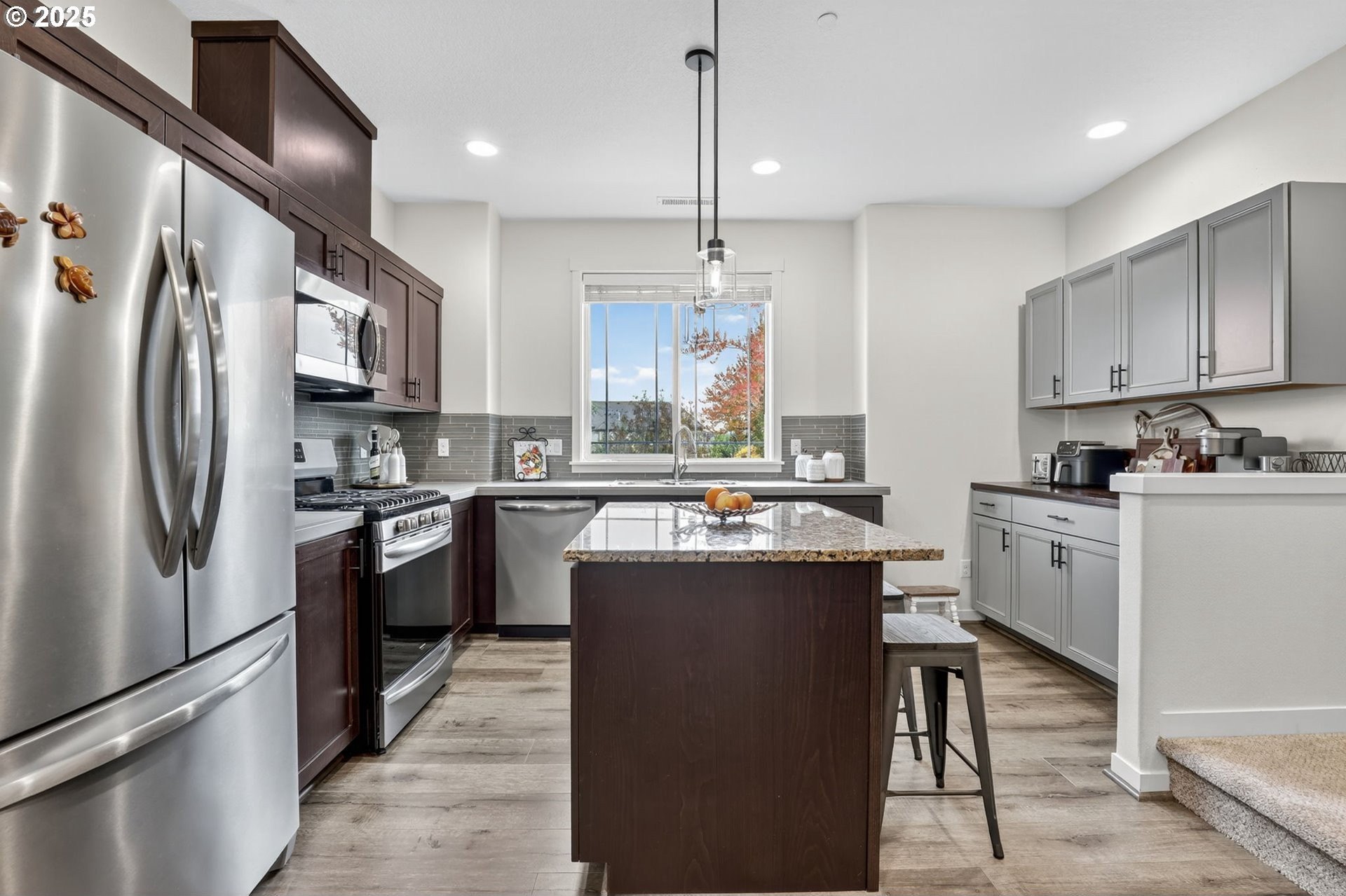 Discover this exceptional townhome in Wilsonville’s sought-after Villebois community, perfectly situated across from Montague Park with serene city light and Mount Hood views. This impeccably clean condo features high-end finishes, including custom cabinetry, granite countertops, stainless steel appliances, and a bright kitchen with expansive counter space. The thoughtful layout offers two spacious bedrooms, both with attached bathrooms, the primary with vaulted ceilings, a generous closet, and an outstanding eastward view. On the main floor, you will find a versatile office or flex space with a convenient half bathroom. Enjoy Villebois’ vibrant lifestyle with amenities like pickleball, basketball, tennis, and volleyball courts, putting green, dog park, playgrounds, and miles of biking and walking paths. Practicality shines with an attached one-car garage, a driveway for extra parking, and convenient street parking out front. An efficient gas furnace with air conditioning keeps things comfortable year-round. Don’t miss this rare opportunity to own a standout townhome with premium views and finishes in Villebois.