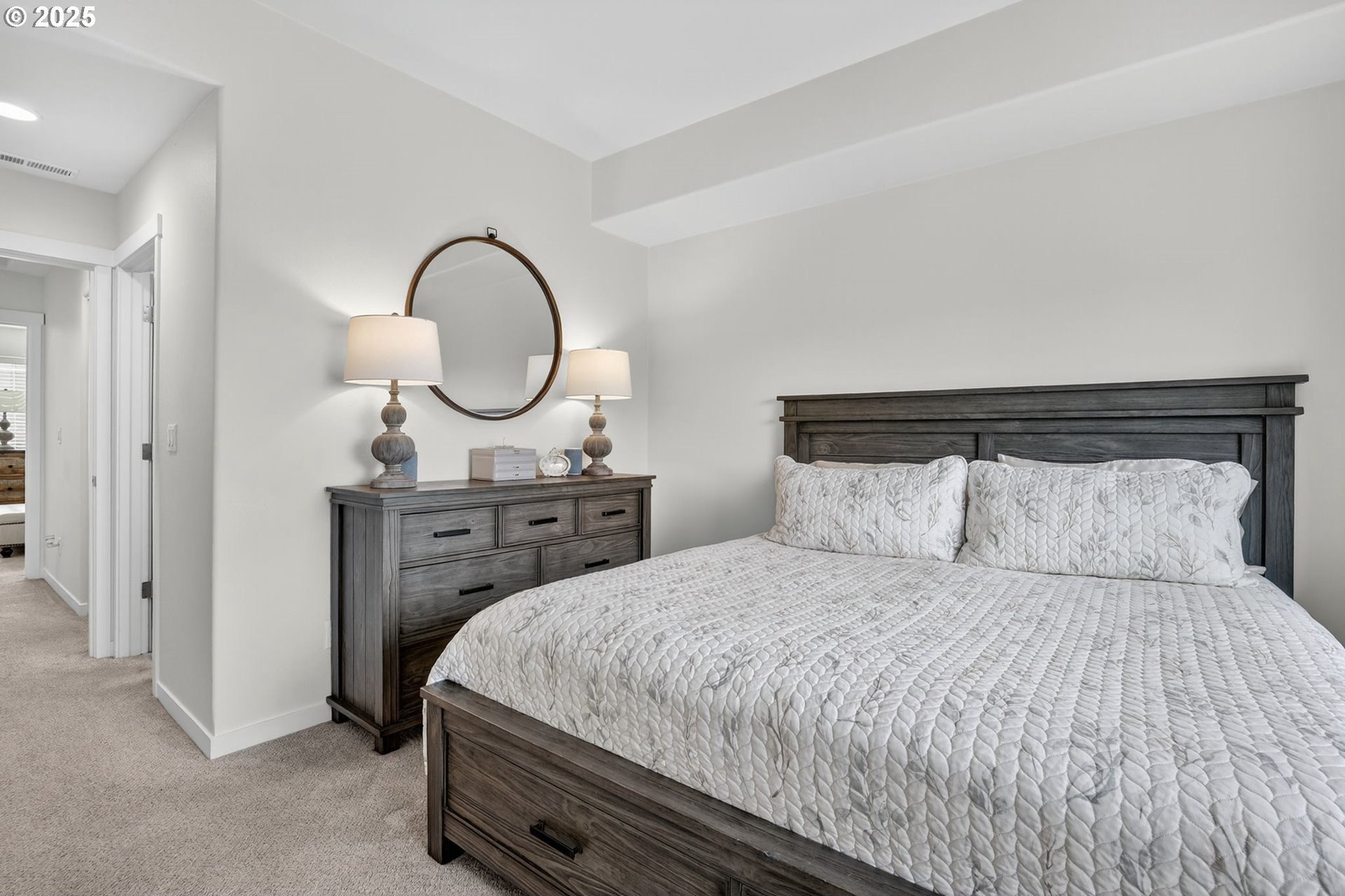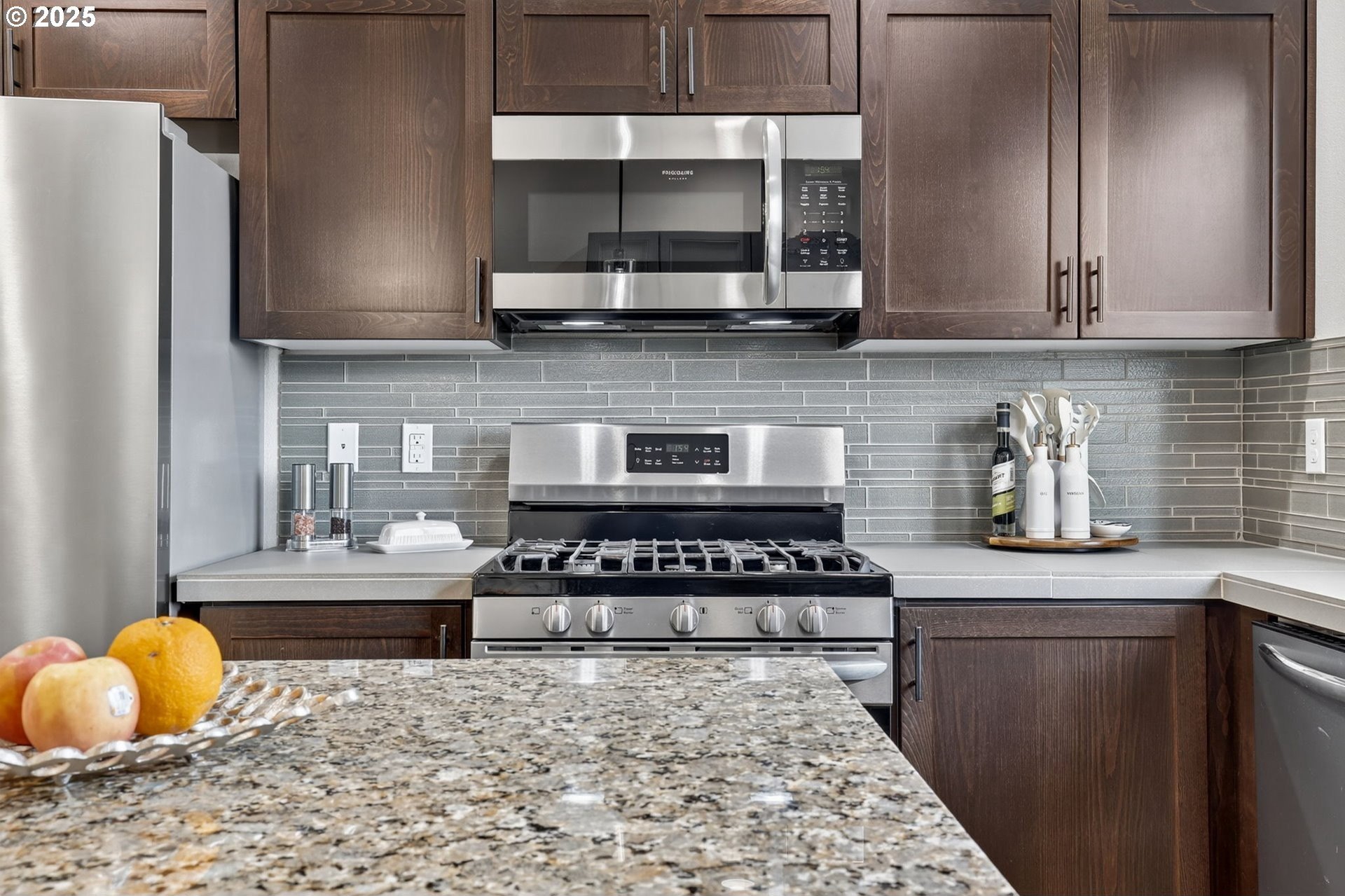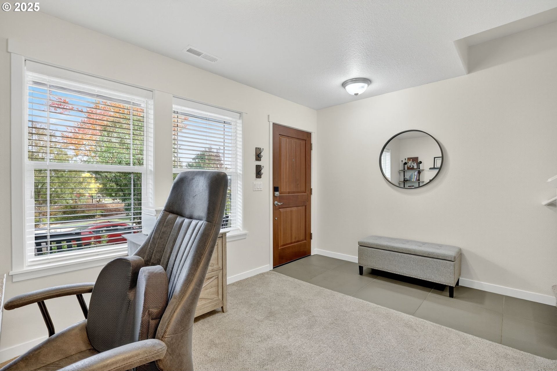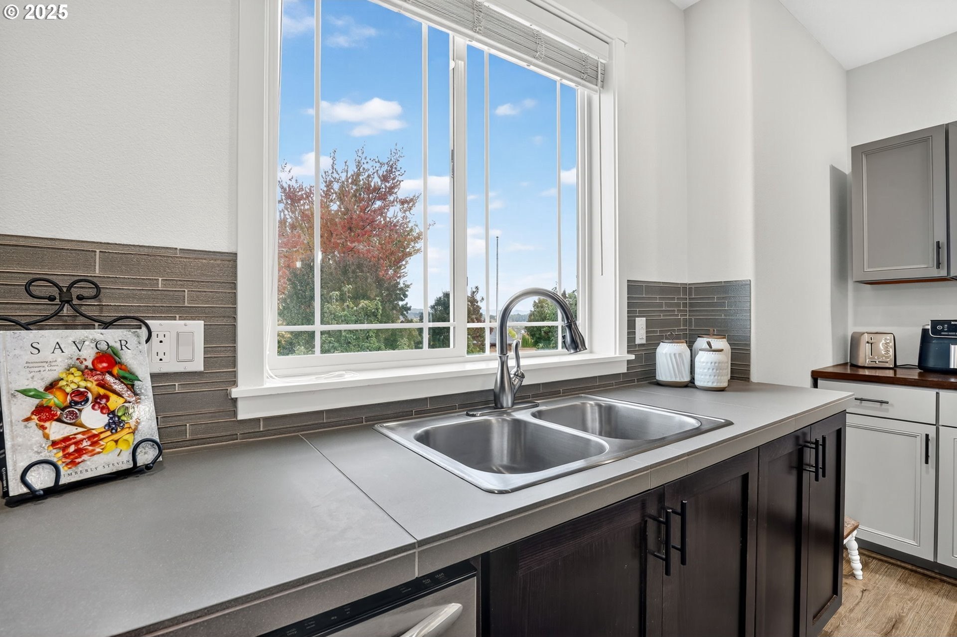 Discover this exceptional townhome in Wilsonville’s sought-after Villebois community, perfectly situated across from Montague Park with serene city light and Mount Hood views. This impeccably clean condo features high-end finishes, including custom cabinetry, granite countertops, stainless steel appliances, and a bright kitchen with expansive counter space. The thoughtful layout offers two spacious bedrooms, both with attached bathrooms, the primary with vaulted ceilings, a generous closet, and an outstanding eastward view. On the main floor, you will find a versatile office or flex space with a convenient half bathroom. Enjoy Villebois’ vibrant lifestyle with amenities like pickleball, basketball, tennis, and volleyball courts, putting green, dog park, playgrounds, and miles of biking and walking paths. Practicality shines with an attached one-car garage, a driveway for extra parking, and convenient street parking out front. An efficient gas furnace with air conditioning keeps things comfortable year-round. Don’t miss this rare opportunity to own a standout townhome with premium views and finishes in Villebois.