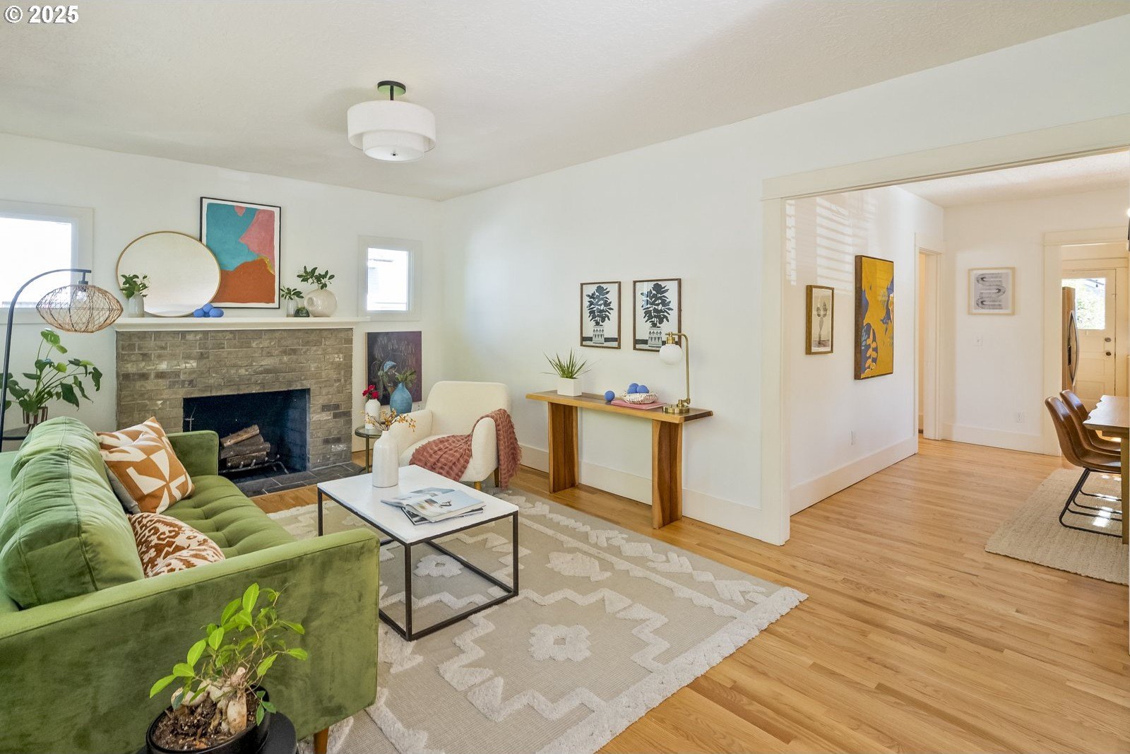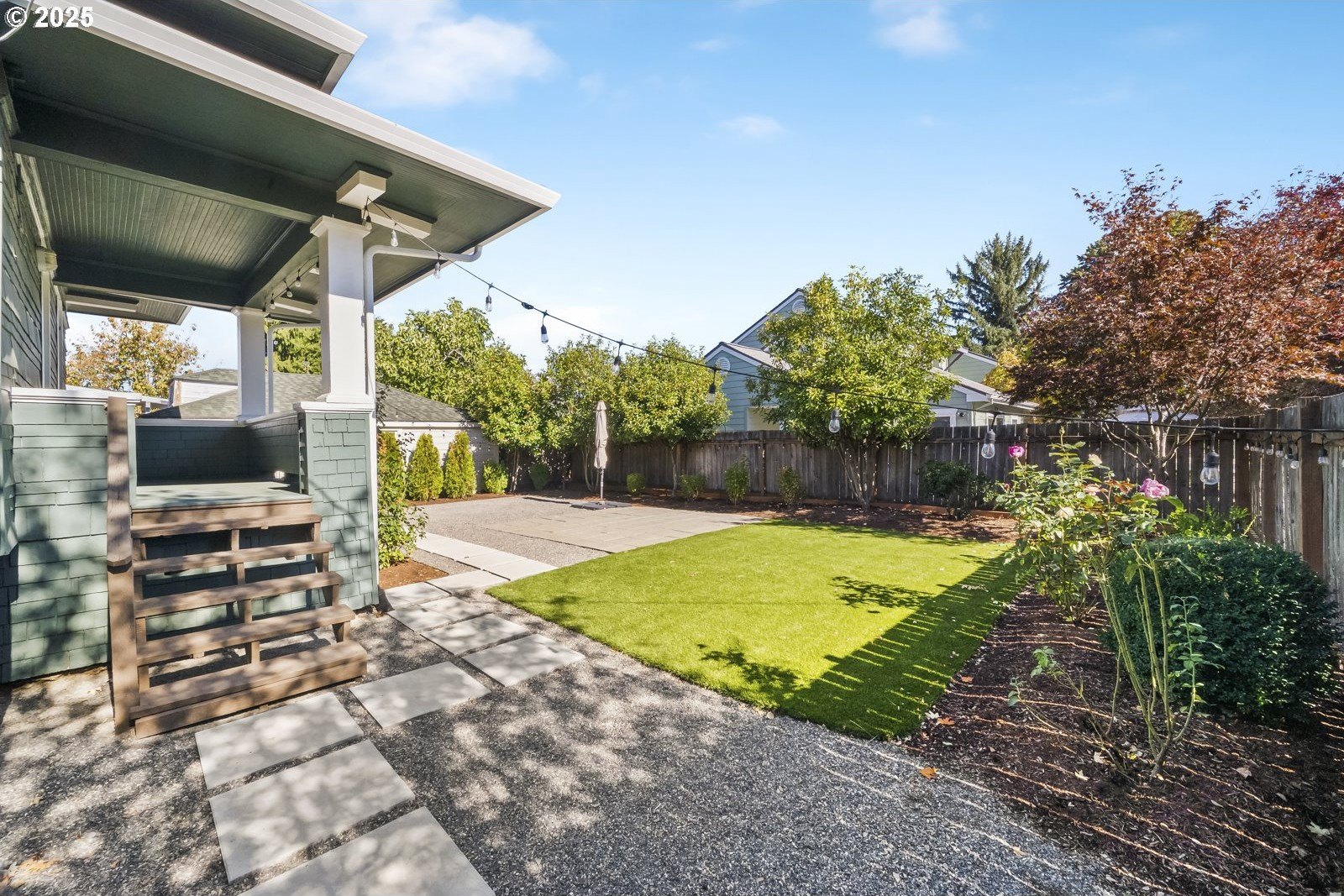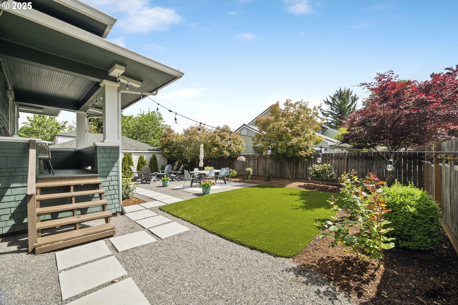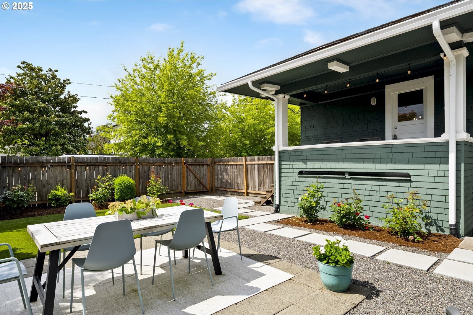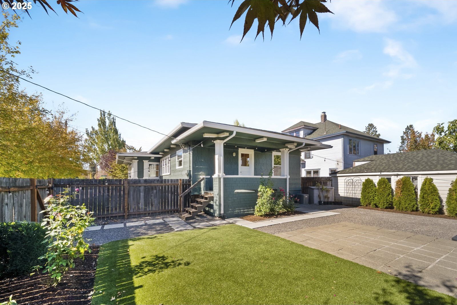 Chic and sunny classic bungalow in the heart of Arbor Lodge combining vintage details with smart updates, a spacious layout, and features that check all the boxes. Inside, you’ll find a flowing floor plan, welcoming foyer, bright sunroom/flex space, classic fireplace, freshly refinished wood floors, large kitchen, and a fully finished lower level. Notice the character throughout: decorative vintage leaded glass, updated lighting, penny tile floors, and Craftsman-style columns. The generous kitchen layout has plenty of room for the chef and the sous with abundant cabinet storage and prep space. It opens to the dining room and flows easily to the backyard for seamless indoor-outdoor living and dining. Downstairs, the fully finished lower level expands the possibilities. There’s a spacious family/rec room, full bathroom, laundry room, and an additional bedroom with egress and a closet. With its own private exterior entrance, this level is ideal for guests, a home office, or a quiet retreat to unwind. Feel confident in systems and mechanical upgrades: including a freshly stabilized foundation by TerraFirma (w/transferrable warranty), drainage improvements, updated windows and ducting, and modern plumbing & electrical. Out back, enjoy chill hangs or lively gatherings under the covered deck surrounded by upgraded landscaping, easy-care turf, and a fully fenced yard wrapped in mature greenery for peace and privacy. All of this in the vibrant Arbor Lodge neighborhood, just blocks from coffee shops, cafes, restaurants, a neighborhood tavern, Arbor Lodge Park, and New Seasons Market.Come see what makes this place feel like home. [Home Energy Score = 6. HES Report at https://rpt.greenbuildingregistry.com/hes/OR10186118]