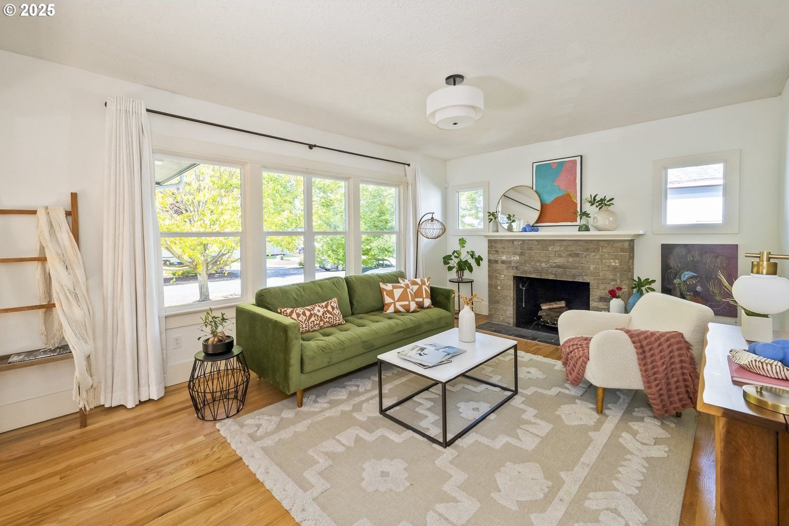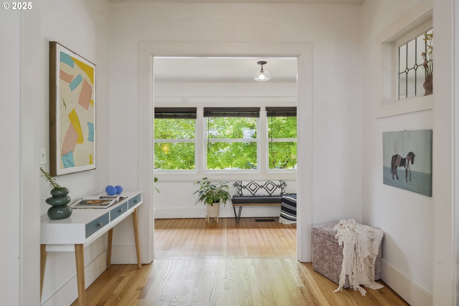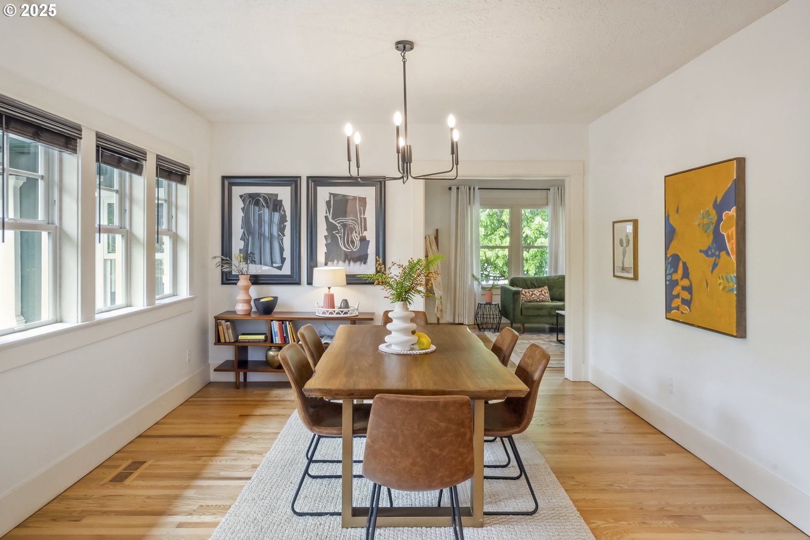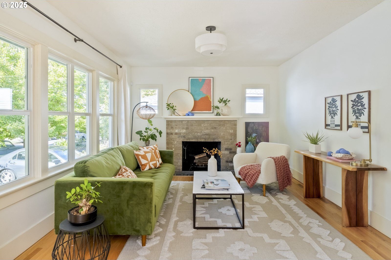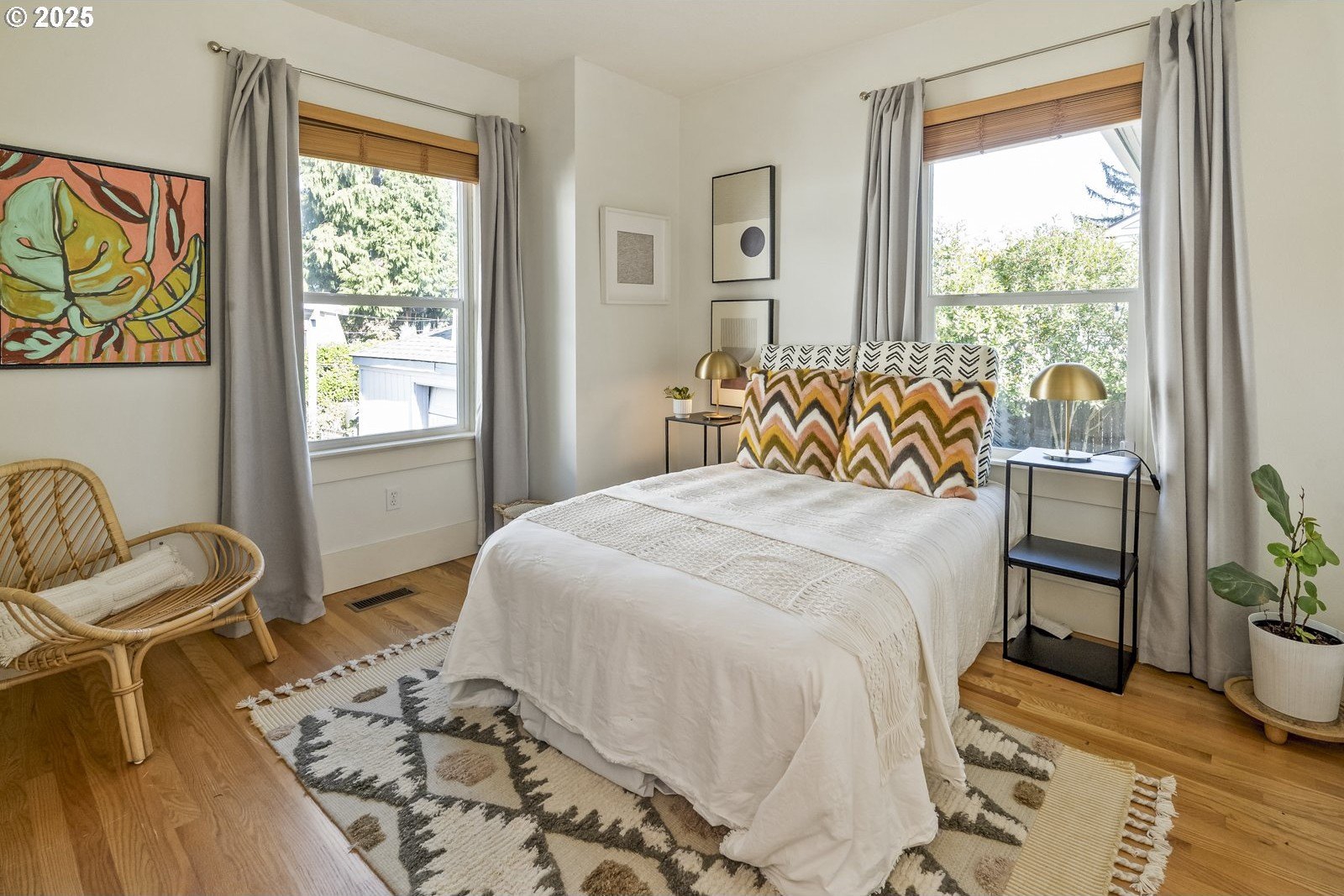 Chic and sunny classic bungalow in the heart of Arbor Lodge combining vintage details with smart updates, a spacious layout, and features that check all the boxes. Inside, you’ll find a flowing floor plan, welcoming foyer, bright sunroom/flex space, classic fireplace, freshly refinished wood floors, large kitchen, and a fully finished lower level. Notice the character throughout: decorative vintage leaded glass, updated lighting, penny tile floors, and Craftsman-style columns. The generous kitchen layout has plenty of room for the chef and the sous with abundant cabinet storage and prep space. It opens to the dining room and flows easily to the backyard for seamless indoor-outdoor living and dining. Downstairs, the fully finished lower level expands the possibilities. There’s a spacious family/rec room, full bathroom, laundry room, and an additional bedroom with egress and a closet. With its own private exterior entrance, this level is ideal for guests, a home office, or a quiet retreat to unwind. Feel confident in systems and mechanical upgrades: including a freshly stabilized foundation by TerraFirma (w/transferrable warranty), drainage improvements, updated windows and ducting, and modern plumbing & electrical. Out back, enjoy chill hangs or lively gatherings under the covered deck surrounded by upgraded landscaping, easy-care turf, and a fully fenced yard wrapped in mature greenery for peace and privacy. All of this in the vibrant Arbor Lodge neighborhood, just blocks from coffee shops, cafes, restaurants, a neighborhood tavern, Arbor Lodge Park, and New Seasons Market.Come see what makes this place feel like home. [Home Energy Score = 6. HES Report at https://rpt.greenbuildingregistry.com/hes/OR10186118]