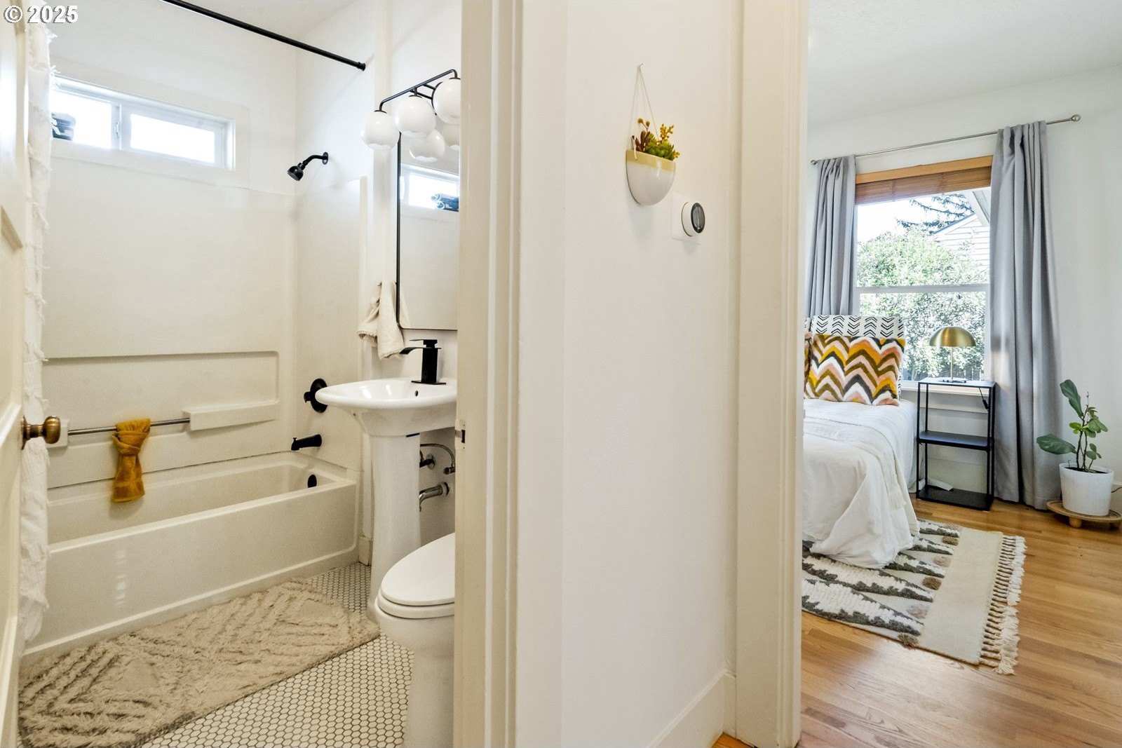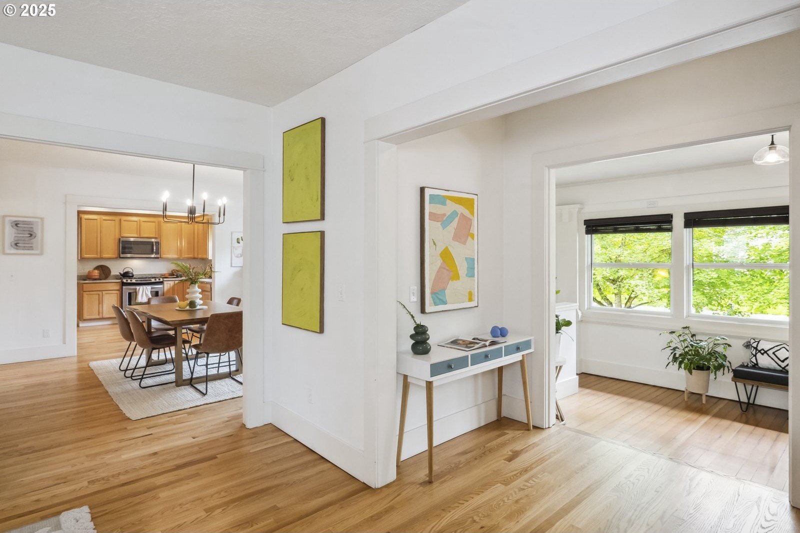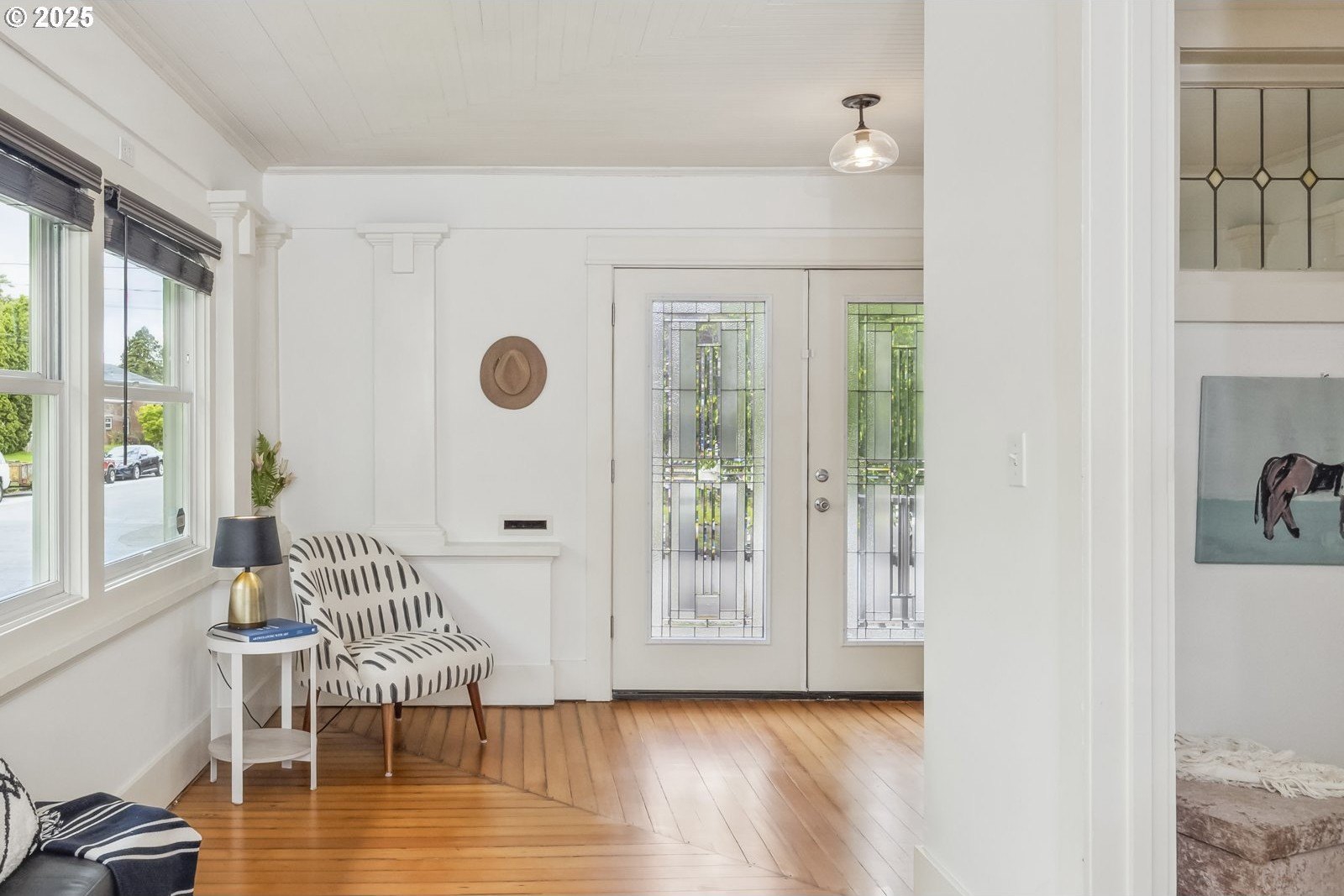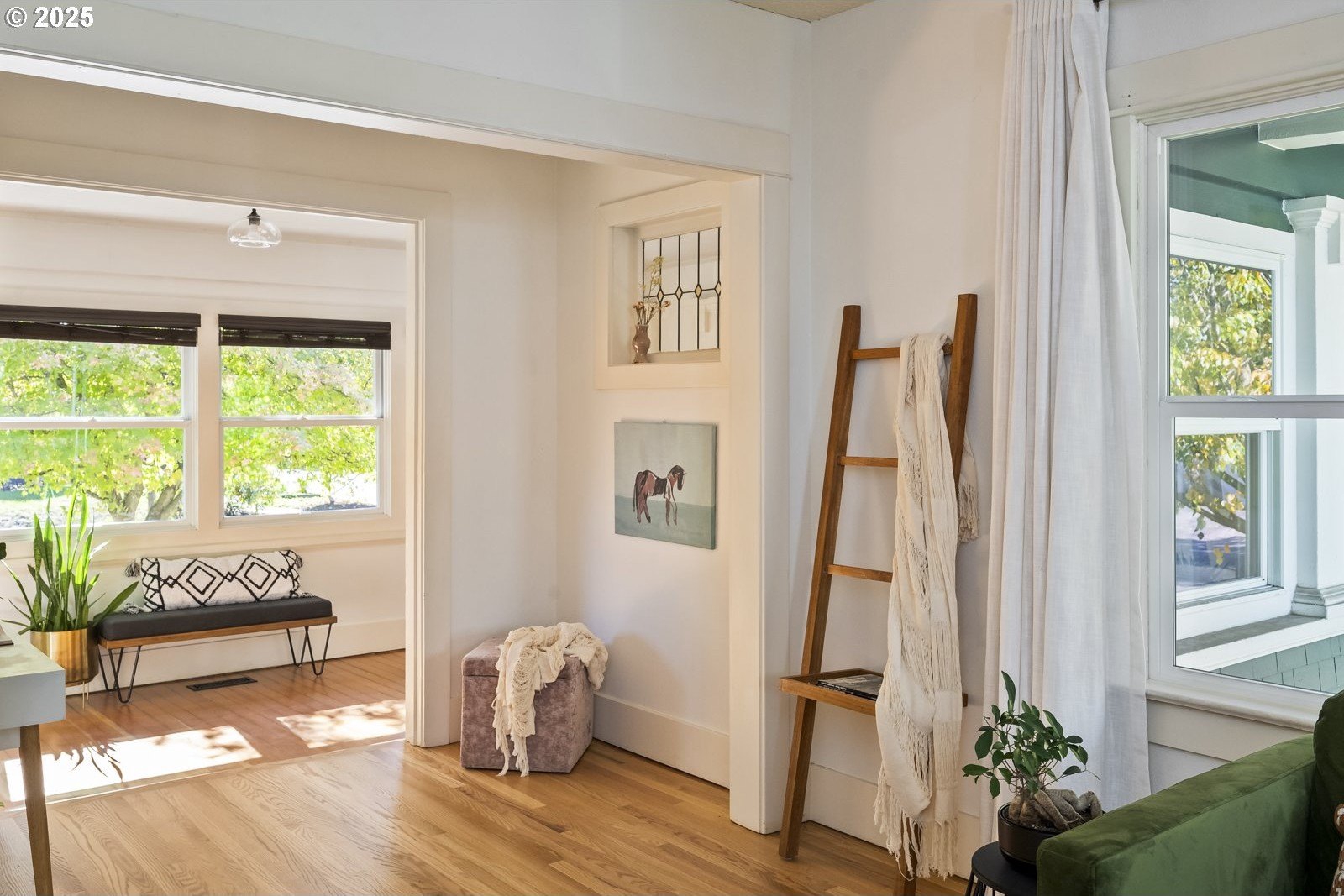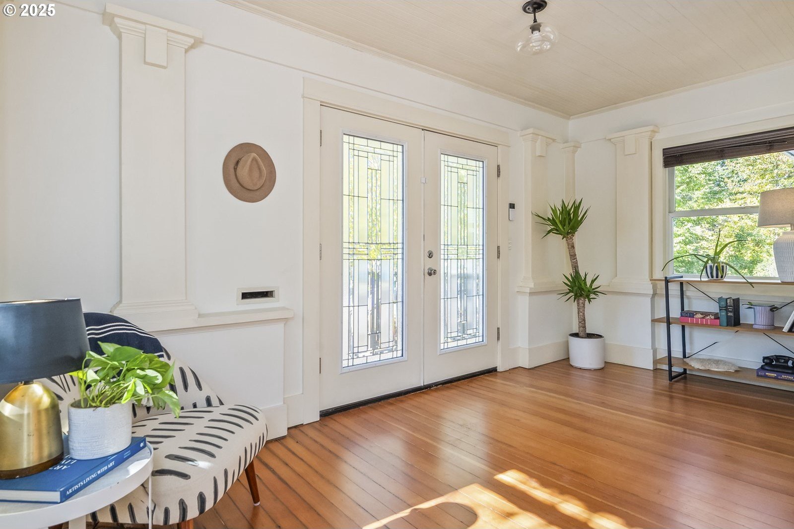 Chic and sunny classic bungalow in the heart of Arbor Lodge combining vintage details with smart updates, a spacious layout, and features that check all the boxes. Inside, you’ll find a flowing floor plan, welcoming foyer, bright sunroom/flex space, classic fireplace, freshly refinished wood floors, large kitchen, and a fully finished lower level. Notice the character throughout: decorative vintage leaded glass, updated lighting, penny tile floors, and Craftsman-style columns. The generous kitchen layout has plenty of room for the chef and the sous with abundant cabinet storage and prep space. It opens to the dining room and flows easily to the backyard for seamless indoor-outdoor living and dining. Downstairs, the fully finished lower level expands the possibilities. There’s a spacious family/rec room, full bathroom, laundry room, and an additional bedroom with egress and a closet. With its own private exterior entrance, this level is ideal for guests, a home office, or a quiet retreat to unwind. Feel confident in systems and mechanical upgrades: including a freshly stabilized foundation by TerraFirma (w/transferrable warranty), drainage improvements, updated windows and ducting, and modern plumbing & electrical. Out back, enjoy chill hangs or lively gatherings under the covered deck surrounded by upgraded landscaping, easy-care turf, and a fully fenced yard wrapped in mature greenery for peace and privacy. All of this in the vibrant Arbor Lodge neighborhood, just blocks from coffee shops, cafes, restaurants, a neighborhood tavern, Arbor Lodge Park, and New Seasons Market.Come see what makes this place feel like home. [Home Energy Score = 6. HES Report at https://rpt.greenbuildingregistry.com/hes/OR10186118]
