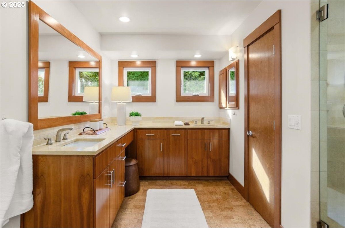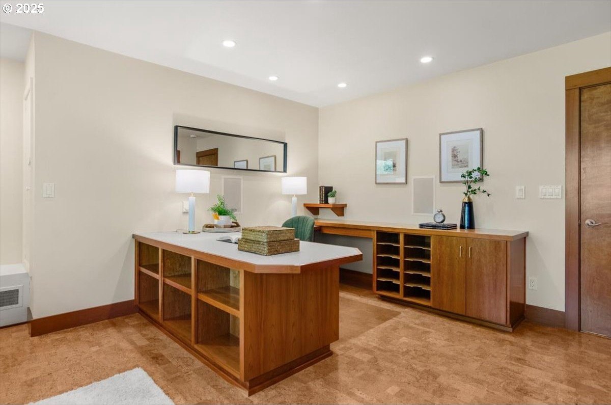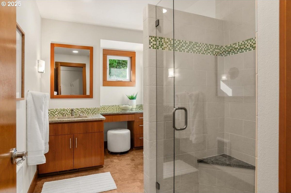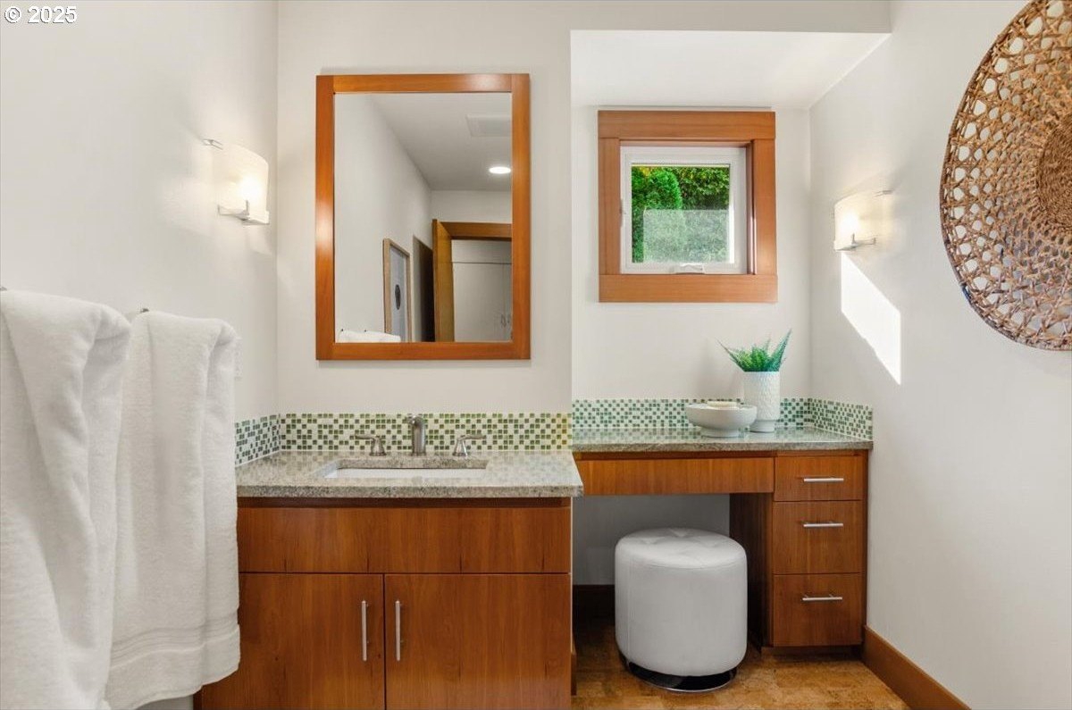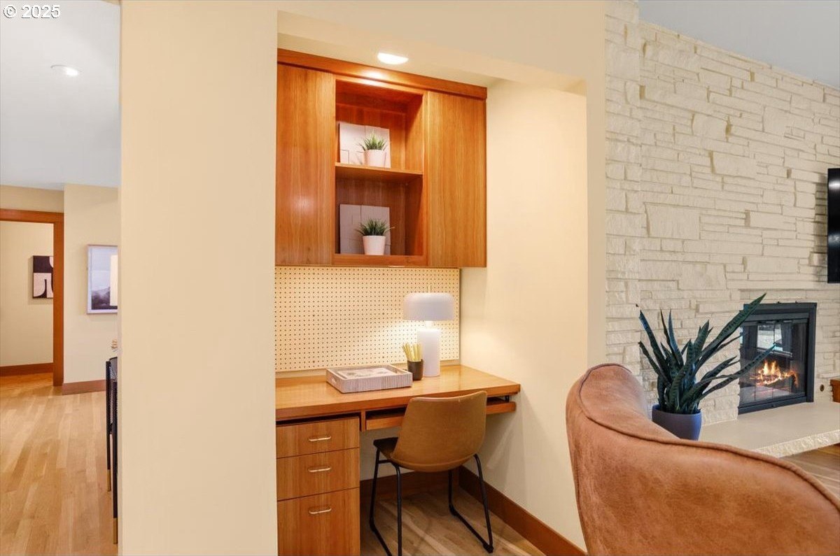 Tucked away on a quiet cul-de-sac in Portland Heights, this thoughtfully updated mid-century featuring main floor living blends classic craftsmanship with modern comfort. Sunlight fills the vaulted living spaces through walls of windows, while rich wood floors, period details, and custom built-ins add warmth throughout. The gourmet kitchen offers granite counters, wood cabinetry, and a connected breakfast area overlooking the family room and garden. The primary suite opens directly to the yard and features a spa-like bathroom with a soaking tub and walk-in shower. Outside, patios, a flat yard with turf and gardens create a private, low maintenance retreat surrounded by mature plantings, a pétanque court, and outdoor lighting for evening entertaining. A separate guest studio with kitchenette and a full bathroom adds flexibility for visitors or work-from-home needs. Designed for both beauty and function, this residence includes solar power, an EV charger, a whole-house generator, and smart climate control — while being only minutes from parks, trails, downtown, hospitals, schools, NW Portland, and the high-tech corridor. [Home Energy Score = 8. HES Report at https://rpt.greenbuildingregistry.com/hes/OR10242142]