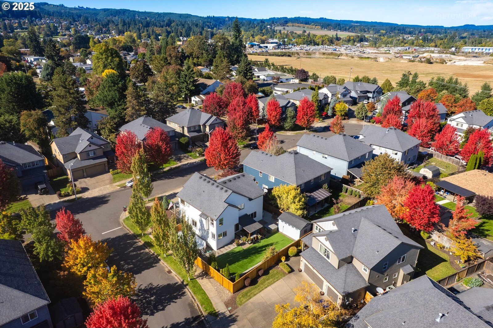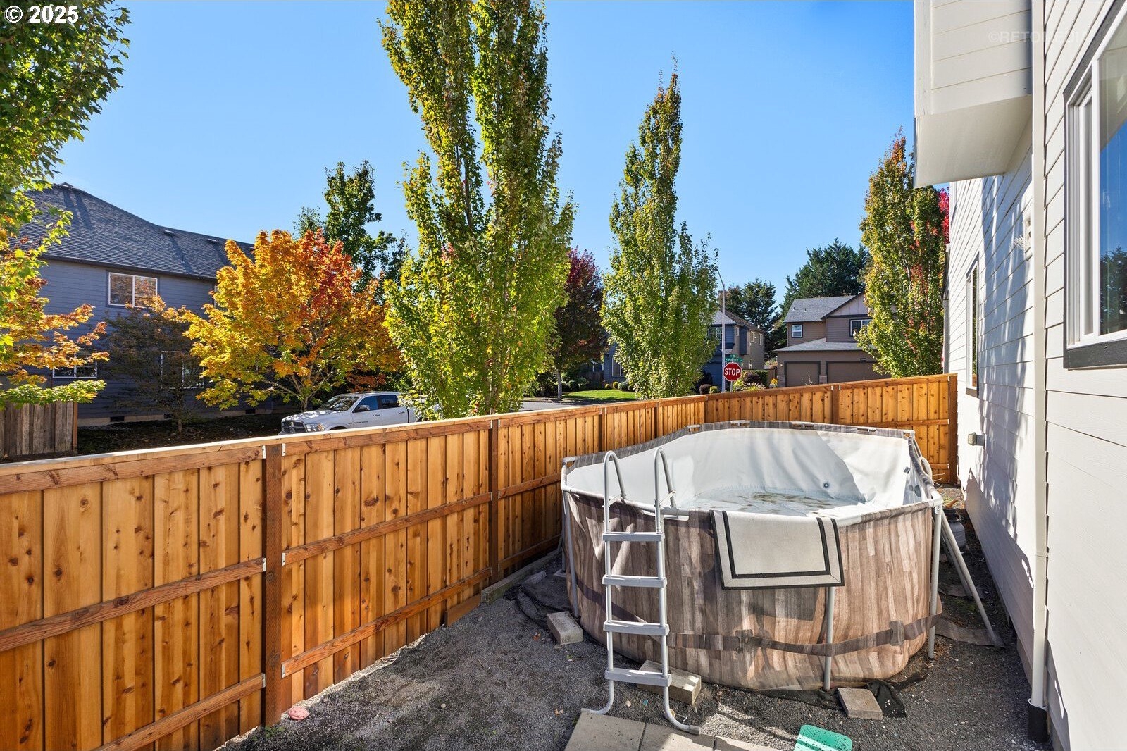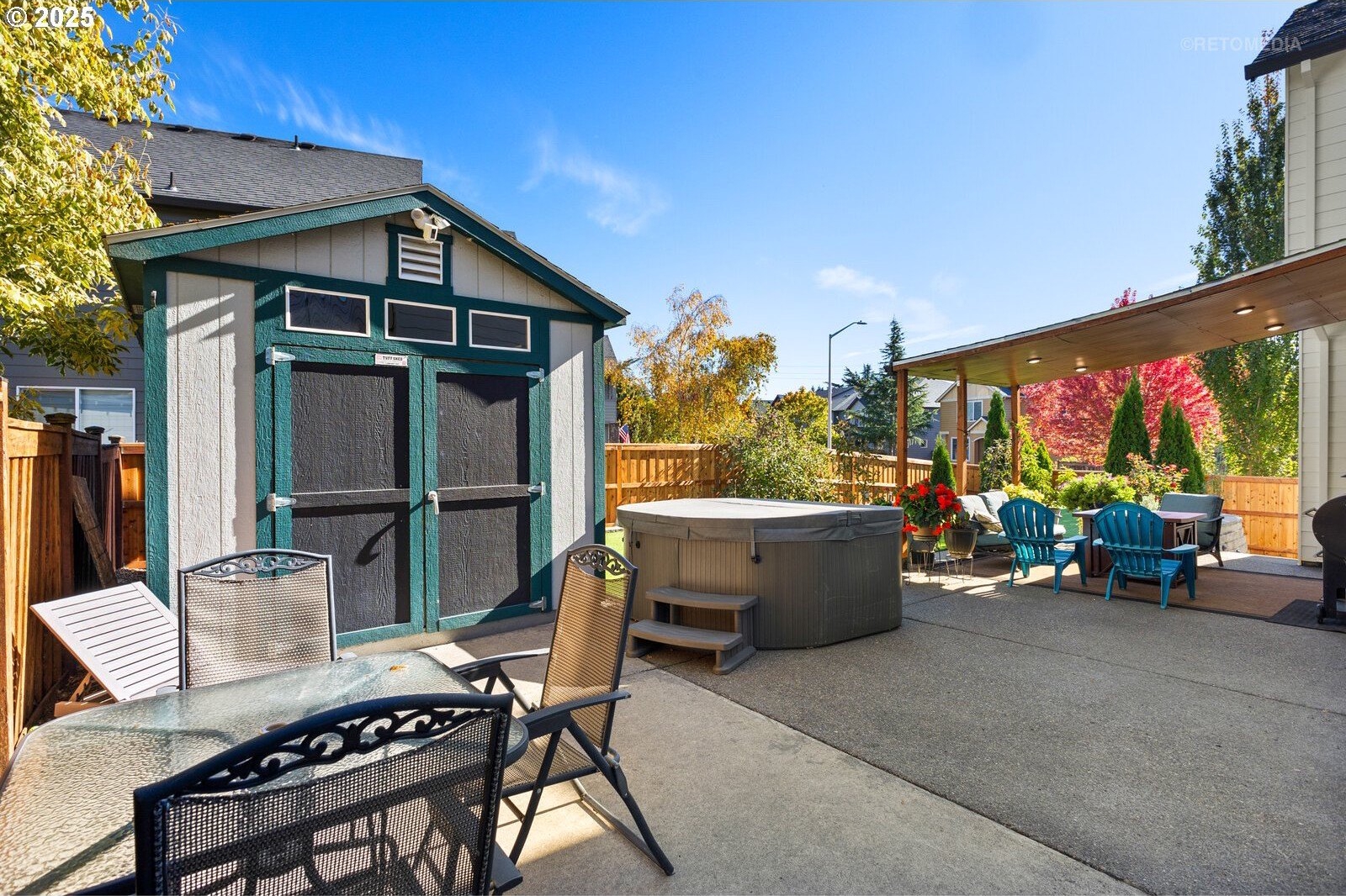 OPEN SATURDAY 10/25, 12:00-3:00! Come home to refined elegance on a corner lot in Jacob Park - Here you'll find a beautifully maintained dwelling with carefully implemented upgrades & improvements. Step into the two-story foyer and take a moment to appreciate the 9' ceilings and new LVT flooring throughout of the main level. French doors reveal a spacious den en-route to an open dining room flanked by kitchen and family room. The timeless appeal of stainless appliances, granite slab countertops, wood grain cabinetry and a full pantry make the kitchen a classic space for cooking, entertaining or both. Rain or shine, the back yard is a wonderland enclosed by new fencing and comprised of covered patio, hot tub, ample all-weather turf, large project shed with power and a covered side-yard pad for RV or boat parking. Upstairs are the private quarters: Four large bedrooms anchored by a primary suite with a bathroom featuring soak tub & separate shower alongside an oversized walk-in closet. Even the three car garage is special, with a separate mini-split unit to cool or heat the space for those who'll use it as shop, gym or crafting area. Perfectly located for a Portland commuter or a work from home professional, the neighborhood is replete with pride of ownership and feeds to the renowned educational chain of Peterson elementary to Scappoose middle & high schools. With new furnace, new water heater, new garage door opener, new fence and new exterior paint, the systems are all pristine, so you can buy with confidence. Imagine how it would blend with & broaden your life to plant your flag on Porter Street!