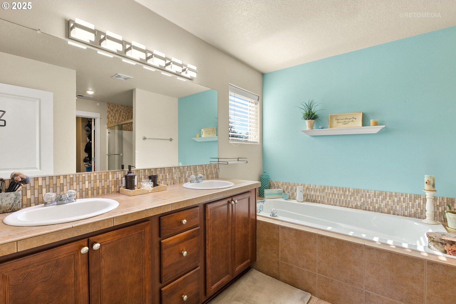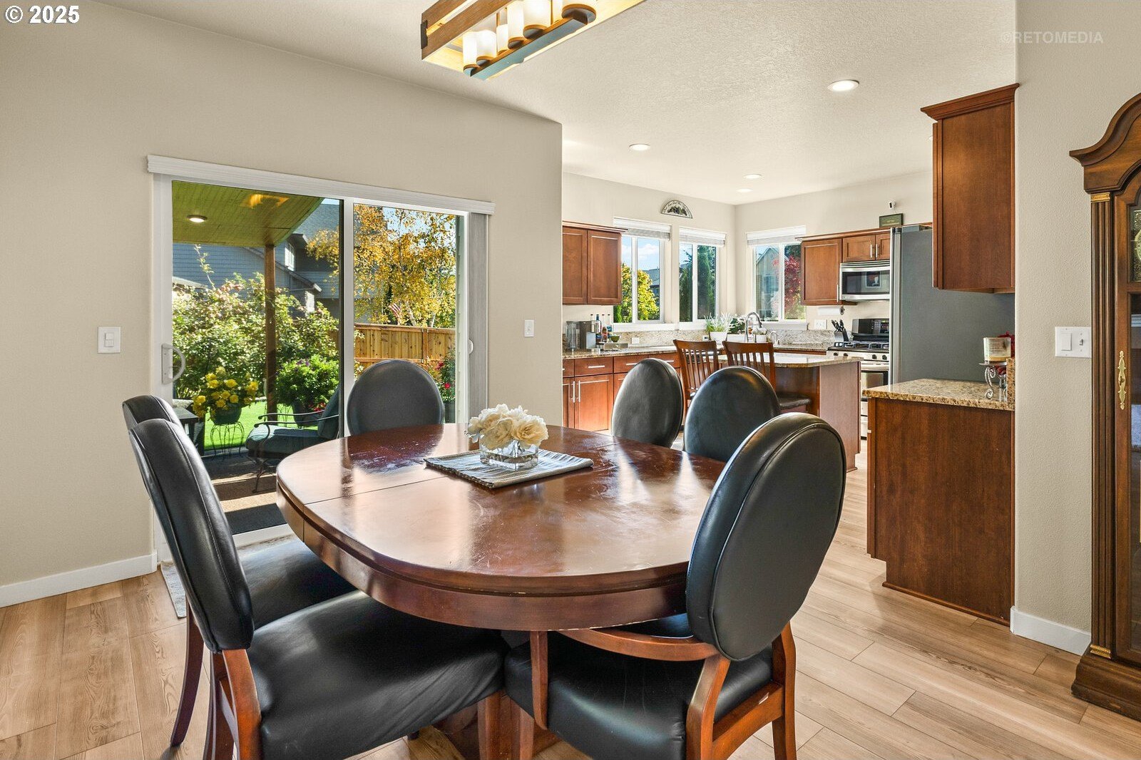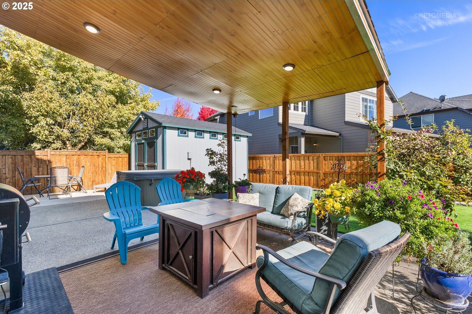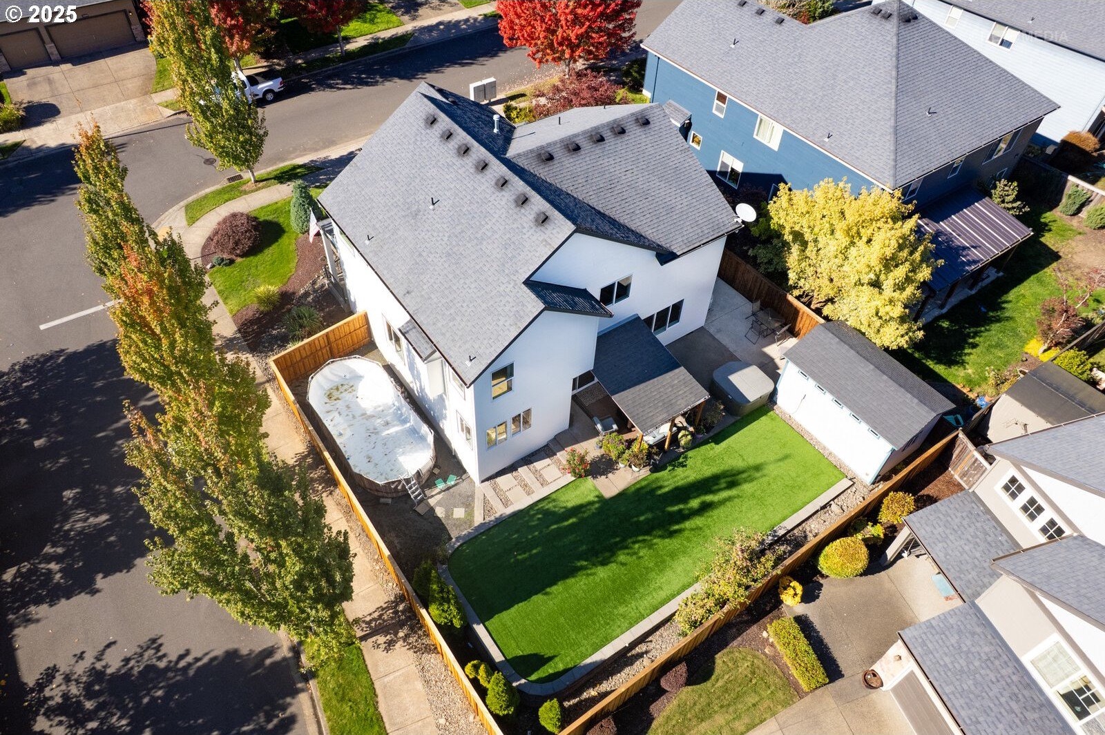 OPEN SATURDAY 10/25, 12:00-3:00! Come home to refined elegance on a corner lot in Jacob Park - Here you'll find a beautifully maintained dwelling with carefully implemented upgrades & improvements. Step into the two-story foyer and take a moment to appreciate the 9' ceilings and new LVT flooring throughout of the main level. French doors reveal a spacious den en-route to an open dining room flanked by kitchen and family room. The timeless appeal of stainless appliances, granite slab countertops, wood grain cabinetry and a full pantry make the kitchen a classic space for cooking, entertaining or both. Rain or shine, the back yard is a wonderland enclosed by new fencing and comprised of covered patio, hot tub, ample all-weather turf, large project shed with power and a covered side-yard pad for RV or boat parking. Upstairs are the private quarters: Four large bedrooms anchored by a primary suite with a bathroom featuring soak tub & separate shower alongside an oversized walk-in closet. Even the three car garage is special, with a separate mini-split unit to cool or heat the space for those who'll use it as shop, gym or crafting area. Perfectly located for a Portland commuter or a work from home professional, the neighborhood is replete with pride of ownership and feeds to the renowned educational chain of Peterson elementary to Scappoose middle & high schools. With new furnace, new water heater, new garage door opener, new fence and new exterior paint, the systems are all pristine, so you can buy with confidence. Imagine how it would blend with & broaden your life to plant your flag on Porter Street!