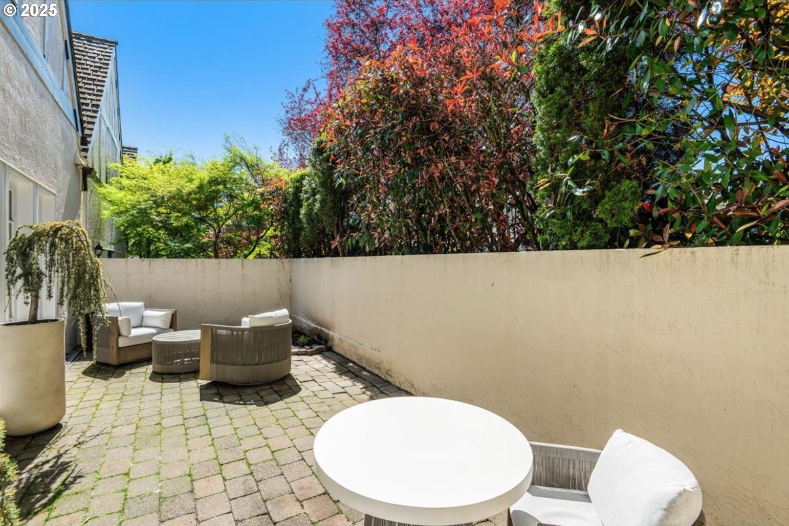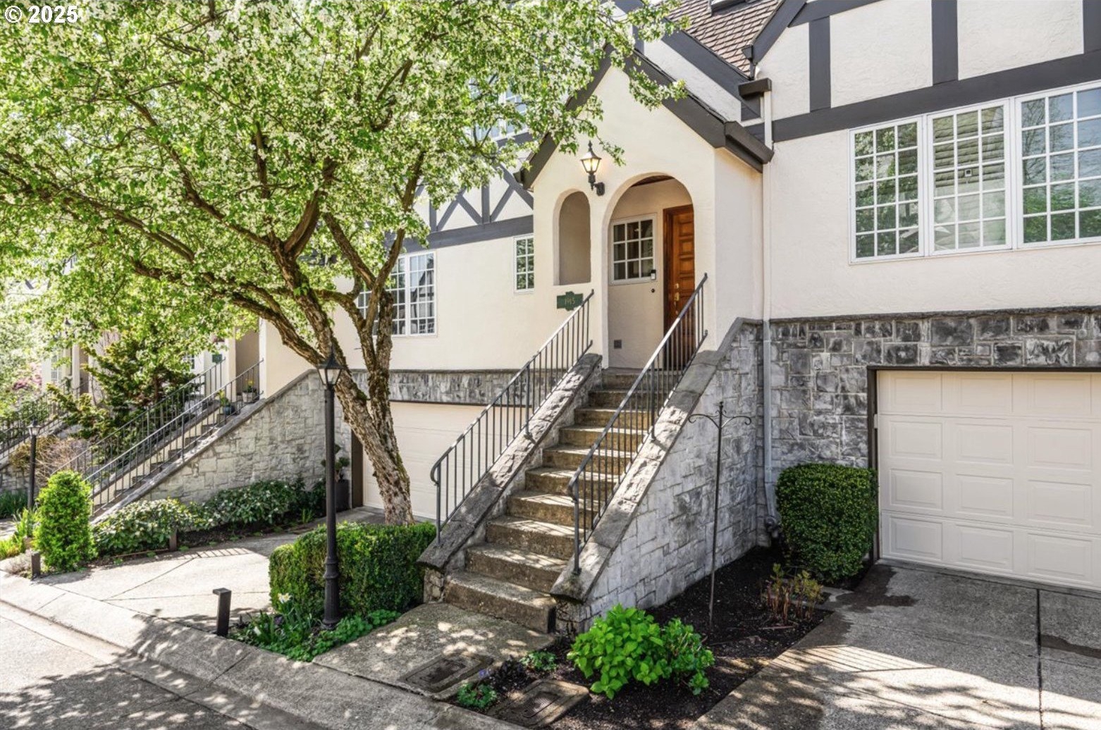With timeless Tudor charm and thoughtful updates throughout, this inviting condo offers a peaceful retreat with walkable perks. Inside, hardwood floors and custom wrought iron details add character and warmth, while French doors lead to a walled cobblestone patio that feels like a secret garden. The layout is flexible and functional, with two bedroom suites upstairs and a bonus studio space on the lower level—perfect for guests, or quiet movie nights. The primary suite includes washer/dryer hookups and a bathroom with marble tile floors. Just across the street, the Village Center brings daily essentials within reach: coffee, dining, groceries, and community — all right outside your door. OPEN HOUSE SUNDAY 10/26 from 1-3pm.