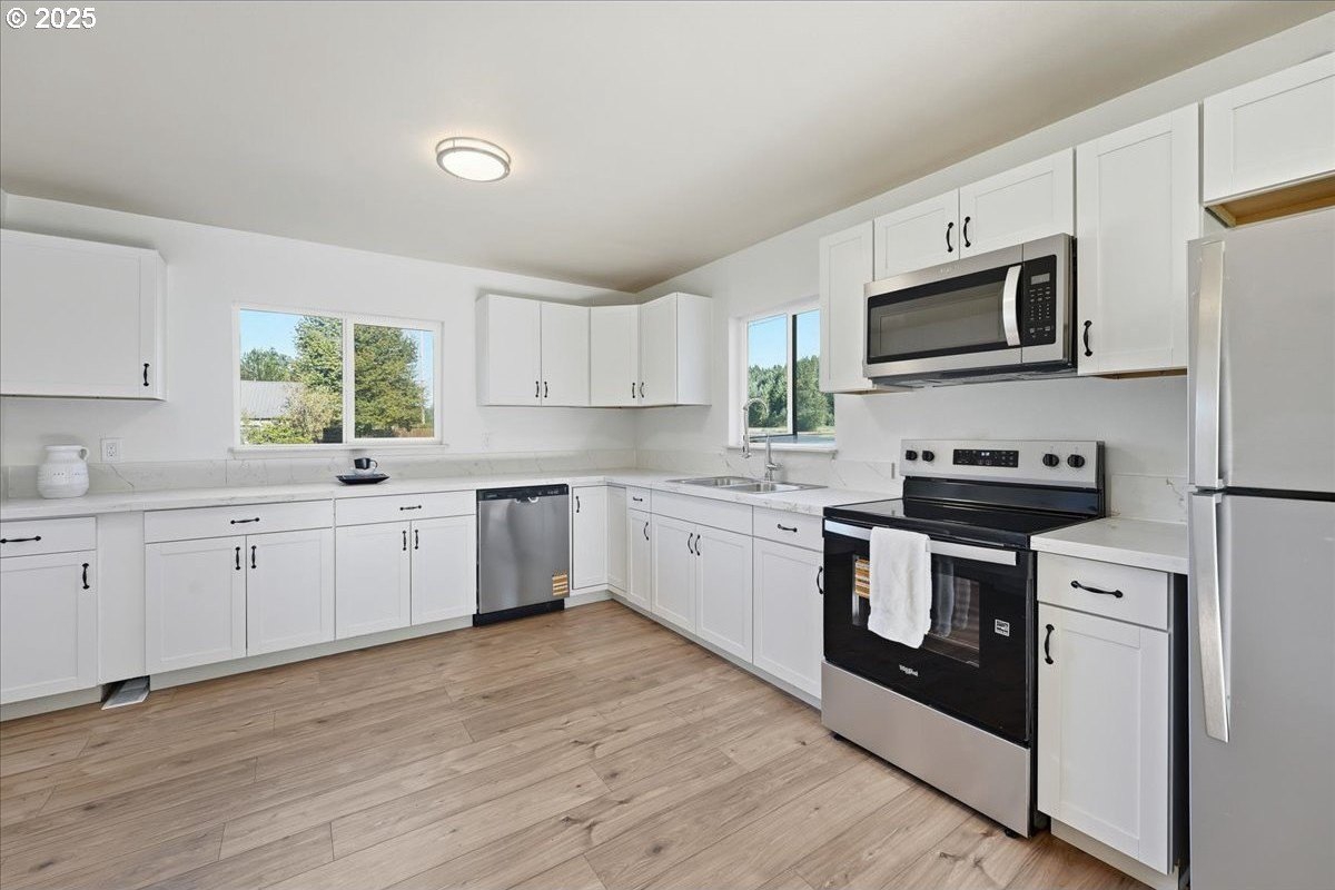 Looking for peaceful country living with modern style? This beautifully remodeled 3-bedroom, 2-bath home sits on 1.67 acres across two tax lots with Milk Creek frontage, offering the perfect blend of nature, comfort, and potential.Step inside to find a fresh, updated interior featuring brand-new luxury waterproof plank flooring, new paint, stylish light fixtures, and a stunning new kitchen complete with quartz countertops and stainless steel appliances. The metal roof provides long-term durability and peace of mind. Enjoy quiet mornings by the creek, grow your dream garden, or create a small homestead there’s plenty of space to bring your vision to life. The unfinished basement offers excellent potential to expand living space and build instant equity.Sellers began an amazing transformation but unforeseen expenses have opened the door for the next owner to step in and make it their own. Most major updates are done now it’s your turn to finish the dream.A rare chance to own a creekfront property with modern upgrades and endless possibilities!