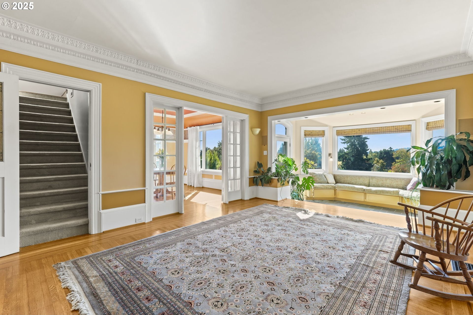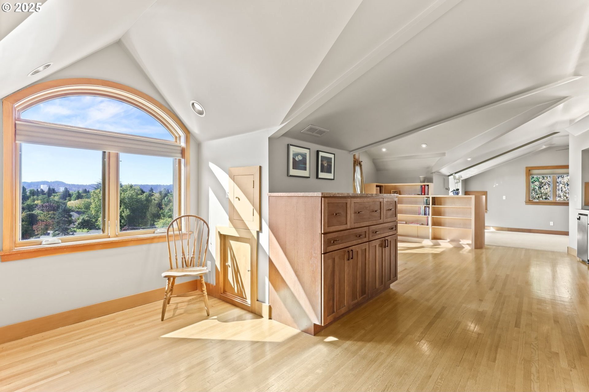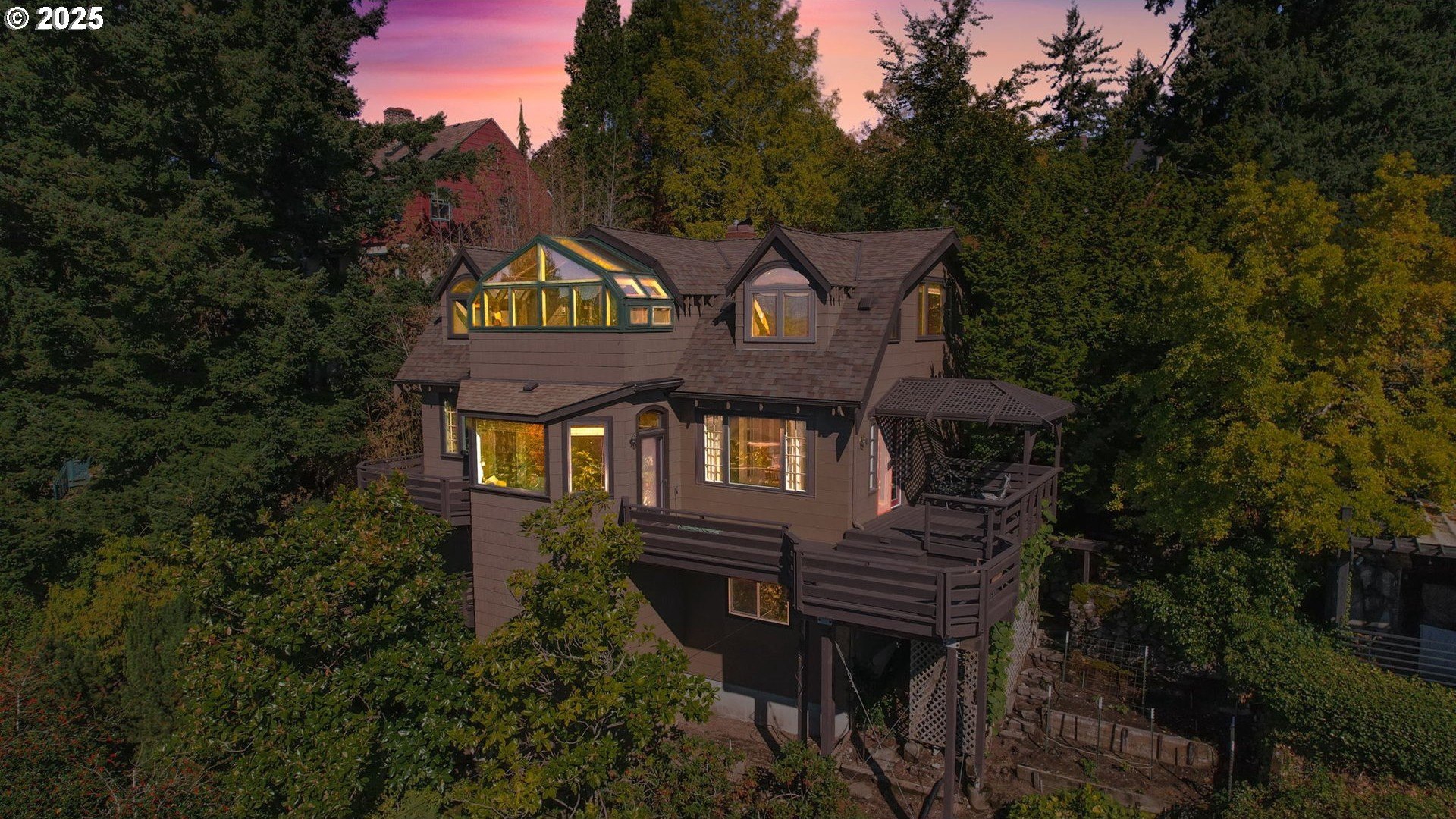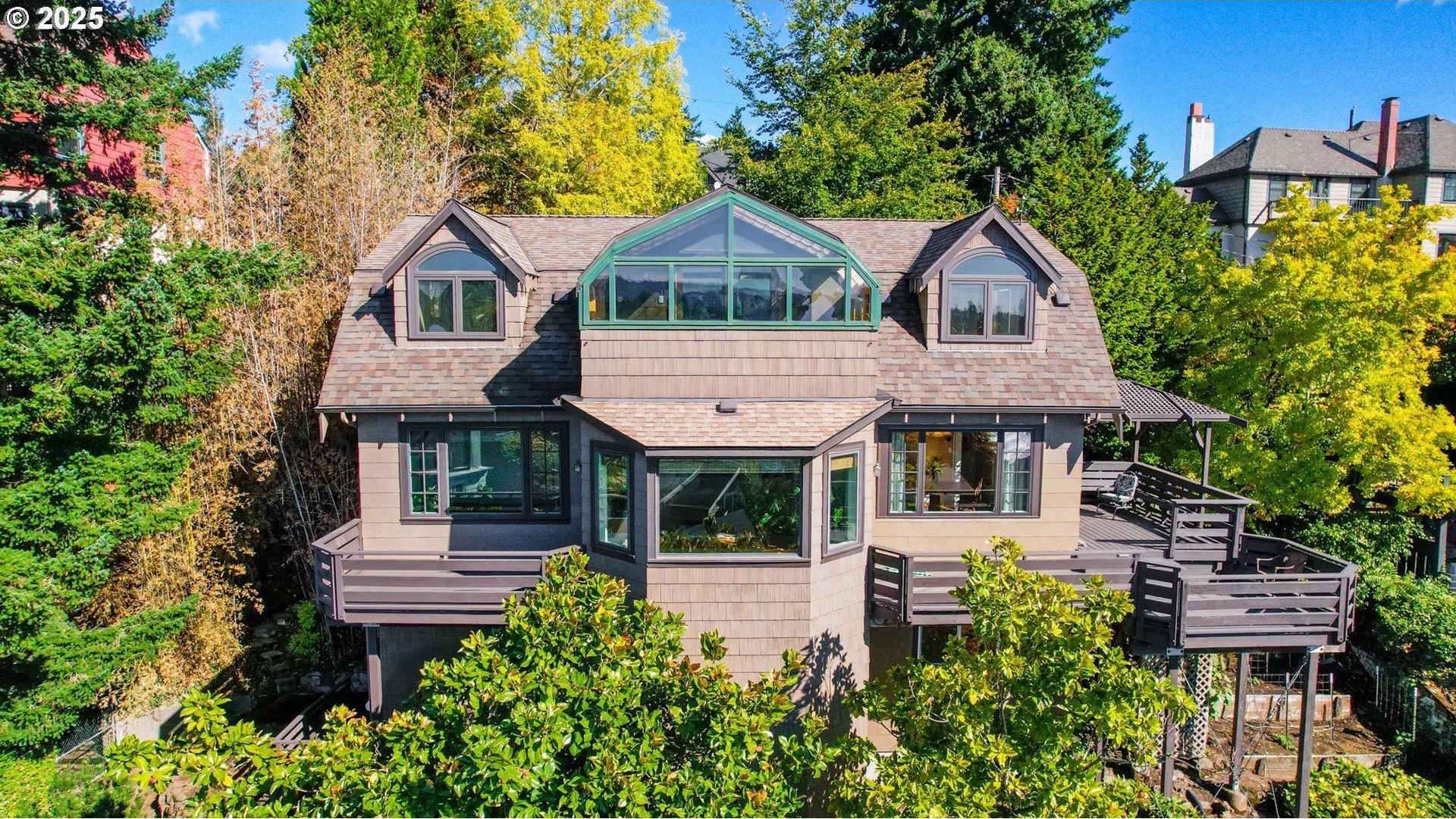 Perched atop Portland’s iconic Alameda Ridge, this unique 1911 home blends early 20th-century craftsmanship with modern updates and creative spaces. With 4 bedrooms, 3 bathrooms, and almost 4,000 square feet of finished living space, this residence is located in one of the city’s most desirable historic neighborhoods. Inside, you’ll find period details such as hardwood floors, detailed millwork, and a classic fireplace, along with abundant natural light. Expansive decks off the main level provide perfect outdoor perches with sweeping views toward downtown Portland and the West Hills — a hallmark of Alameda Ridge living. The spacious primary suite is a true retreat, featuring a wet bar, sitting area, jacuzzi tub, deck and office. The terraced yard is thoughtfully landscaped and includes a tranquil “waterfall” feature, creating a peaceful outdoor sanctuary. Unique to this property are its artist studio and shop, offering flexible space for creative work, hobbies, or expanded storage.