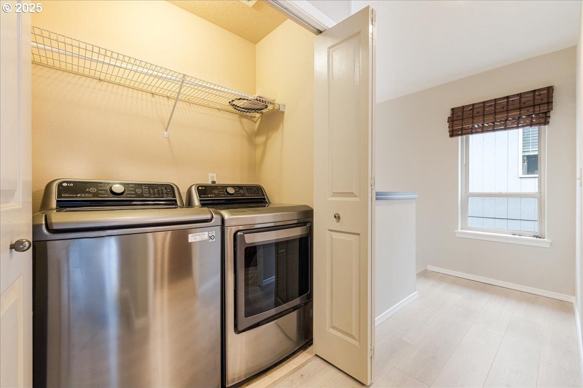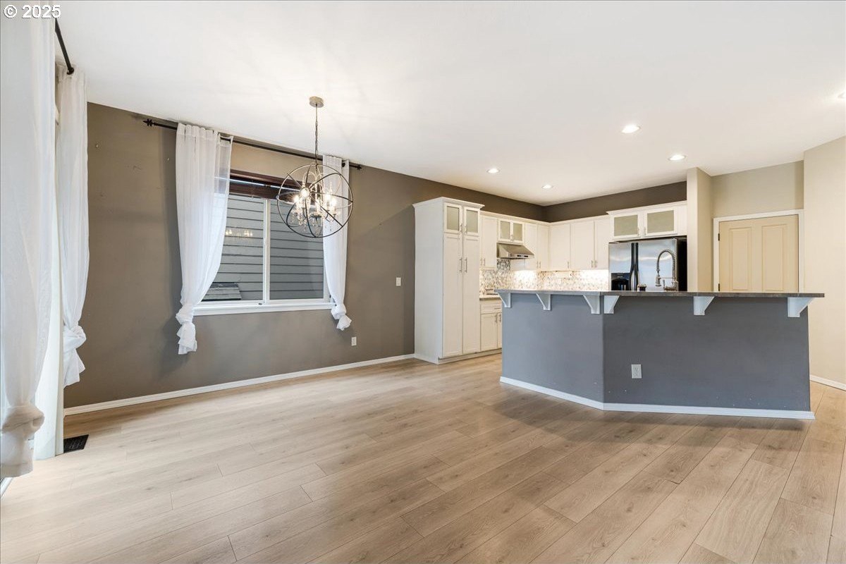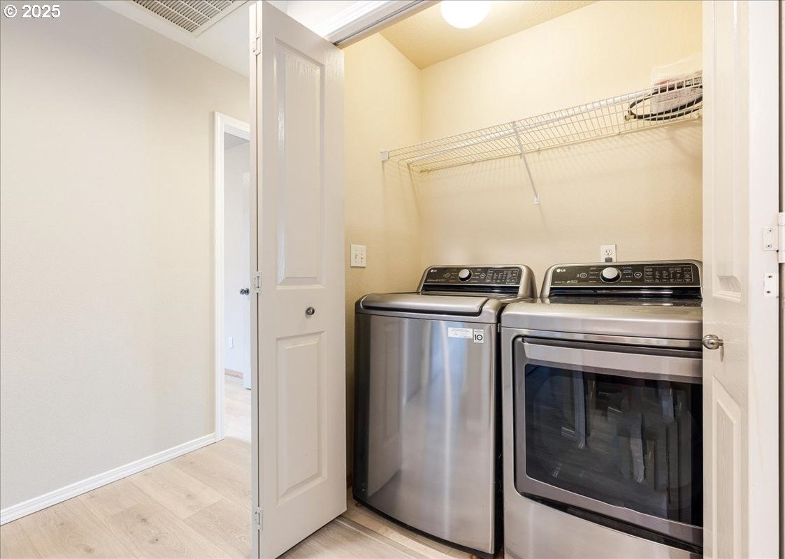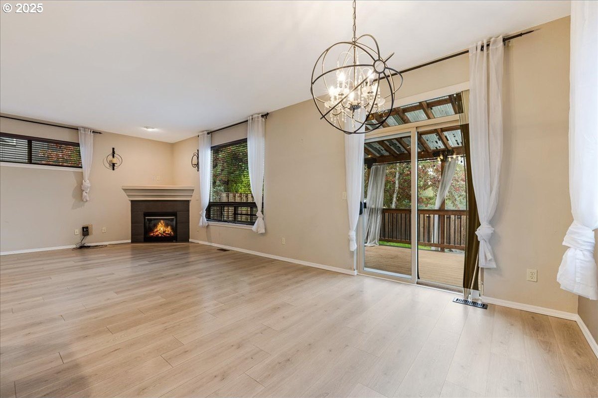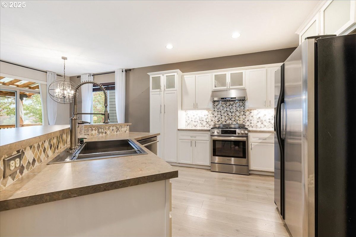 Darling 4-bedroom, 2.5 bath home! You’ll love the easy flow of this home’s open layout with 9-foot ceilings and laminate floors throughout the main level. The living room has a cozy corner gas fireplace, and the dining area opens to a covered back deck, perfect for year-round grilling or morning coffee. The kitchen offers plenty of workspace with a center island, classic white cabinets, and stainless-steel appliances, including the fridge, gas range, and dishwasher, which are all included with the home. A half bath and attached two-car garage complete the main level. Upstairs you'll find four bedrooms, two full baths, and a laundry closet with washer and dryer included. The primary suite feels spacious and bright with vaulted ceilings, dual closets (one walk-in), and a private bath featuring a double-sink vanity and walk-in shower. Outside, the fully fenced backyard and covered deck make it easy to enjoy the outdoors in any season. This one’s move-in ready and ready for it's next chapter. Come take a look!